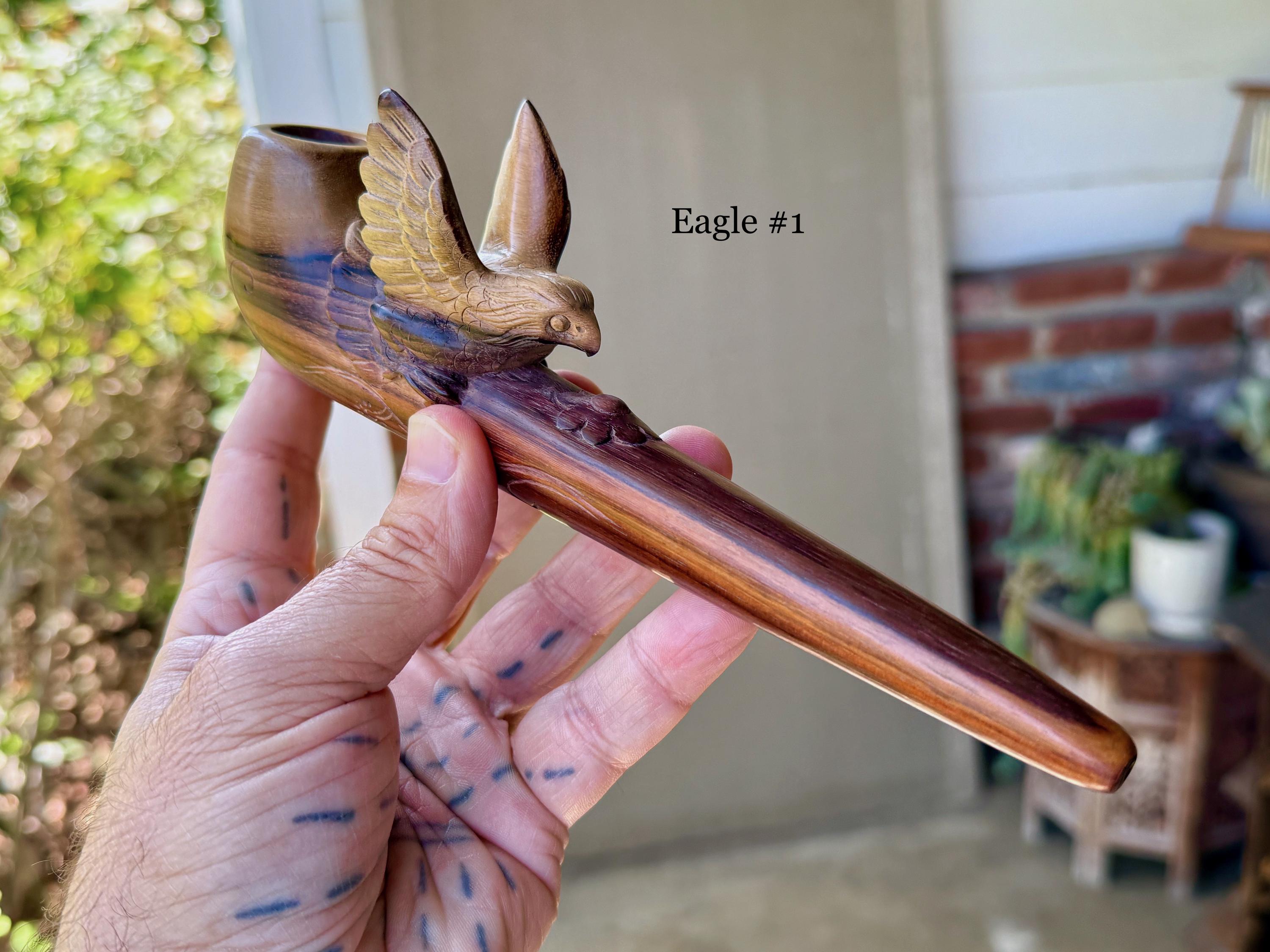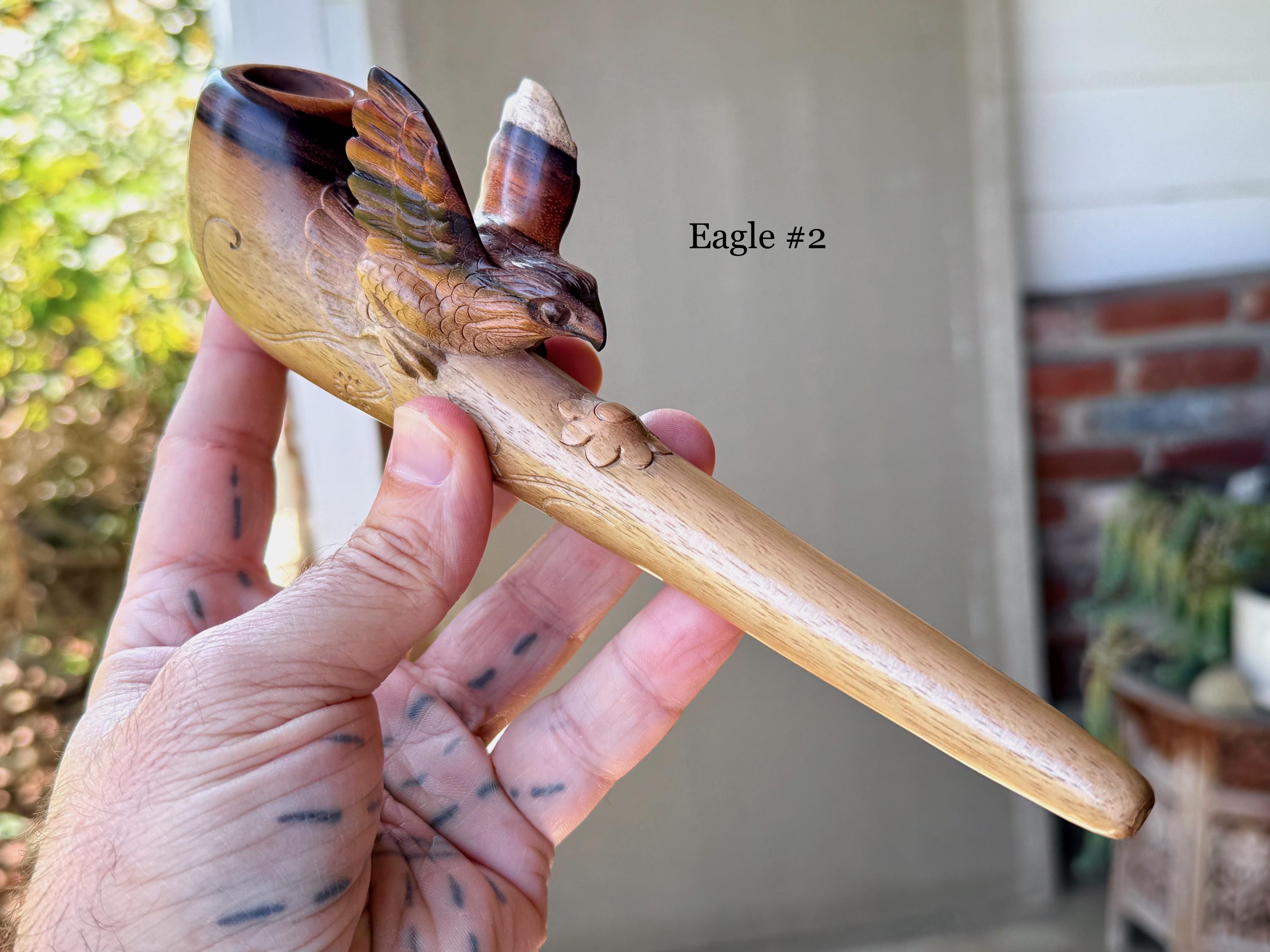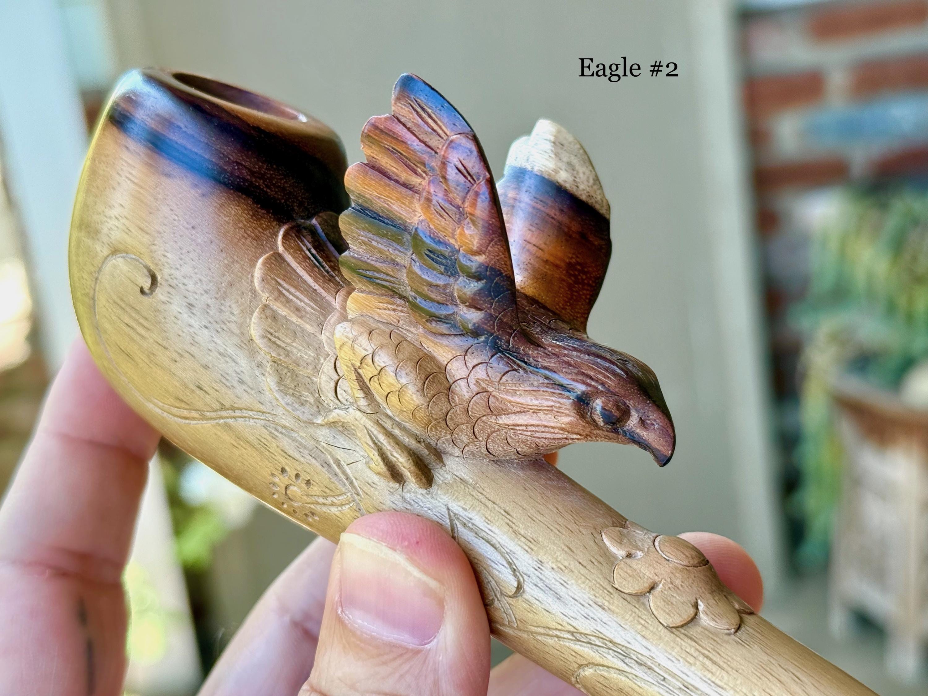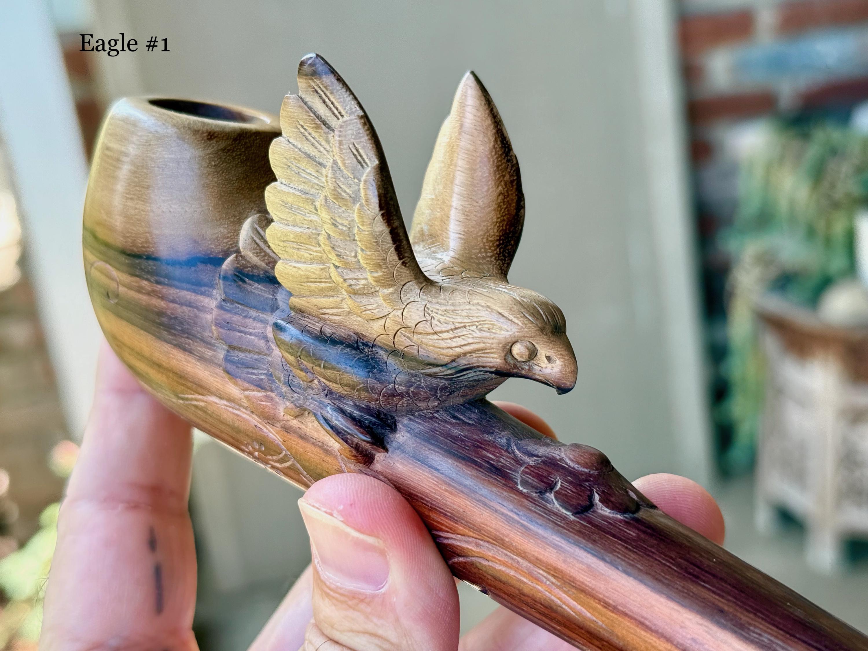 These magnificent tobacco pipes depict the powerful Eagle, with wings outstretched! The level of craftsmanship is truly impressive, with such attention to detail.