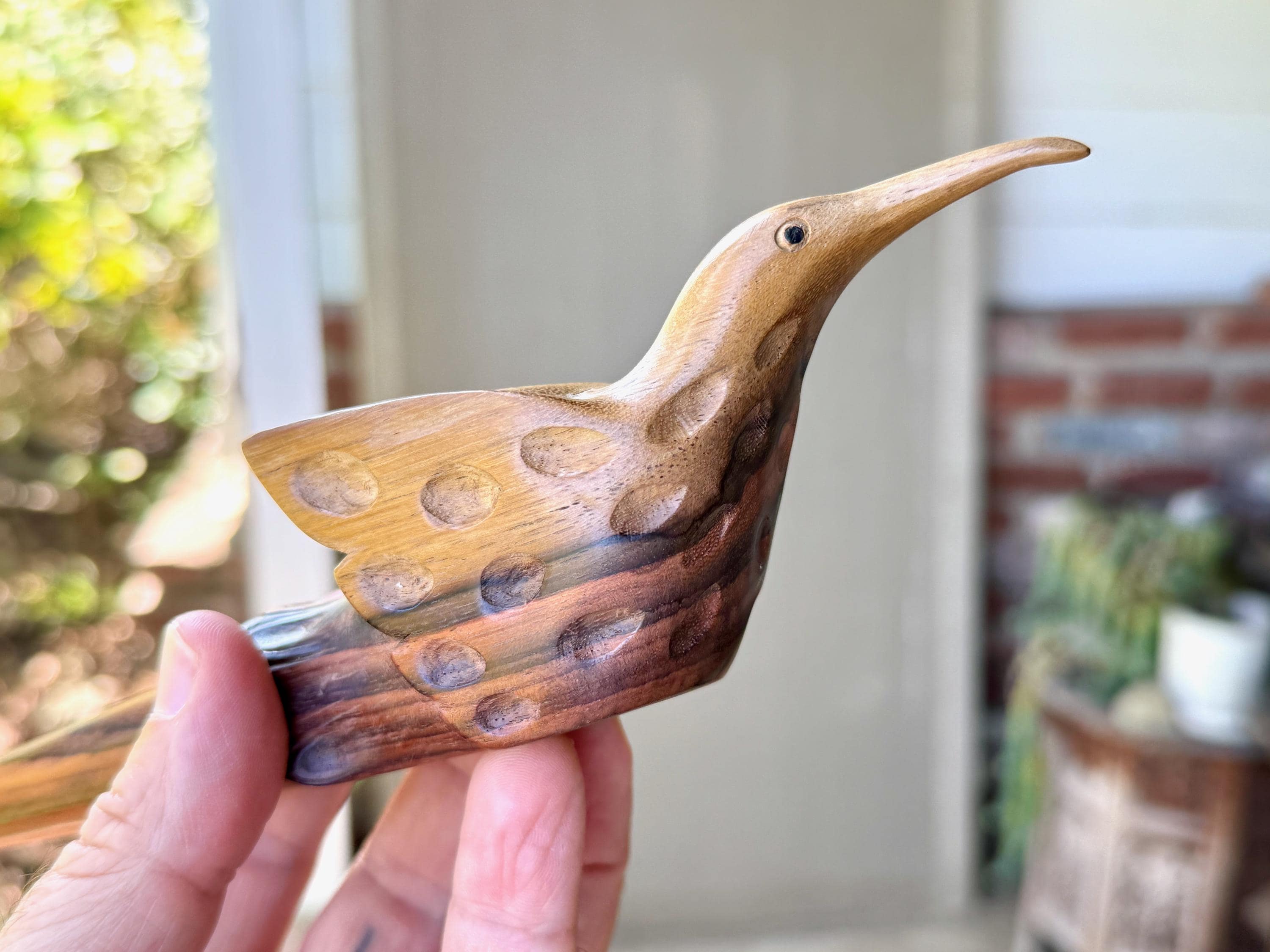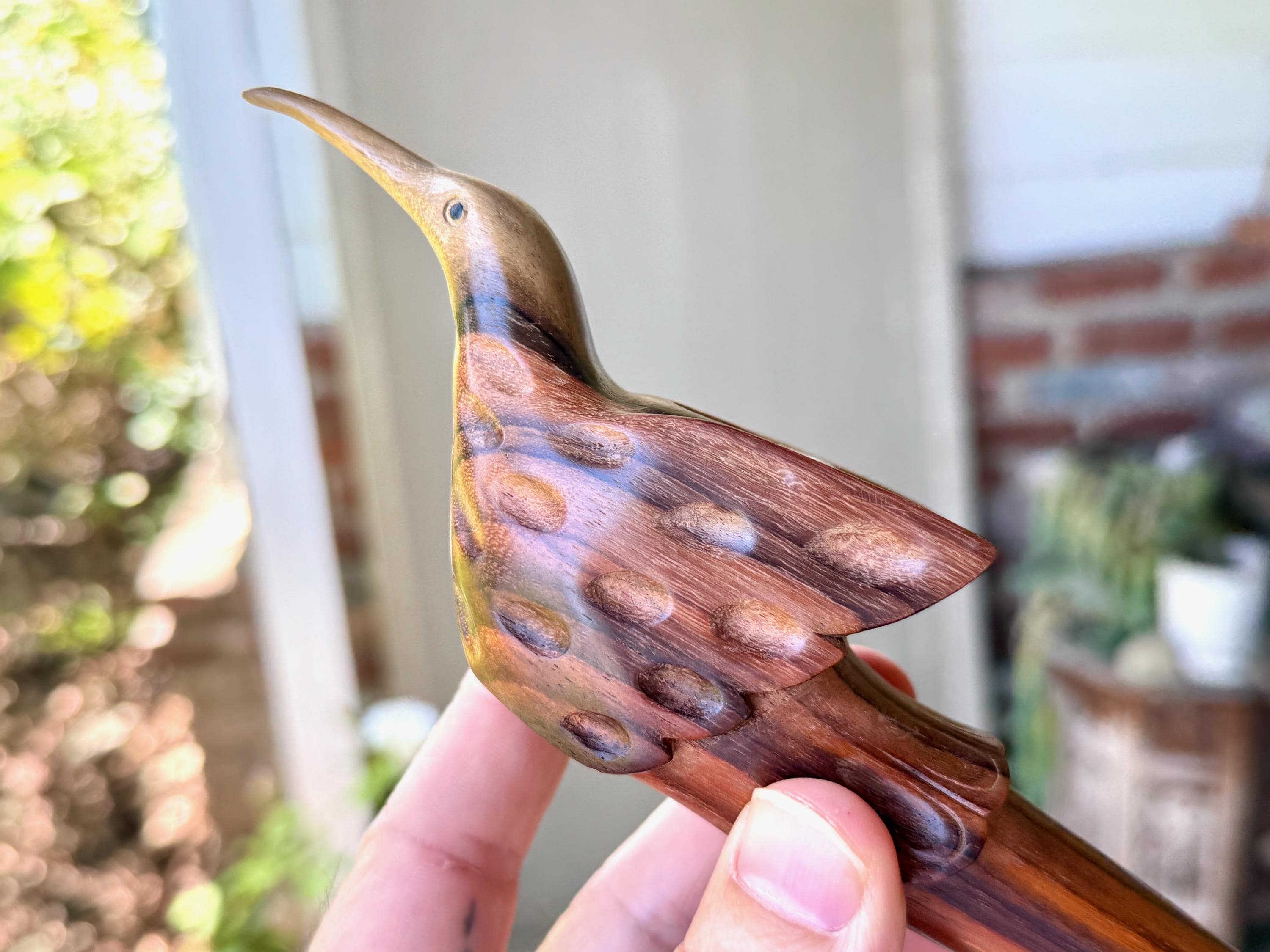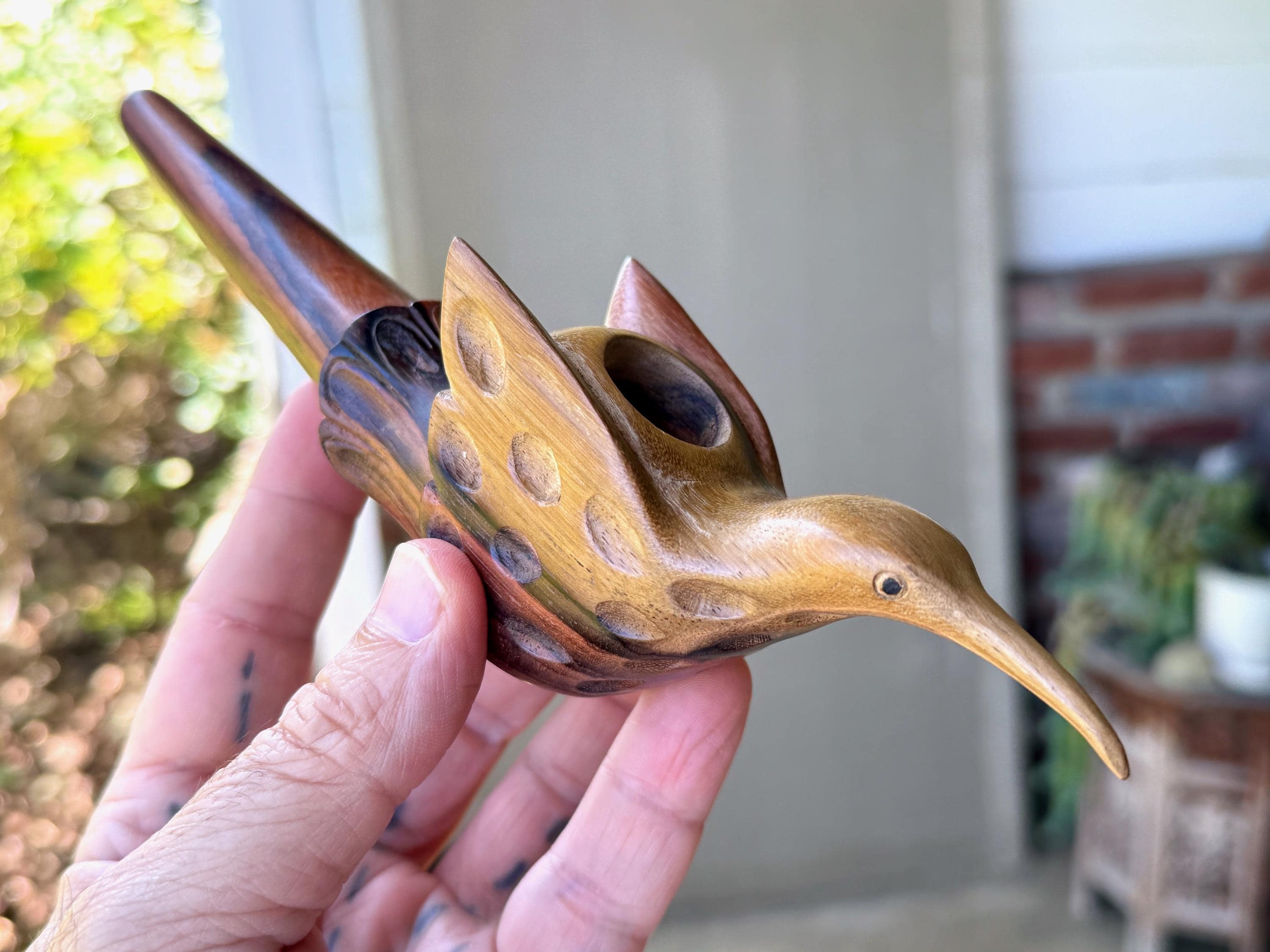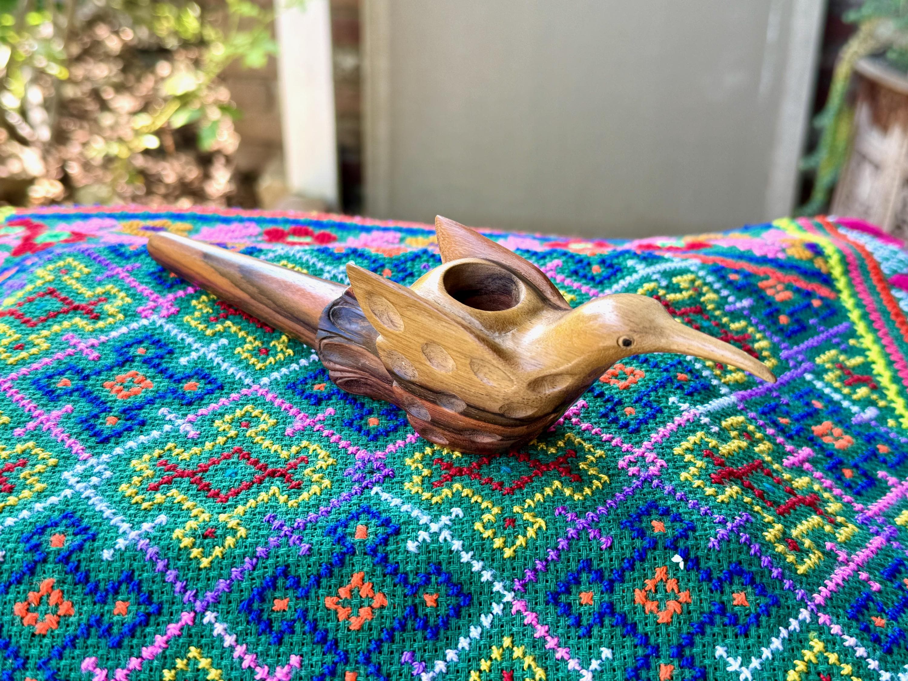 This glorious Hummingbird Pipe for tobacco and mapacho was hand carved from solid, naturally two-tone tropical hardwood. This pipe is intended for use in shamanic healing ceremonies or for other energy healing applications.