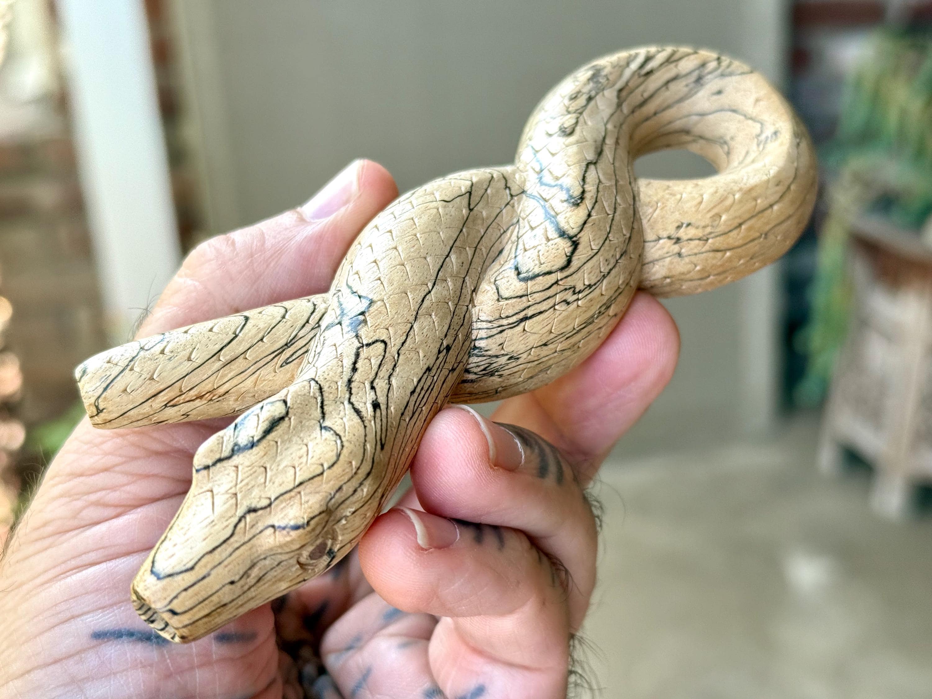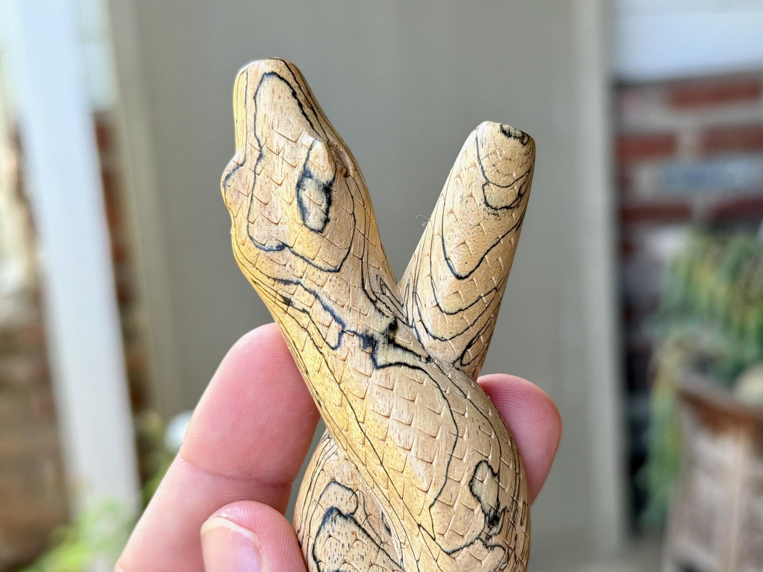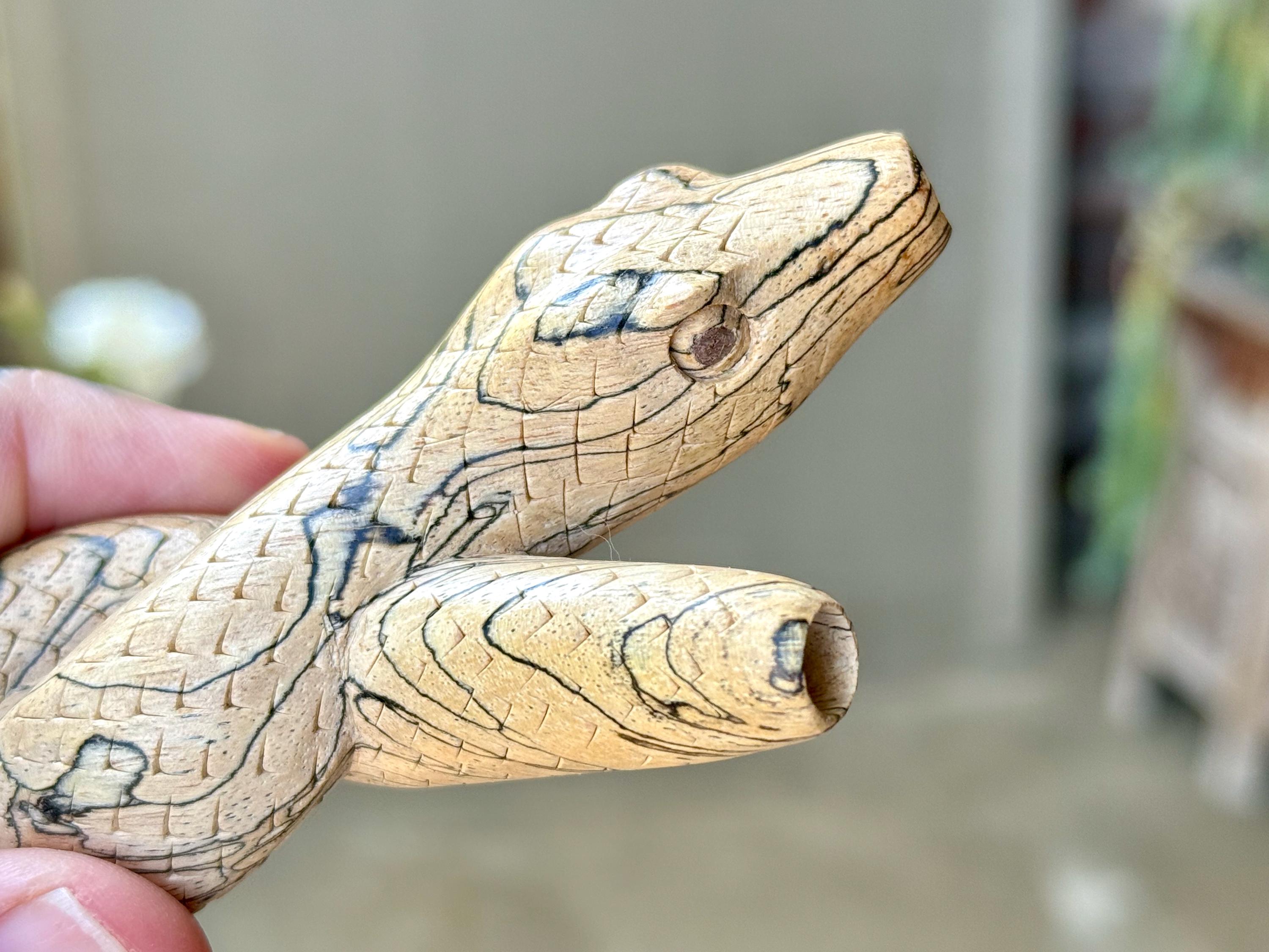 One of our most popular designs, this Infinity Serpent Kuripe is masterfully carved from a single block of beautifully grained Crocodile Wood, a lightweight but durable tropical hardwood. The attention to detail is outstanding (each scale is carved by hand!). A beautiful and powerful medicine tool.