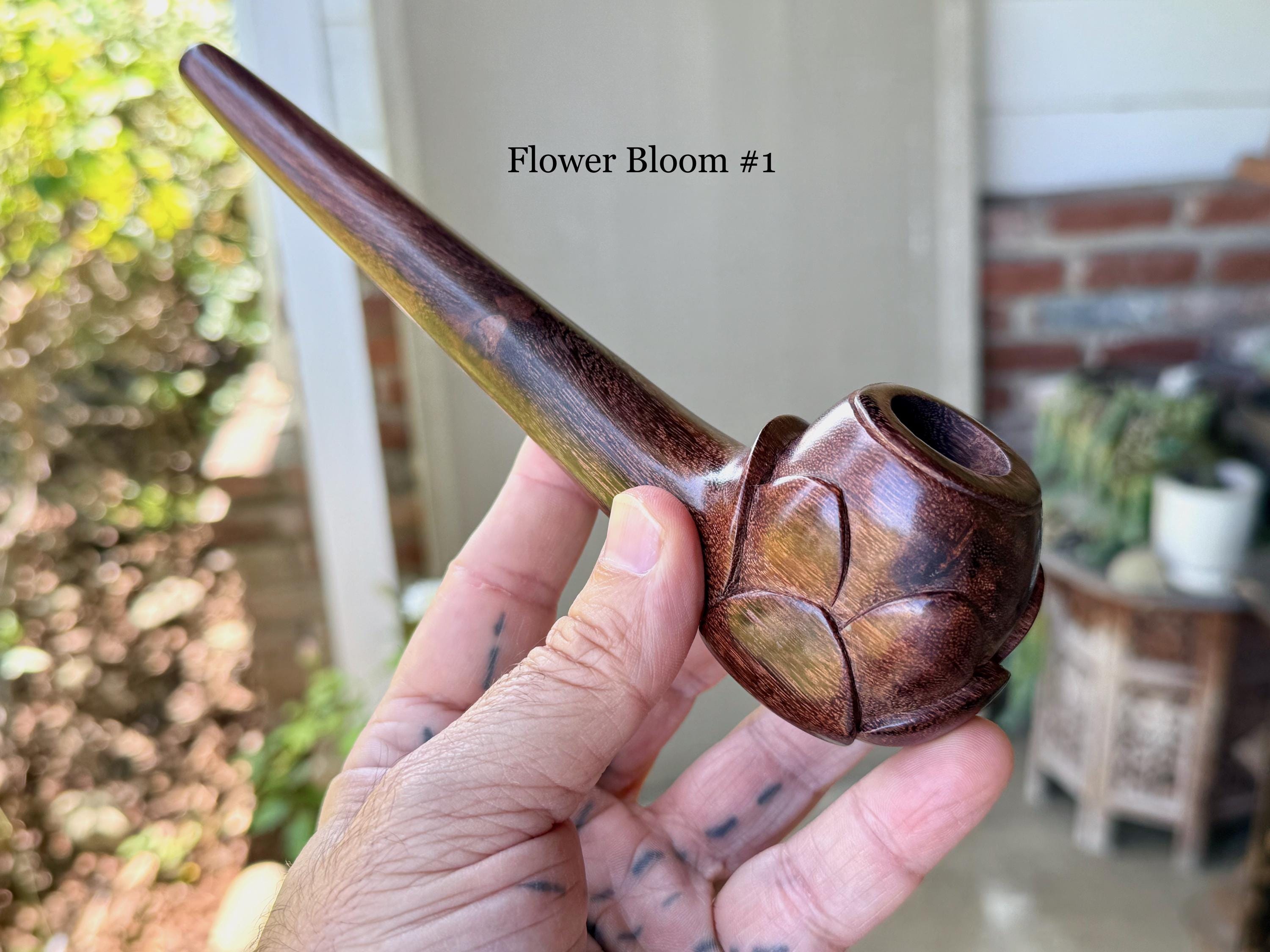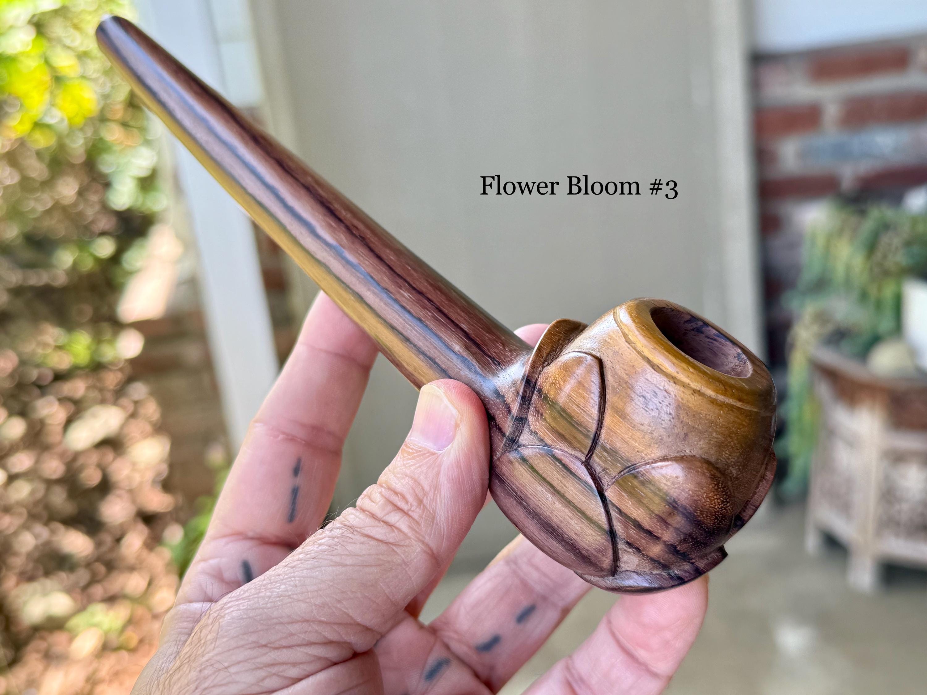 These traditional hand-carved Shaman Flower Pipes for tobacco or mapacho, were handmade by our artisans in Indonesia. They are intended for — but not limited to — use in shamanic ceremony or other ceremonial applications.