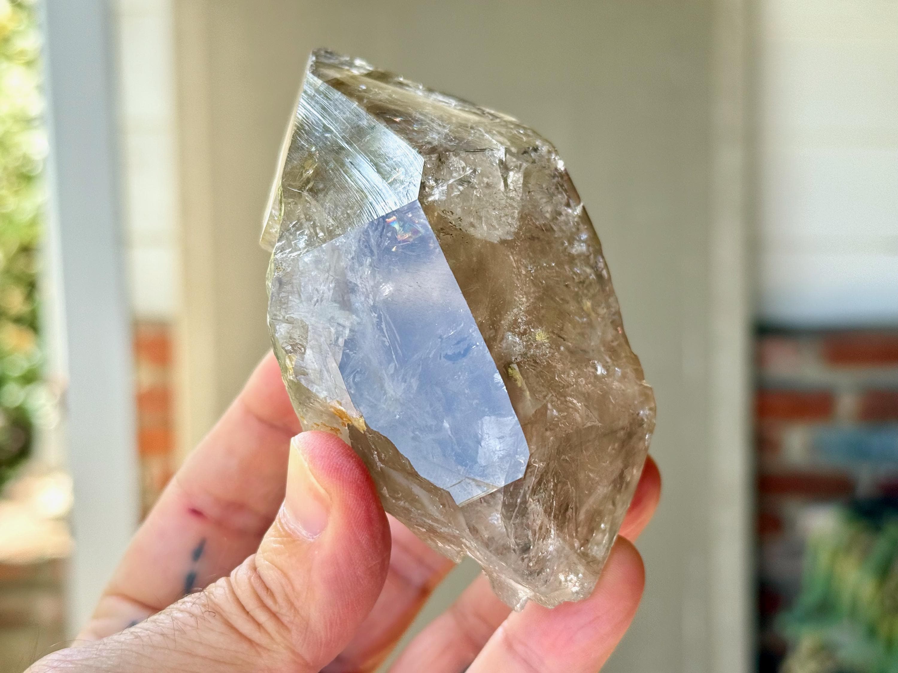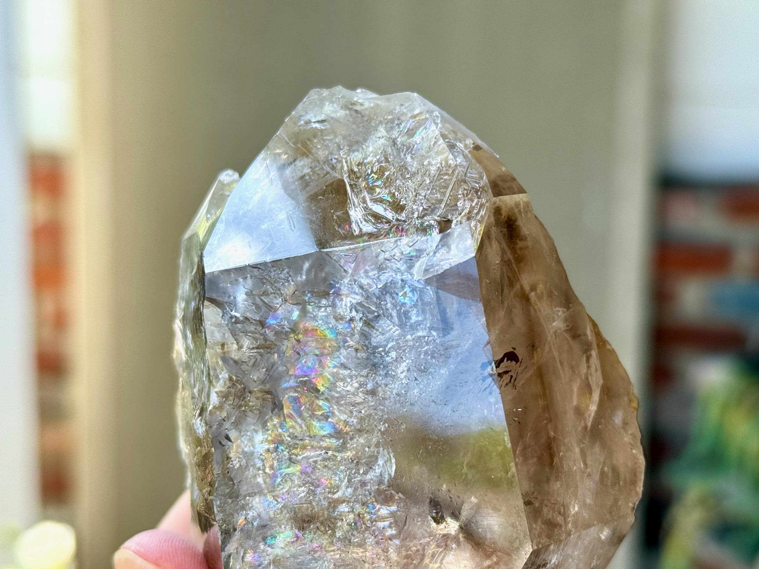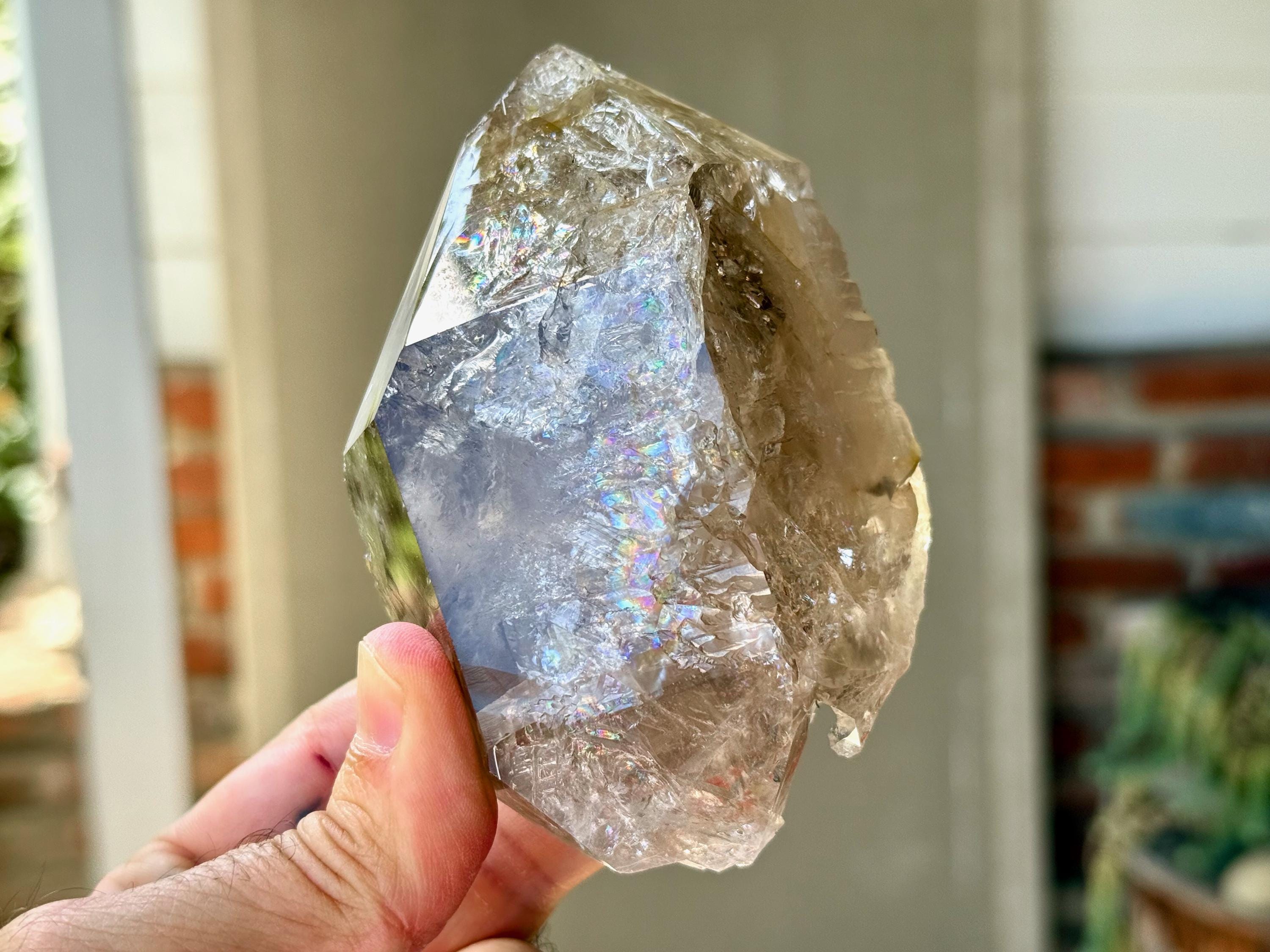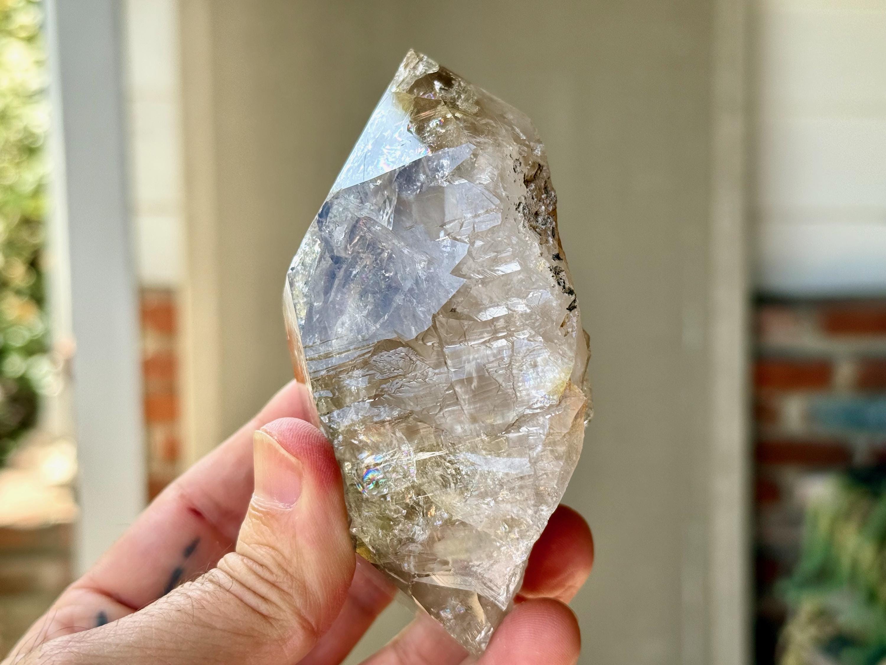 One of *very* few Herkimer Diamonds we've ever offered that have a smoky hue, and this one is a stunner! Superb luster and wonderful skeletal formations inside. The excellent clarity of the exterior is what allows us to peer inside and observe all these crystalline structures, some of which flash vibrant rainbows. In fact, this is one of the most rainbow-filled Herkimers we have ever seen!