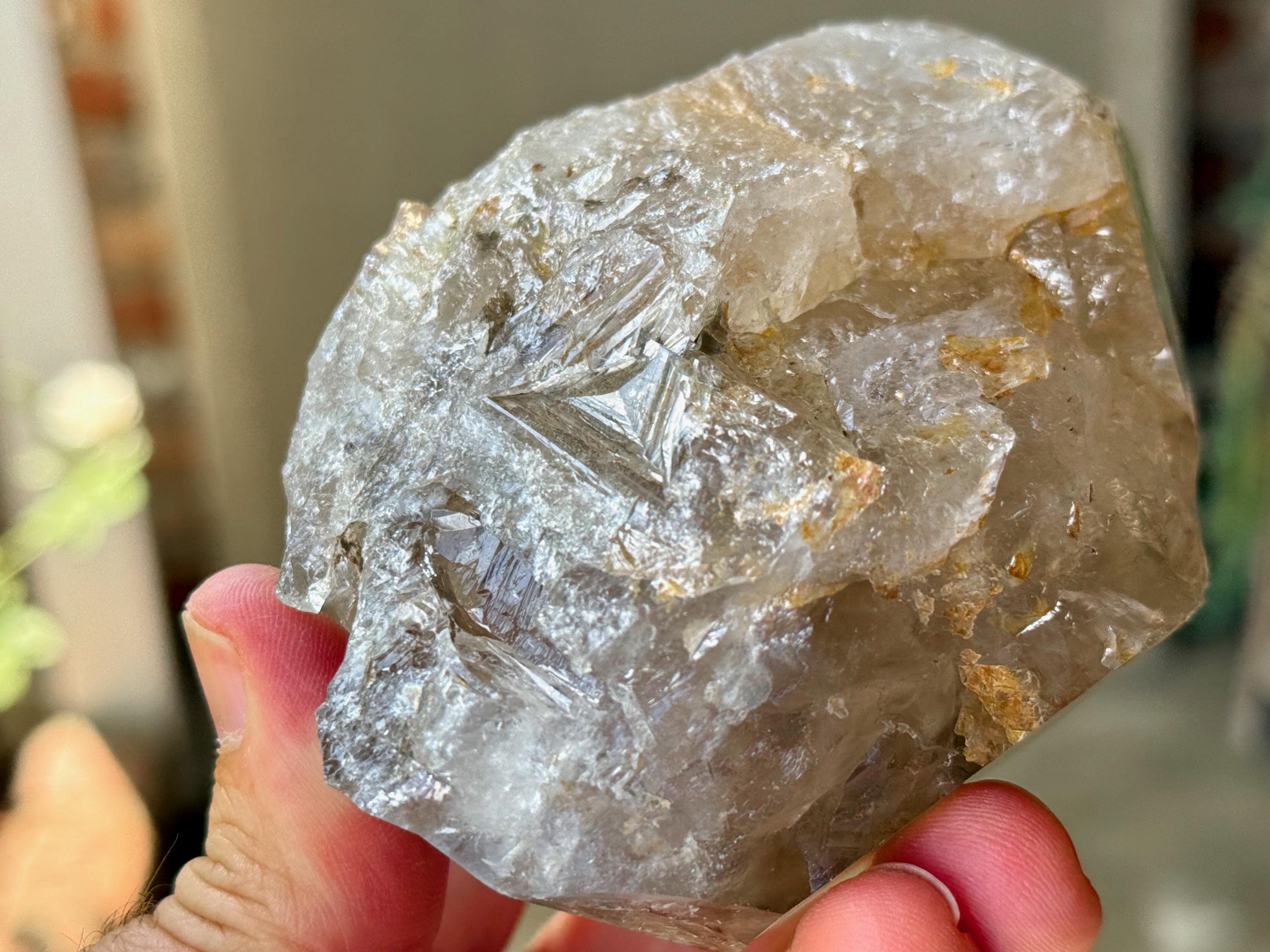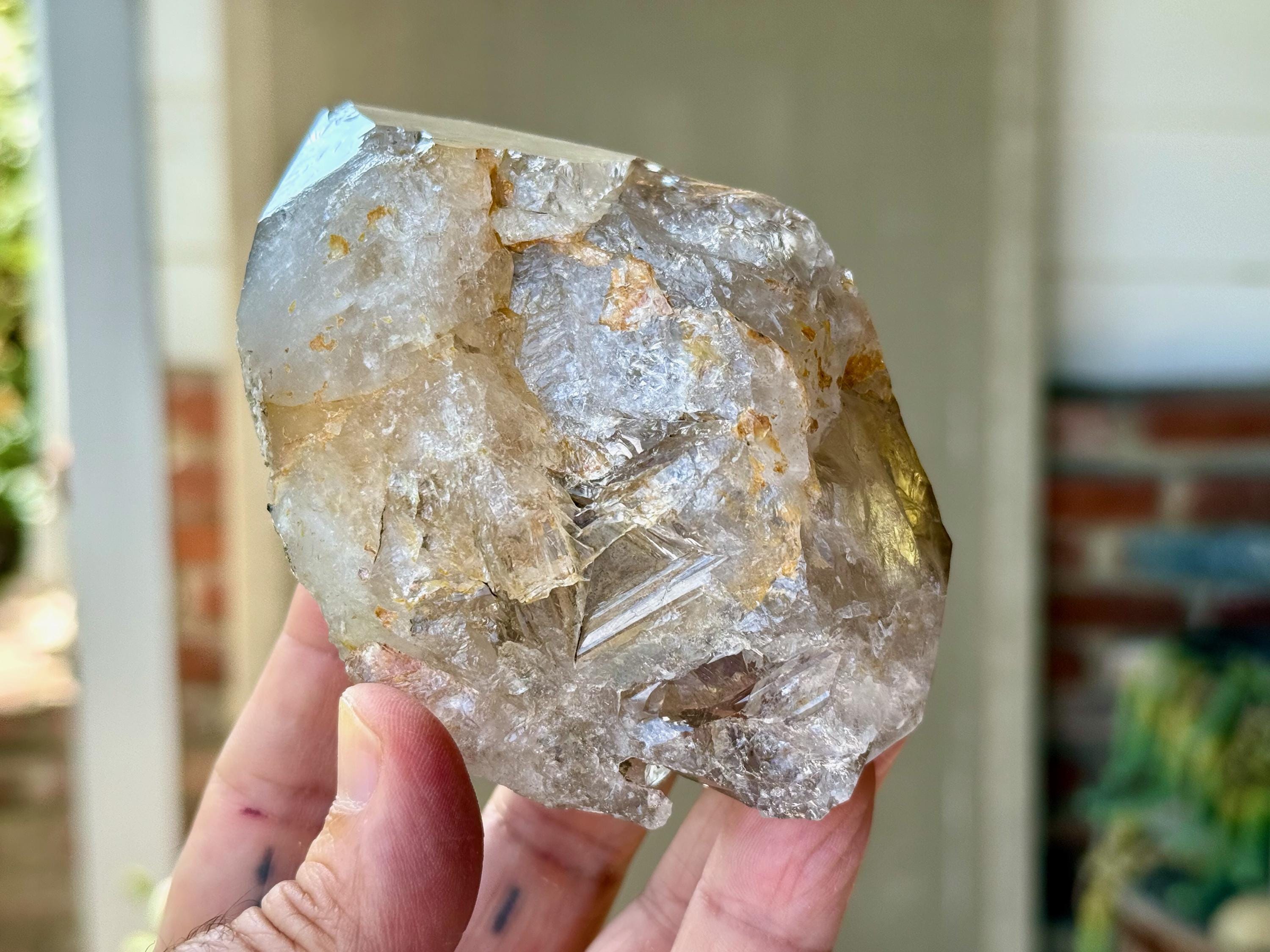 The back portion of this crystal is a self-healed contact area, indicating where it separated from a larger crystal and healed over the course of millions of years. This contact area reveals another special surprise: a deep, partial Record Keeper triangle embedded in the back! (Photo 2).