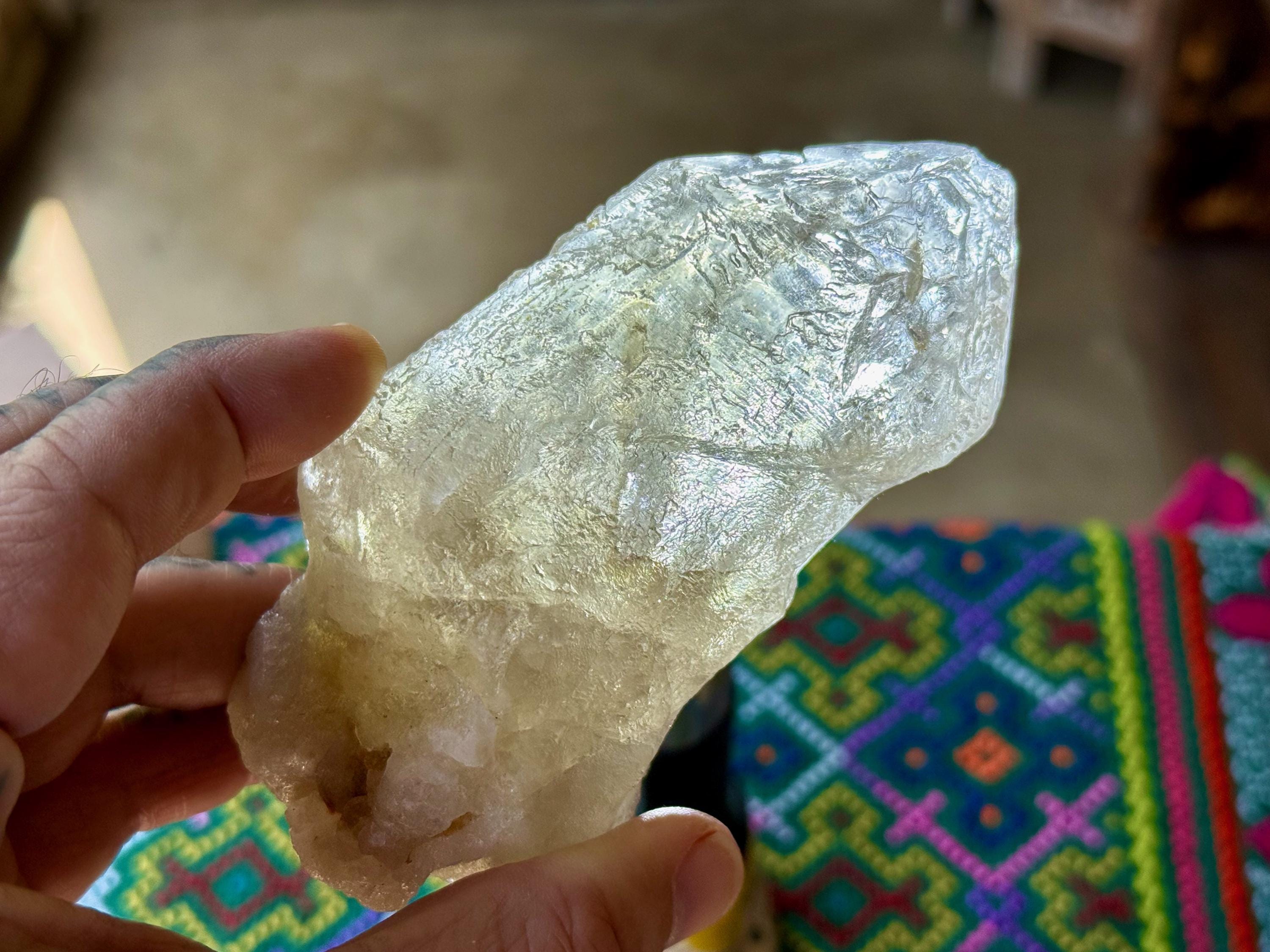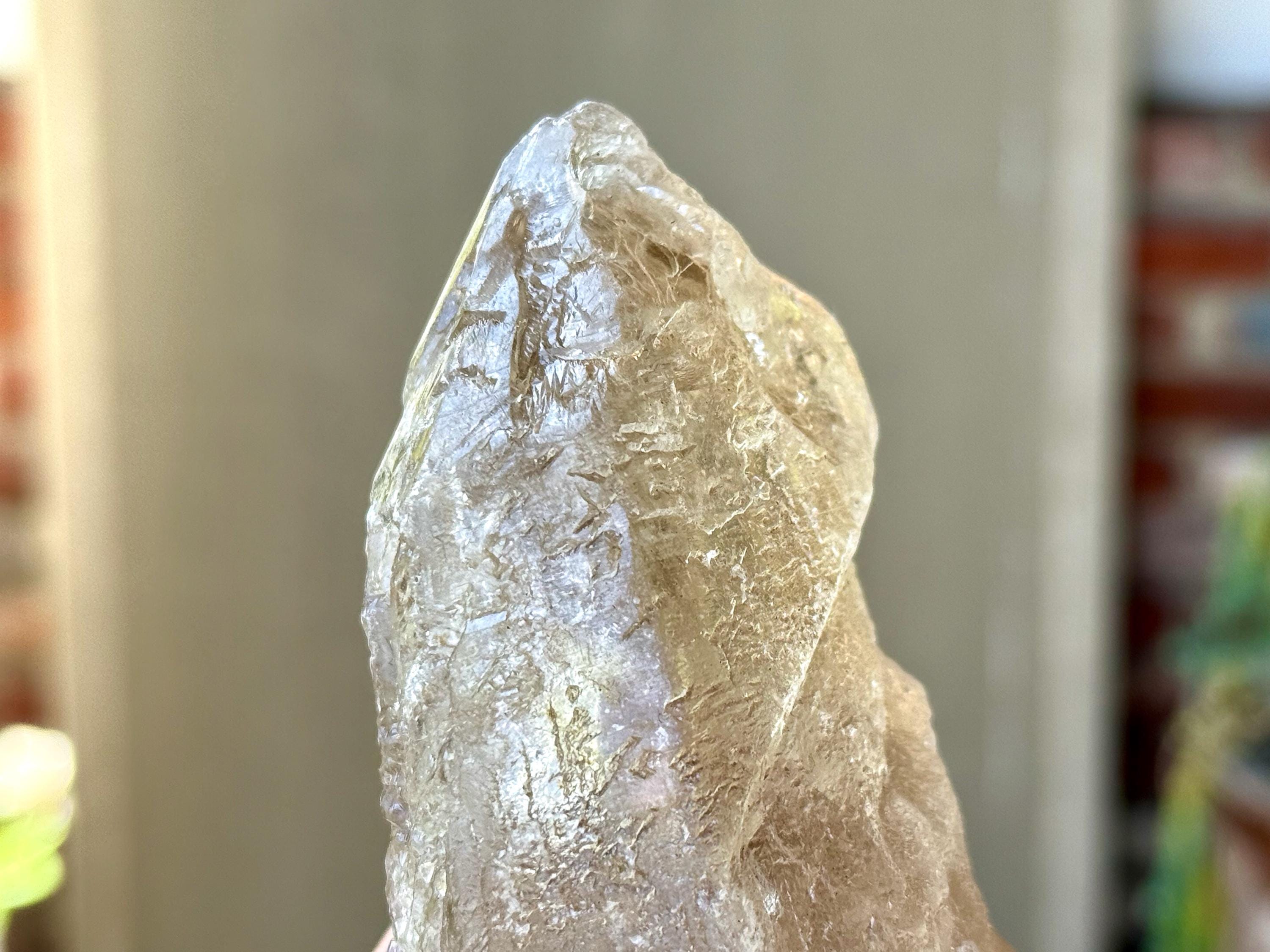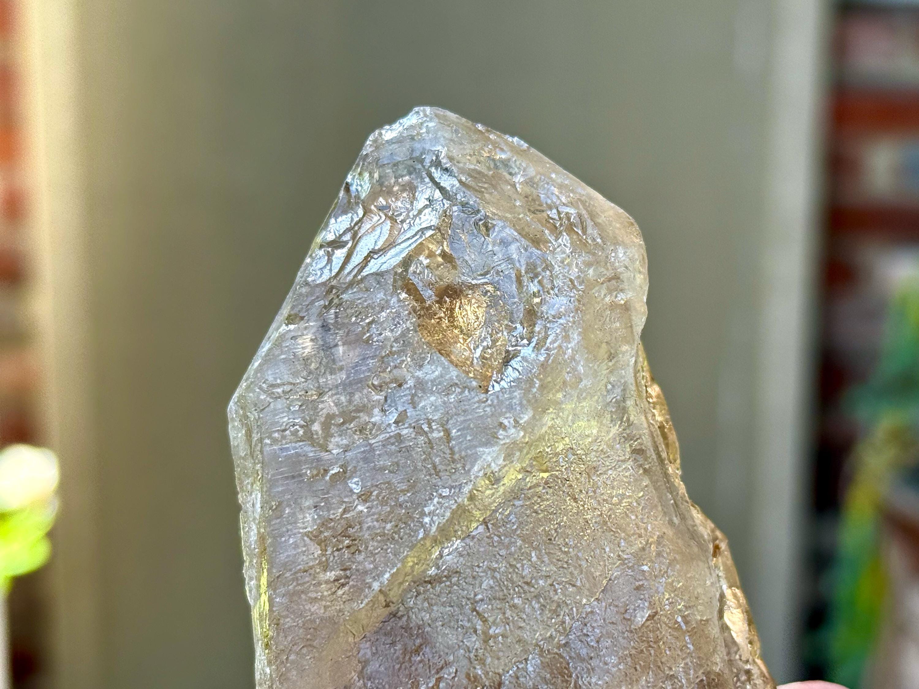 Gorgeous champagne-golden color to this exquisite Elestial Citrine with brilliant luster and marvelous clarity. When backlit, we can see it lights up brilliantly (Photo 5).