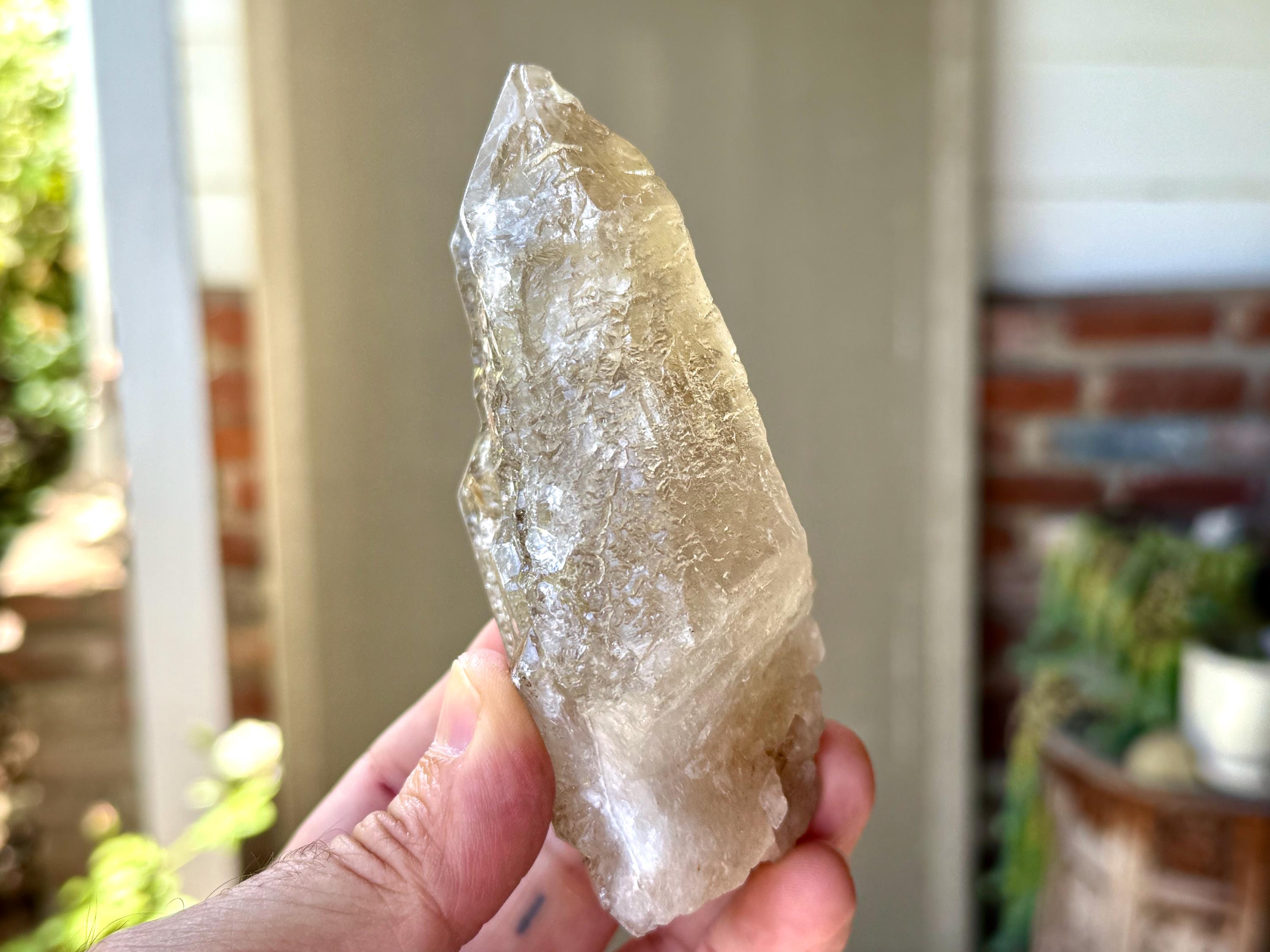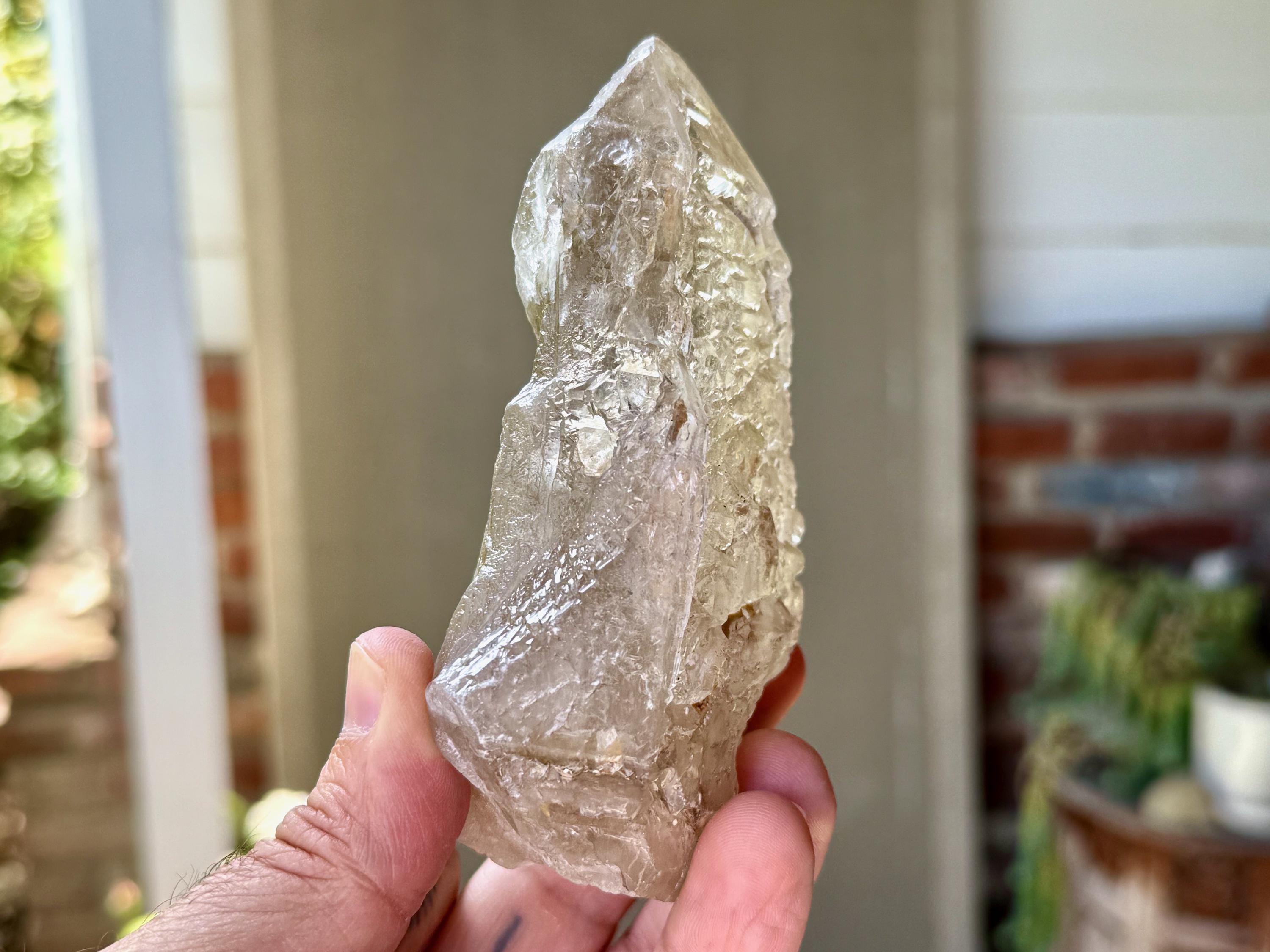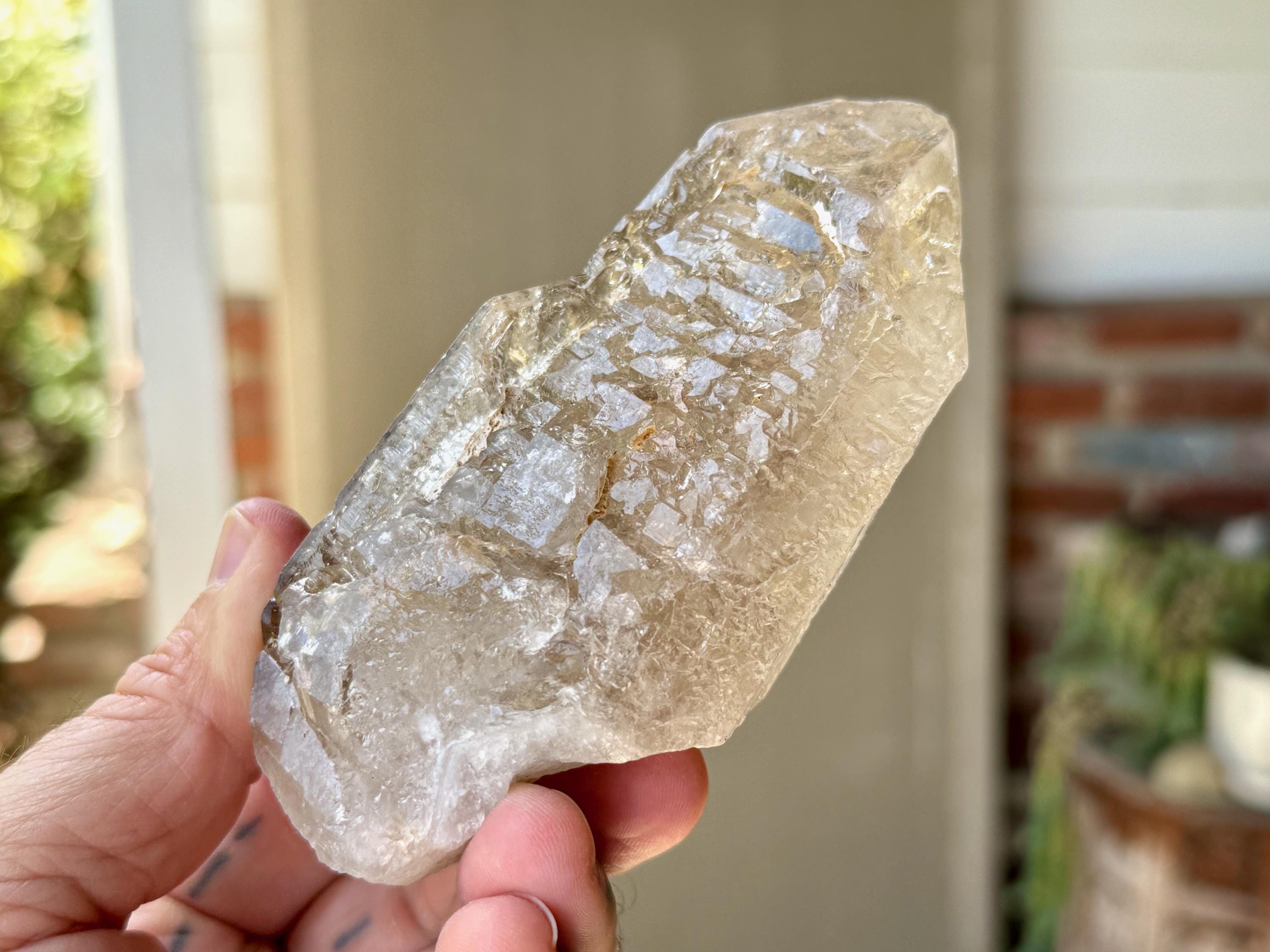This crystal features a broad formation and is covered from head to toe in natural, hydrothermally etched textures. There are loads of unique crevices and imprints here! Some of these appear to be chips or dings on the body, but upon closer examination you'll find that most everything is a completely healed and terminated impression.