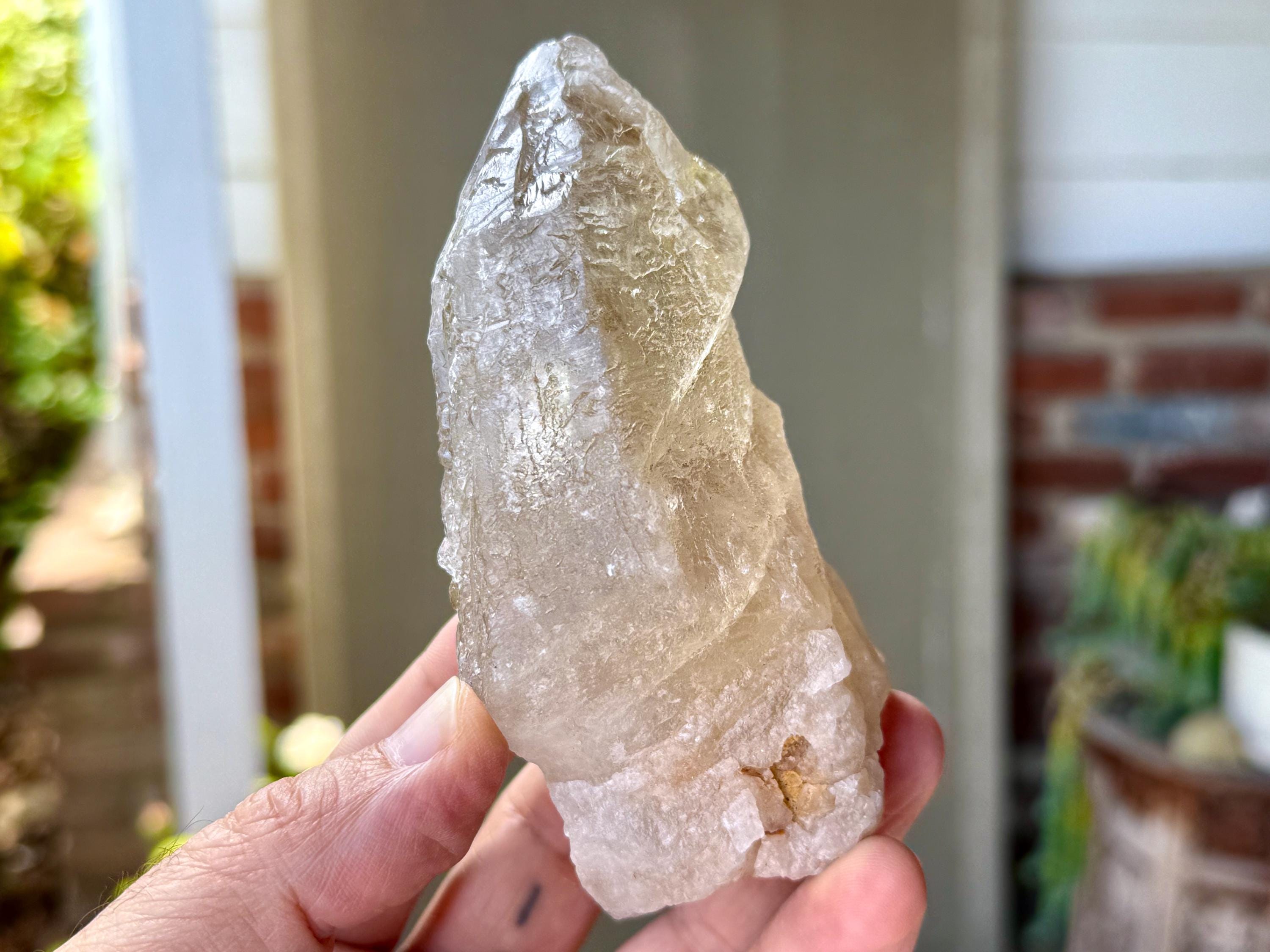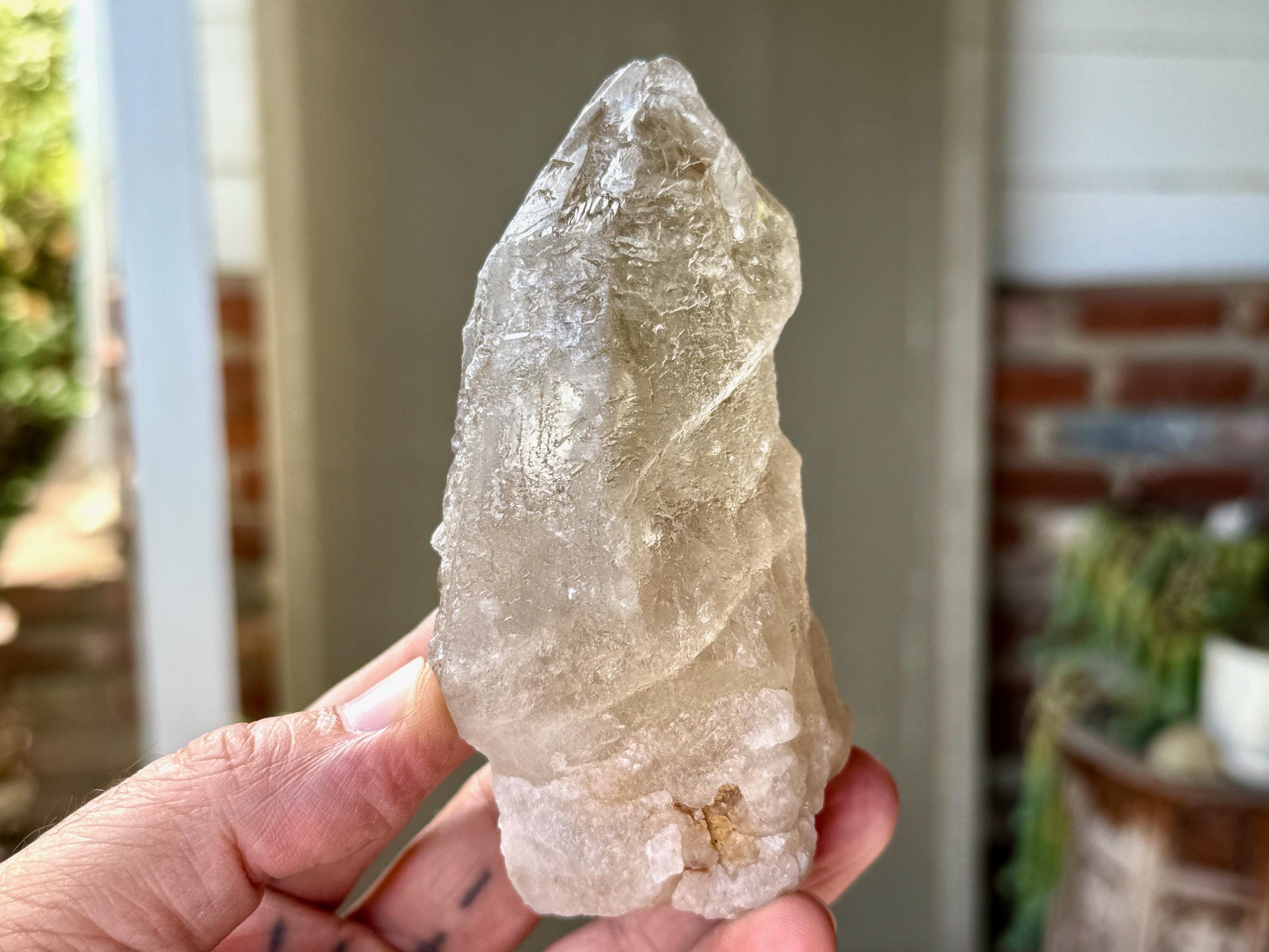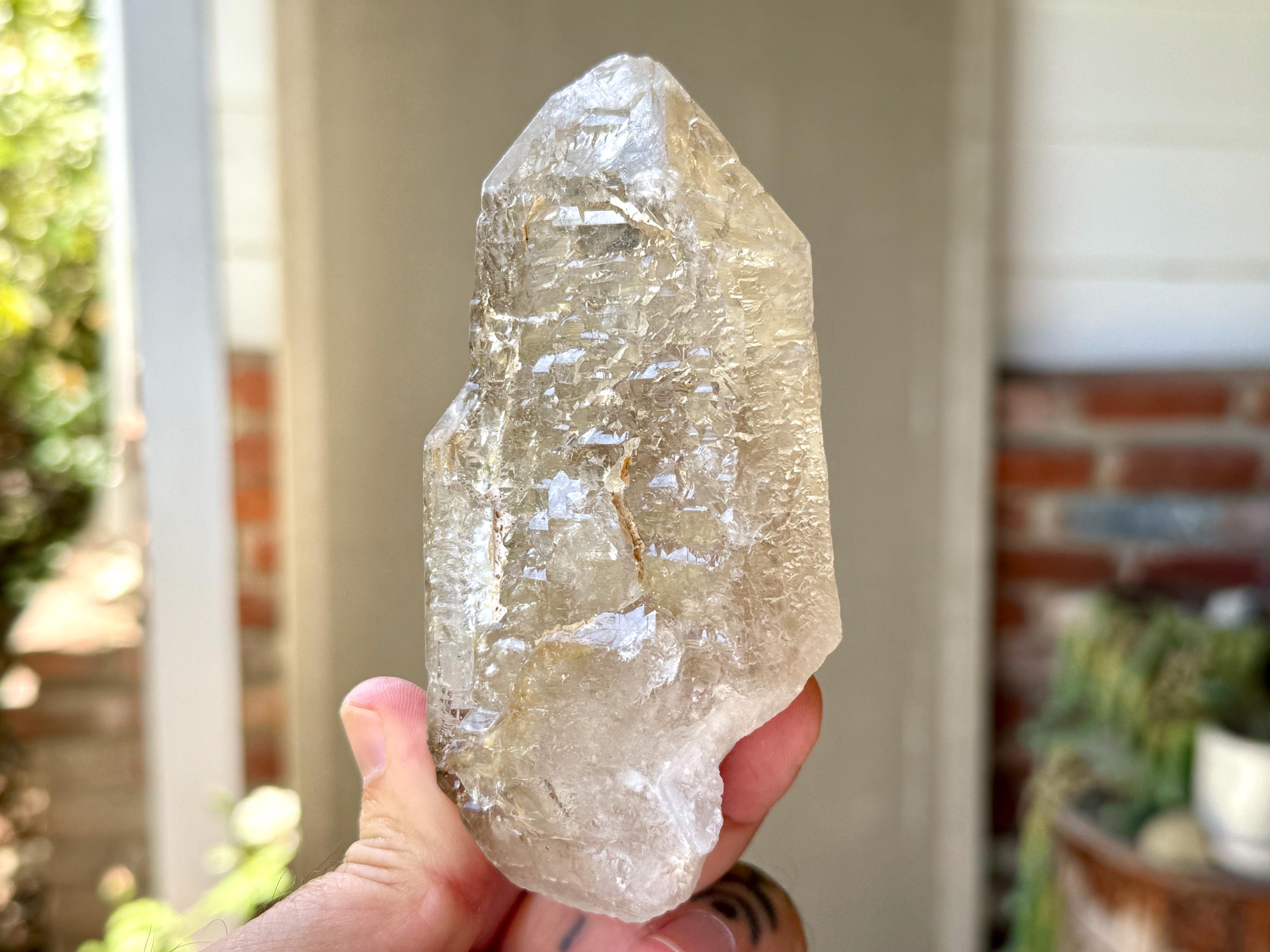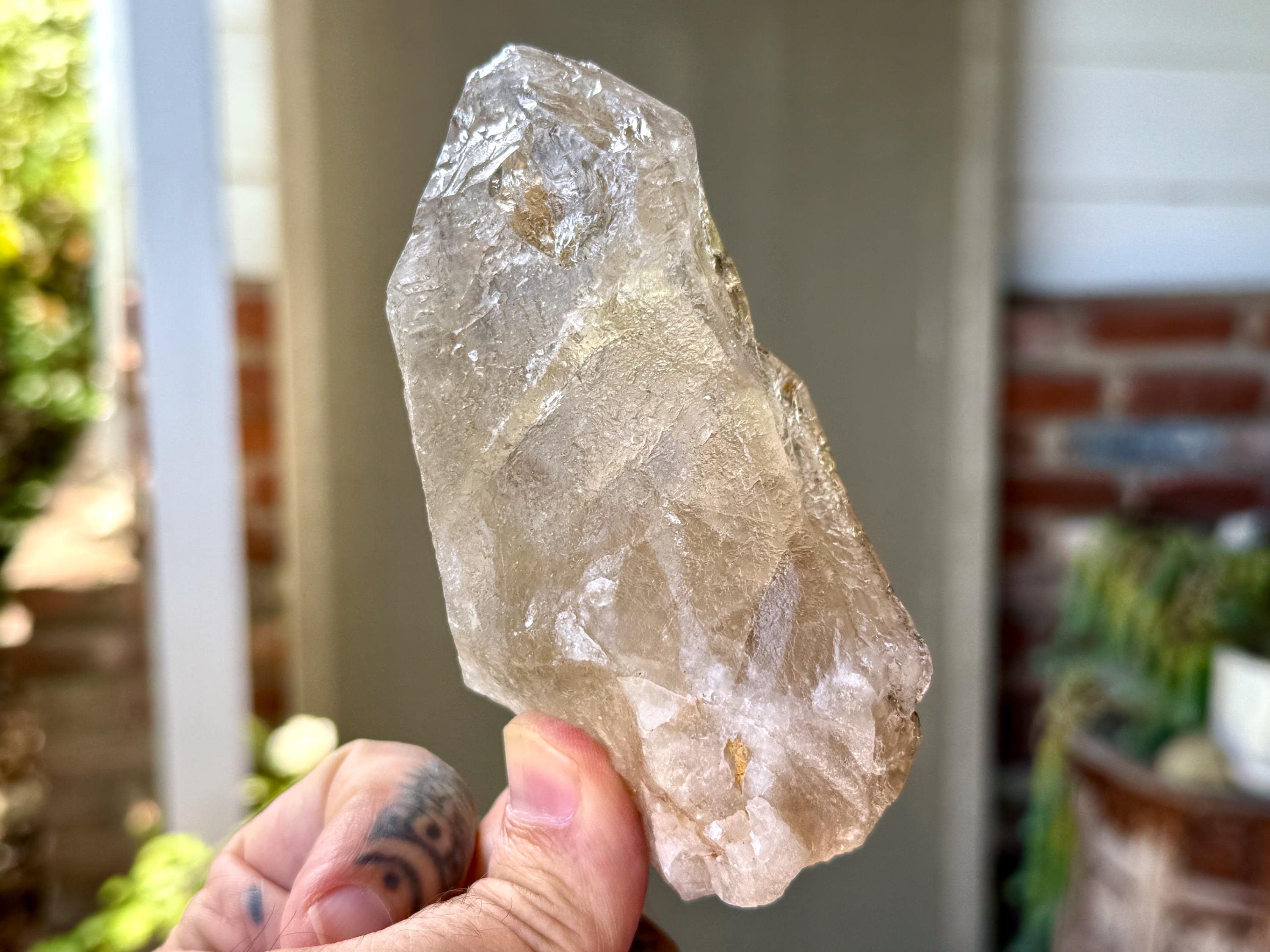 This crystal features a broad formation and is covered from head to toe in natural, hydrothermally etched textures. There are loads of unique crevices and imprints here! Some of these appear to be chips or dings on the body, but upon closer examination you'll find that most everything is a completely healed and terminated impression.