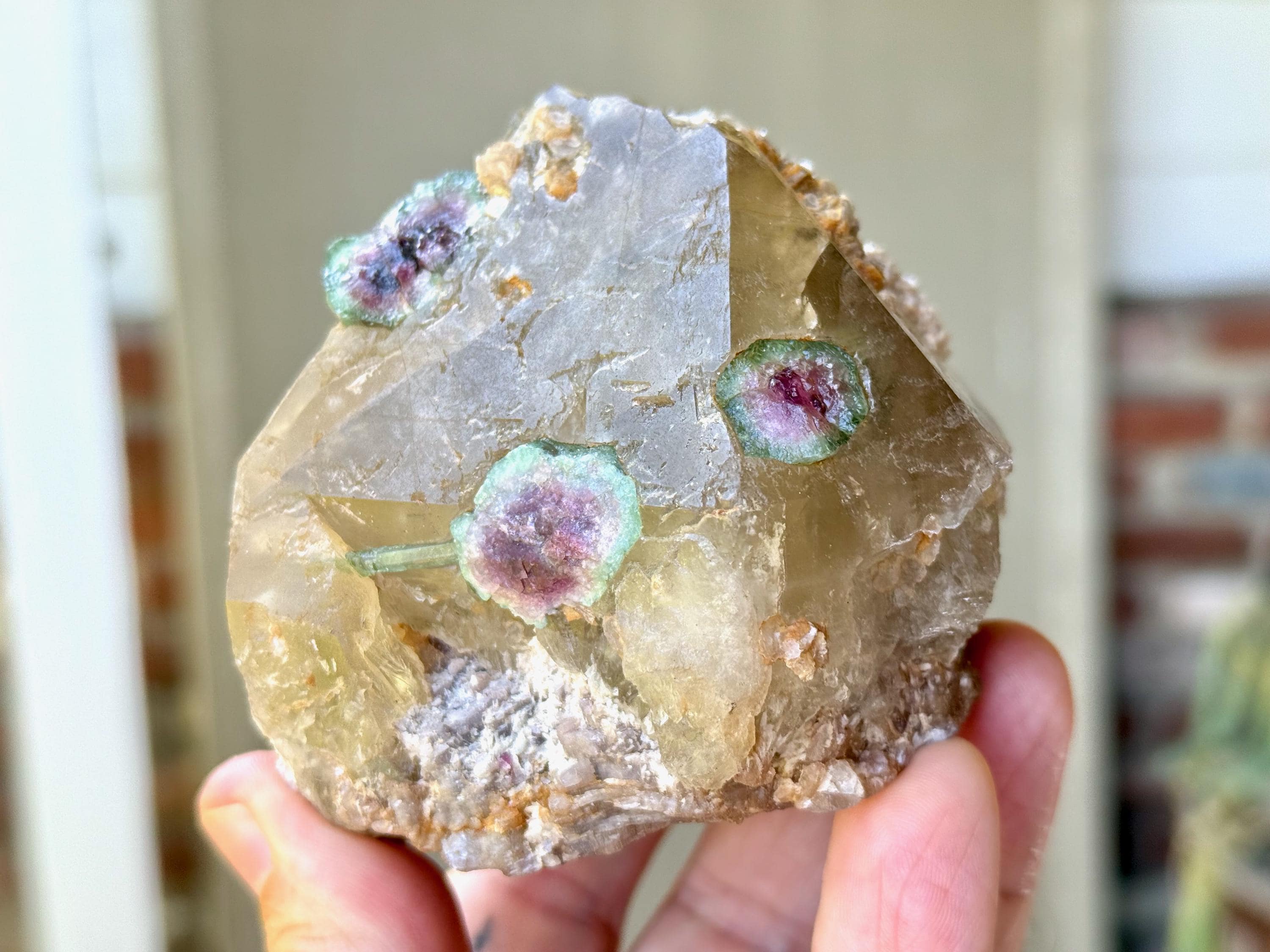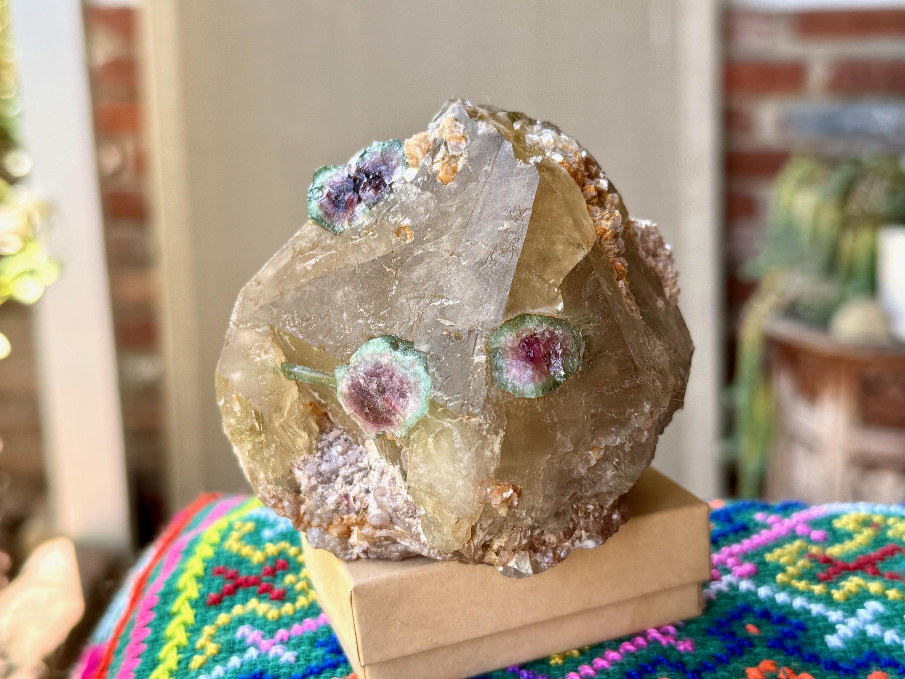 A most magnificent "Unicorn Stone" Citrine with brilliantly colored Tourmalines embedded throughout!