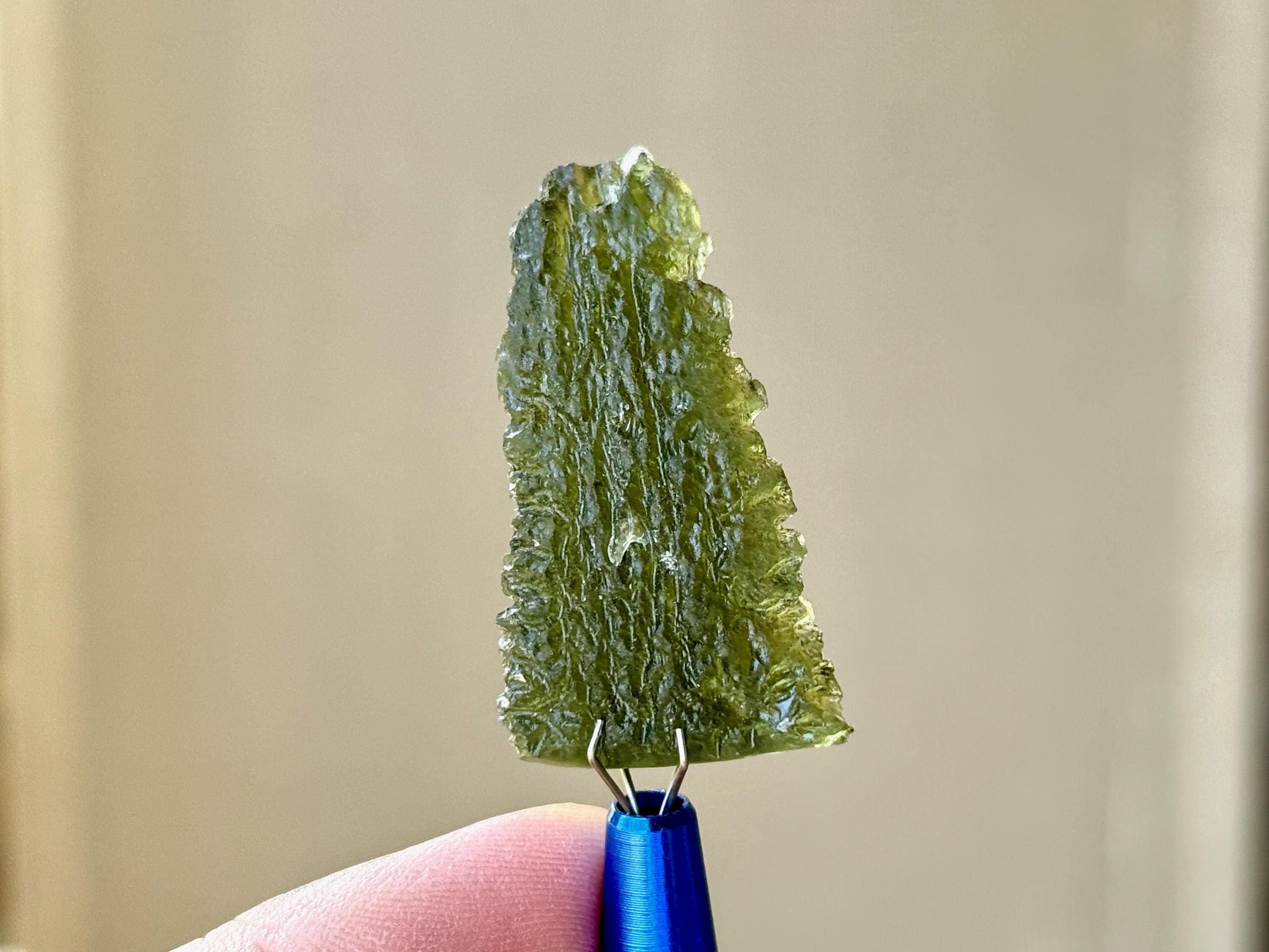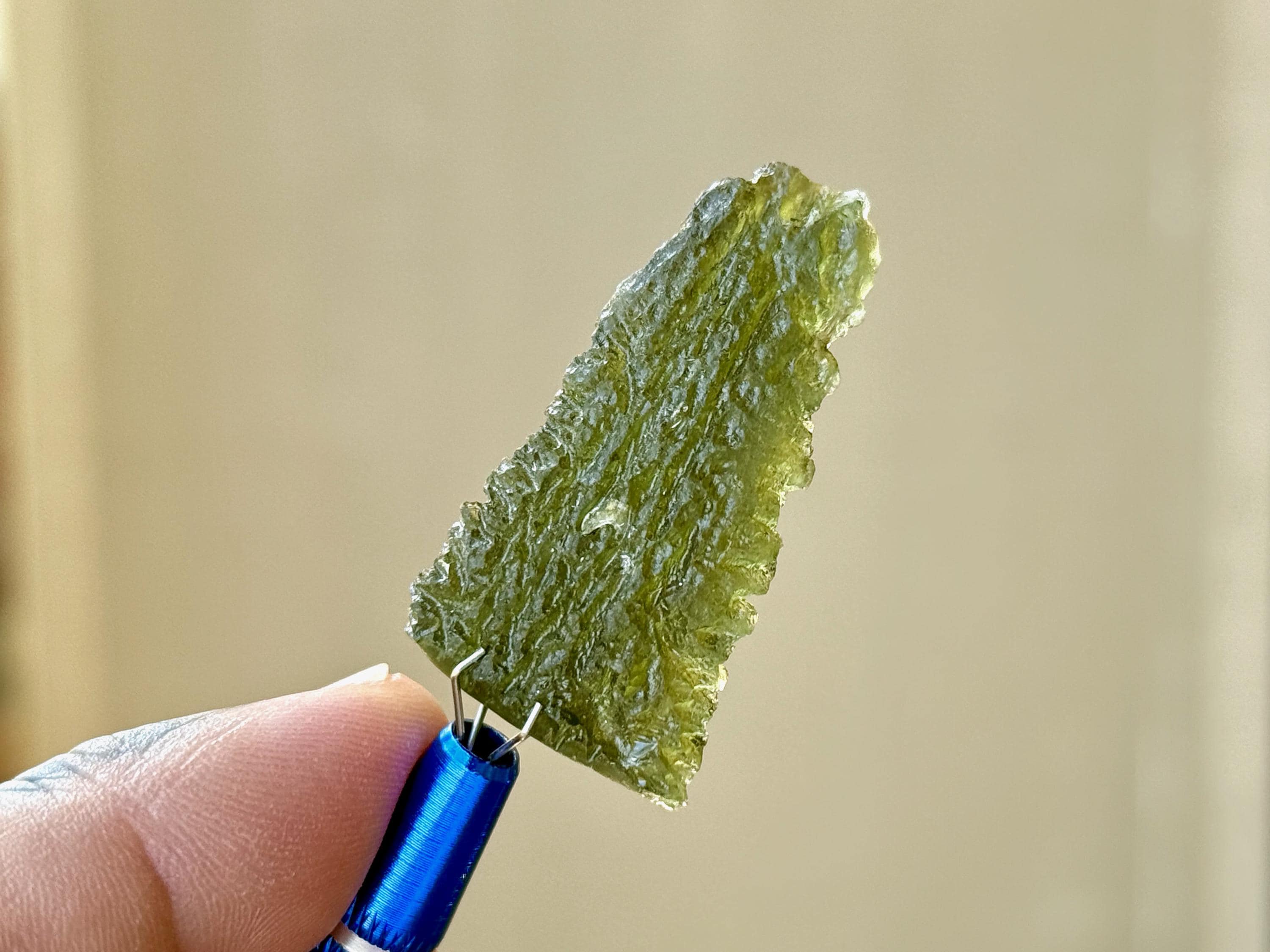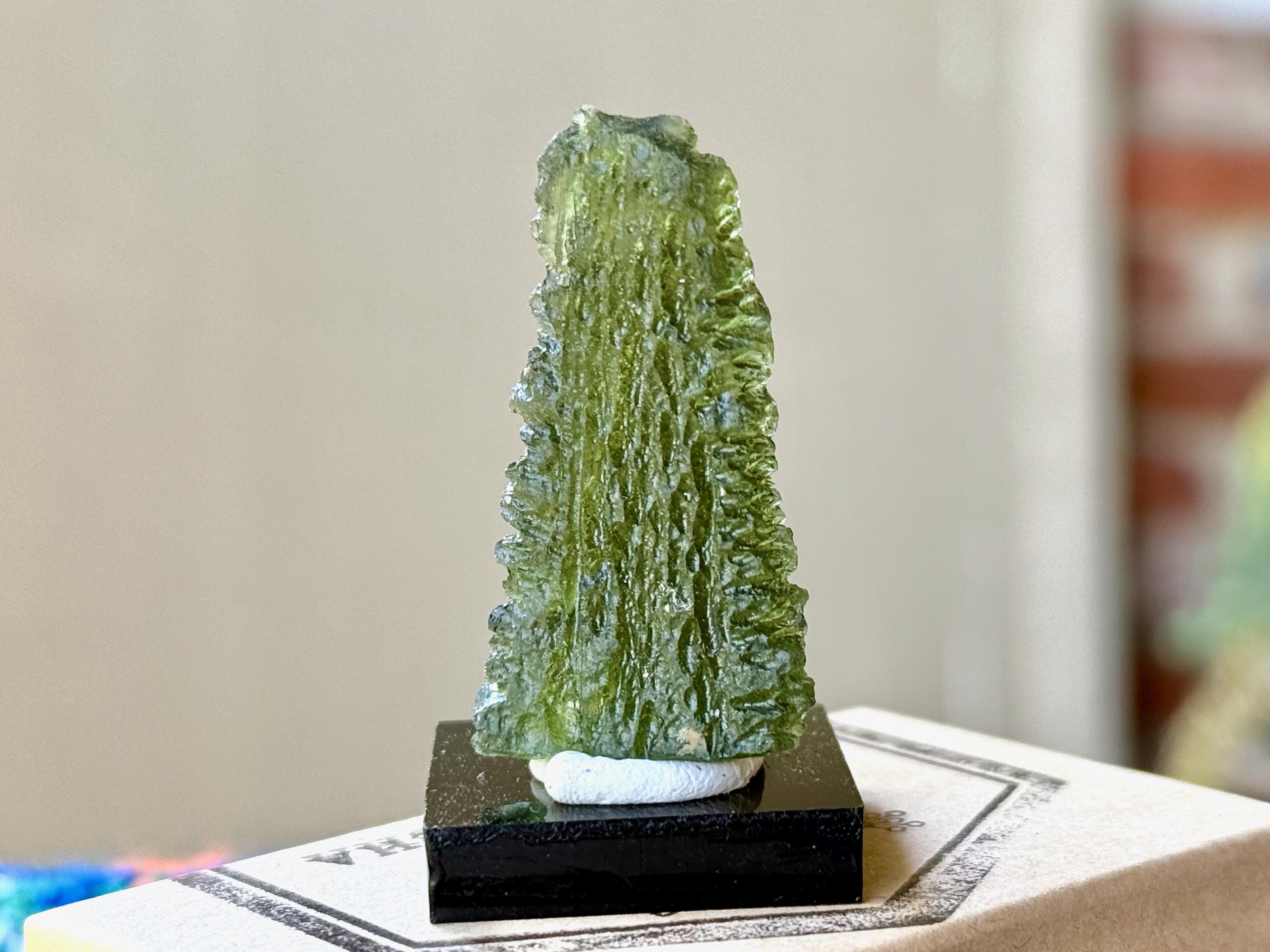This exquisite Moldavite crystal comes from Chlum, Czech Republic. We hand-select our Moldavite directly from the Czech purveyors of this material so we can assure that it is authentic and high-quality.