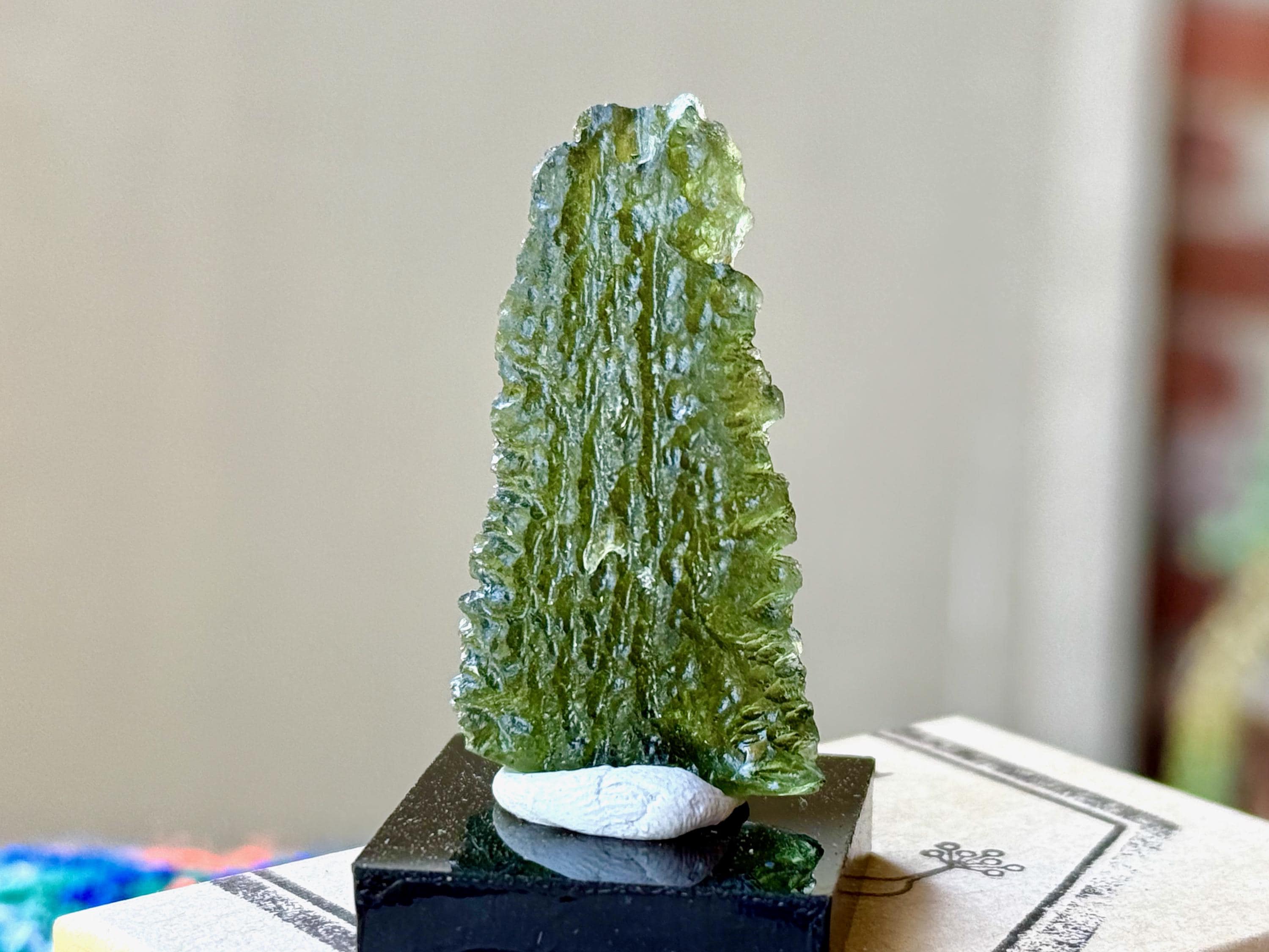 Moldavite carries a unique energy, unlike any other crystal in the mineral kingdom, that fuses the earthly and the extraterrestrial. Because of its unique origin story, Moldavite is considered to be a stone of transformation, bringing about realizations and change in a very rapid, sometimes instantaneous manner.