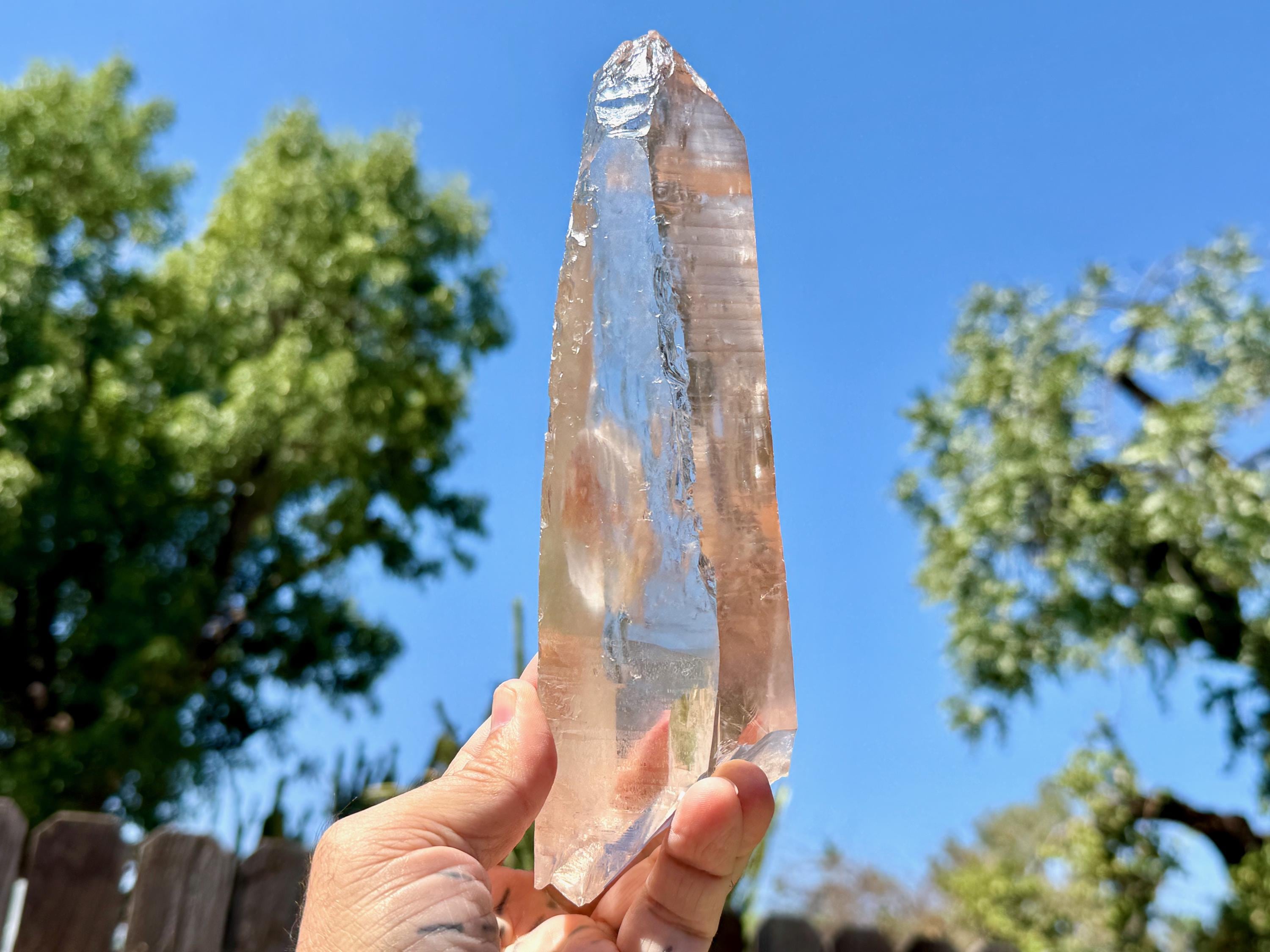 Lemurian Quartz resonates with all chakras, but primarily the Crown Chakra. It has one of the highest vibrations of any crystal and is a beautiful companion for meditation and to realign energies in the body. It can assist in clearing blockages in one's energy field and/or chakras, dispelling heavy energies from the body. If there is stagnant energy in the body, it can help to increase Prana (life force) energy to get things moving properly again. Meditating with Lemurian Crystals can allow us to connect with higher-dimensional spirit guides and connect to Divine realms, as well as to decode the information they contain within.