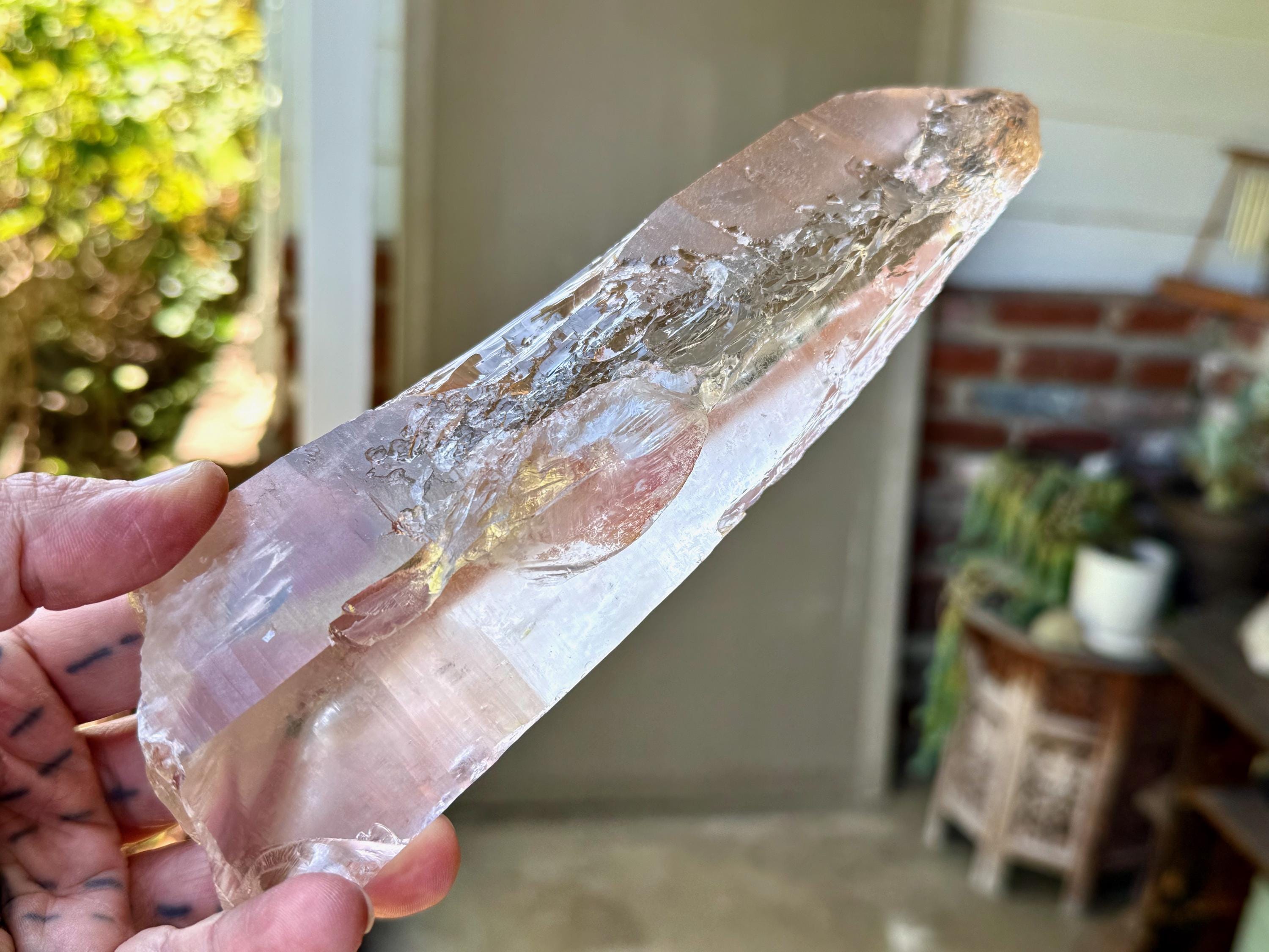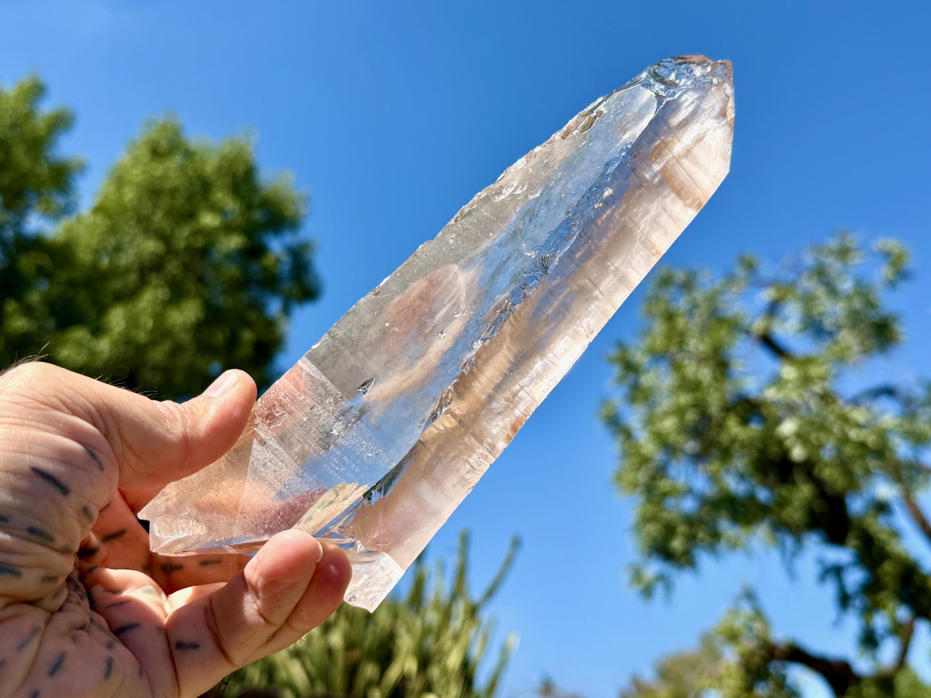 One of the most extraordinary pieces from this small find, this is a massive Pink Lemurian Quartz with extensive Lightning Strike markings!