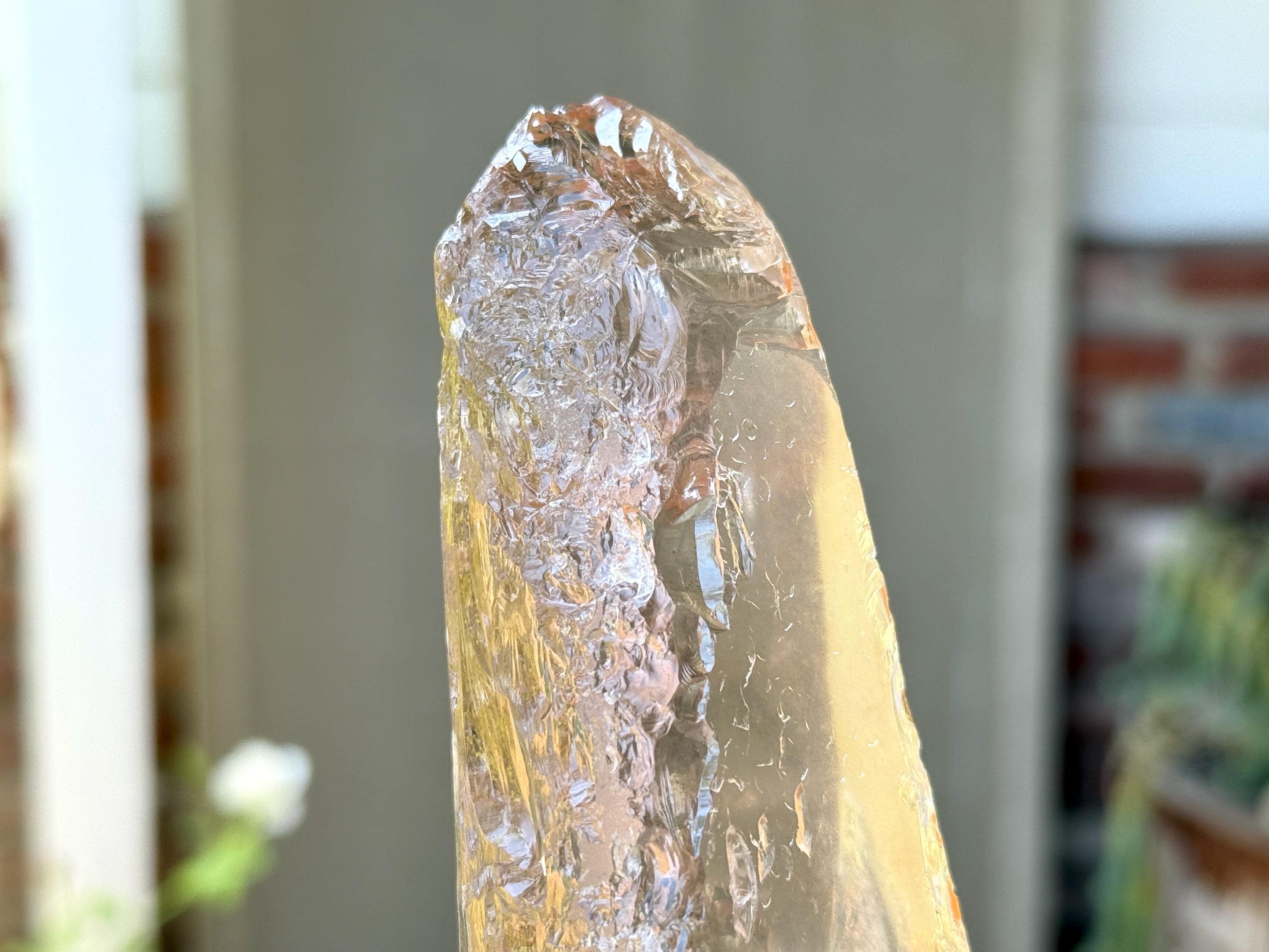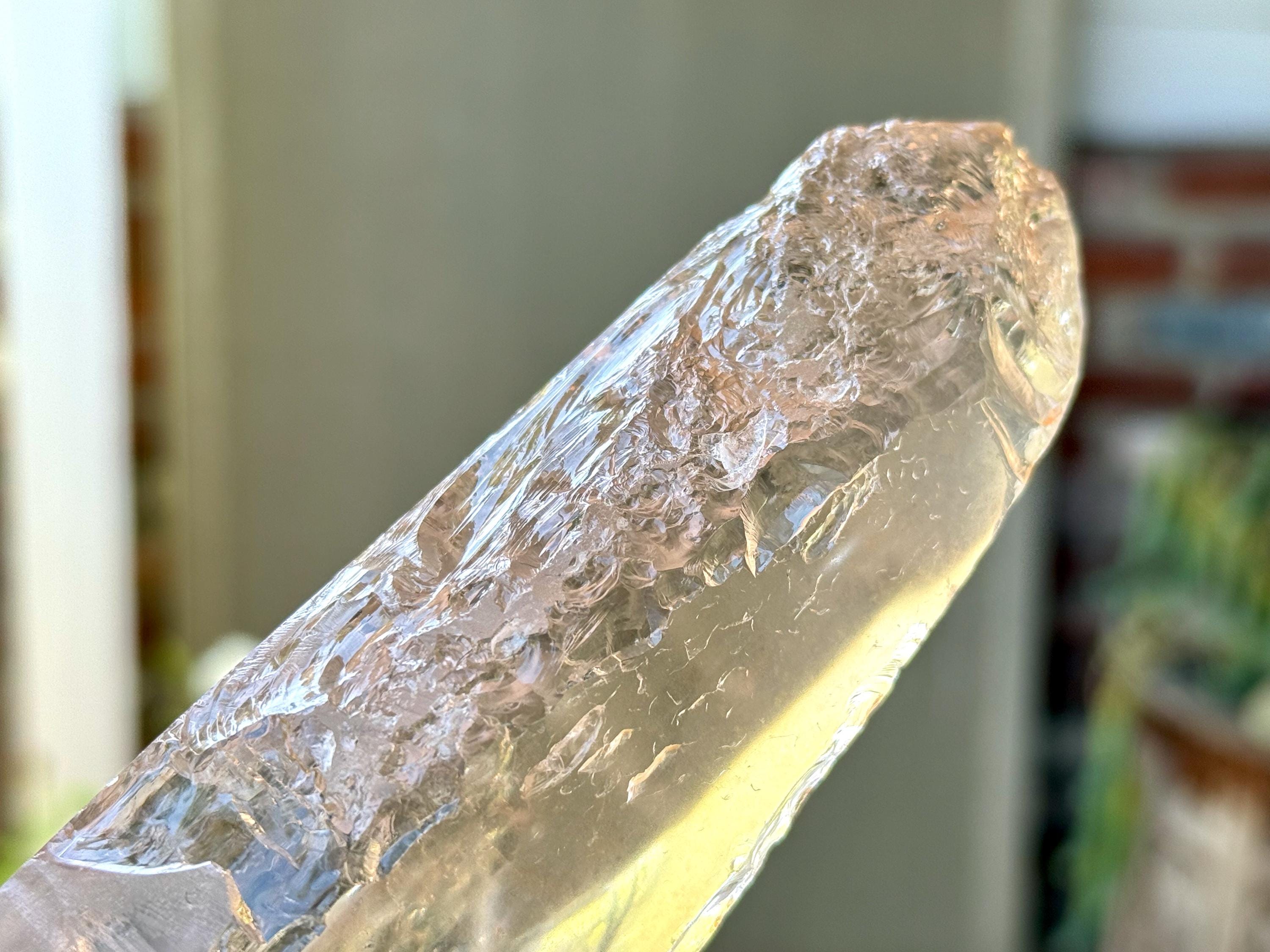 However what is of course most special about this crystal are the massive Lightning Strike indications we see on various areas. These indications possess the jagged "zig-zag" formations that we love to see on these crystals. Some are thin paths that run along the edges of the crystal from base to top. And then there are areas at the top with such broad and powerful impact that they seem to almost have melted the crystal, giving it a more lustrous sheen in these areas (Photos 4-5).