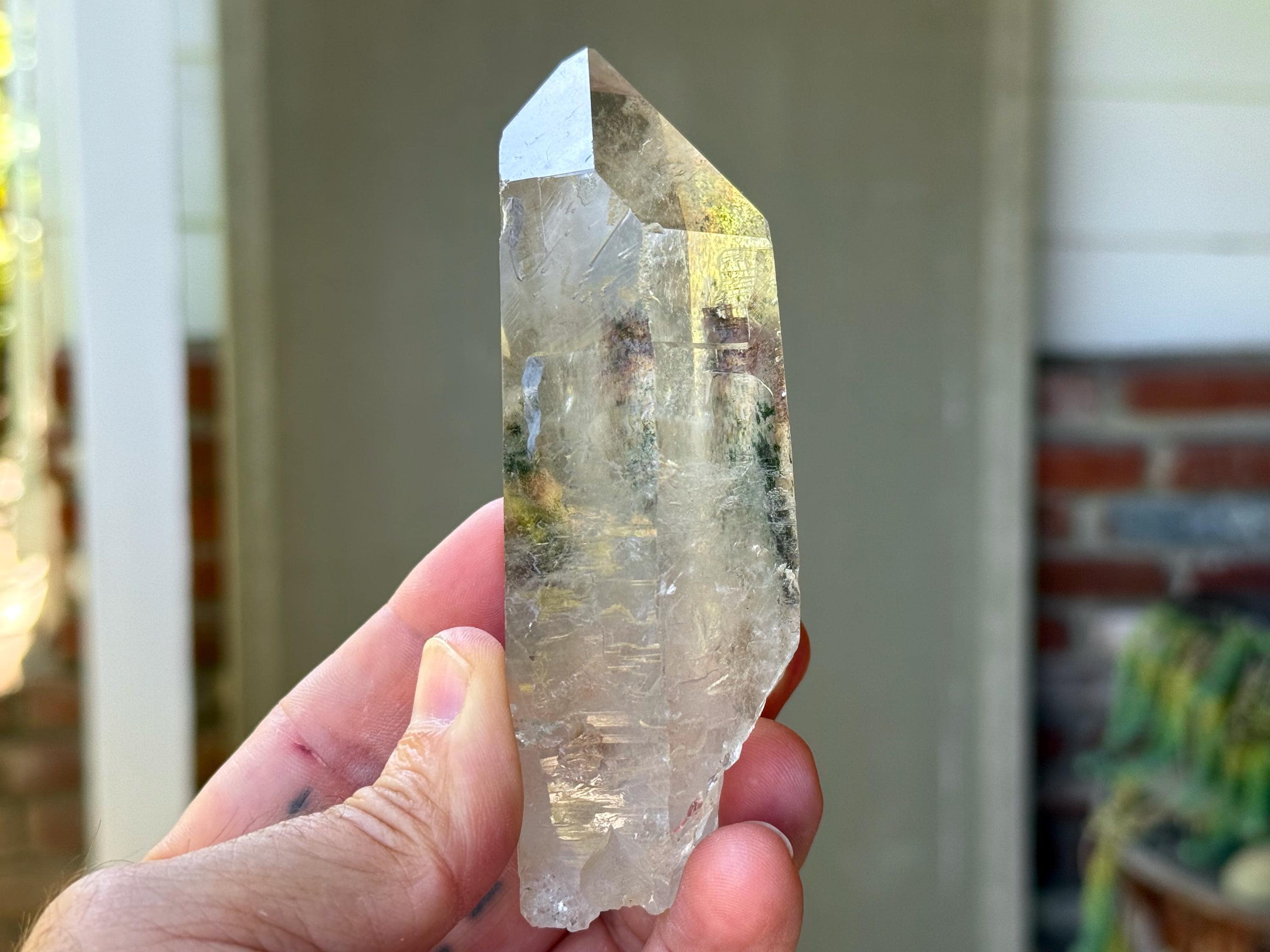This stunning Green Chlorite Phantom Quartz crystal comes from Corinto, Minas Gerais, Brazil. Green Chlorite is considered to be one of the most profound purifiers, heart-healers and heart openers in the mineral kingdom.