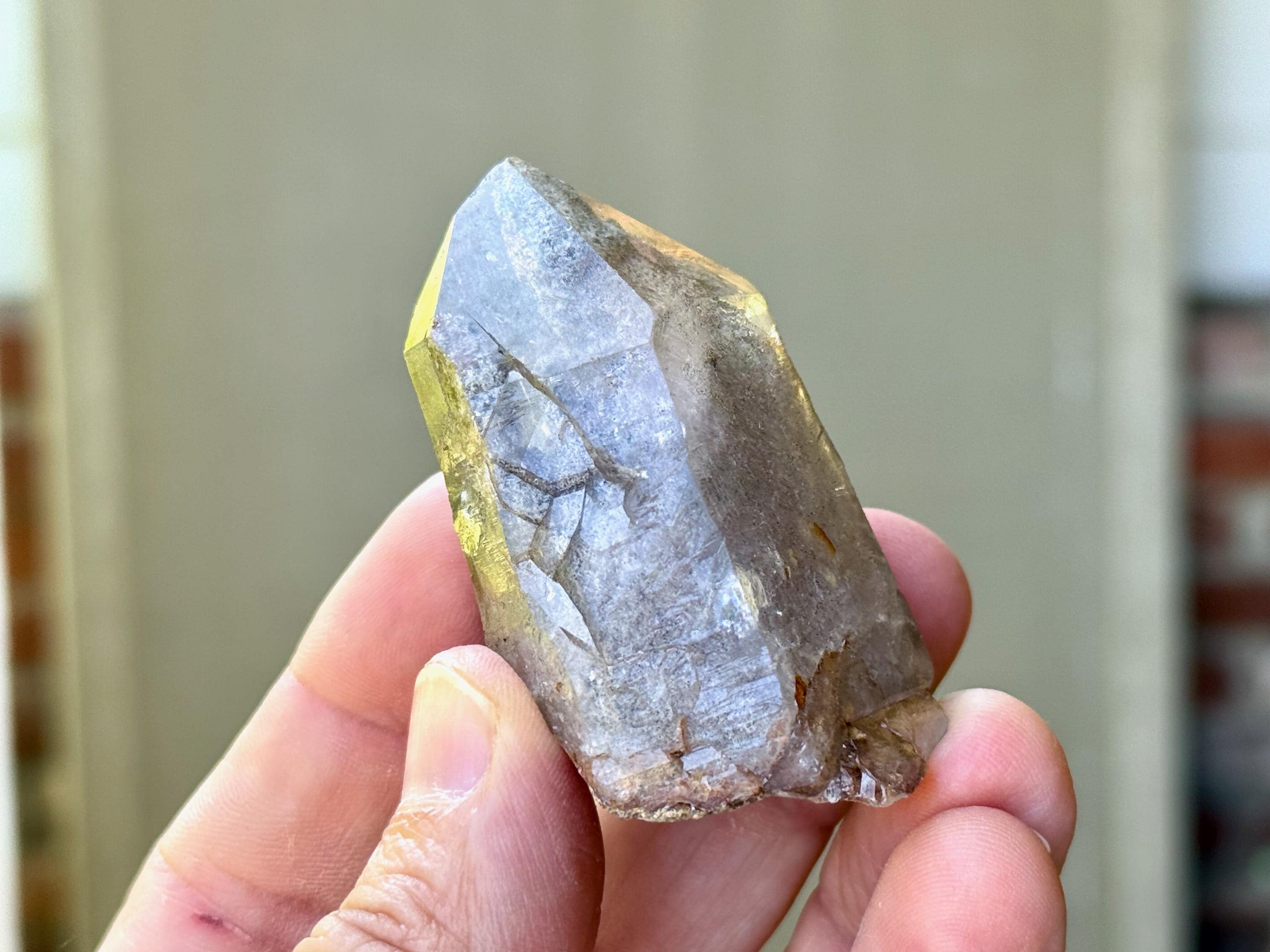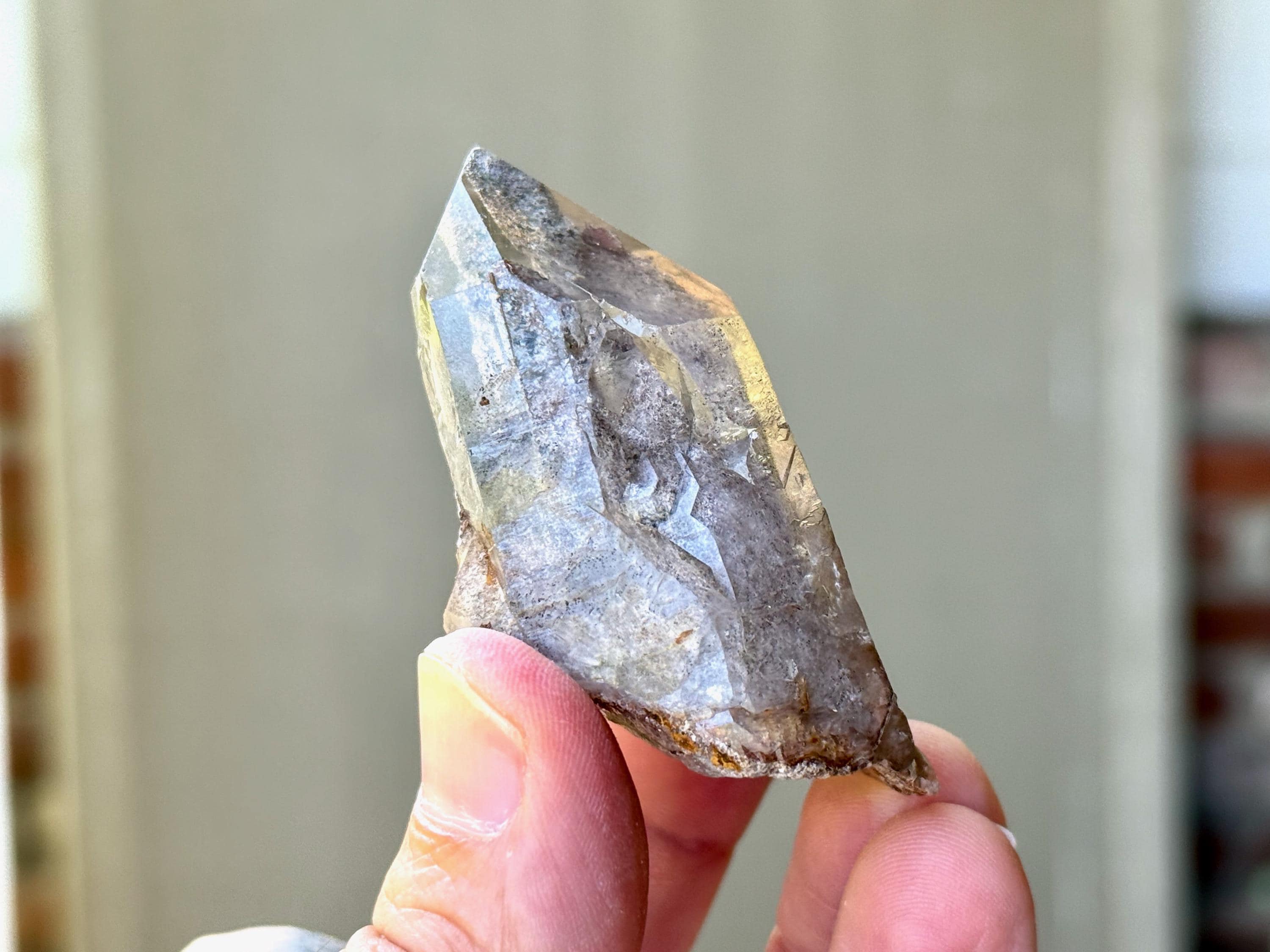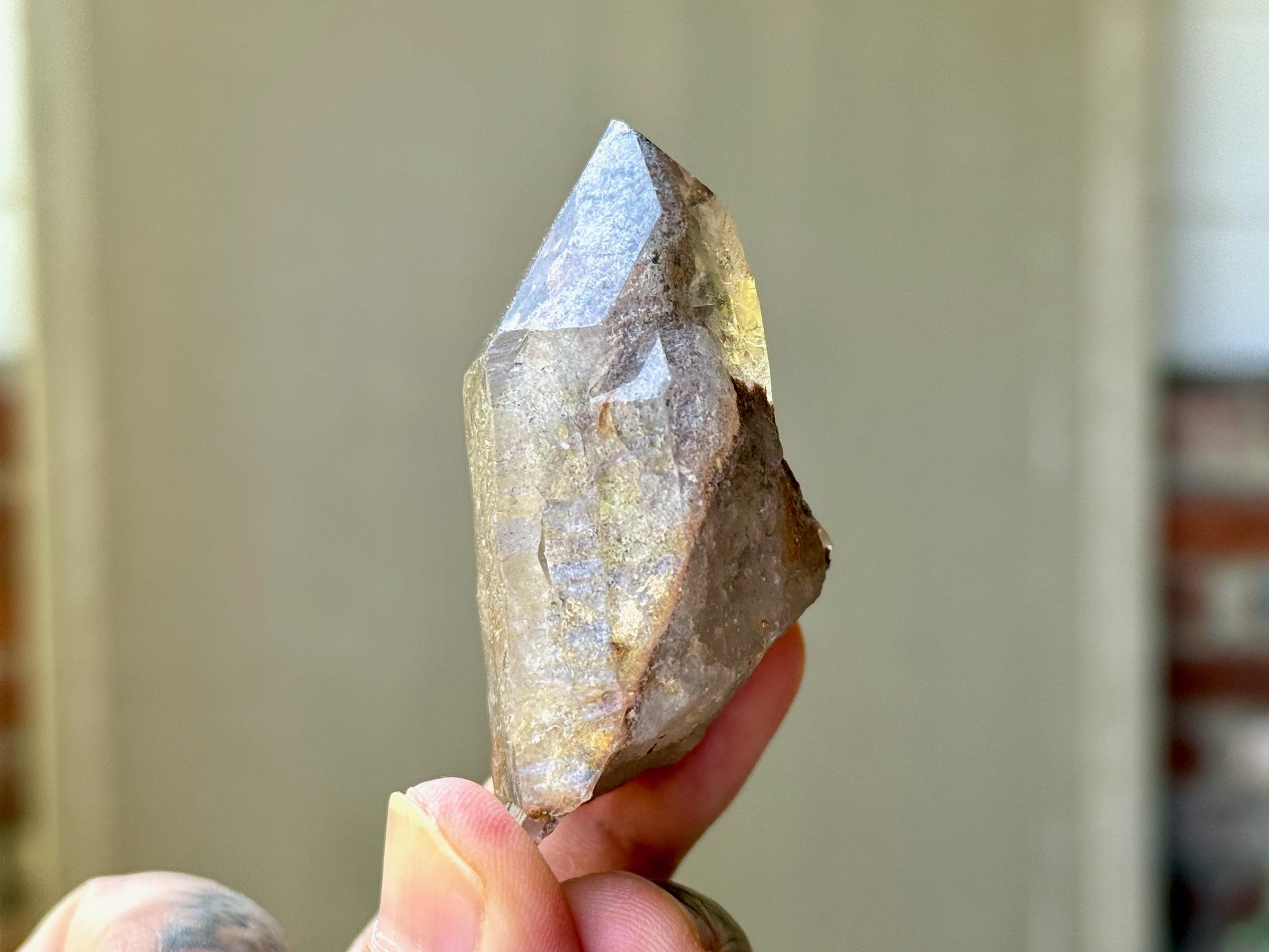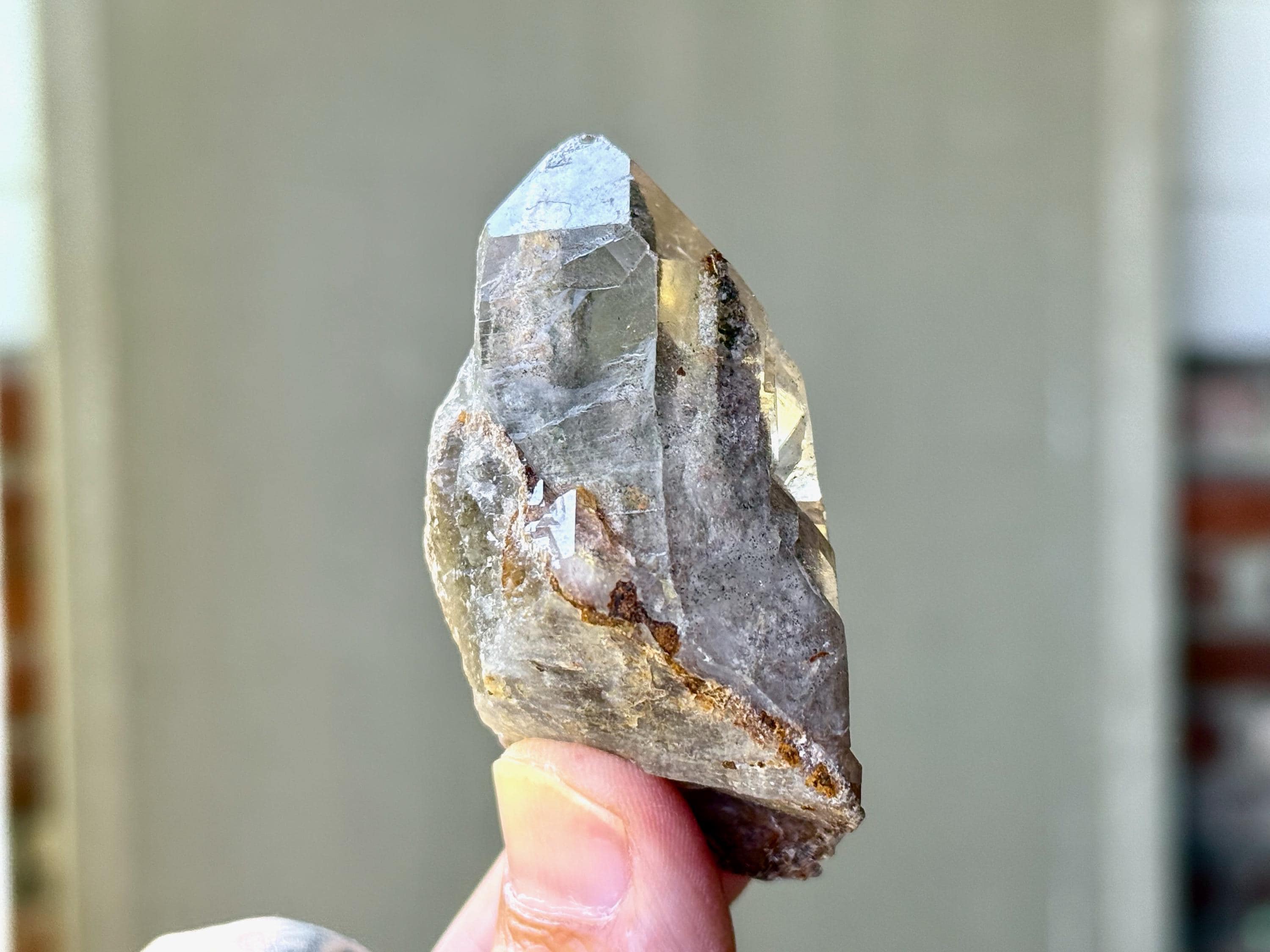 Outstanding clarity to this beautiful Smoky Lodolite Quartz crystal with a mild smoky hue and mossy inclusions of white and pale purple Lodolite within. The clarity of the exterior allows us to peer inside and enjoy all these inclusions. The luster is wonderful and the termination is excellent.
