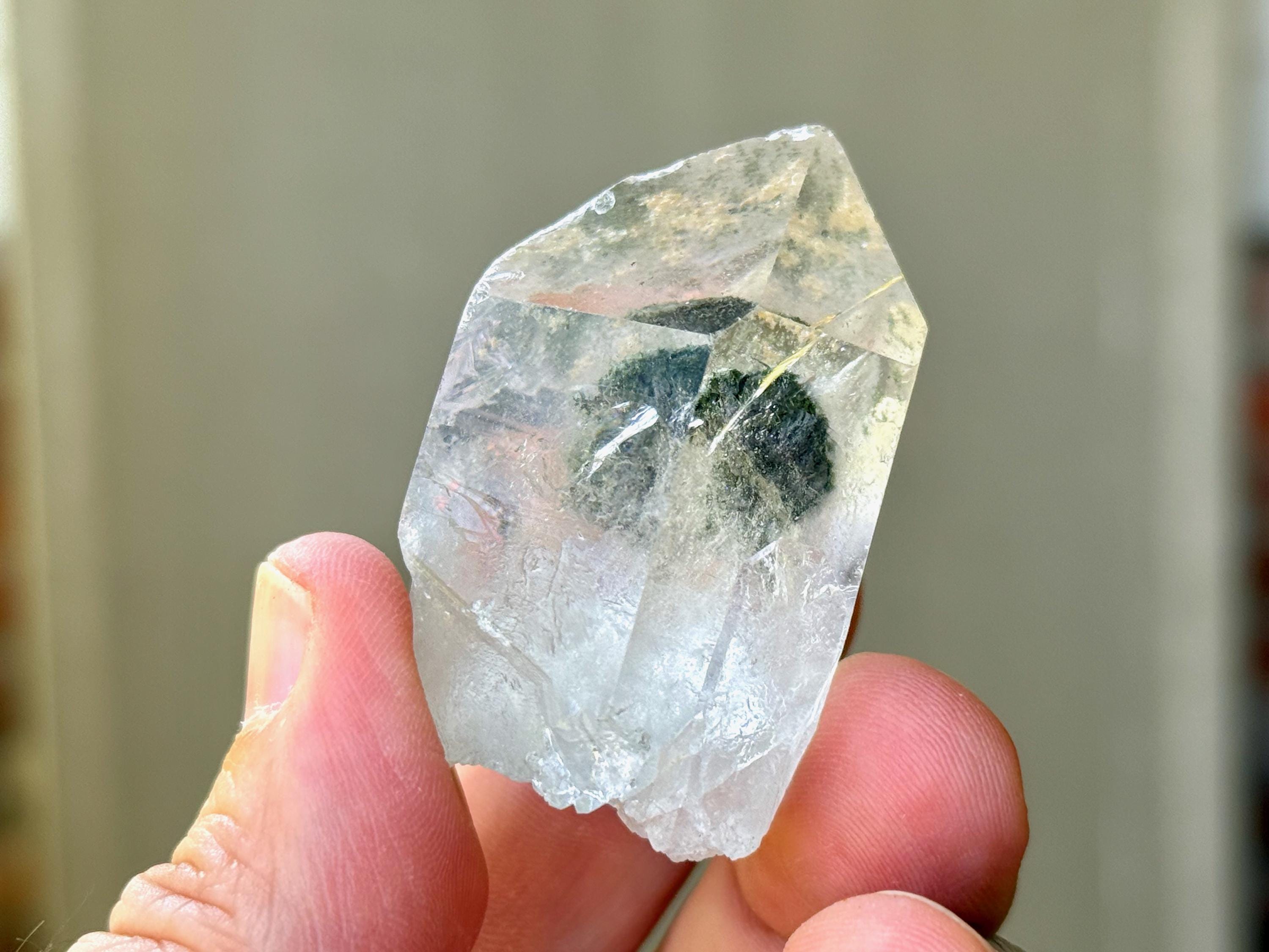 This natural Green Chlorite Phantom Quartz crystal comes from Corinto, Minas Gerais, Brazil. Green Chlorite is considered to be one of the most profound purifiers, heart-healers and heart openers in the mineral kingdom.