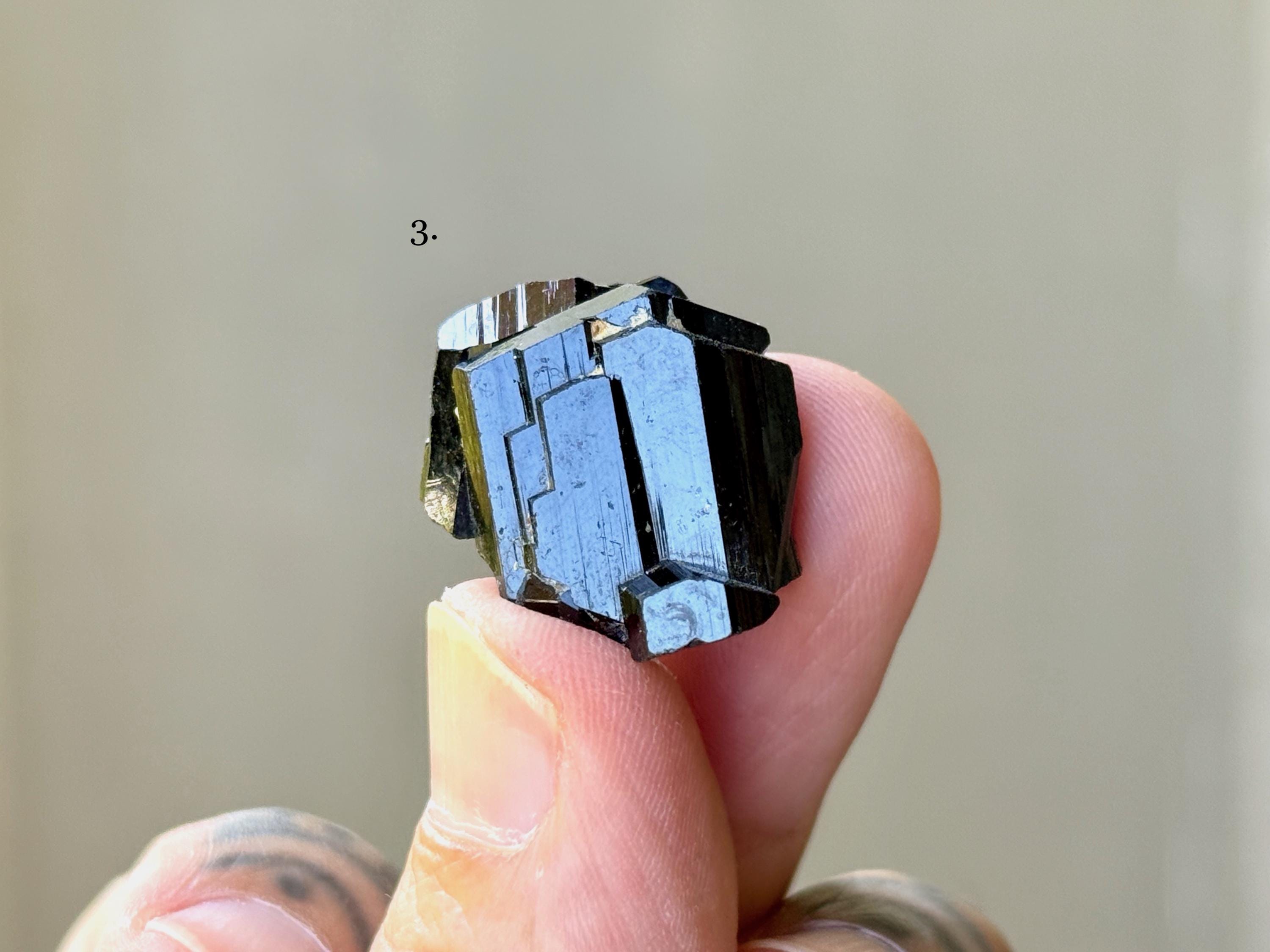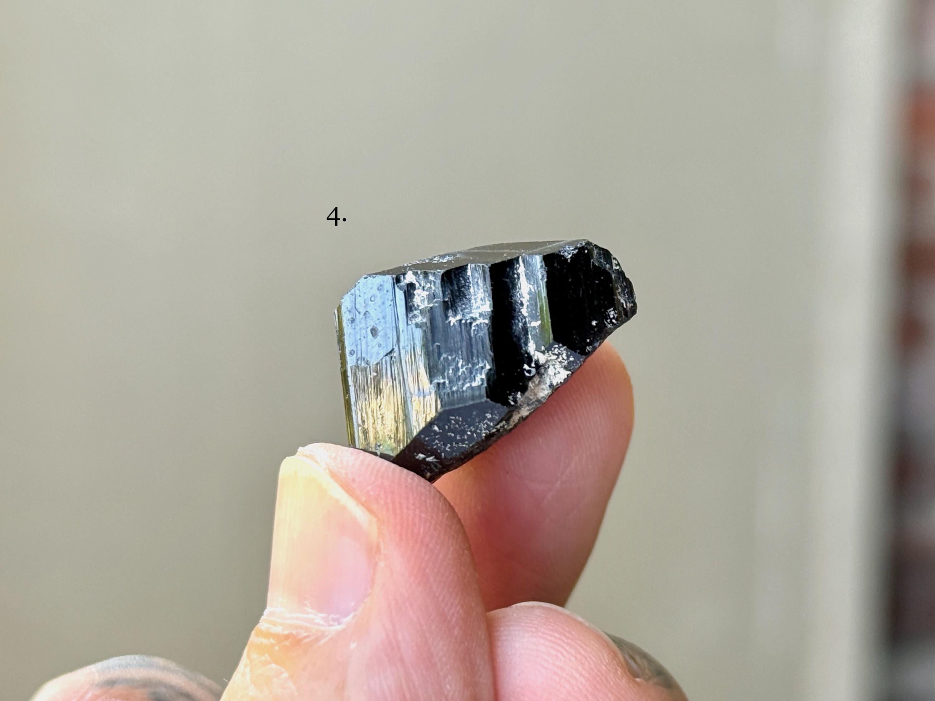 These exquisite Black Tourmalines come from a recent find in the Erongo Mountain of Namibia. Each selection is numbered, simply select your preference from the dropdown menu.