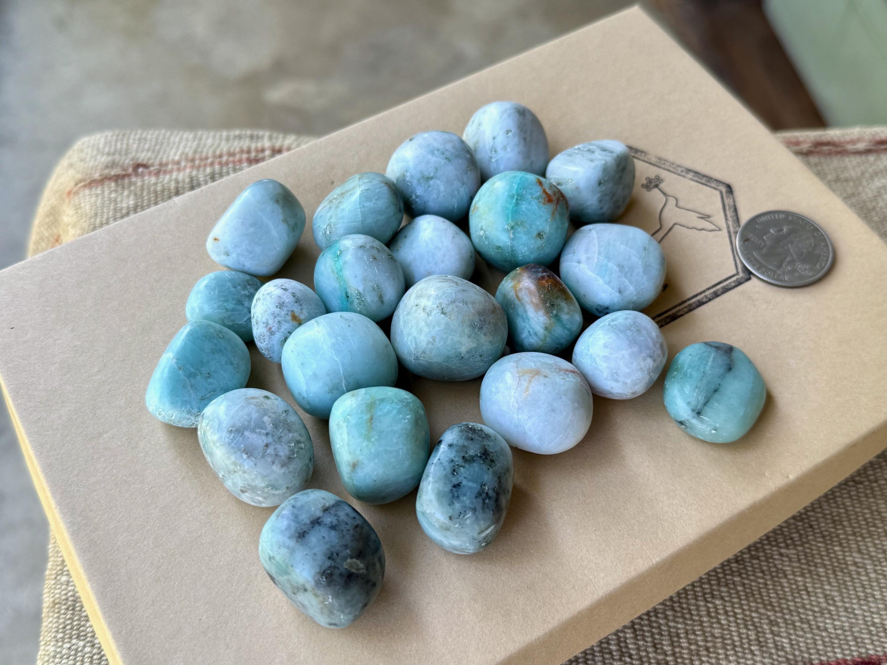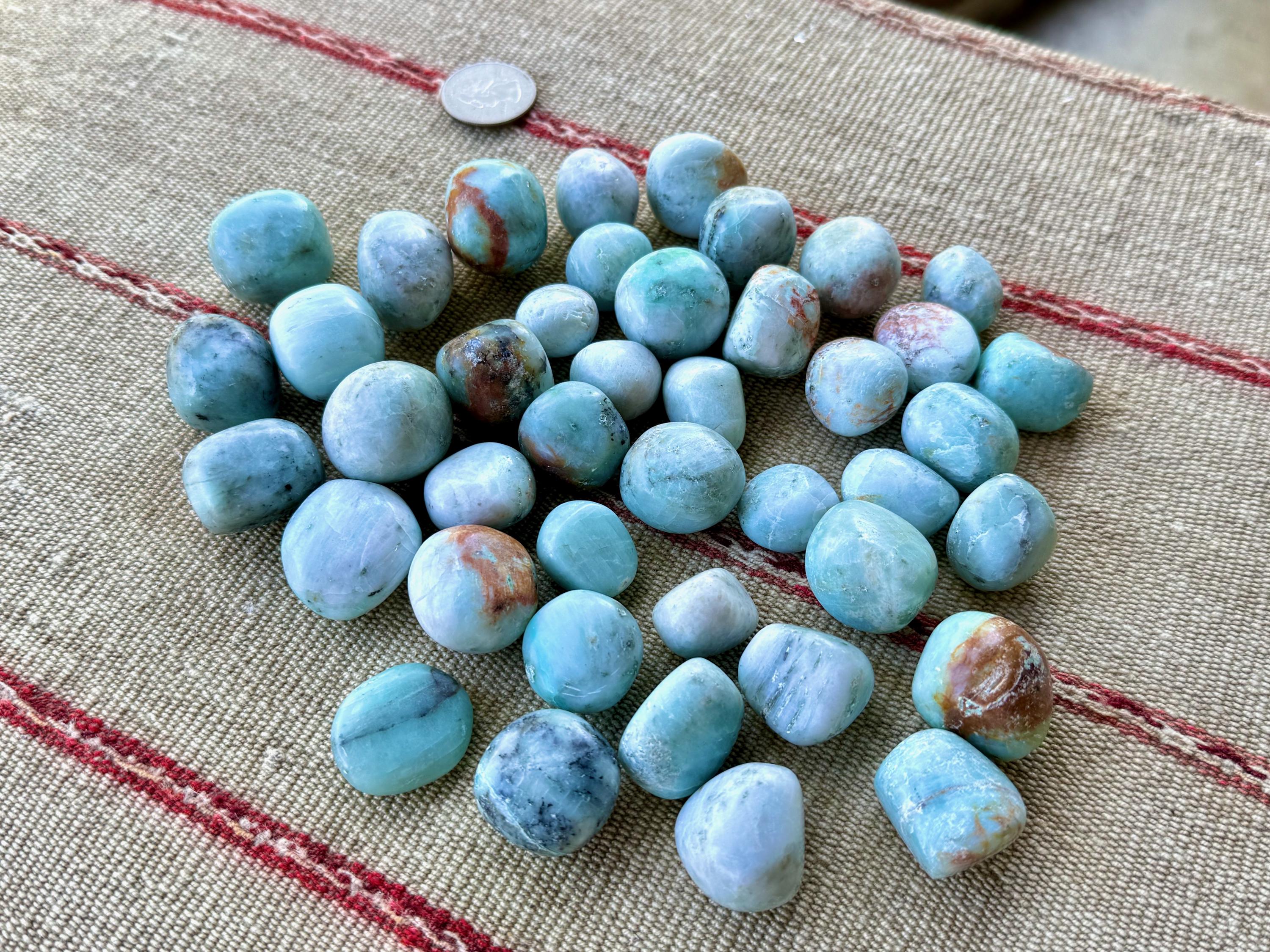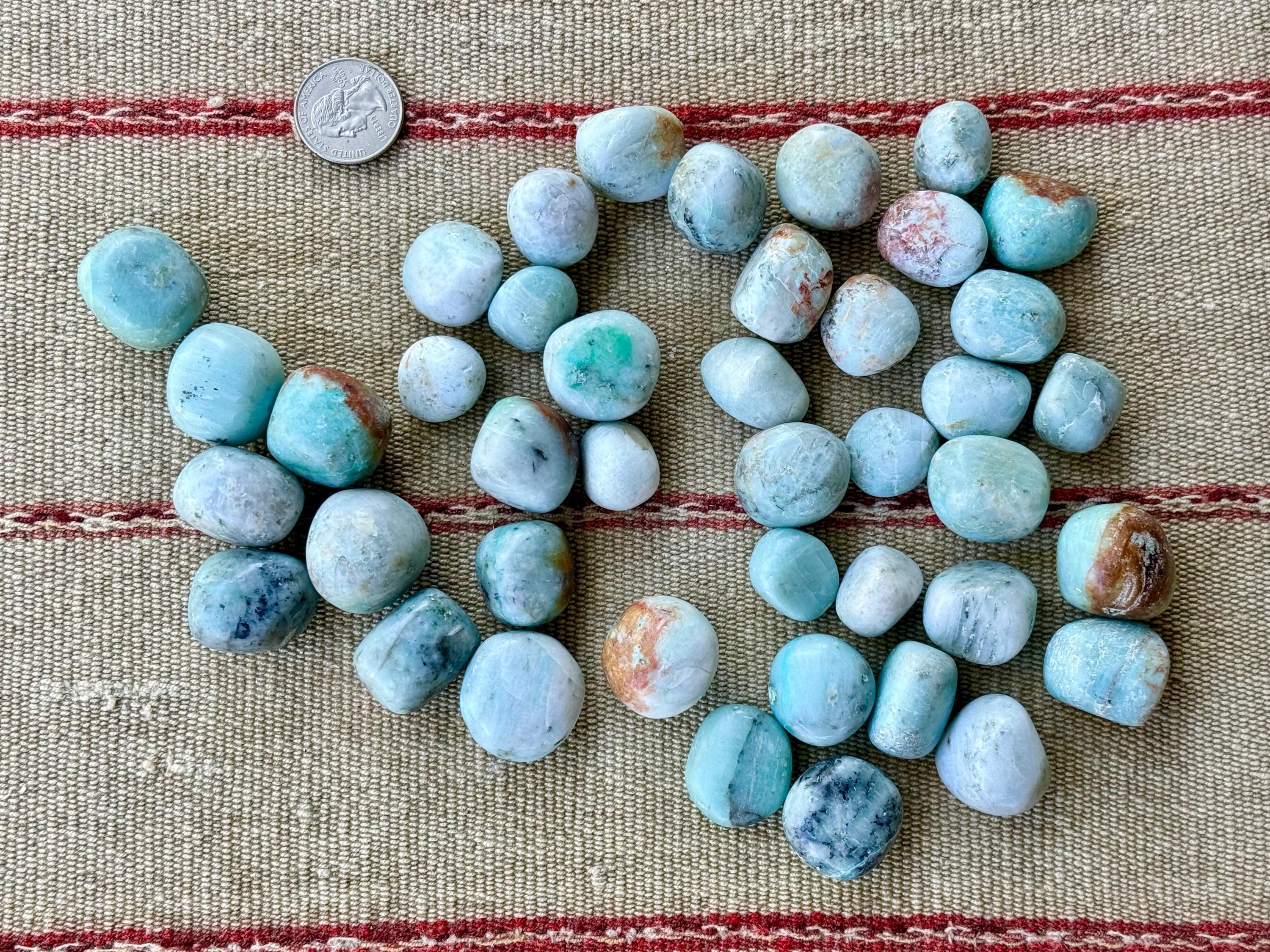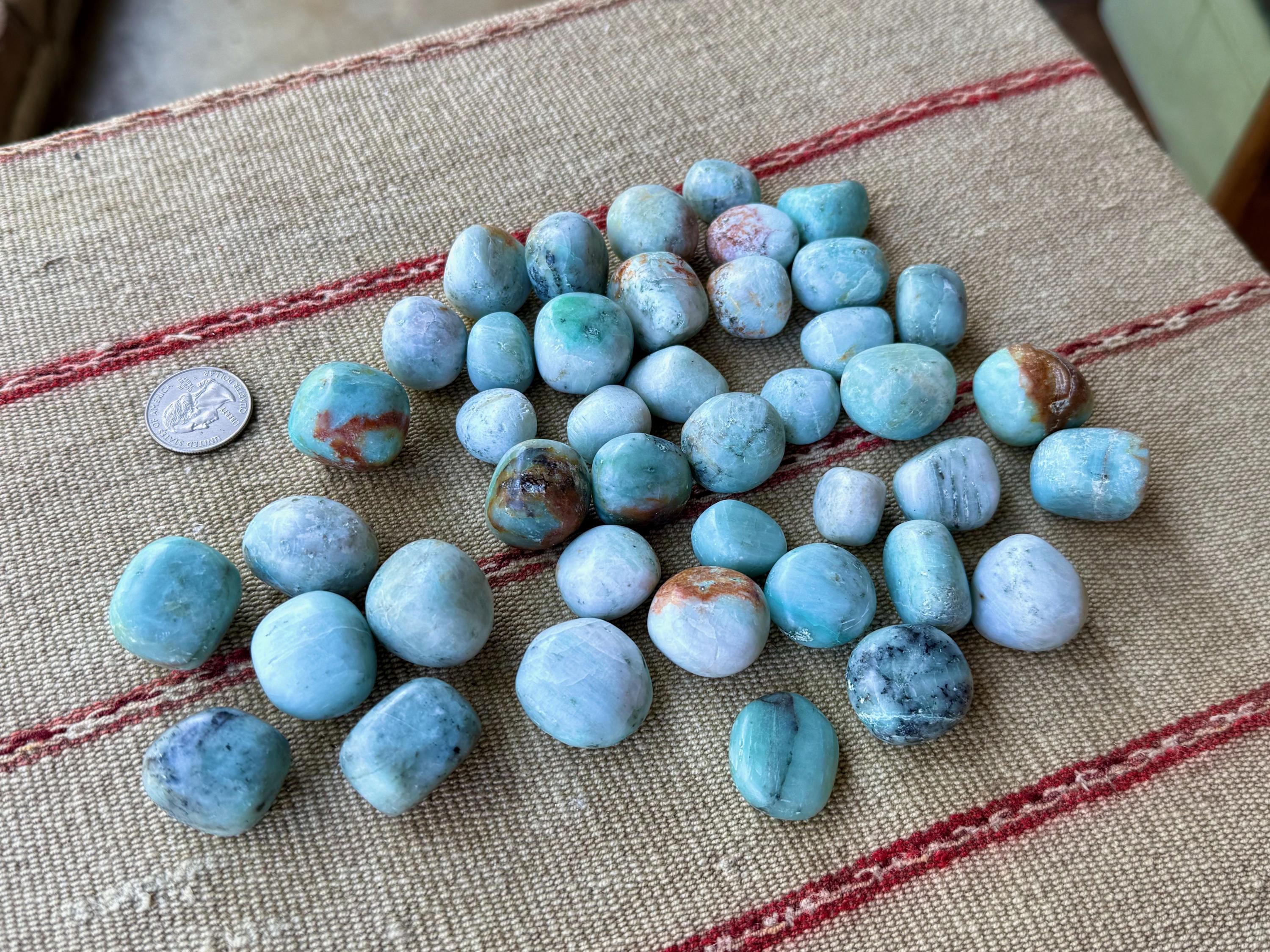 These Andean Blue Opal tumbles come from Peru. A variety of sizes are available, simply select the size(s) and quantity you'd like from the dropdown menu.