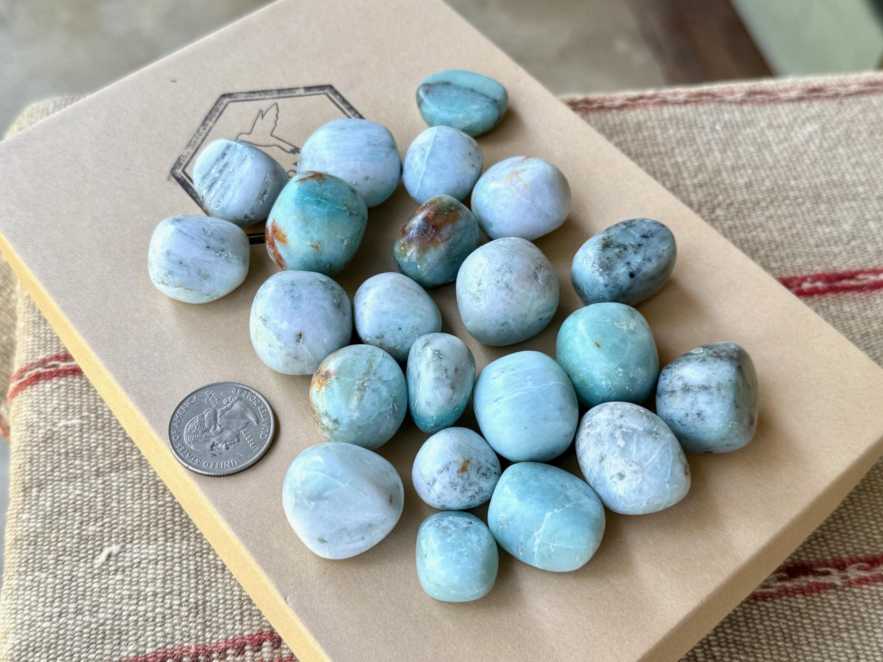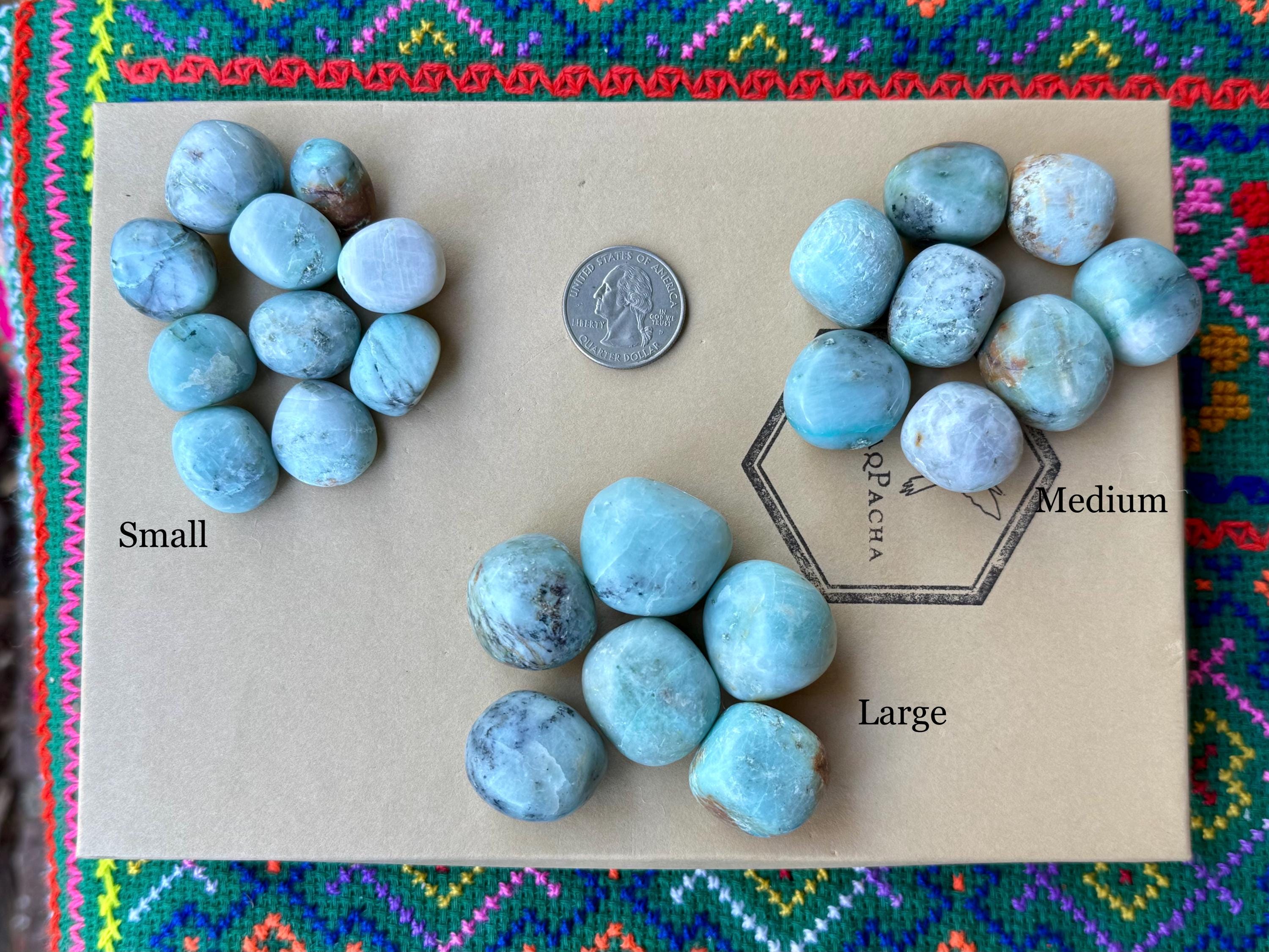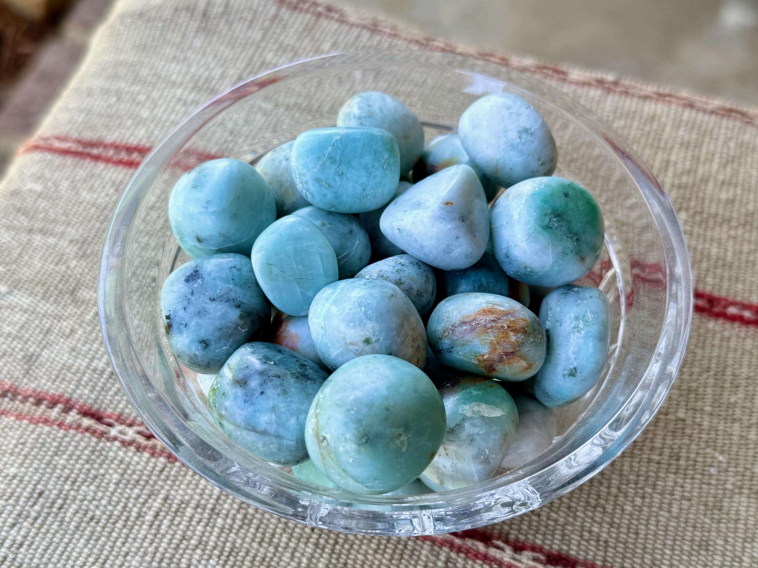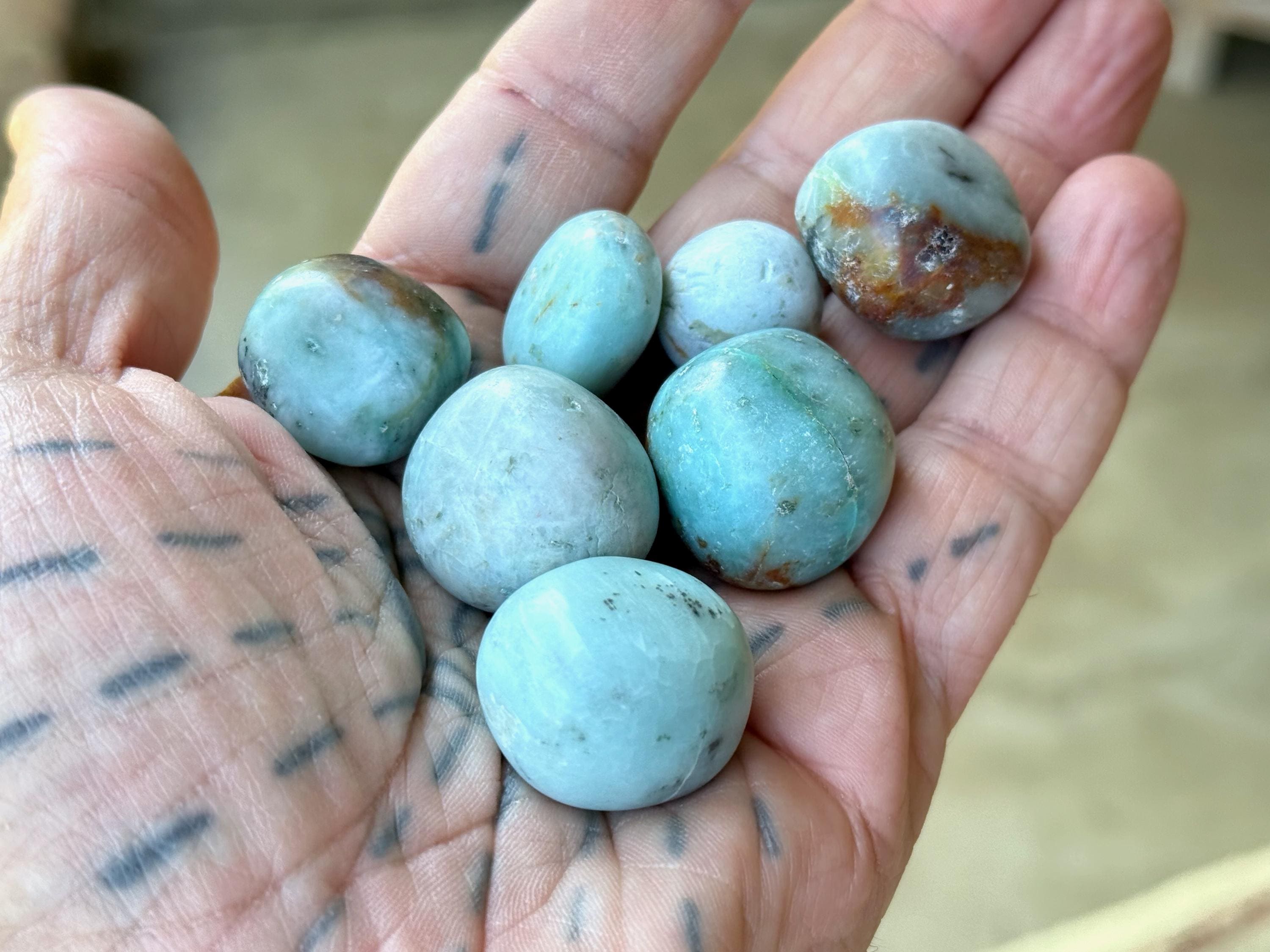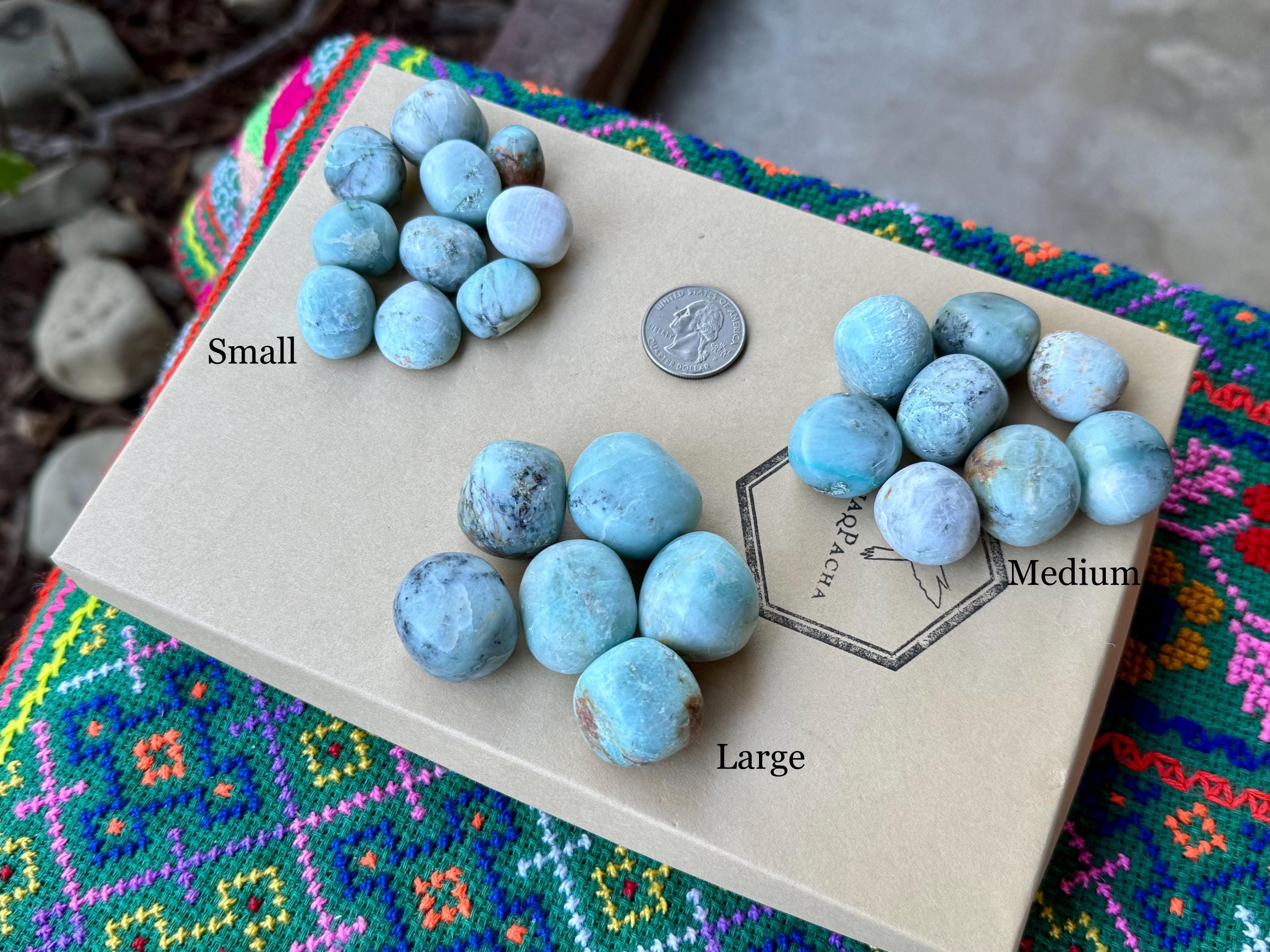 These Andean Blue Opal tumbles come from Peru. A variety of sizes are available, simply select the size(s) and quantity you'd like from the dropdown menu.