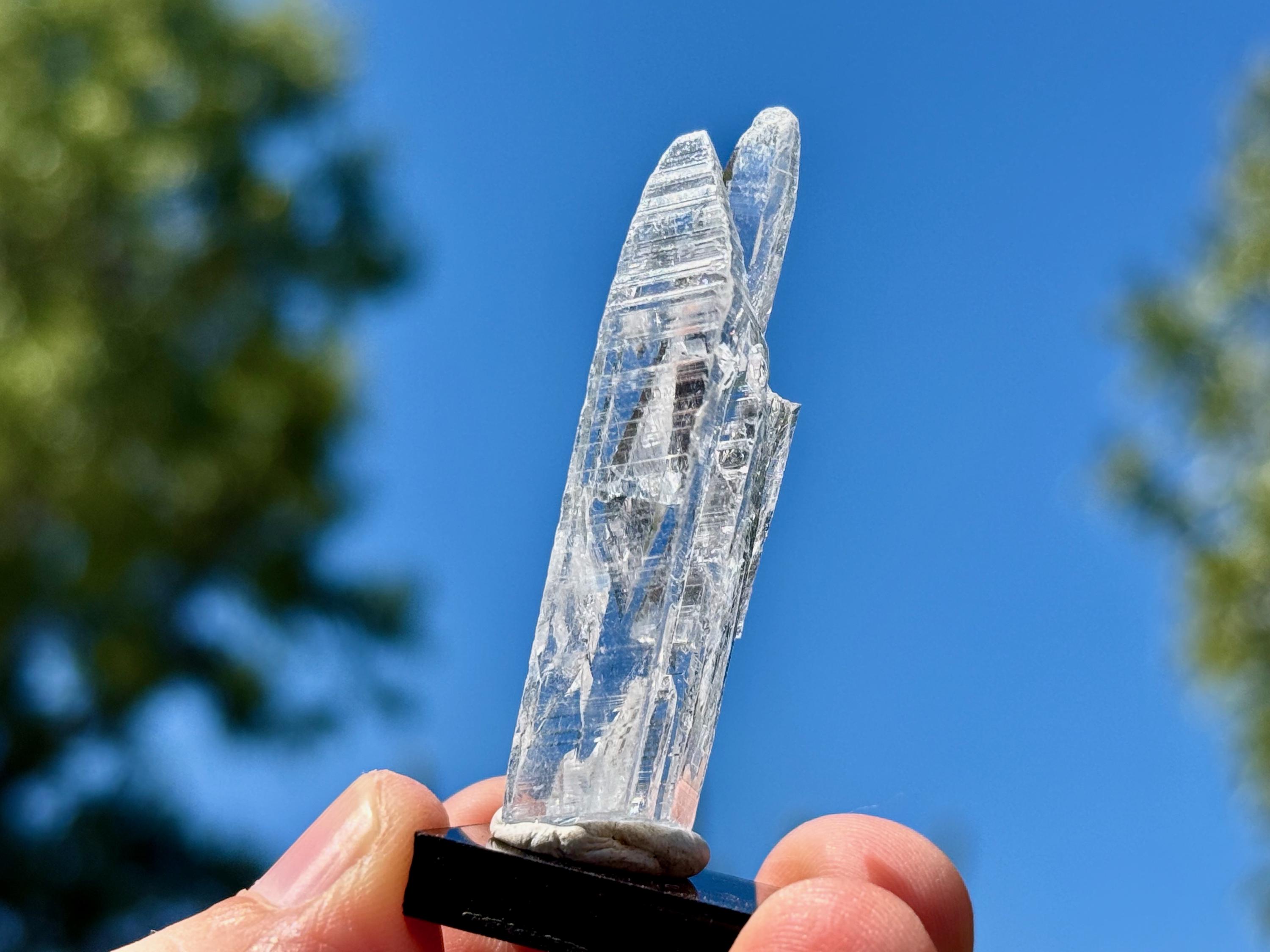 This crystal is Double Terminated with with a natural "point" termination on top and a flat "cleaved" termination at the base. One of the nicest pieces from this collection we've seen so far.