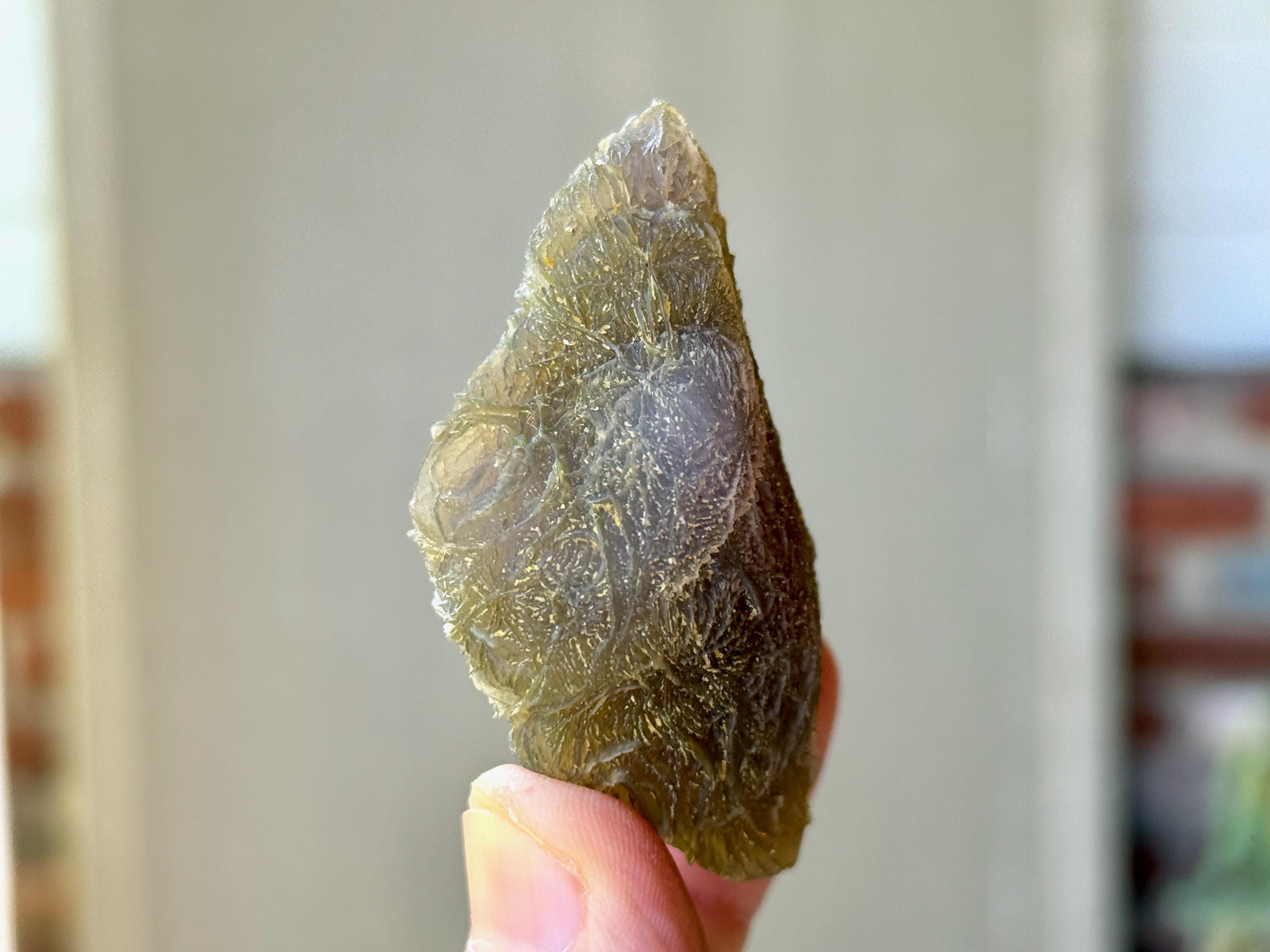 Magnificent patterns and fossilized imprints cover this extraordinary Black Mountain Gobi! In natural light, this stone has a greenish-black color with intricate patterning throughout. When backlit, however, this stone lights up brilliantly! (Photos 1, 3-4). One of the finest pieces from this collection.