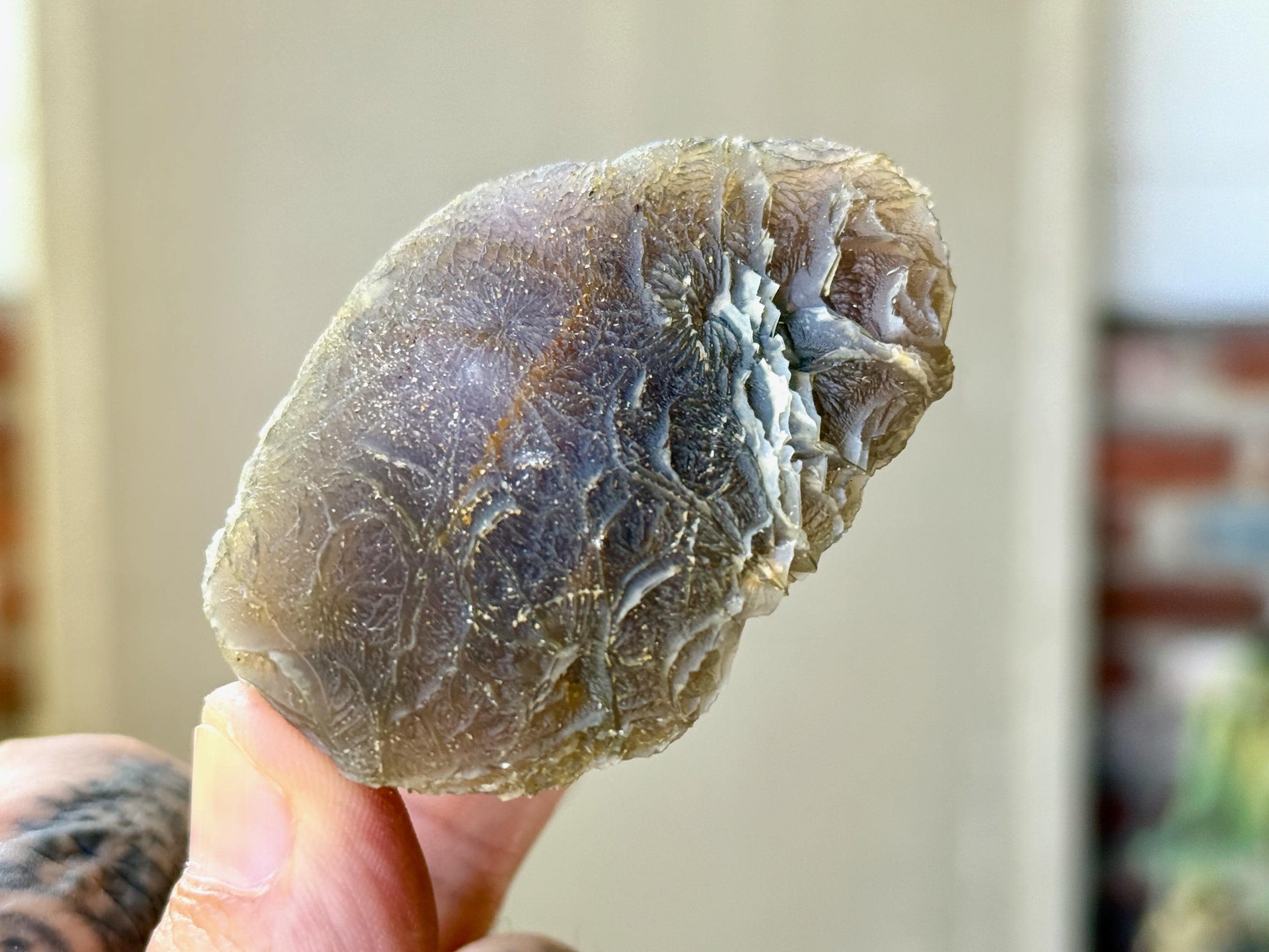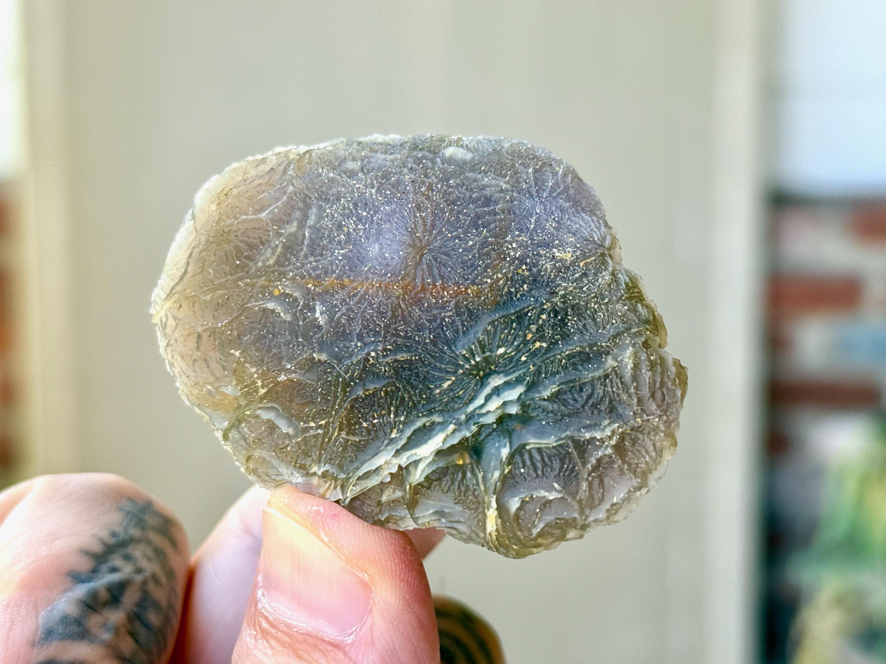 From our source, we believe that these Agates are actually Fossilized (or Agatized) Coral, as the region in which they were discovered was once submerged in a giant mountain lake hundreds of millions of years ago. They may also contain elements of Quartz or Chalecodony.