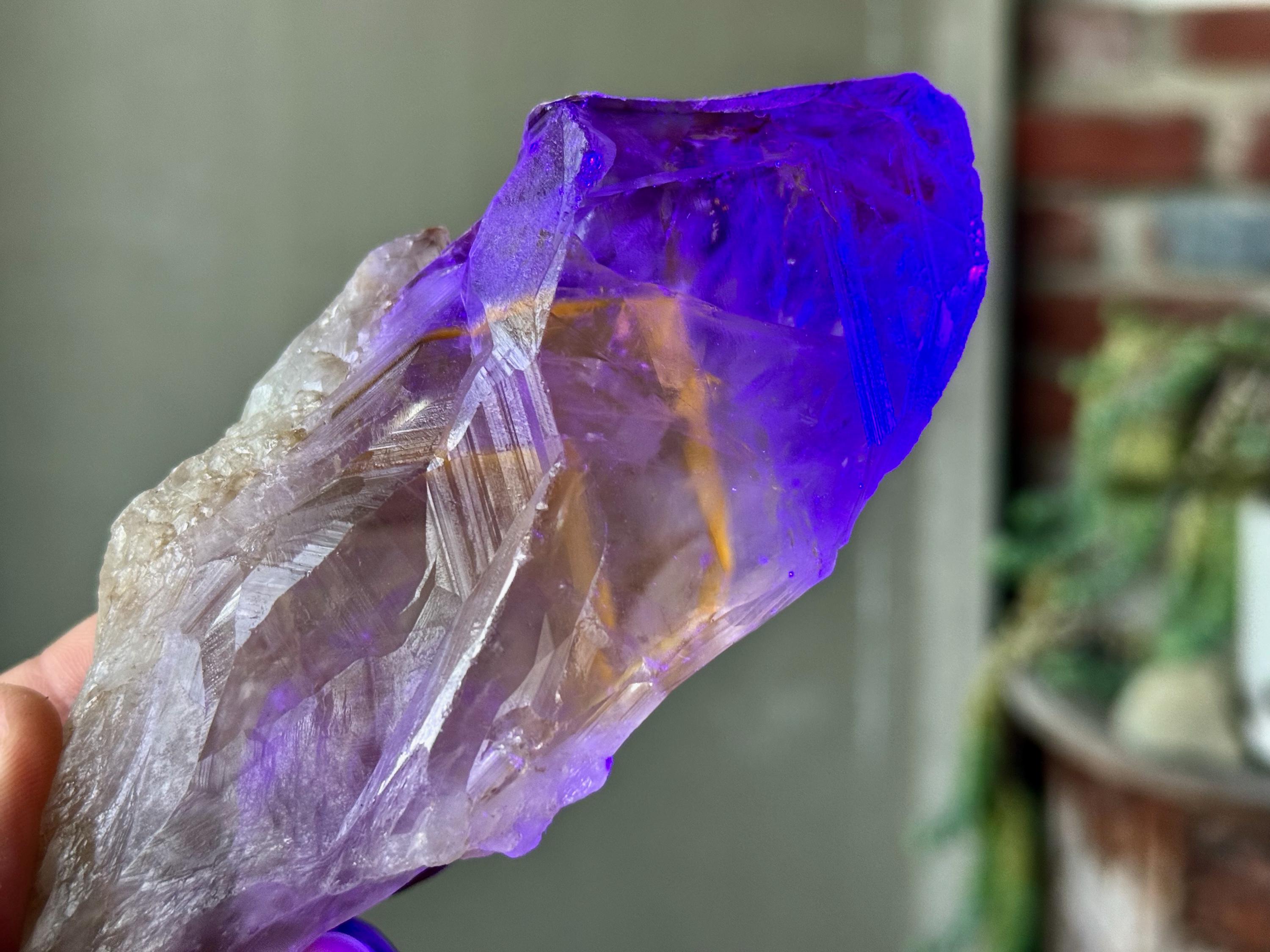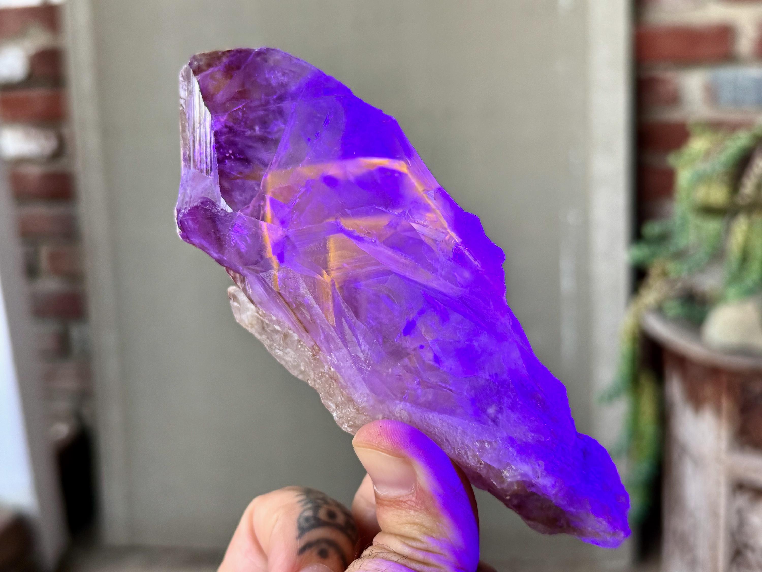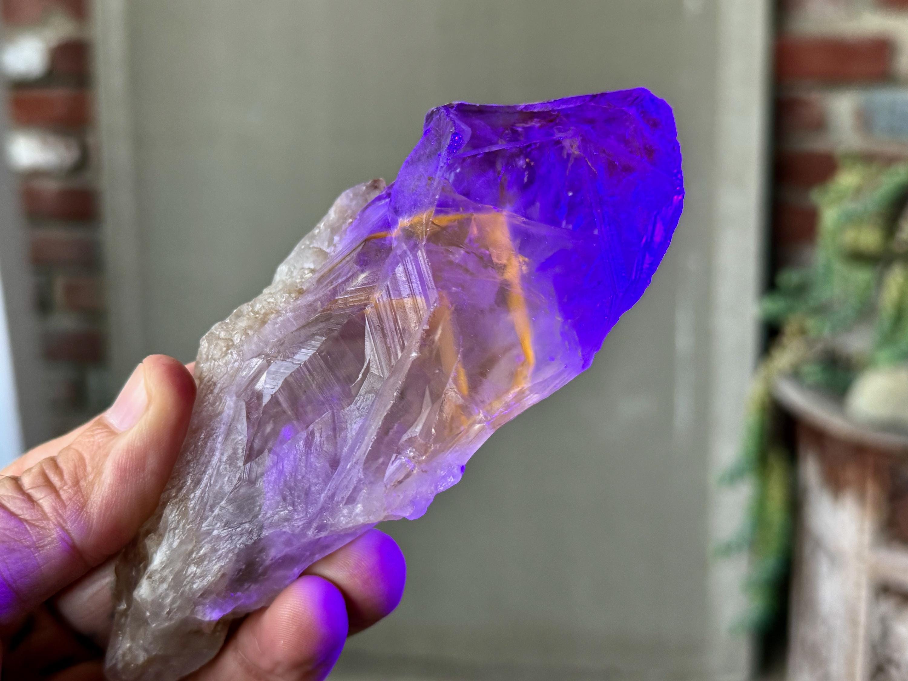 **Please note, the inclusions in this crystal are all natural/untreated. A UV light is necessary to see the phantoms glow, and they can be found affordably at Amazon or any other online outlet.