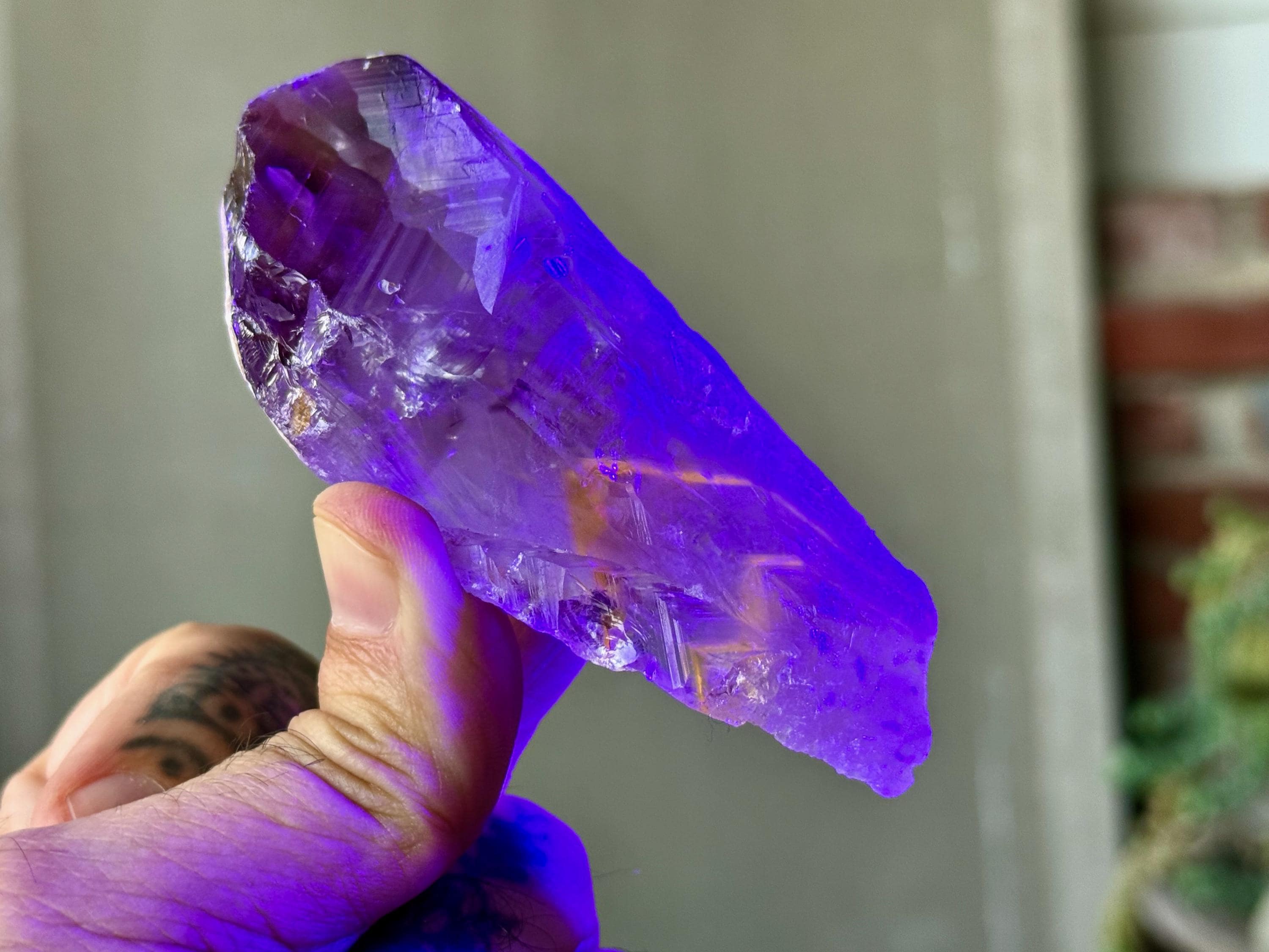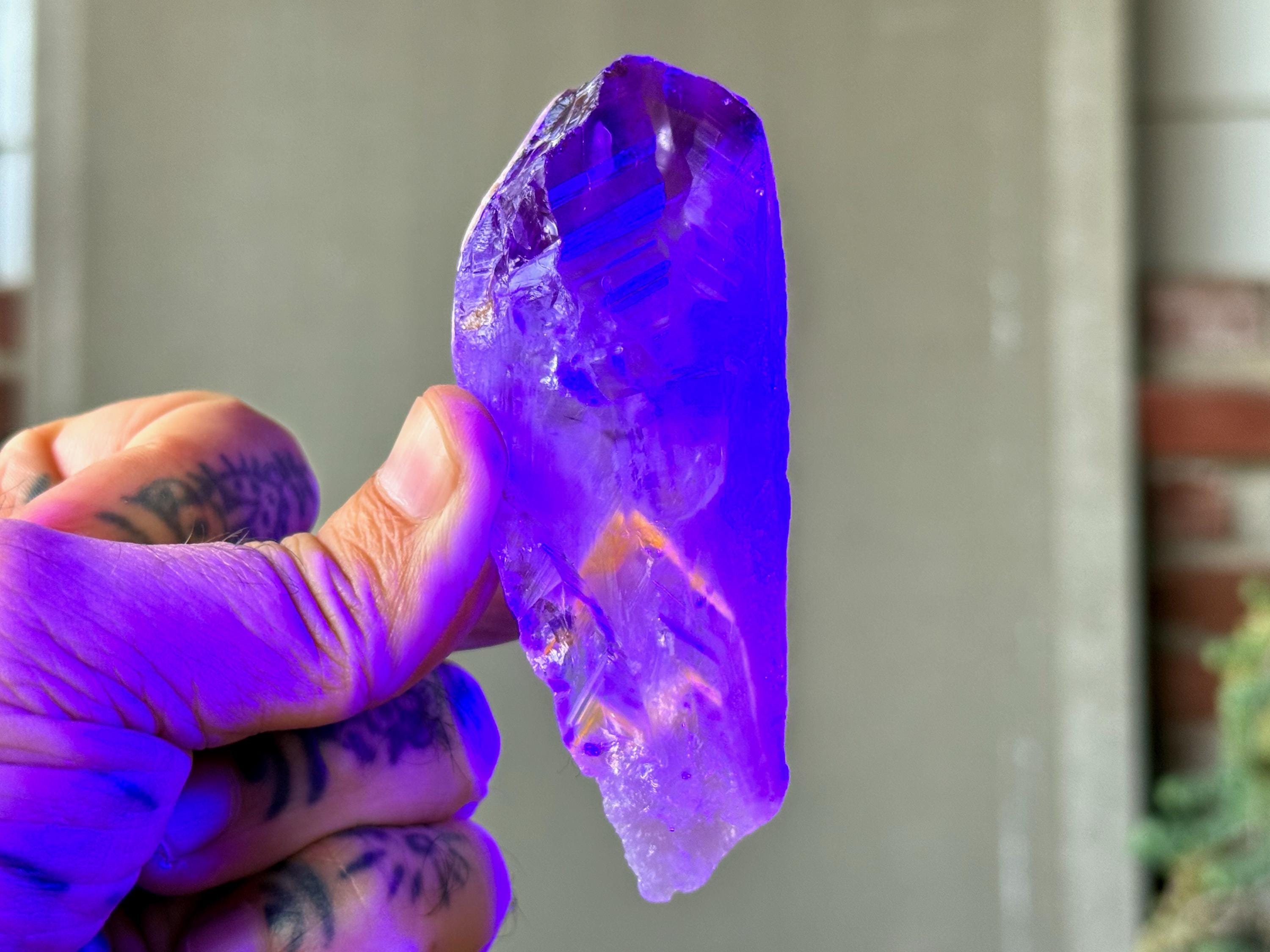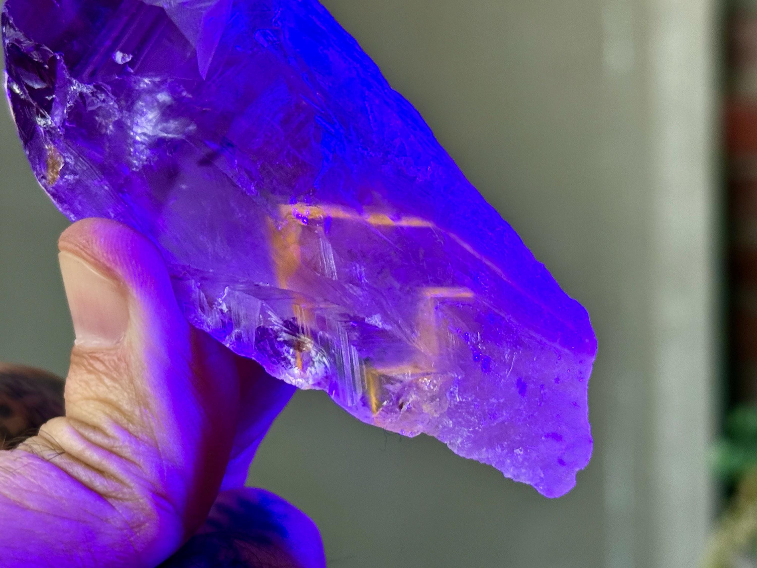 **Please note, the inclusions in this crystal are all natural/untreated. A UV light is necessary to see the phantoms glow, and they can be found affordably at Amazon or any other online outlet.