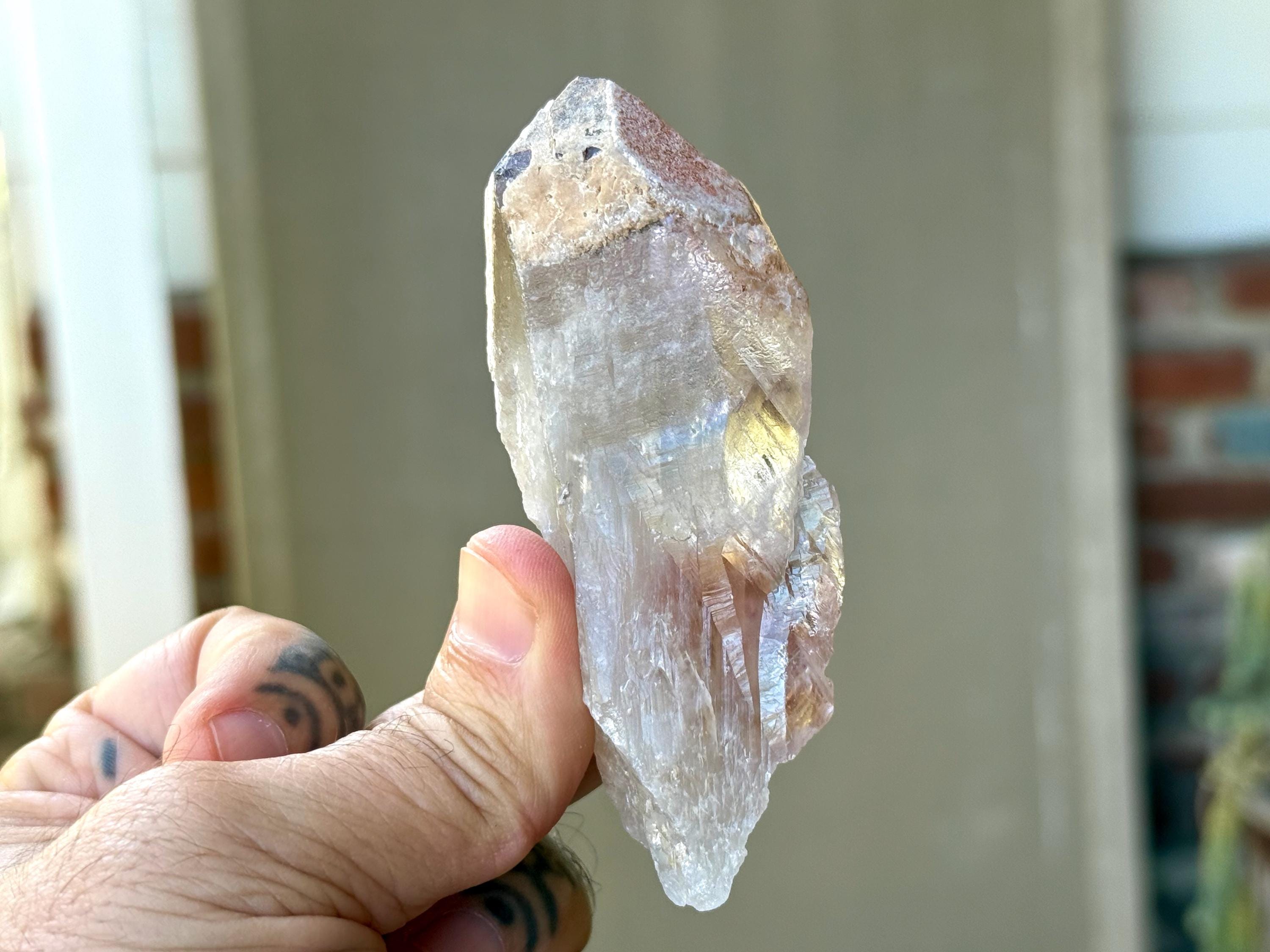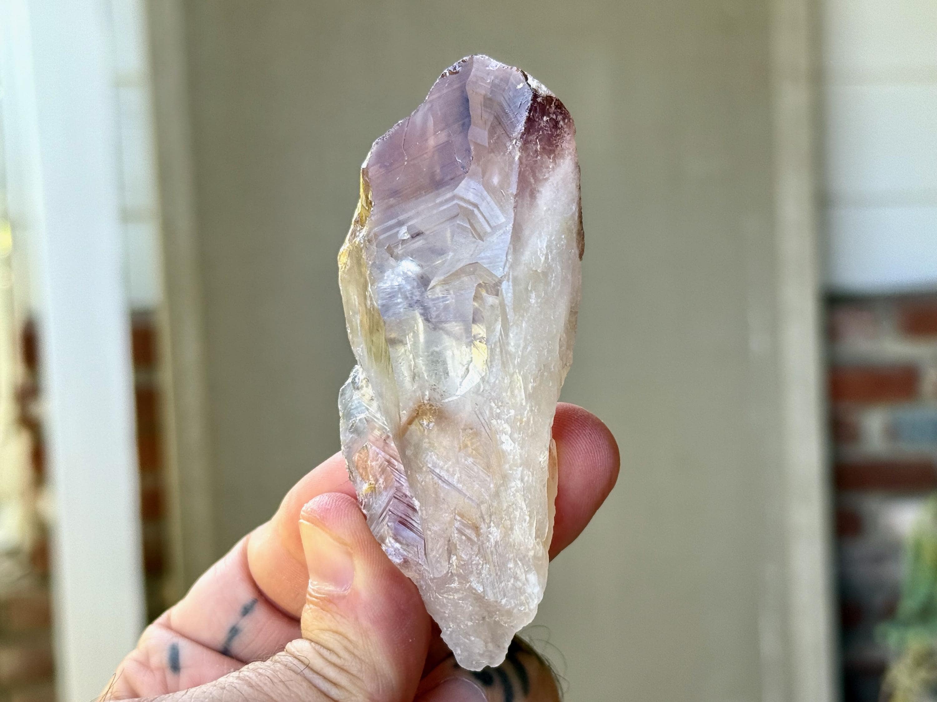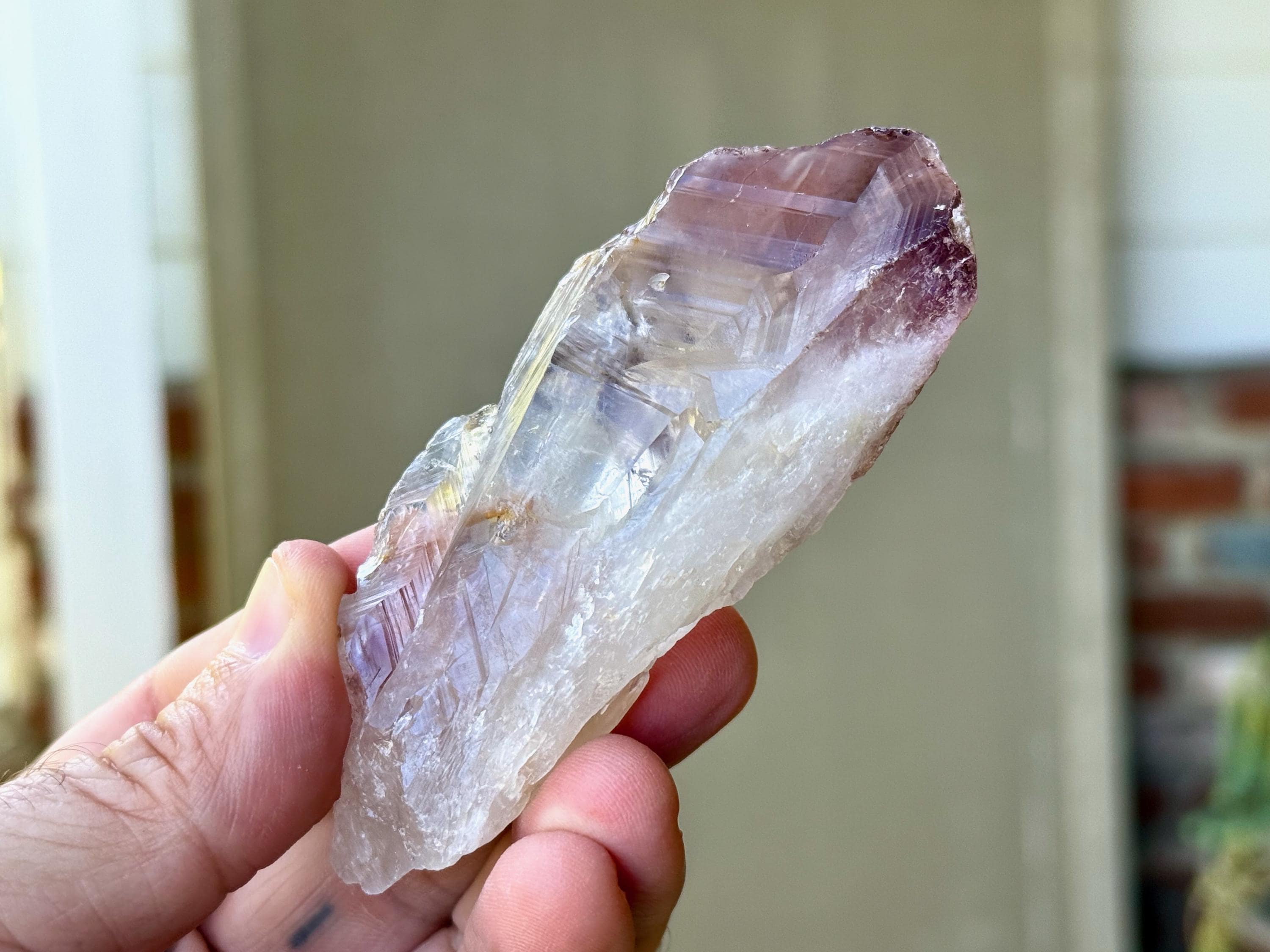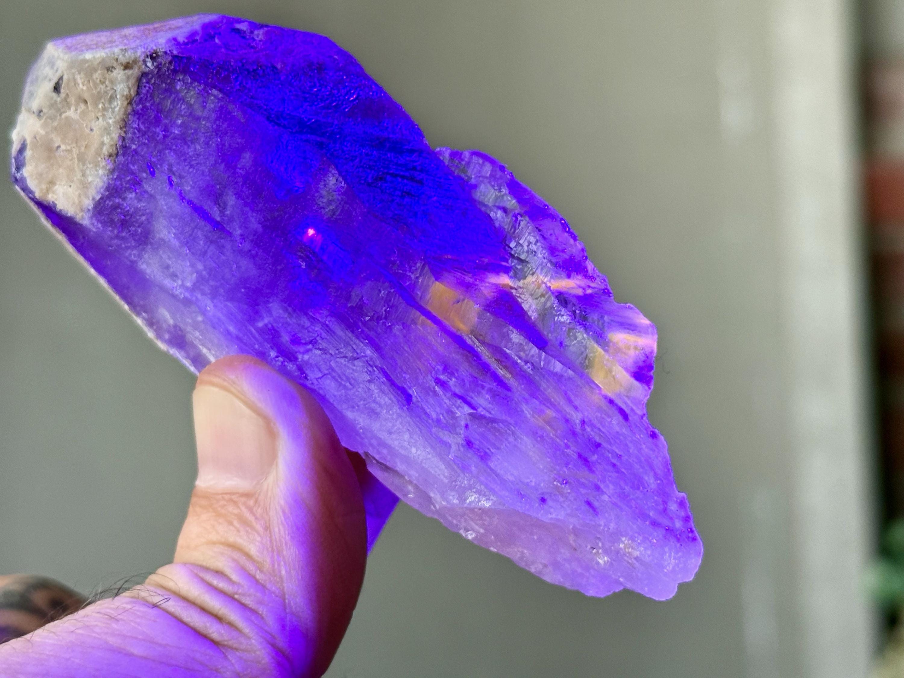 **Please note, the inclusions in this crystal are all natural/untreated. A UV light is necessary to see the phantoms glow, and they can be found affordably at Amazon or any other online outlet.