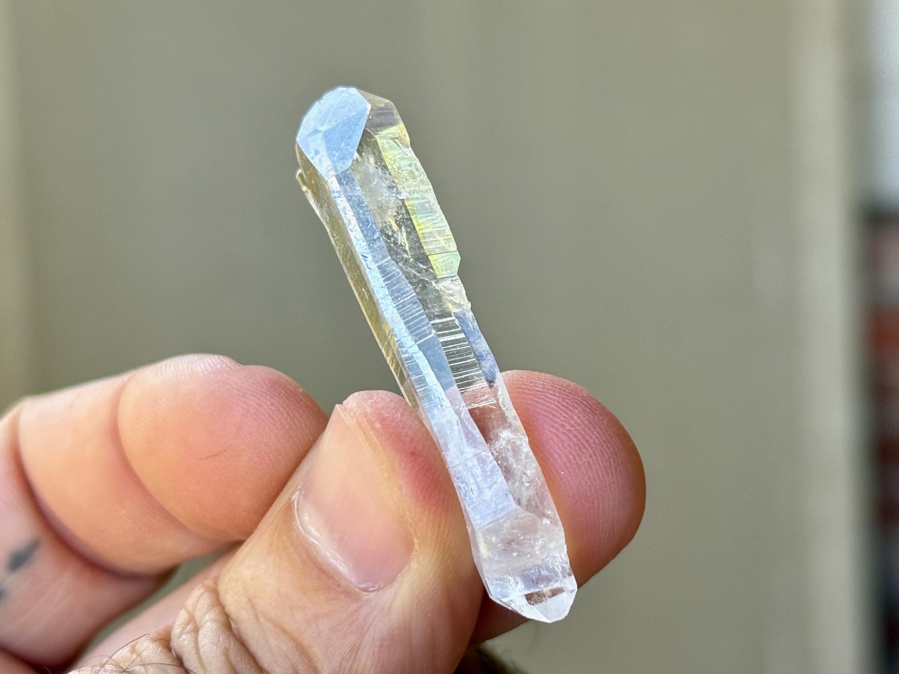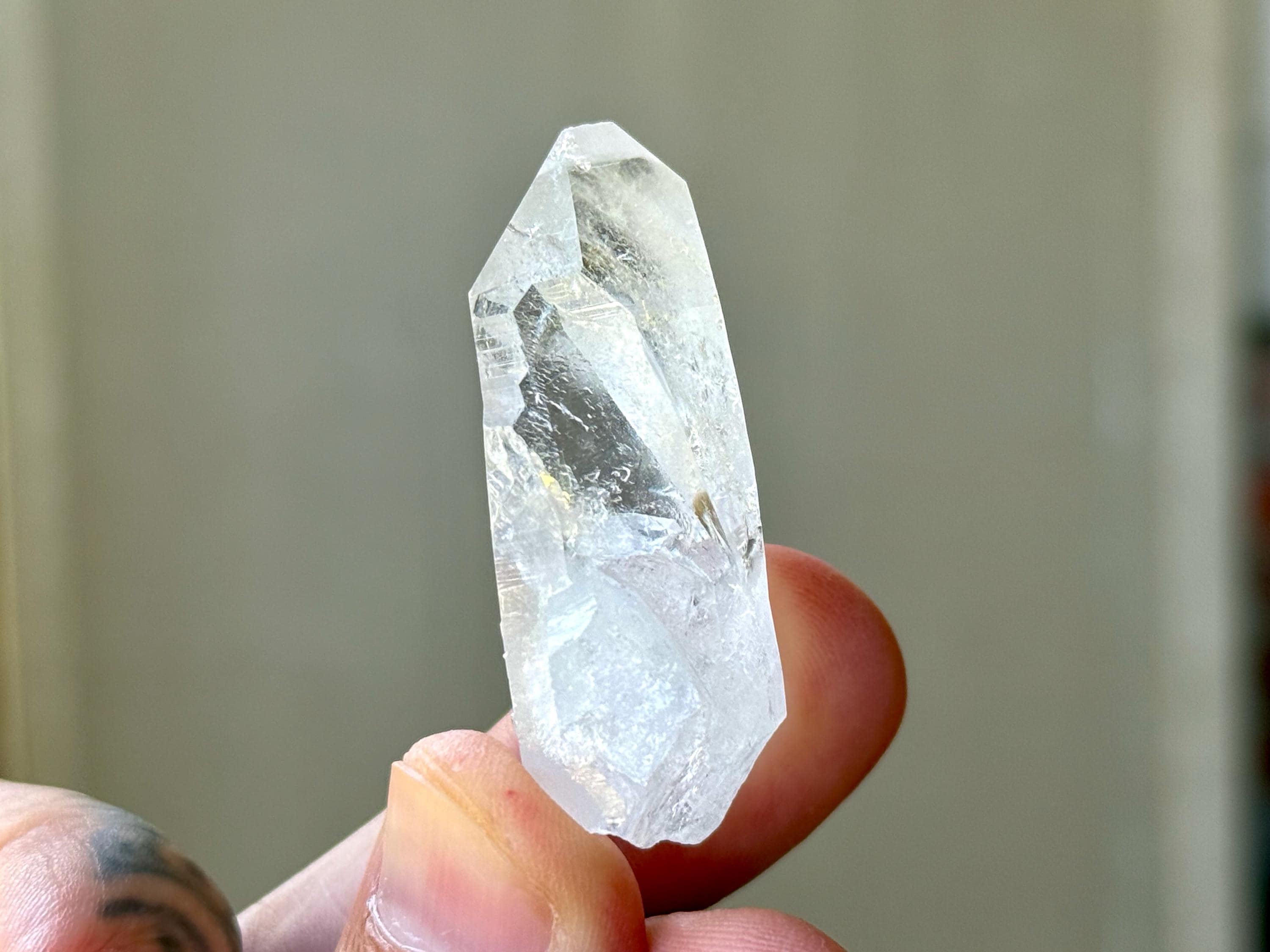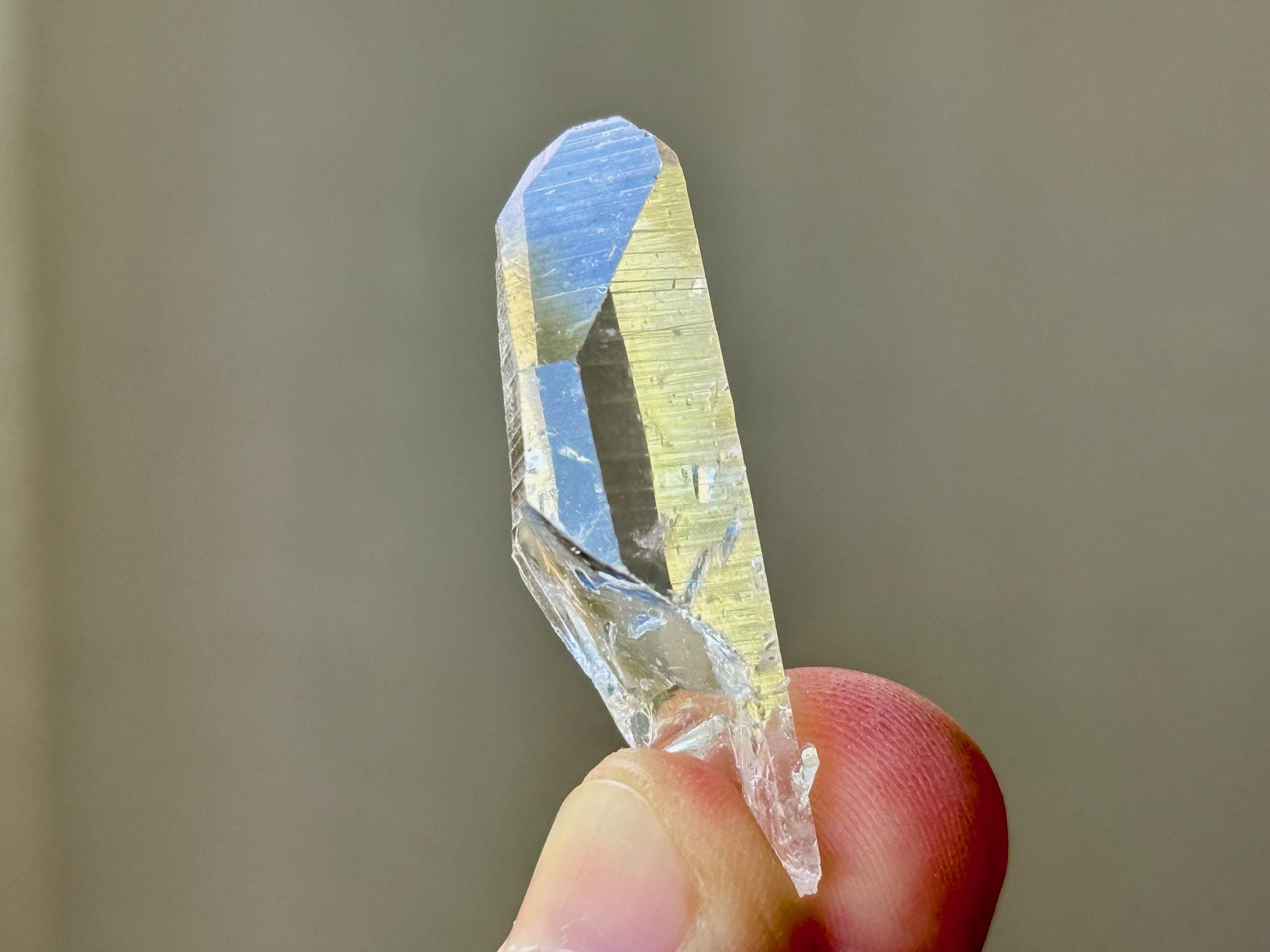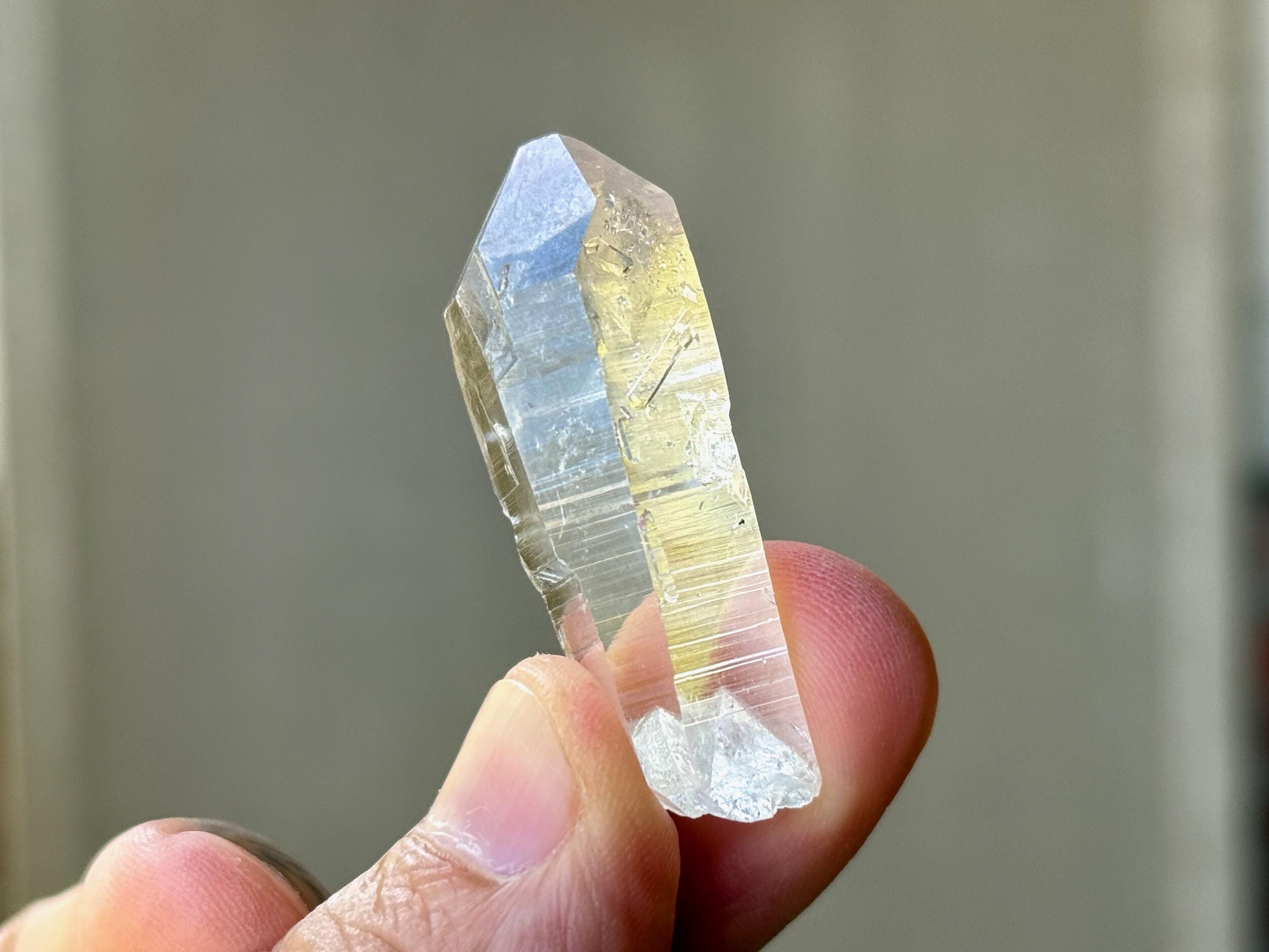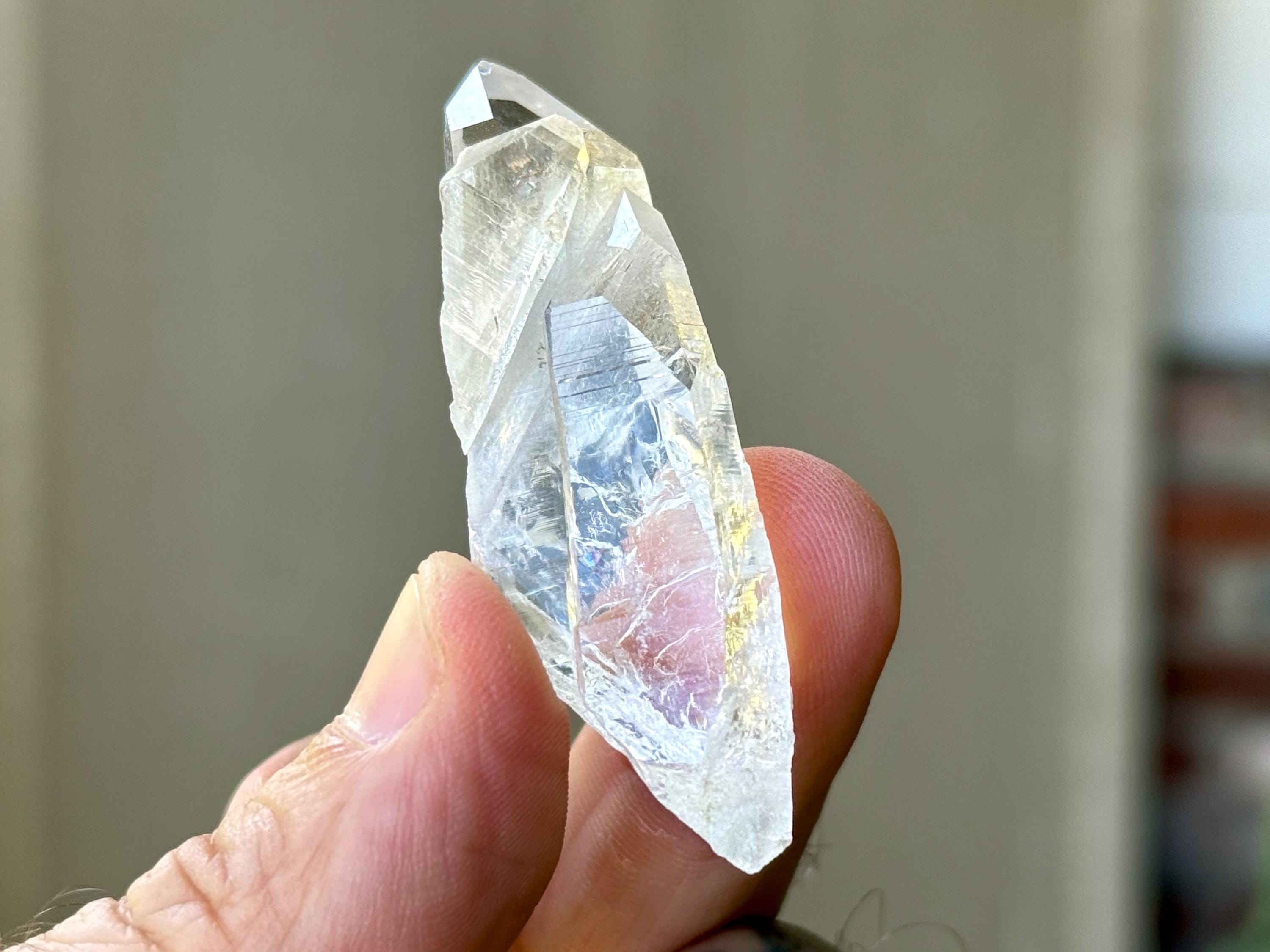 Lemurian Quartz resonates with all chakras, but primarily the Crown Chakra. It has one of the highest vibrations of any crystal and is a beautiful companion for meditation and to realign energies in the body. It can assist in clearing blockages in one's energy field and/or chakras, dispelling heavy energies from the body. If there is stagnant energy in the body, it can help to increase Prana (life force) energy to get things moving properly again. Meditating with Lemurian Crystals can allow us to connect with higher-dimensional spirit guides and connect to Divine realms, as well as to decode the information they contain within.