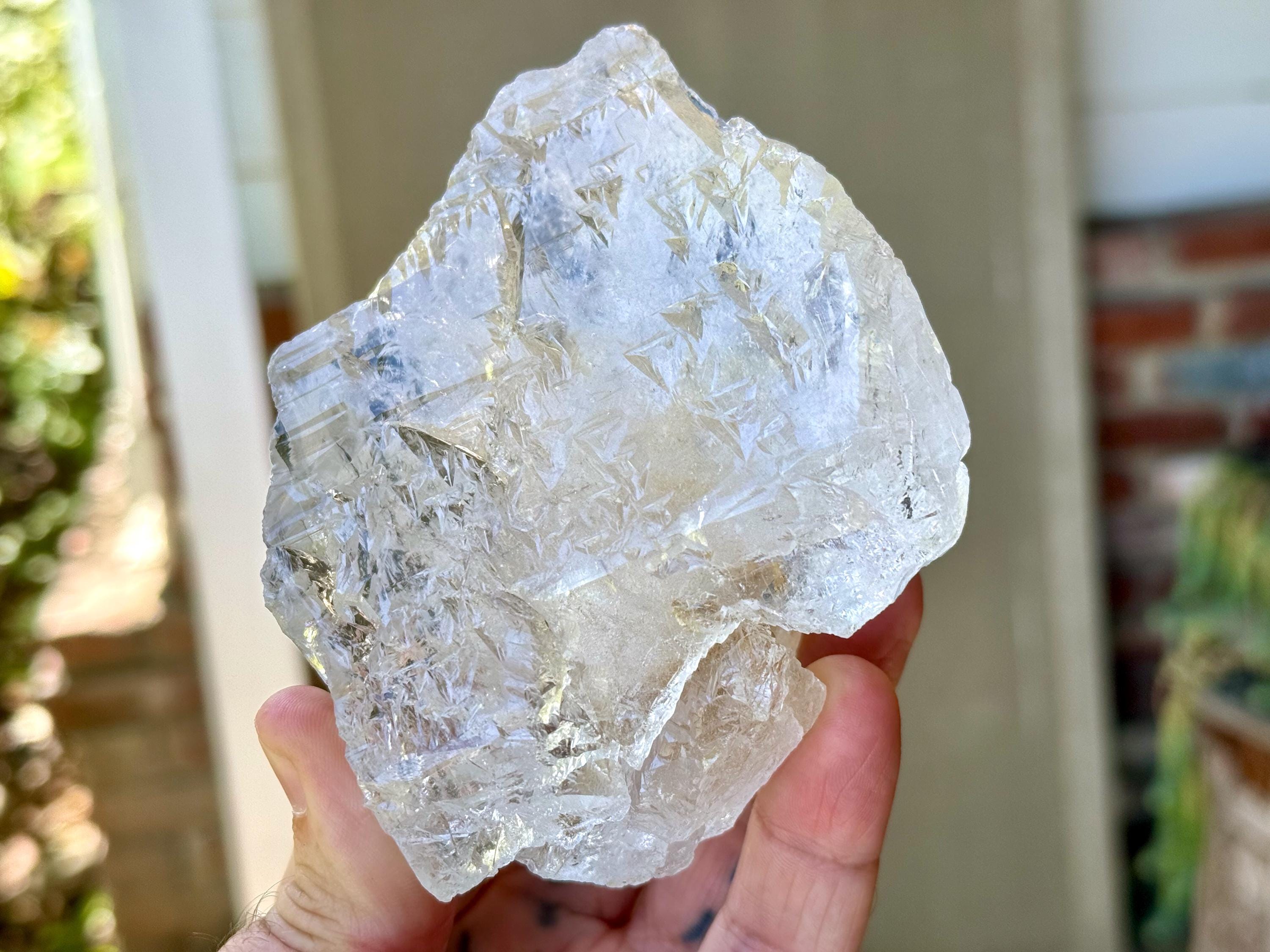 The back portion, as well as the tops and bottoms are mostly self-healed, displaying all the crevices and formations we expect from Dissolution Quartz of this region.
