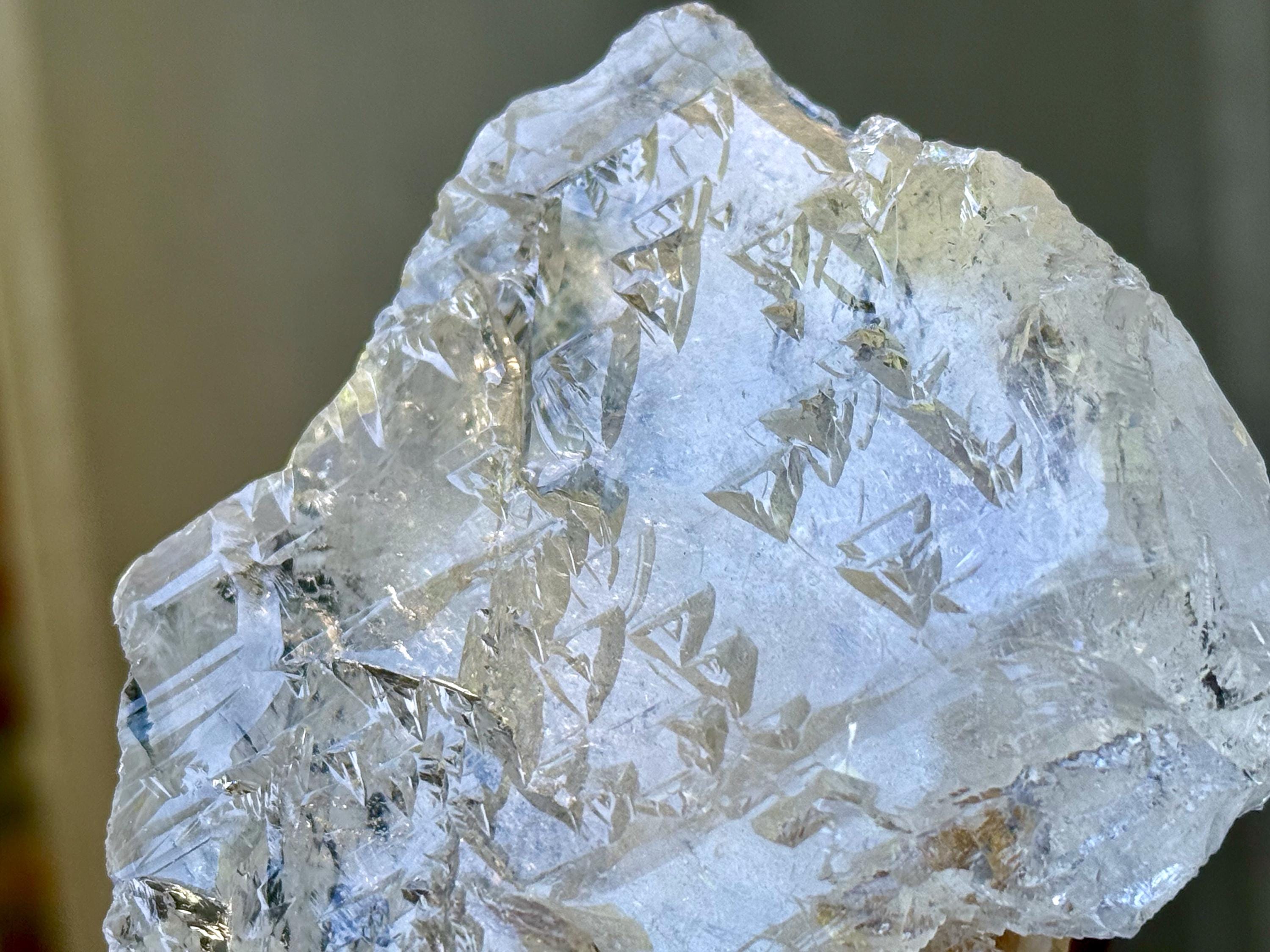 One of the best specimens of Trigonic Quartz from this region we have ever offered. This is a large and highly lustrous Dissolution Quartz crystal with a giant main facet that is covered in deeply imprinted, well-defined trigonic imprints!