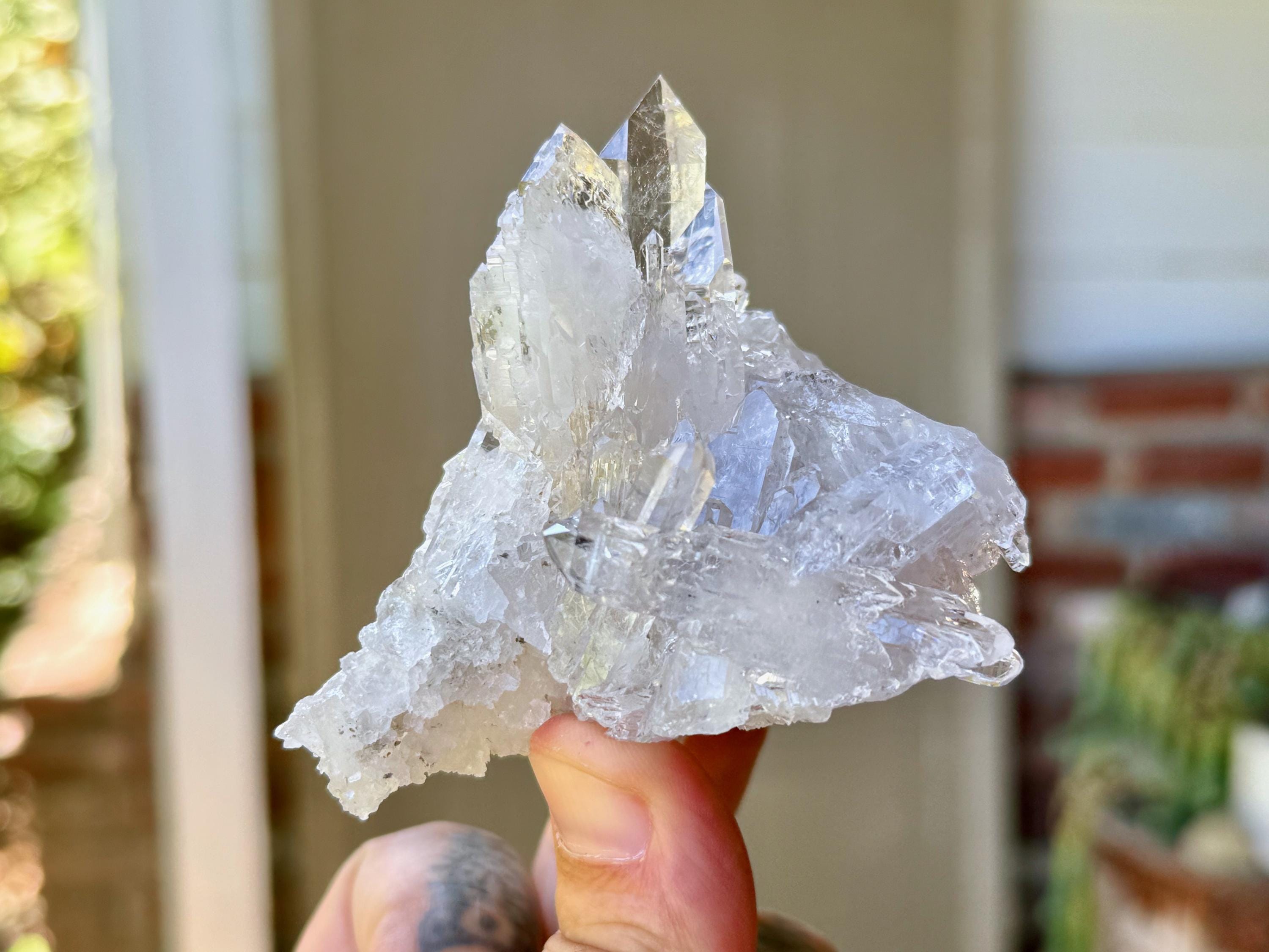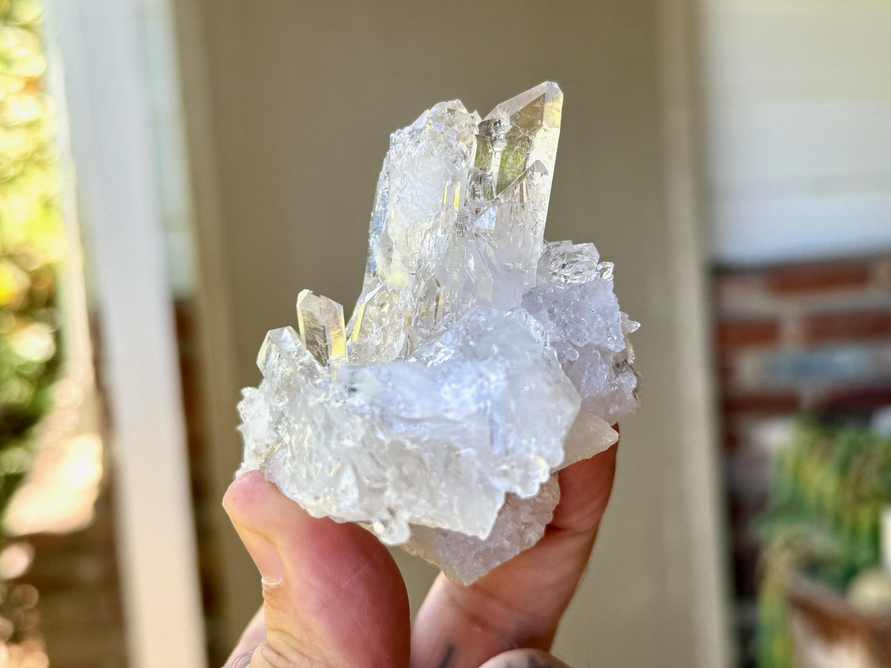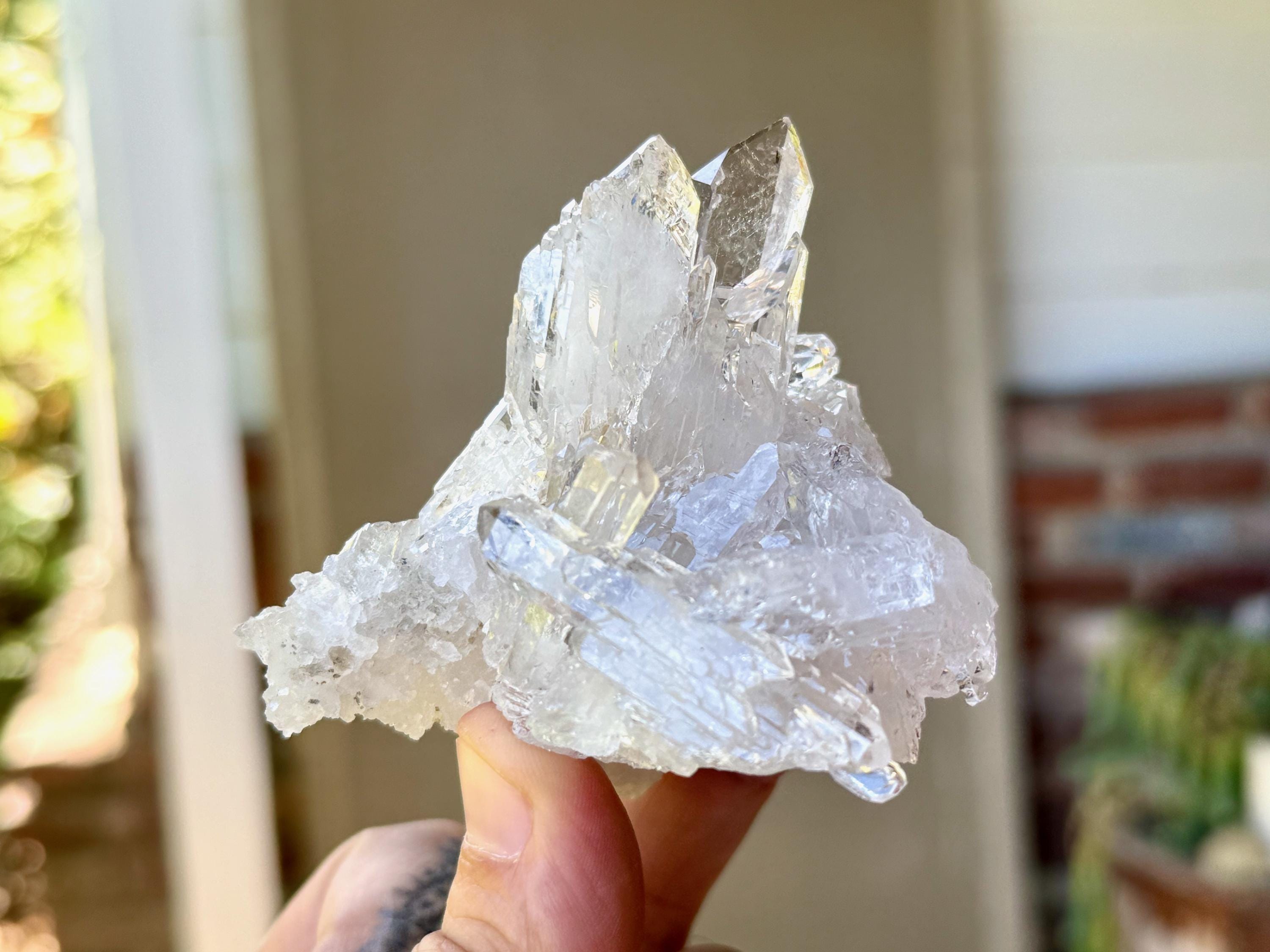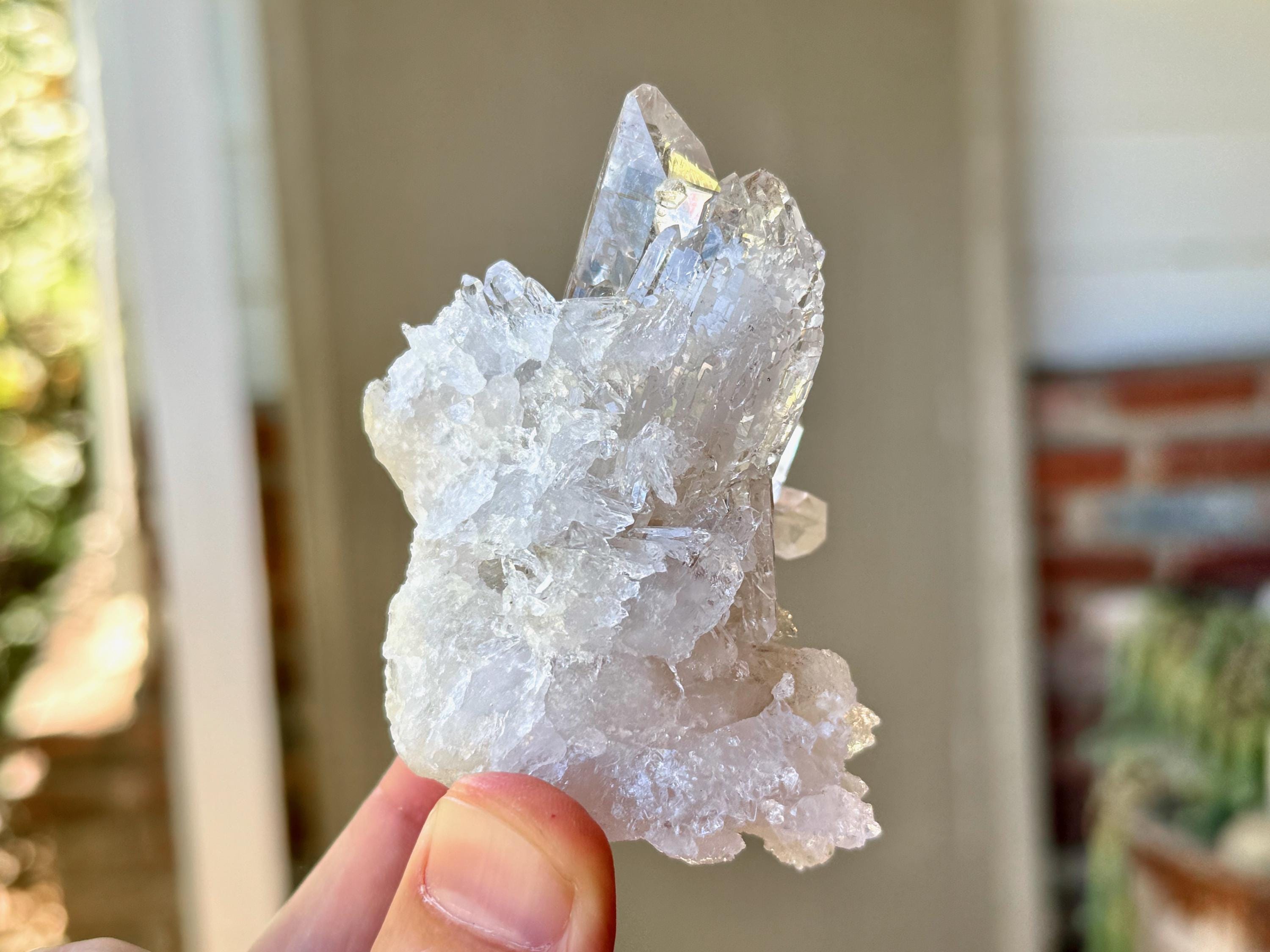 Like an ethereal crystal castle, this magnificent Cathedral Quartz glistens with its multiple spires and glorious luster! This crystal possesses a wonderful formation, with a set of primary crystals in the center sitting amidst of a cluster of crystals at the base. The base is naturally broad and flat, so this piece sits upright on its own for display.