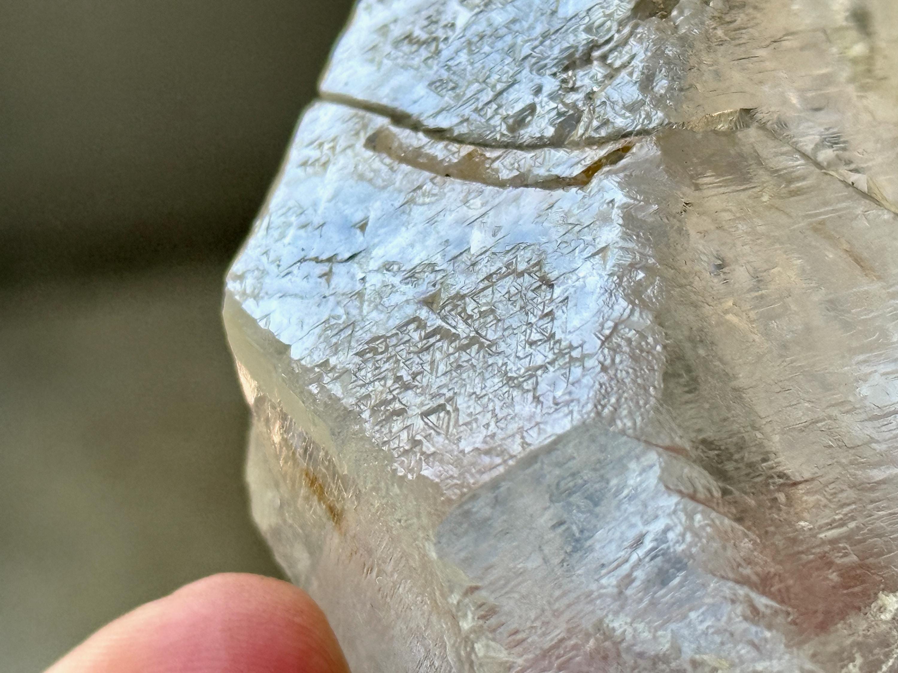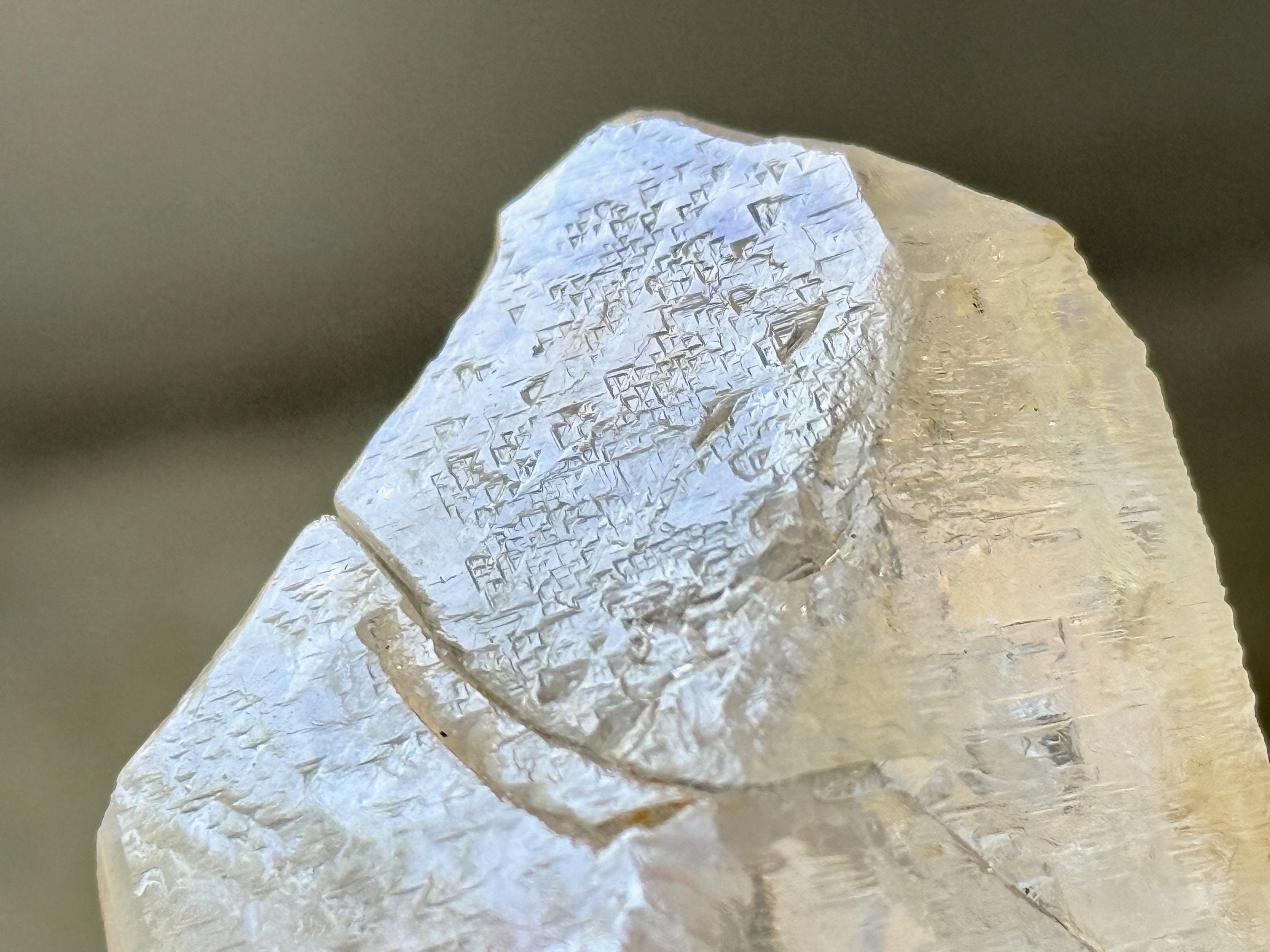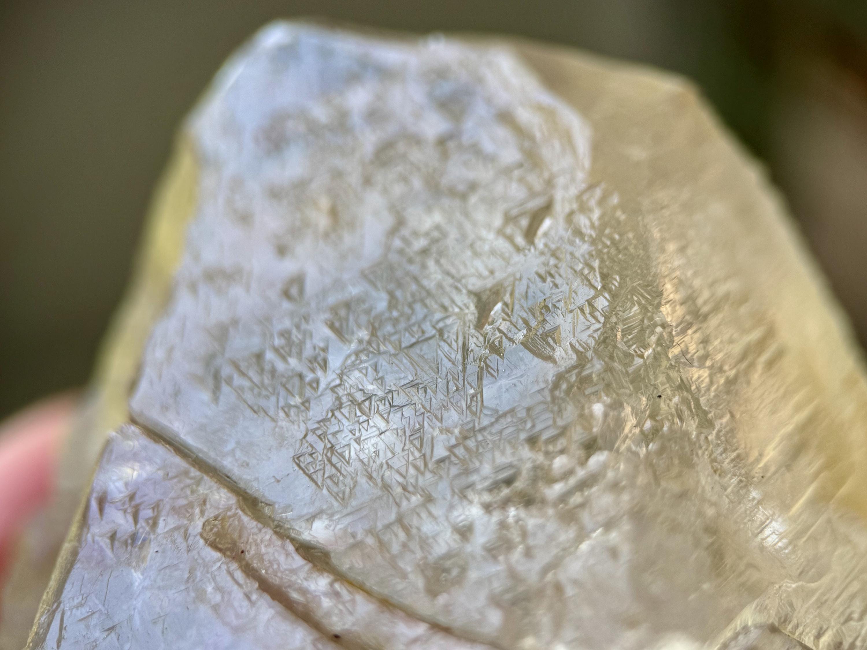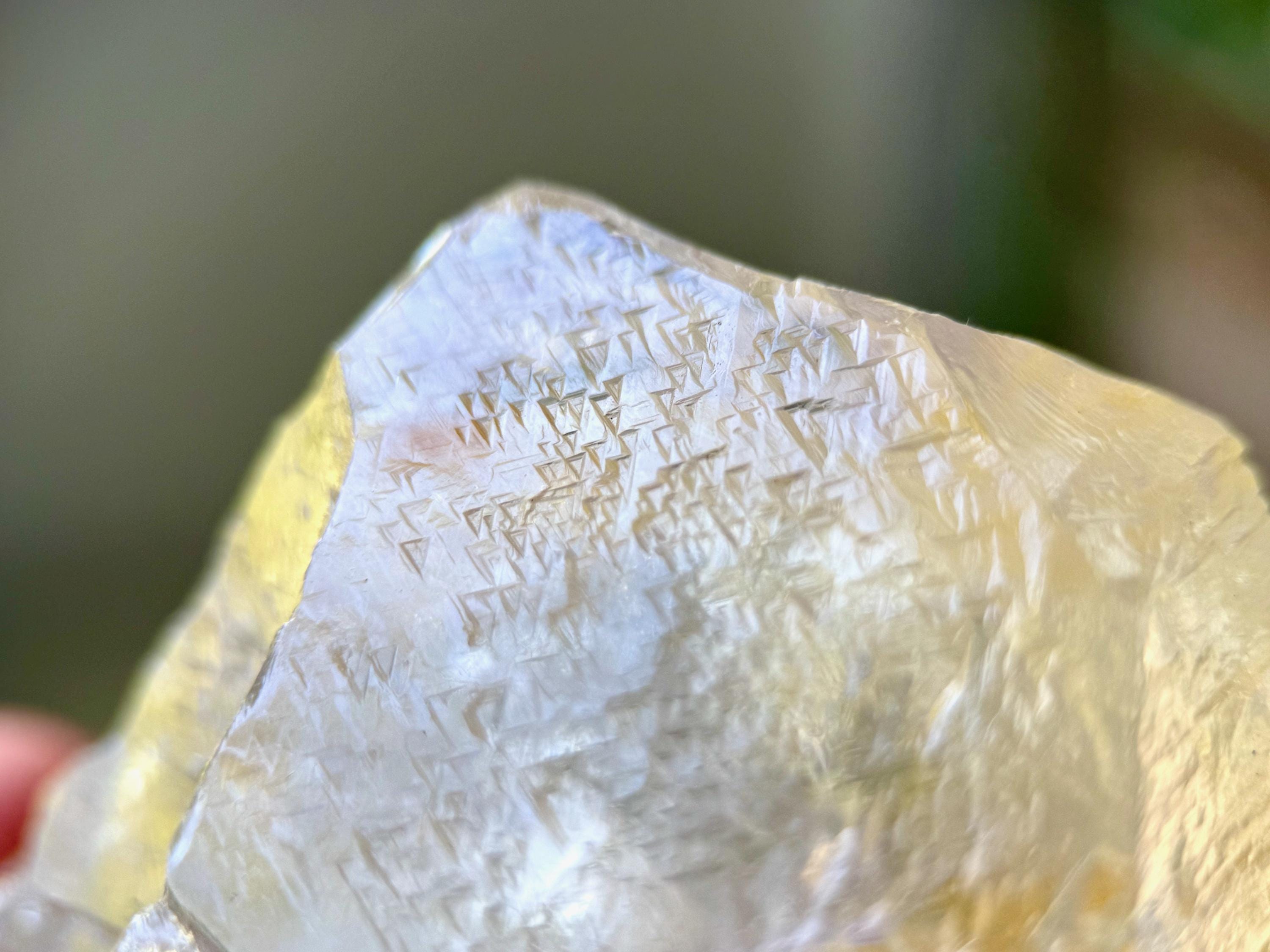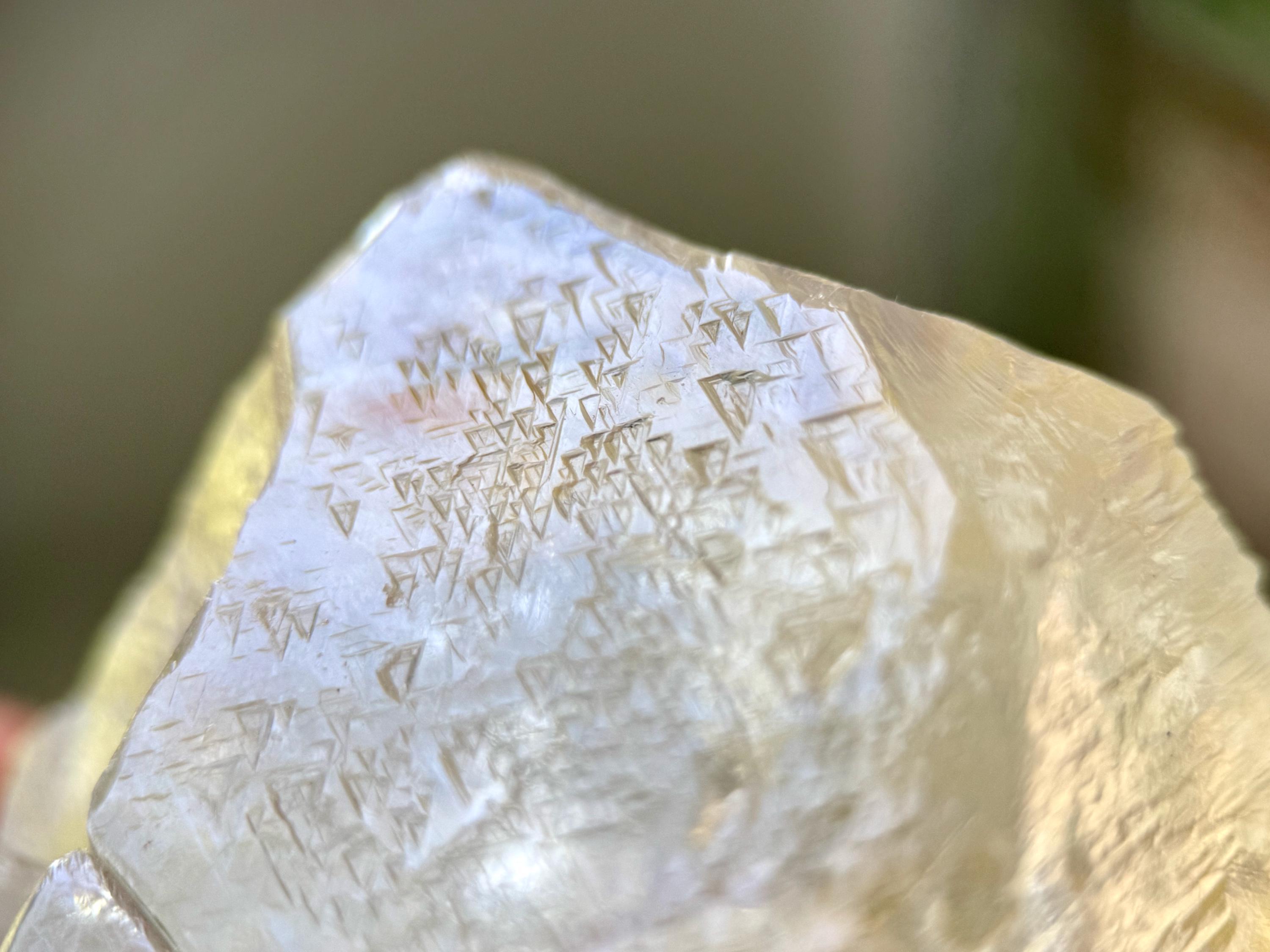 Trigonic Quartz refers to crystals that have "trigons" or upside down triangles deeply etched into the face of the crystal. They are similar to Record Keepers, except Record Keepers are upright triangles and trigons are pointing downward.