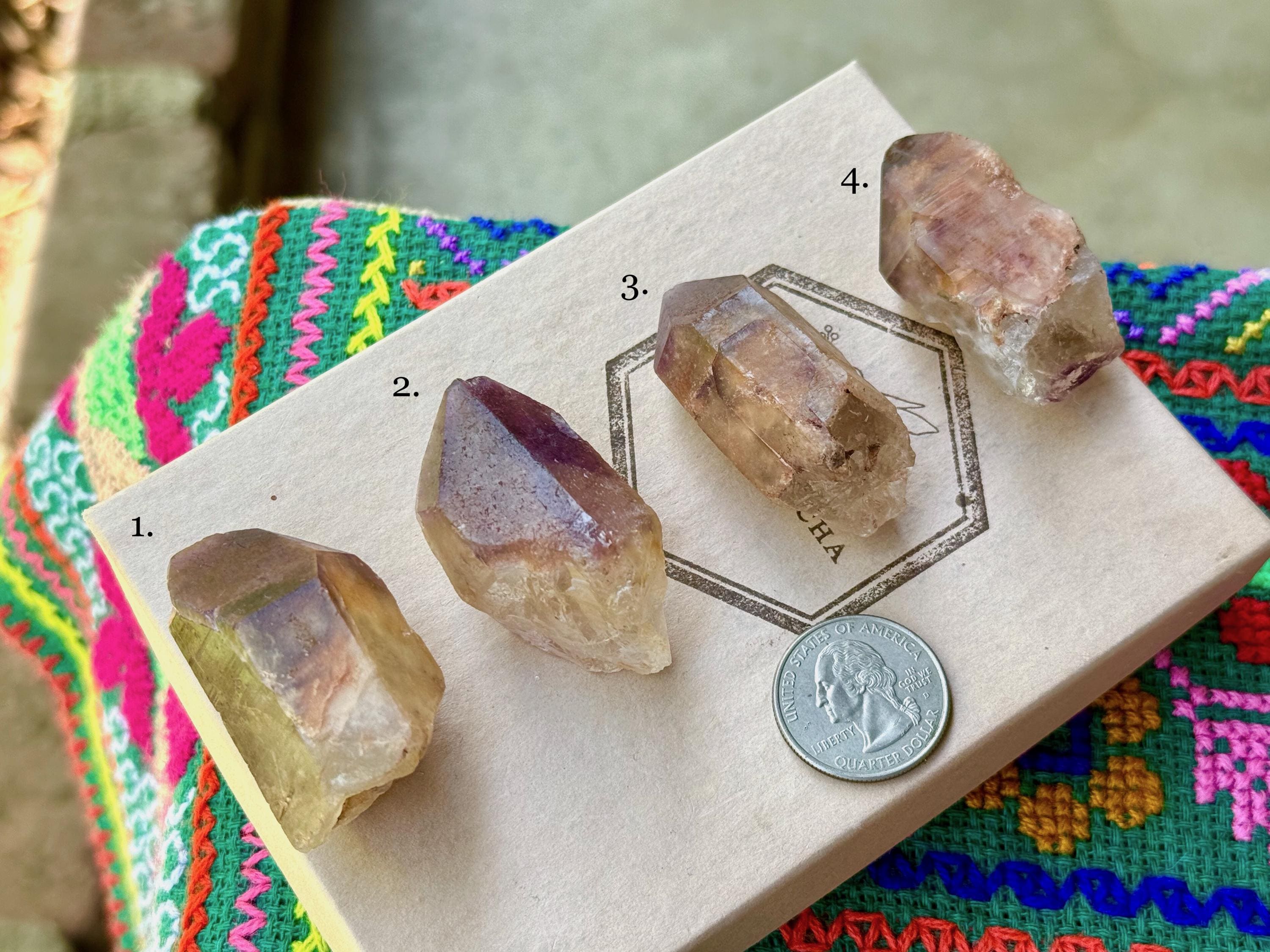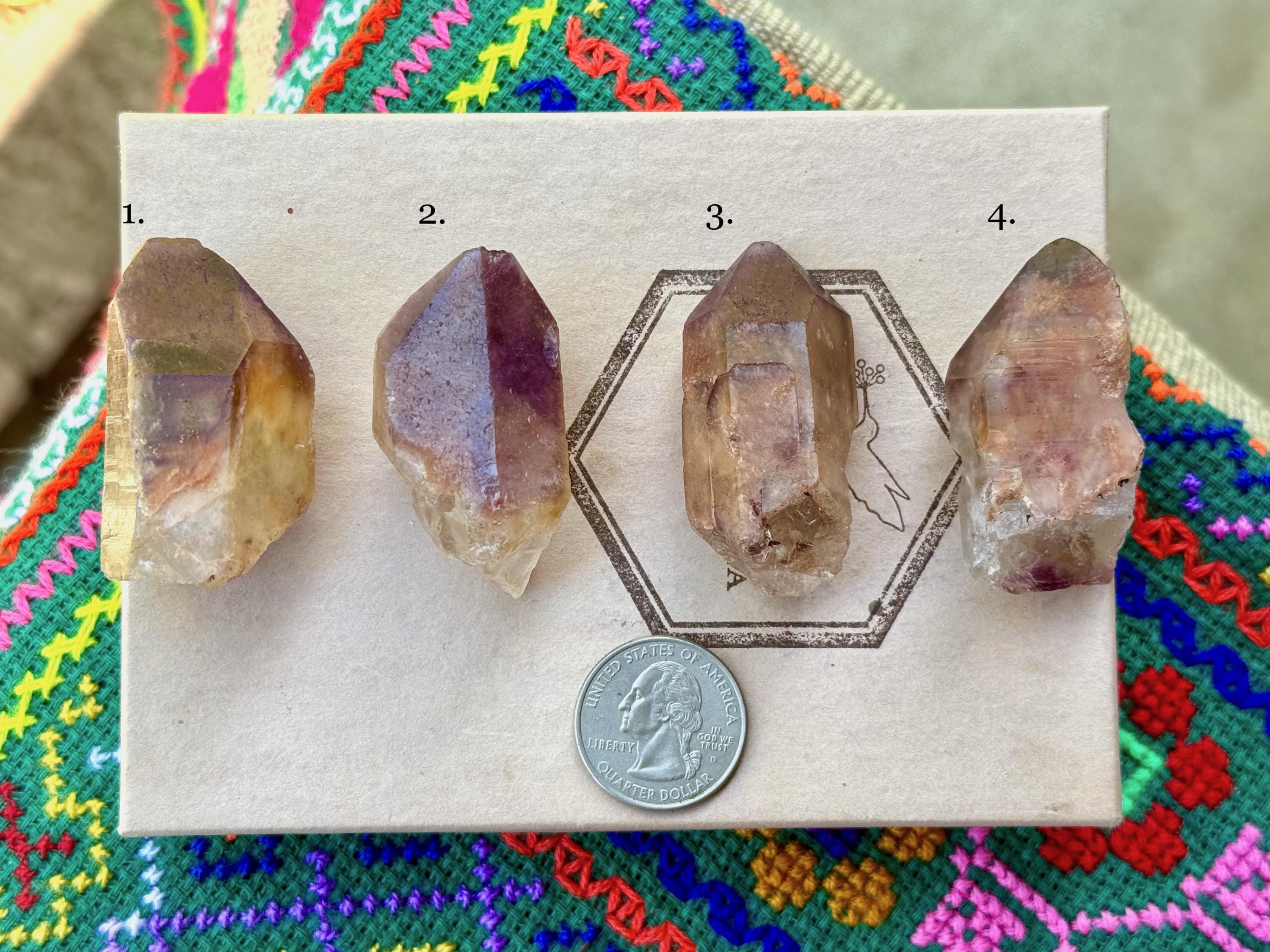 Simply select the crystal(s) of your preference from the dropdown menu (#1-4). The crystals are numbered in Photos 1-2, as well as in each subsequent photo. Each photo in the dropdown correlates to the actual crystal purchased.