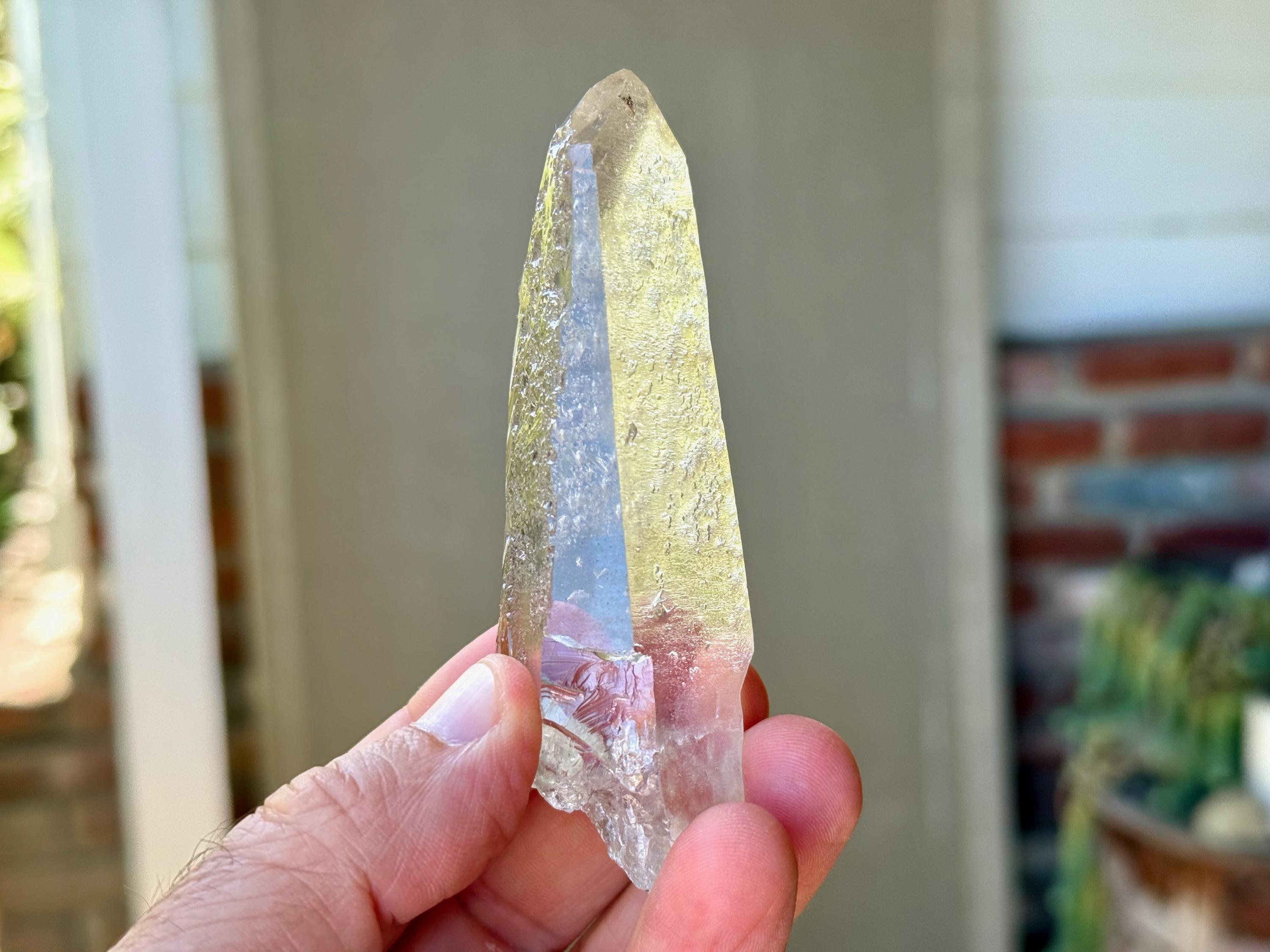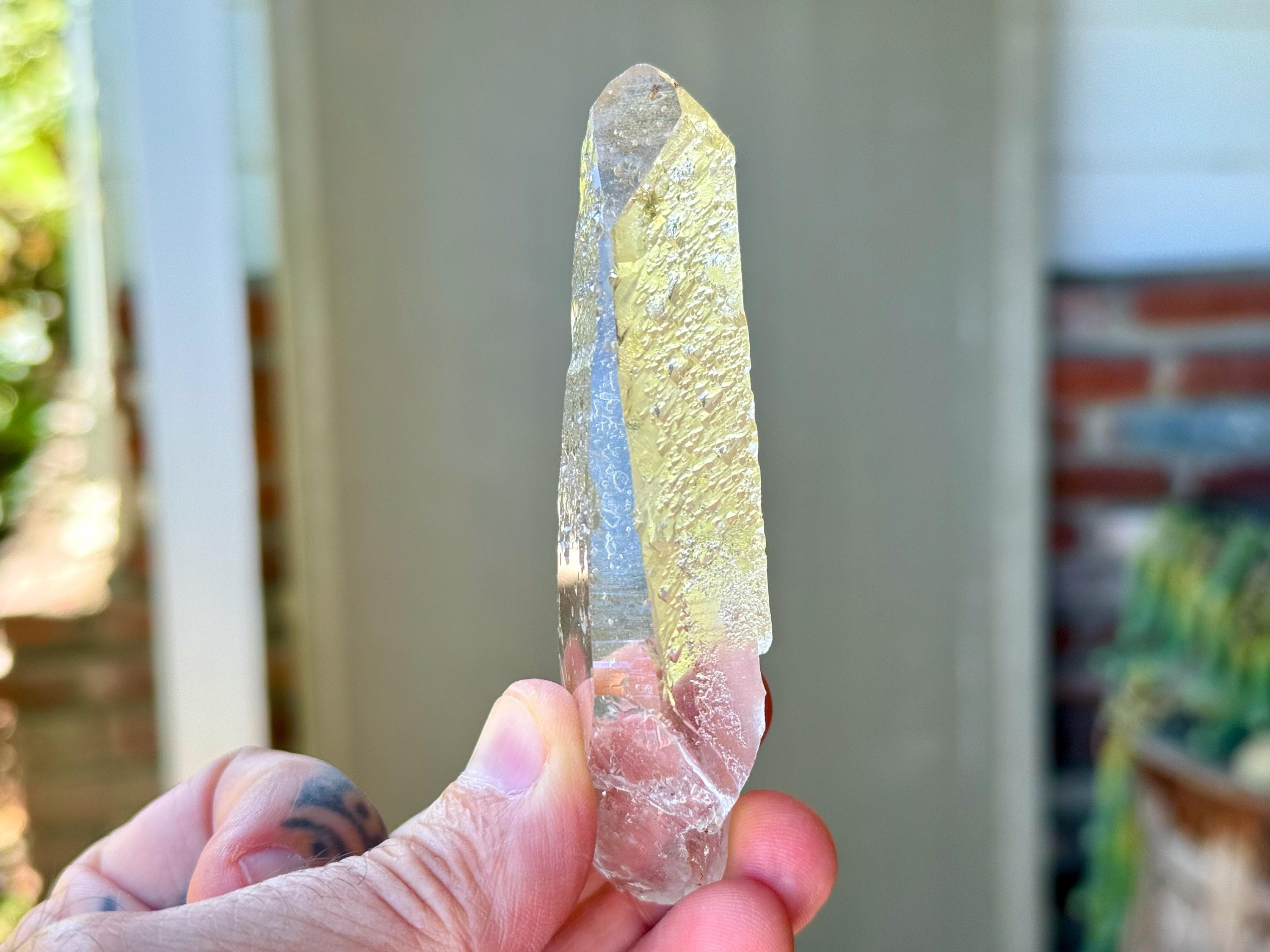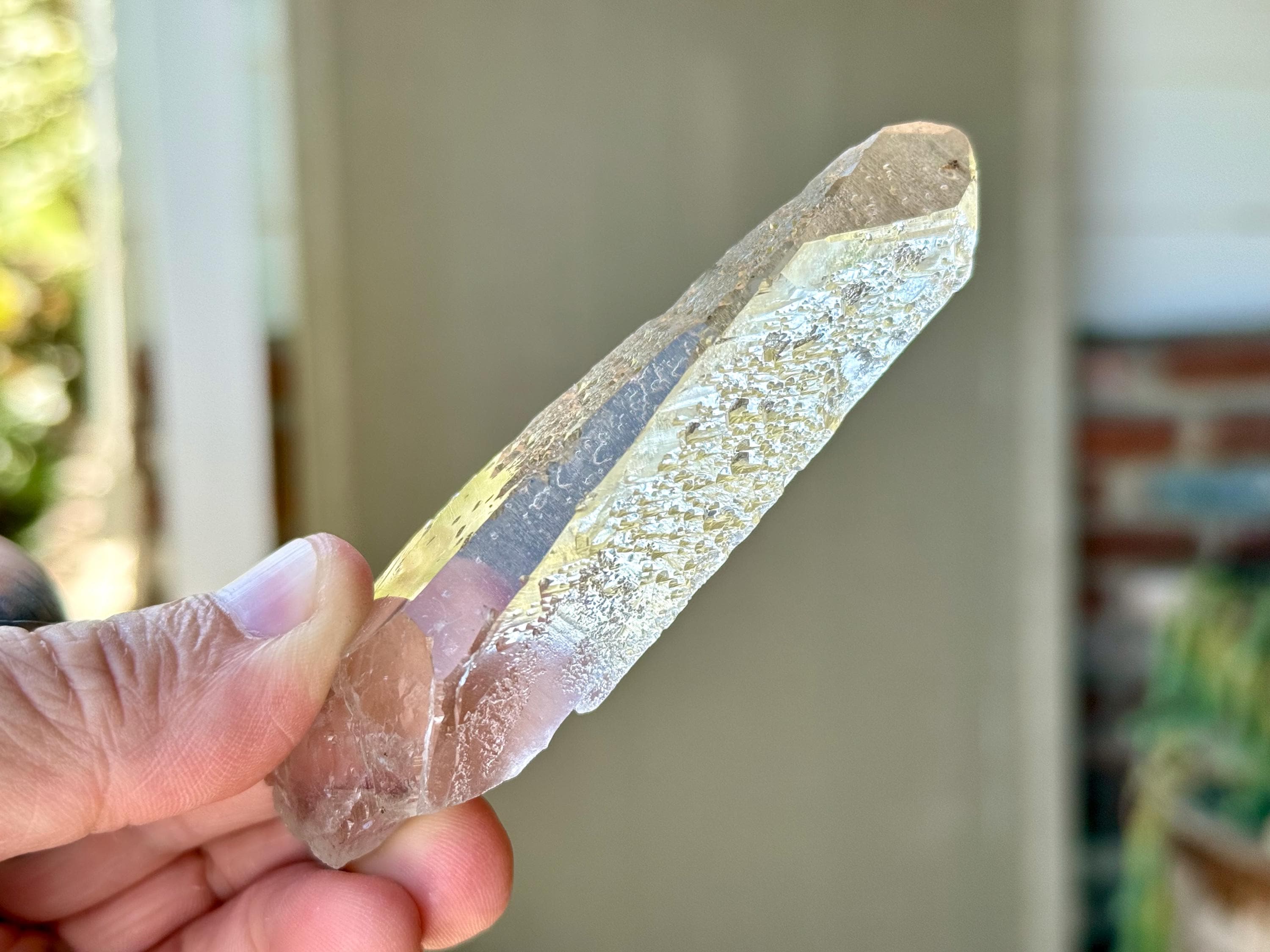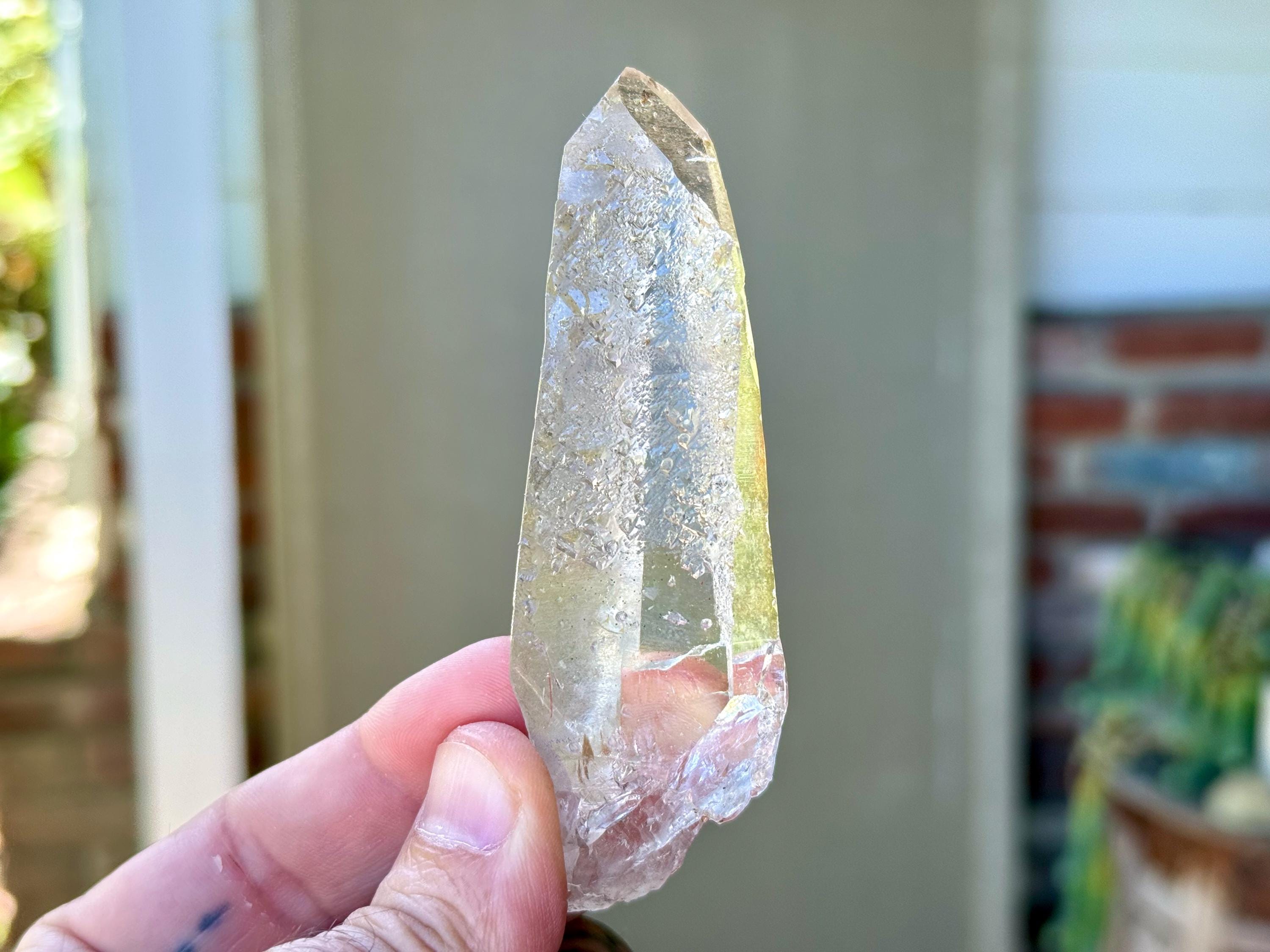 Superb luster, water clear clarity and a lovely champagne-golden hue to this Golden Healer Starbrary Quartz in an elongated formation. This crystal features some of the most mysterious and intriguing Starbrary markings and glyphs on its sides (Photos 2-3). They are amazing!