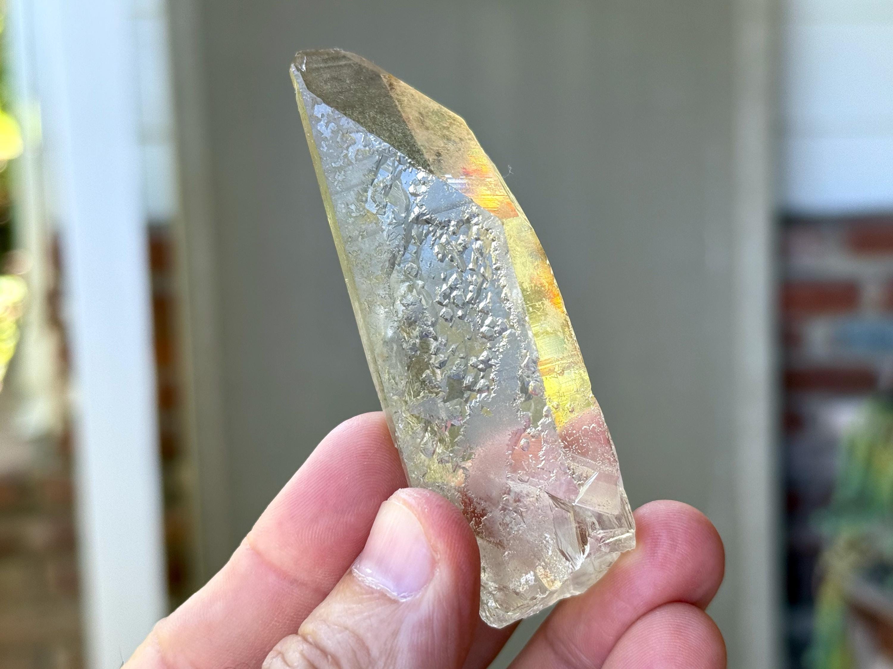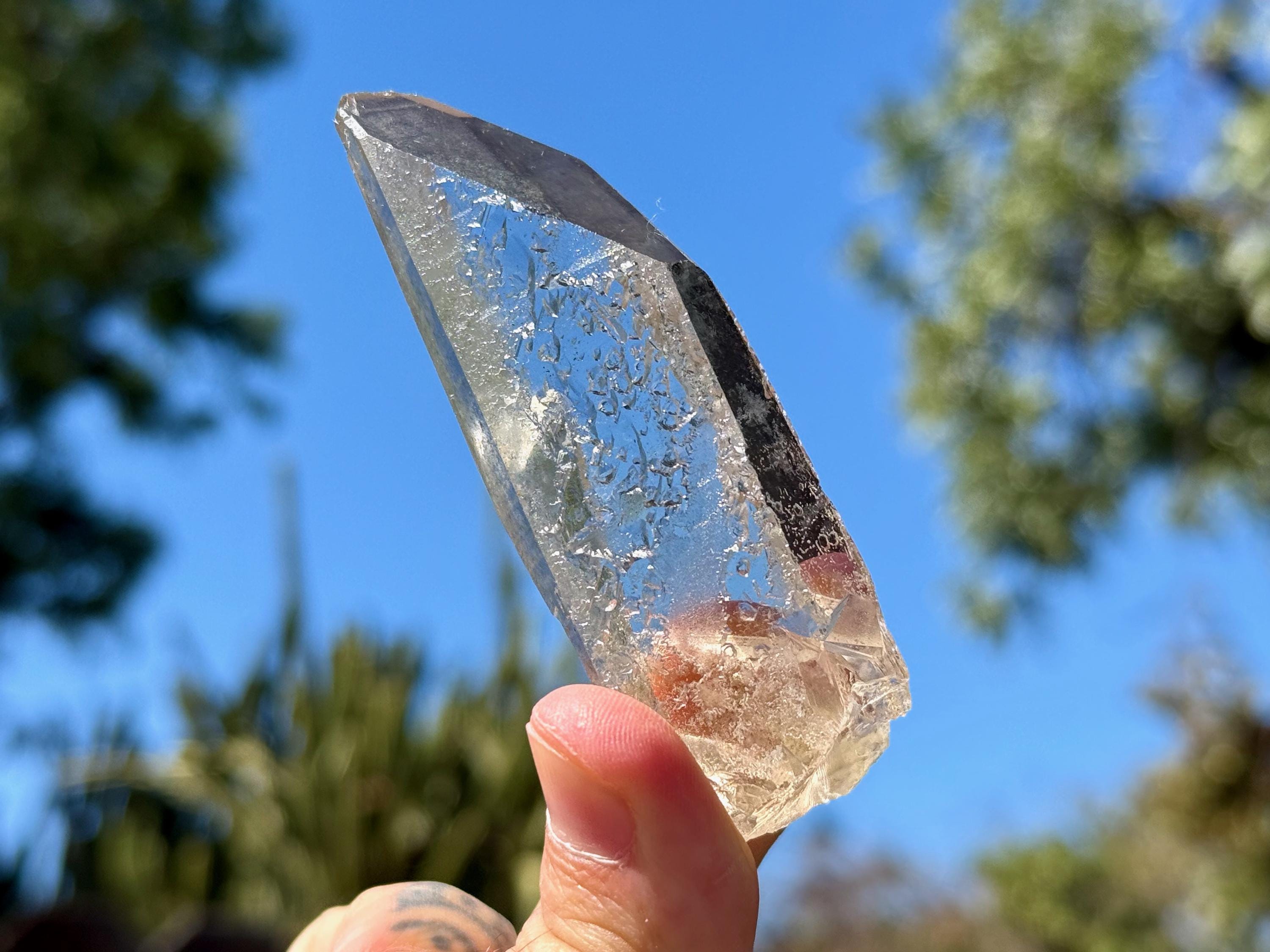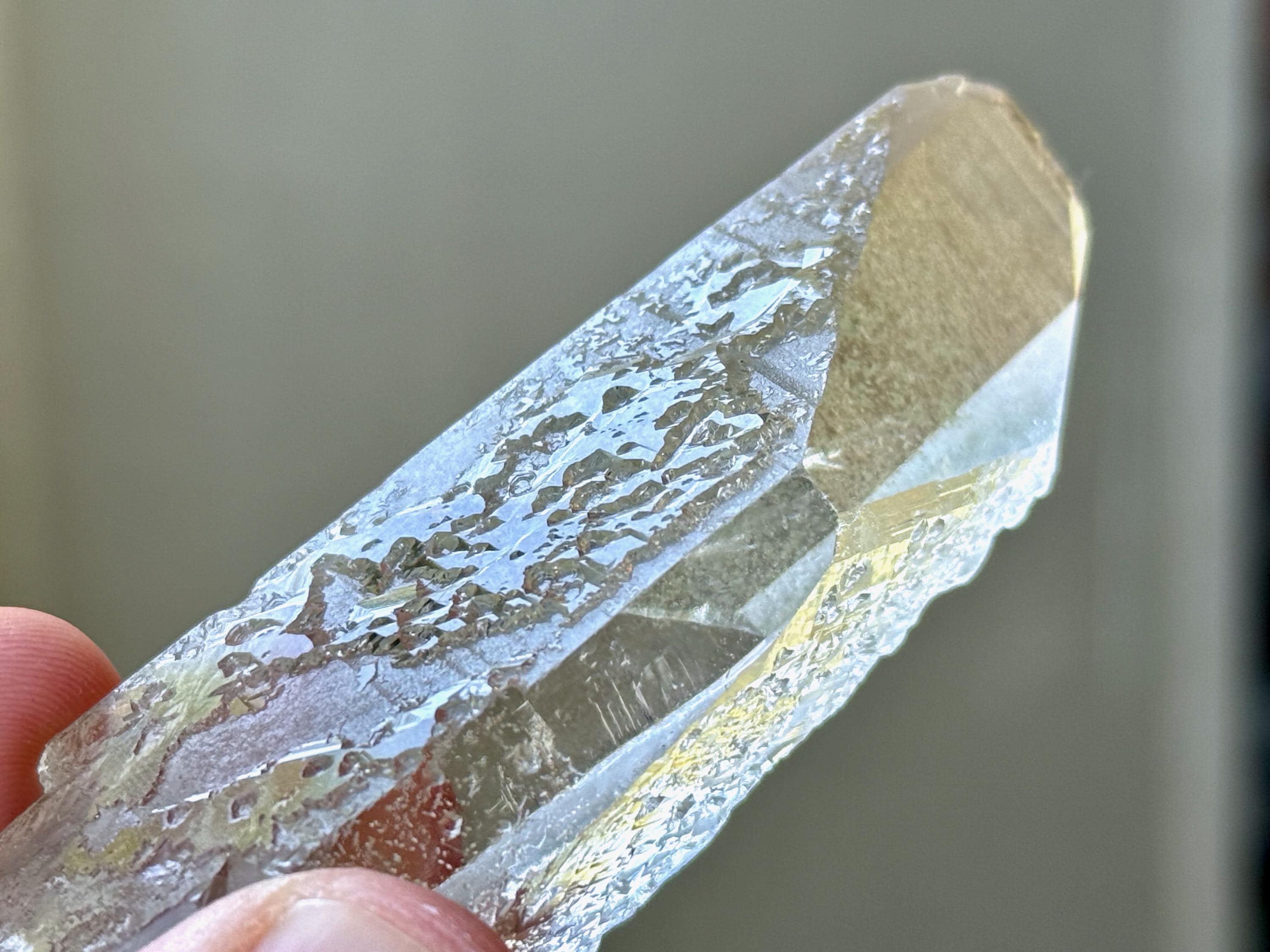 This crystal features a slender, rectangular "time link" facet to the right of the main face (see more on this below). There are a few *very* minor "fleabites" across the top main facet but aside from this the termination is excellent. Absolutely top quality to this beautiful crystal!