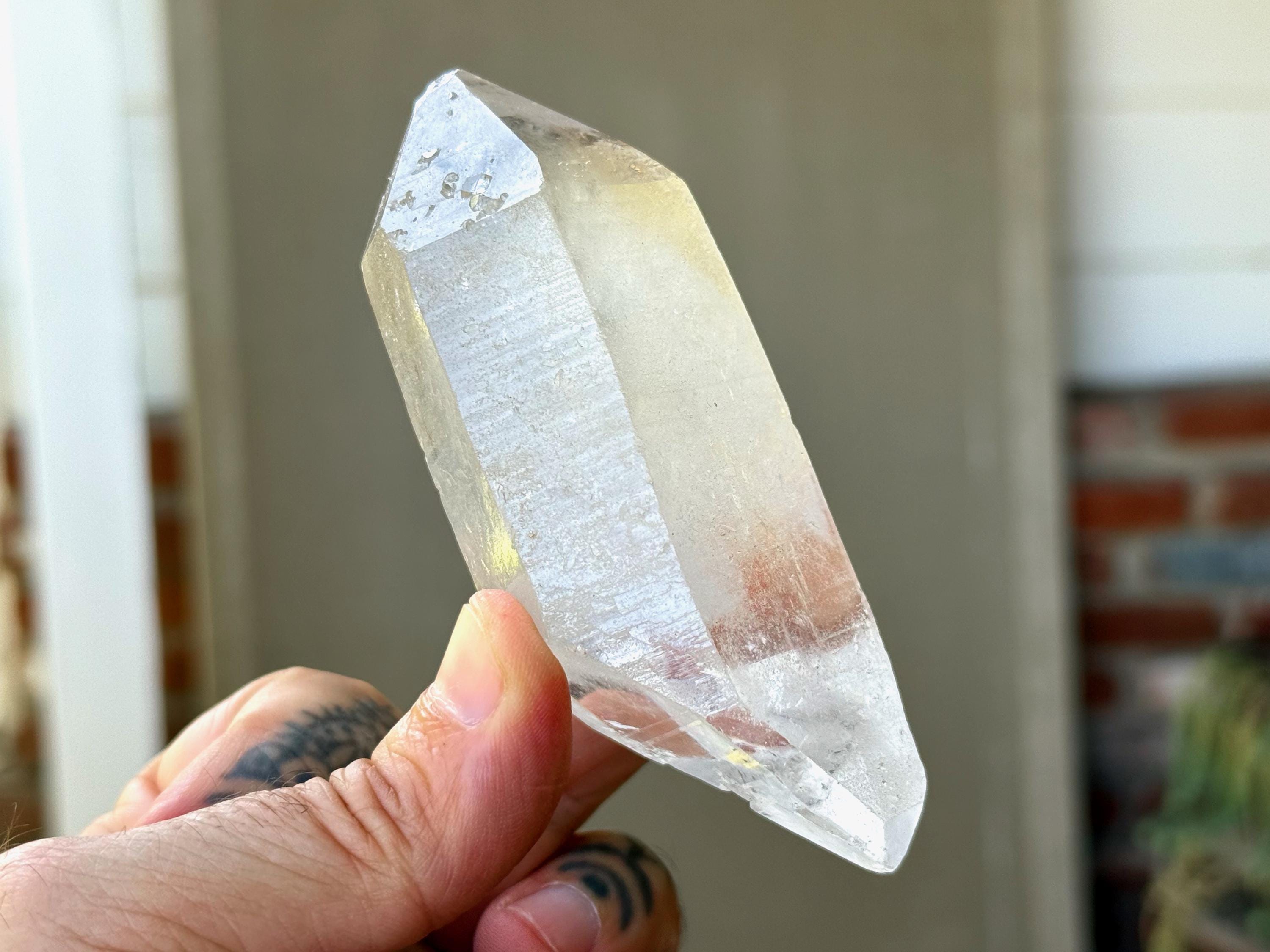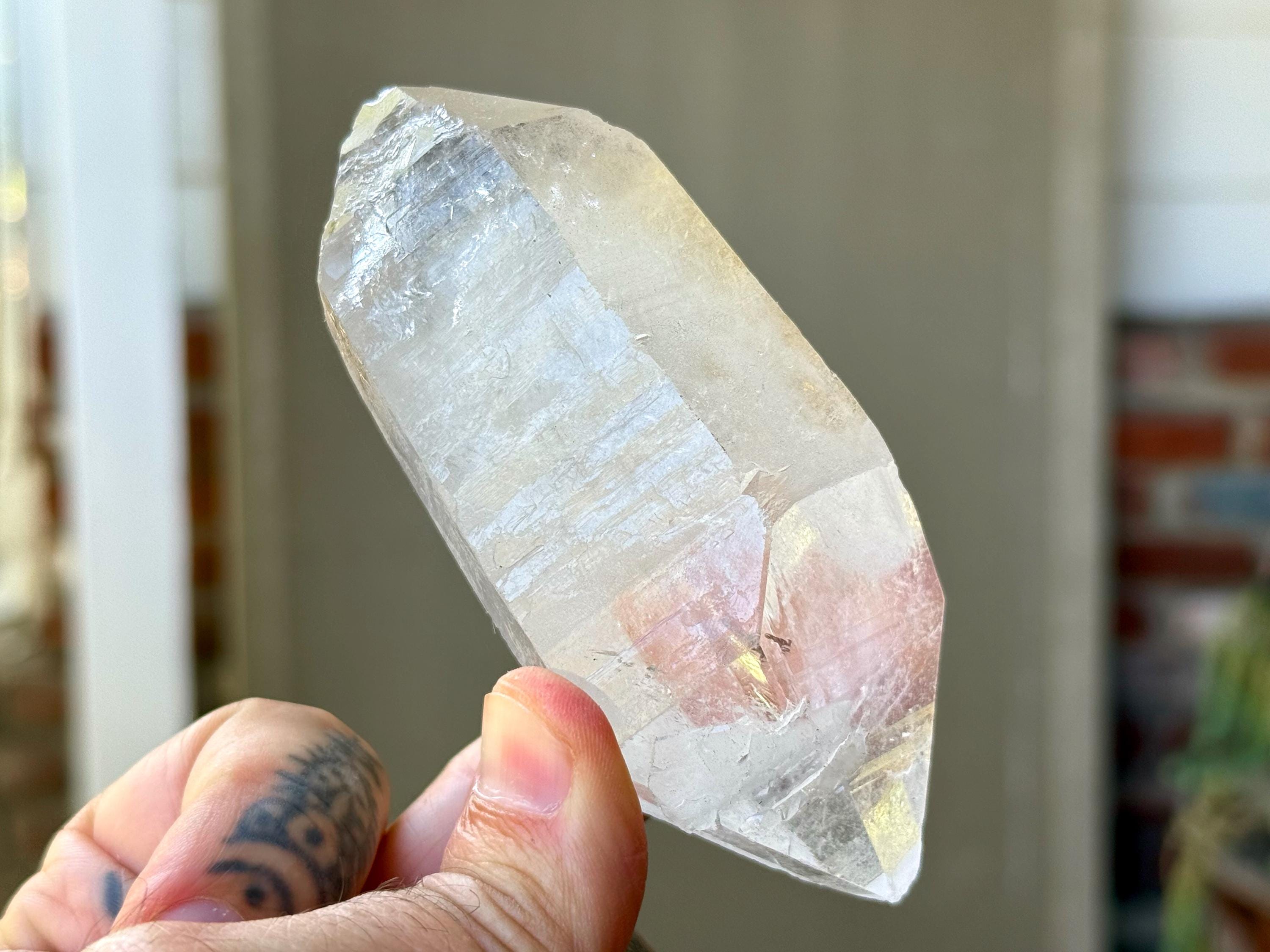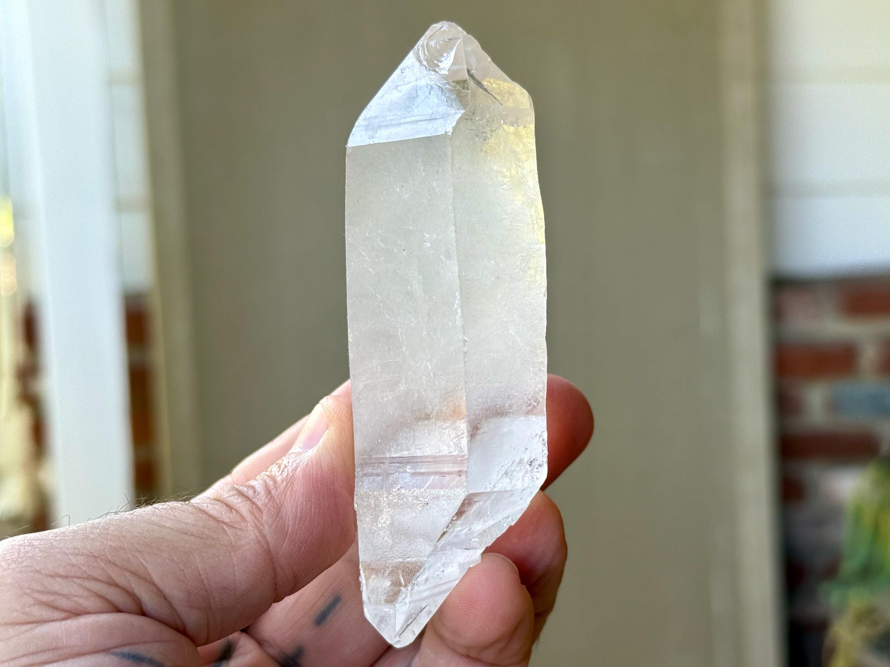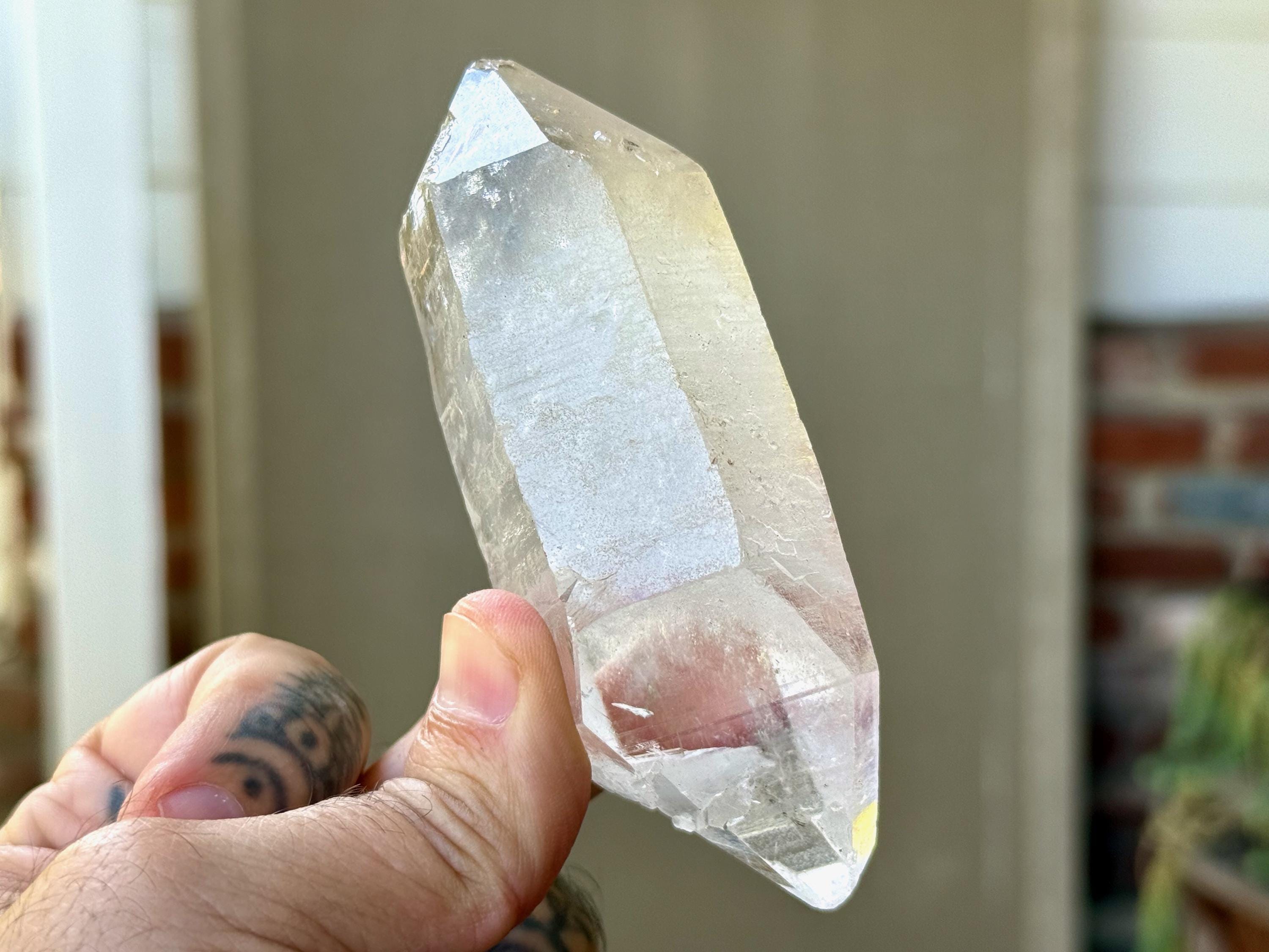 Brilliant, light-bearing luster and beautiful clarity to this Lemurian Quartz crystal with horizontal striations on the main facet! This crystal has a wonderful gradient of mildly cloudy in the center and water clear at both ends.
