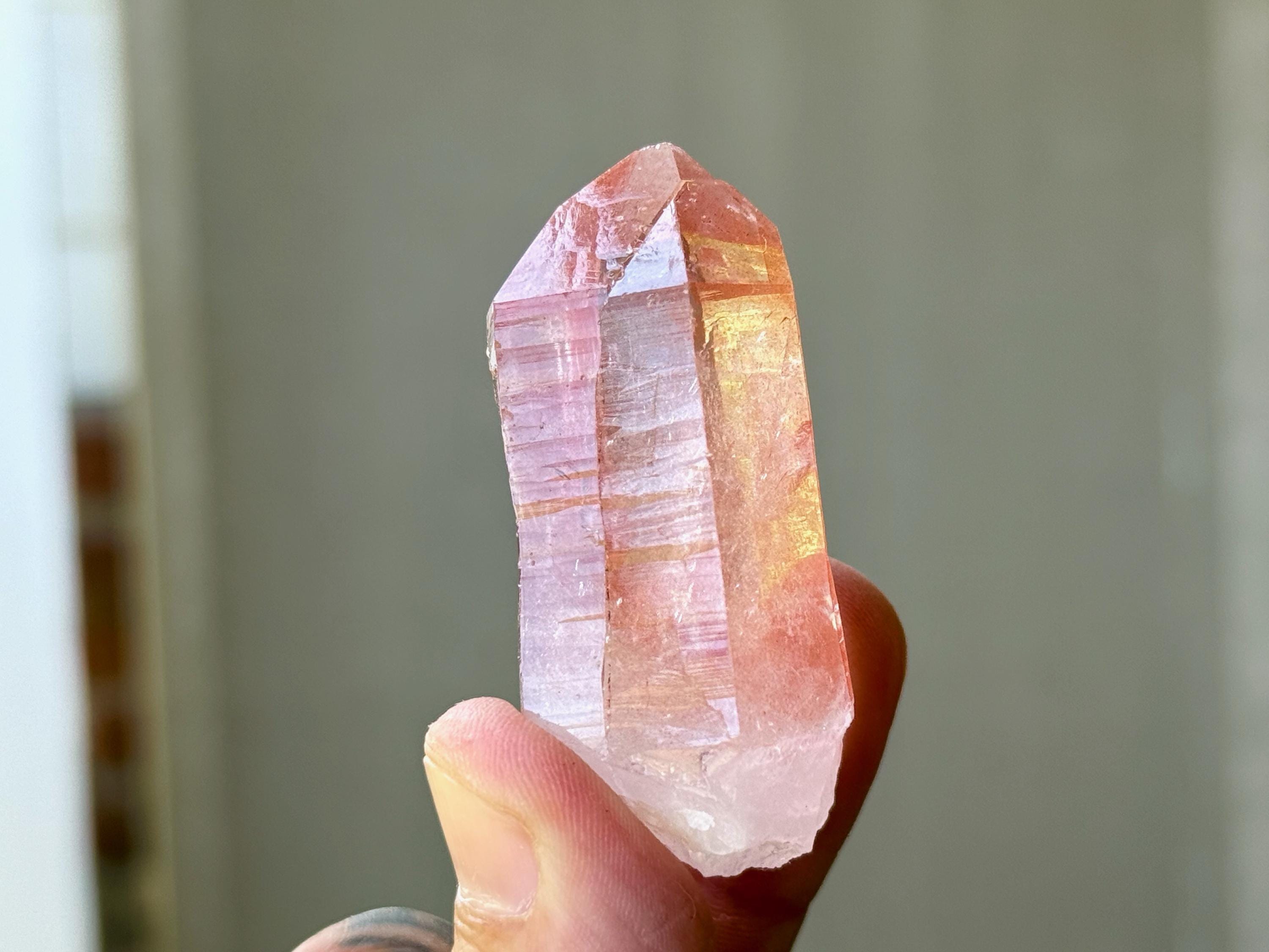 This Scarlet Temple Pink Lemurian Quartz crystal comes from a recent find (2024) in Diamantina, Minas Gerais, Brazil.