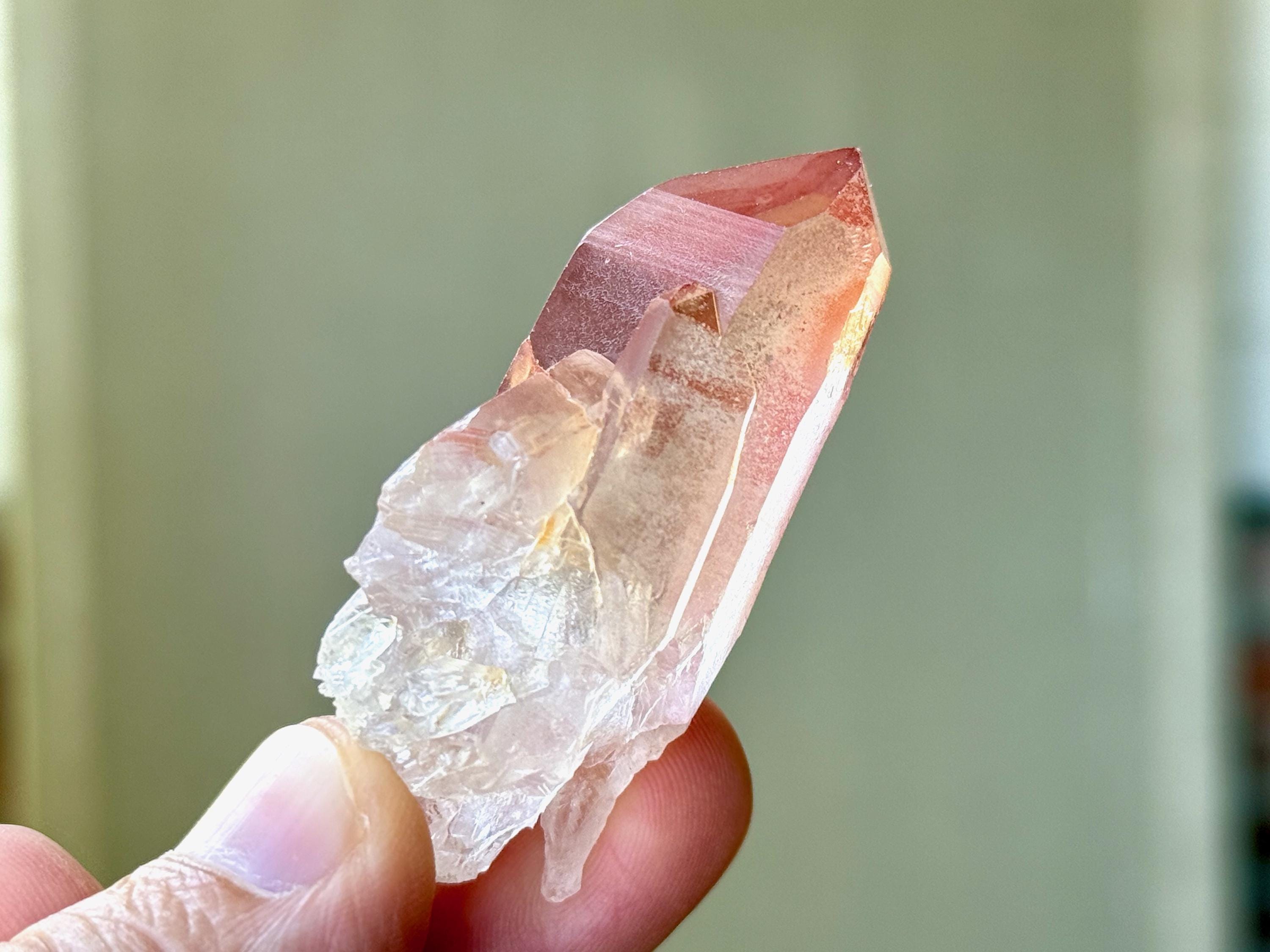 This Scarlet Temple Pink Lemurian Quartz crystal comes from a recent find (2024) in Diamantina, Minas Gerais, Brazil.