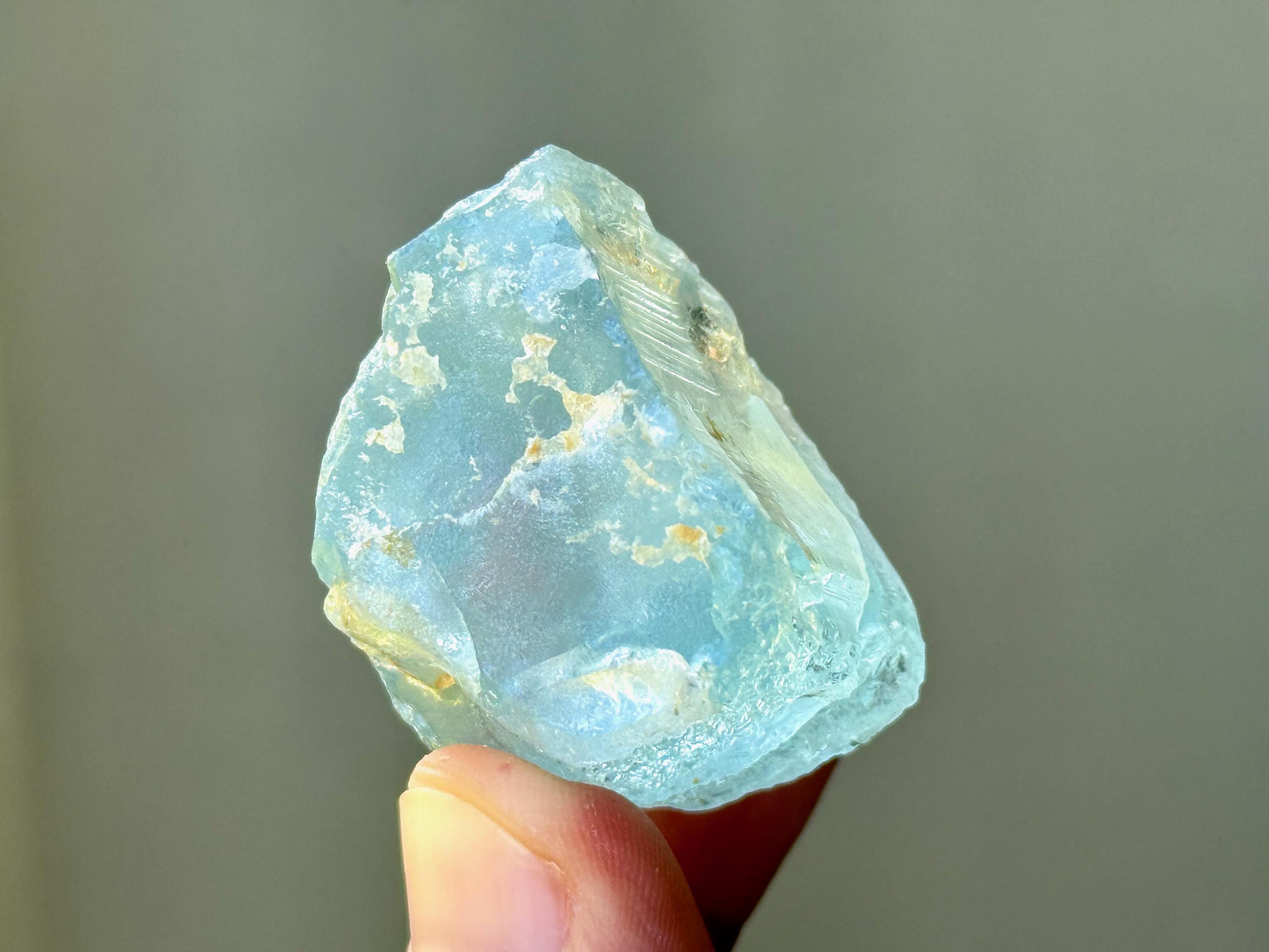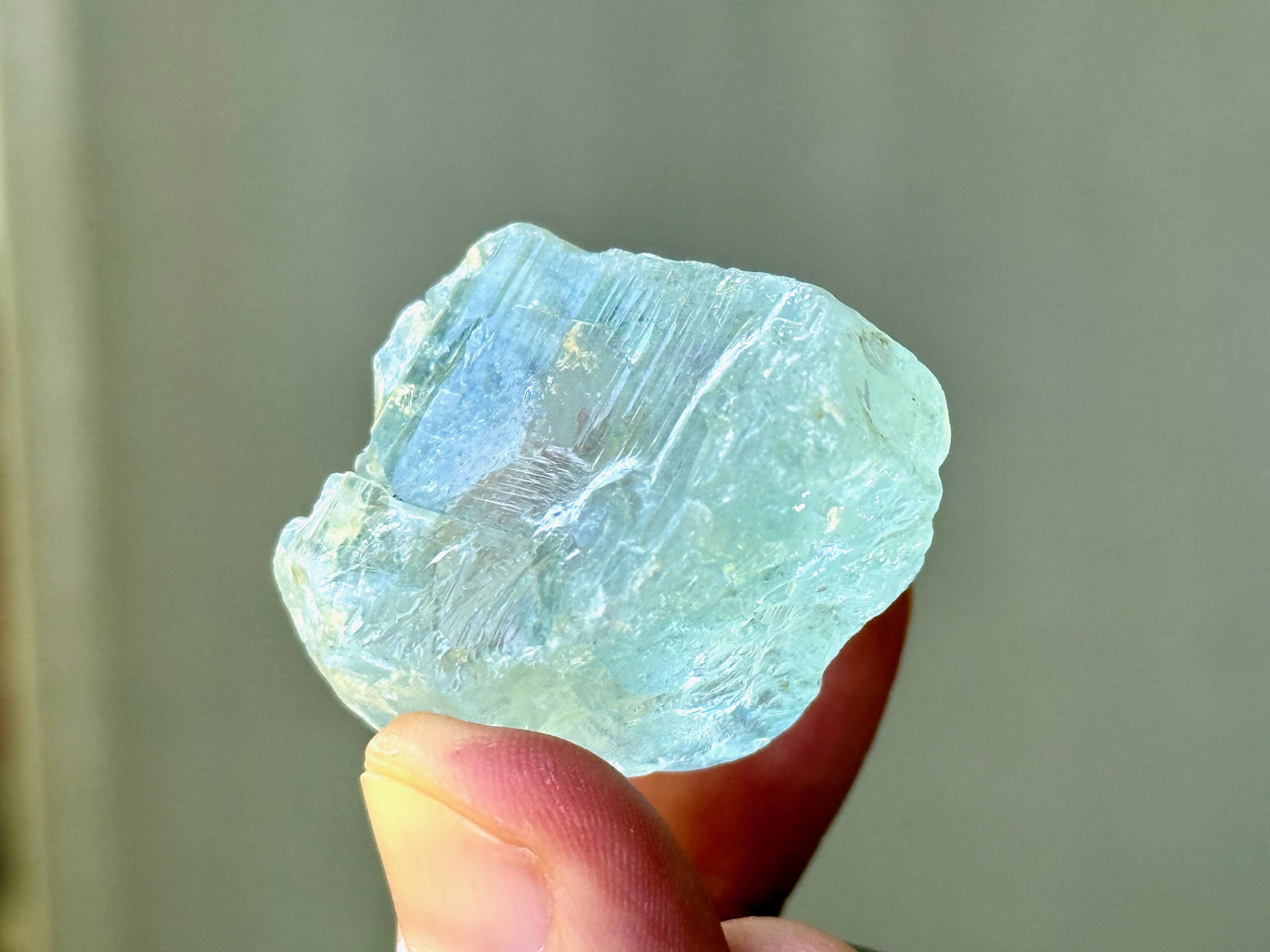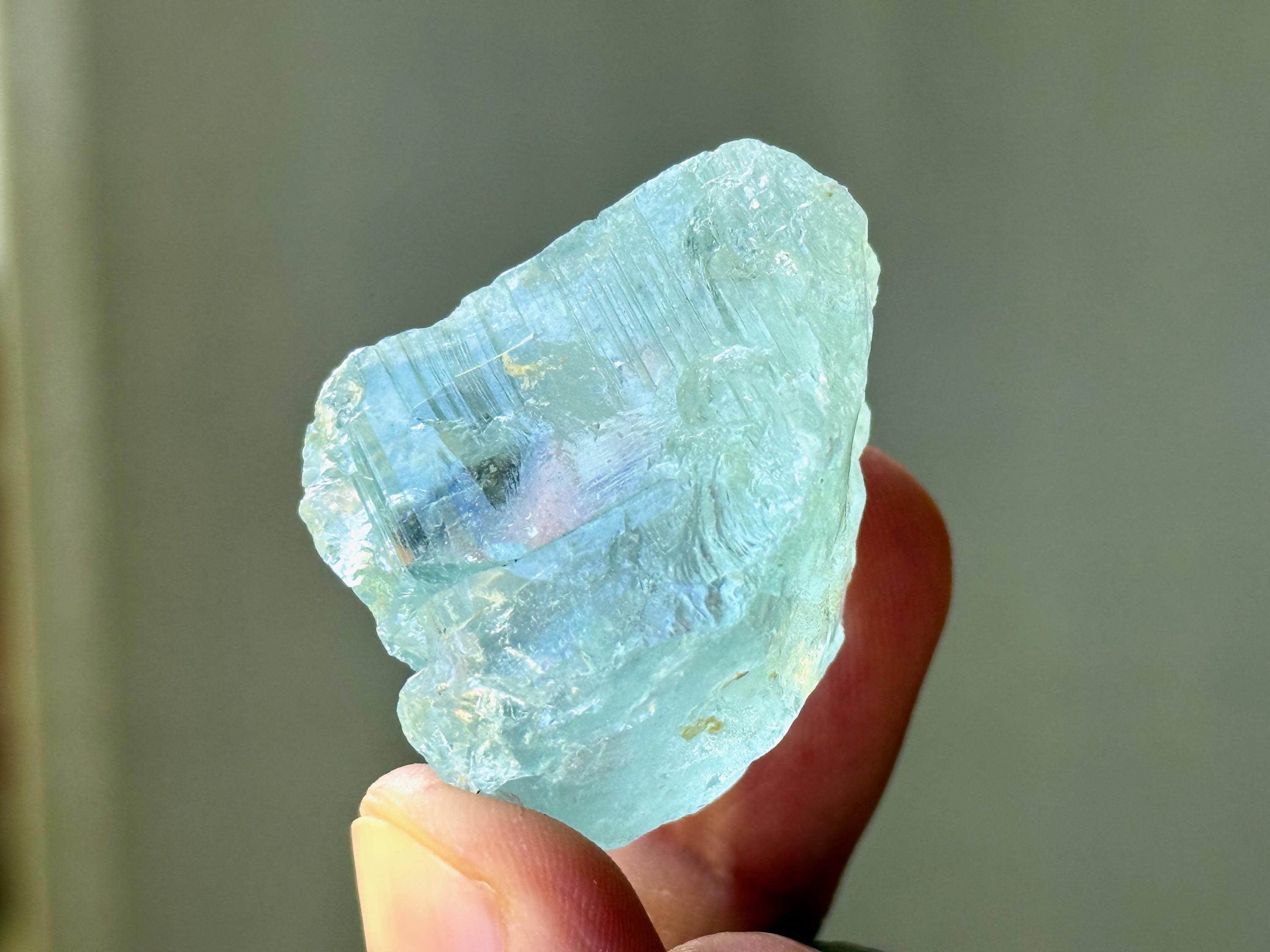 One of the largest Blue Topaz from this collection, this crystal features brilliant luster and an icy blue color. It's like a gorgeous blue ice cube of a crystal! When backlit, as in Photo 6, we can see how beautifully it lights up.