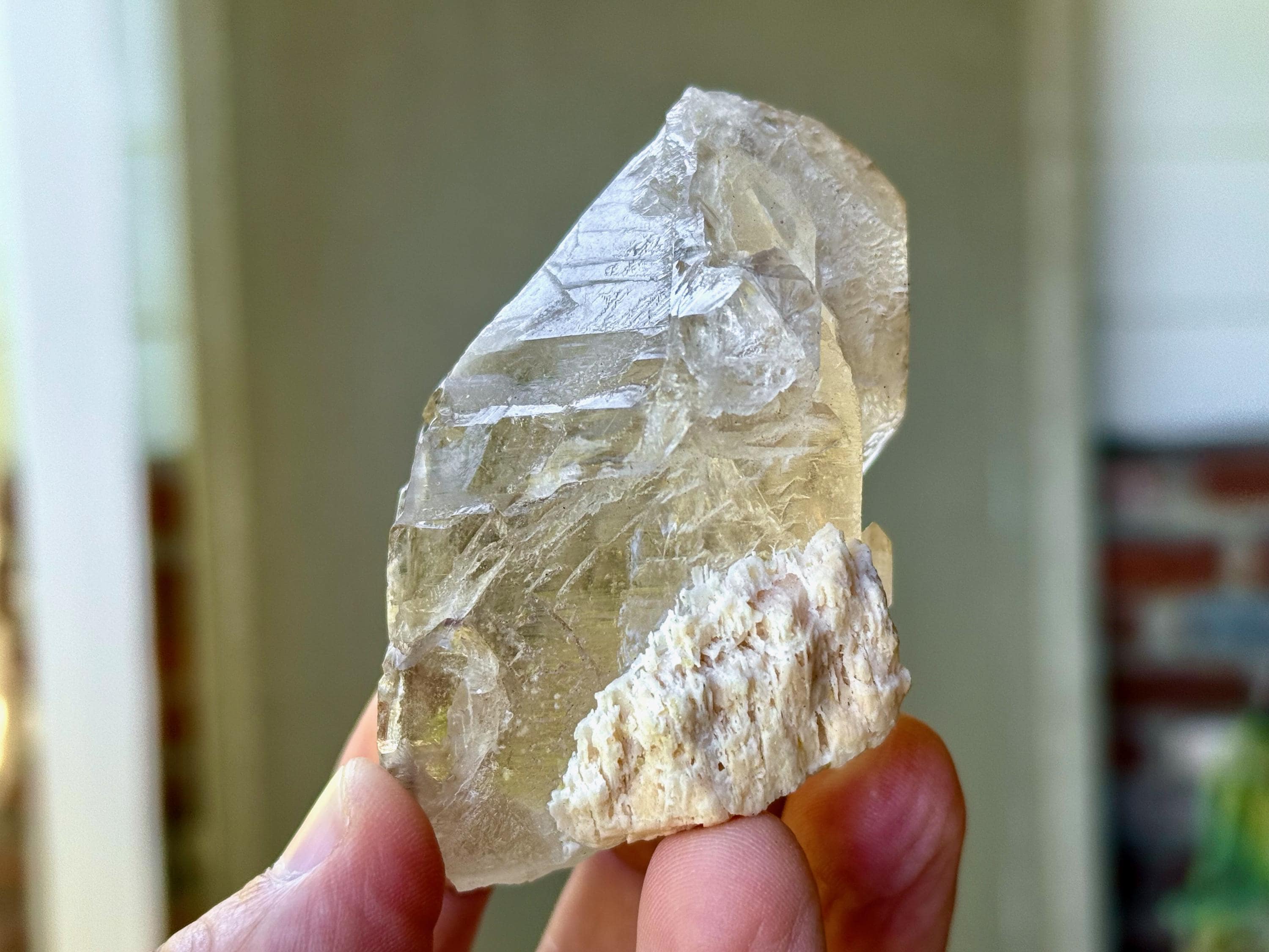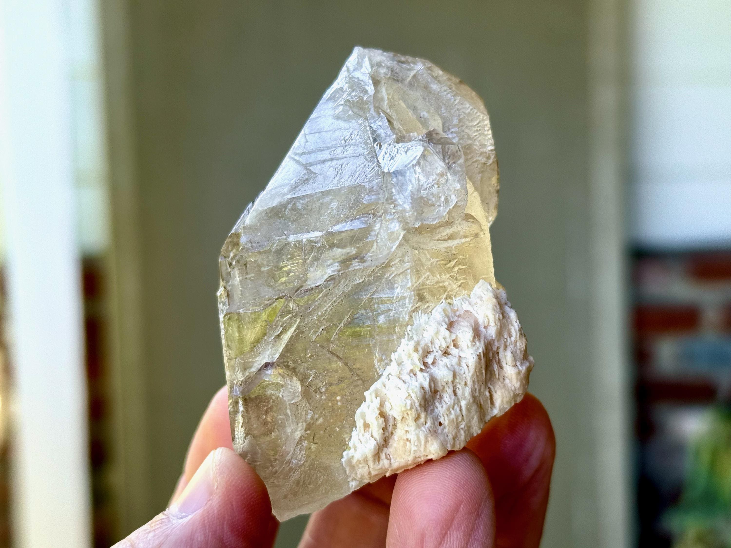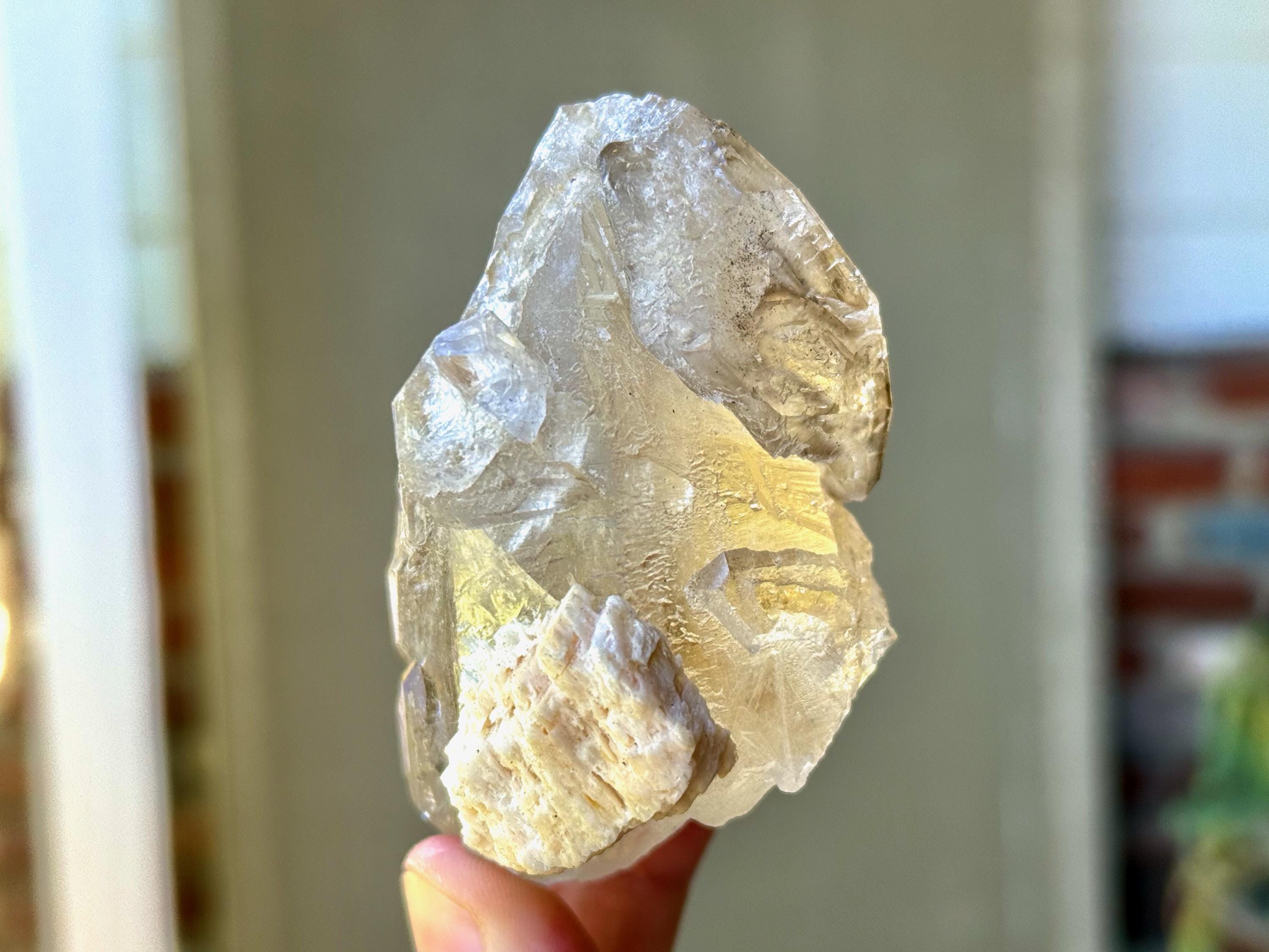 This natural Elestial Citrine with Feldspar comes from the Aracuai region of Minas Gerais, Brazil. Citrine activates, opens, and energizes the Solar Plexus and Navel Chakras, releasing personal power, creativity and most importantly the ability to manifest.