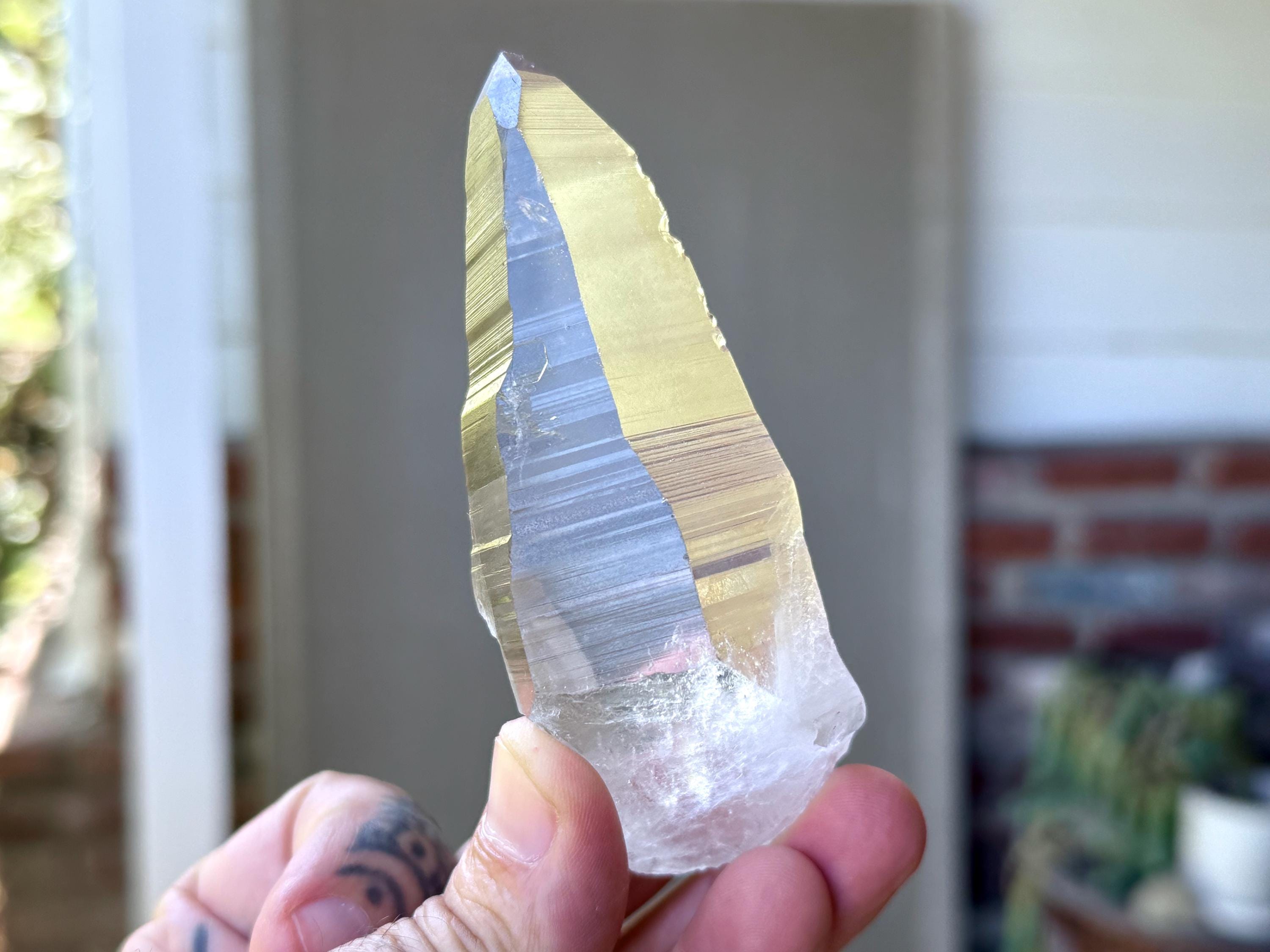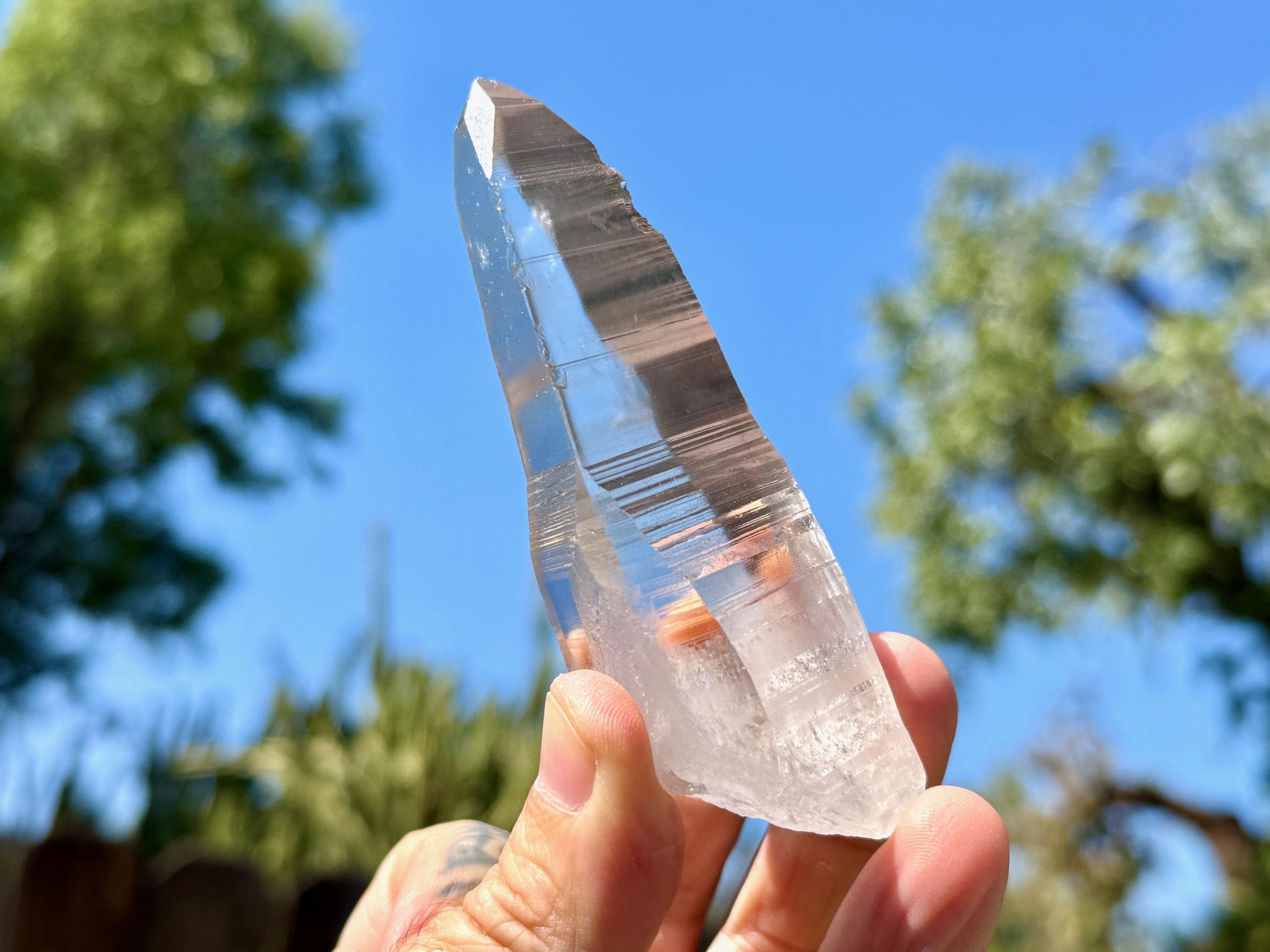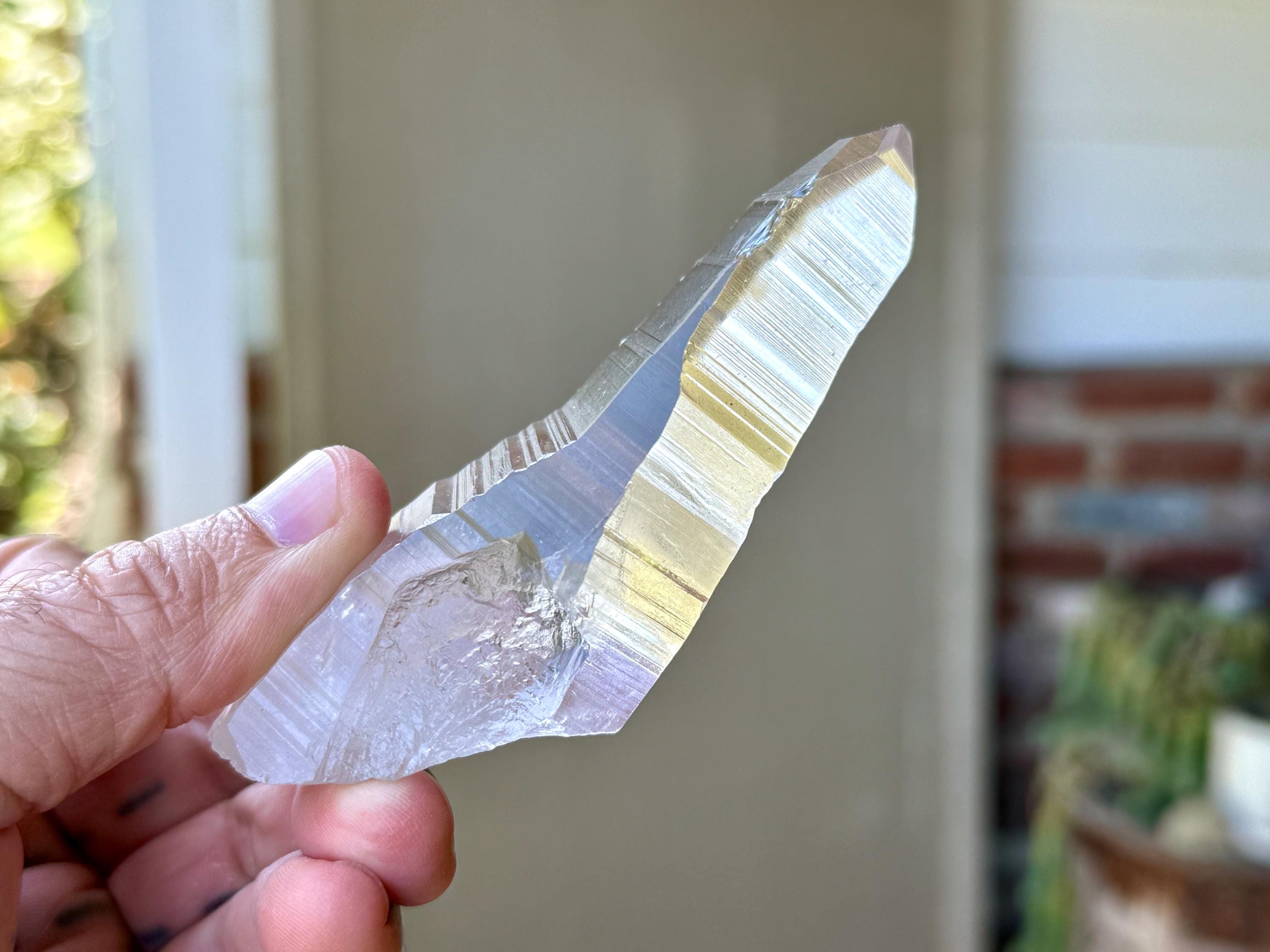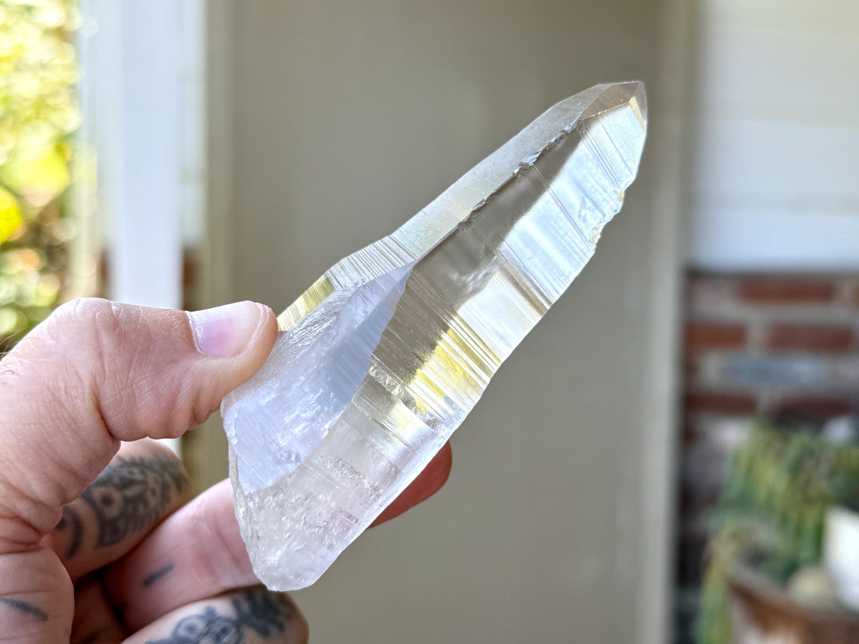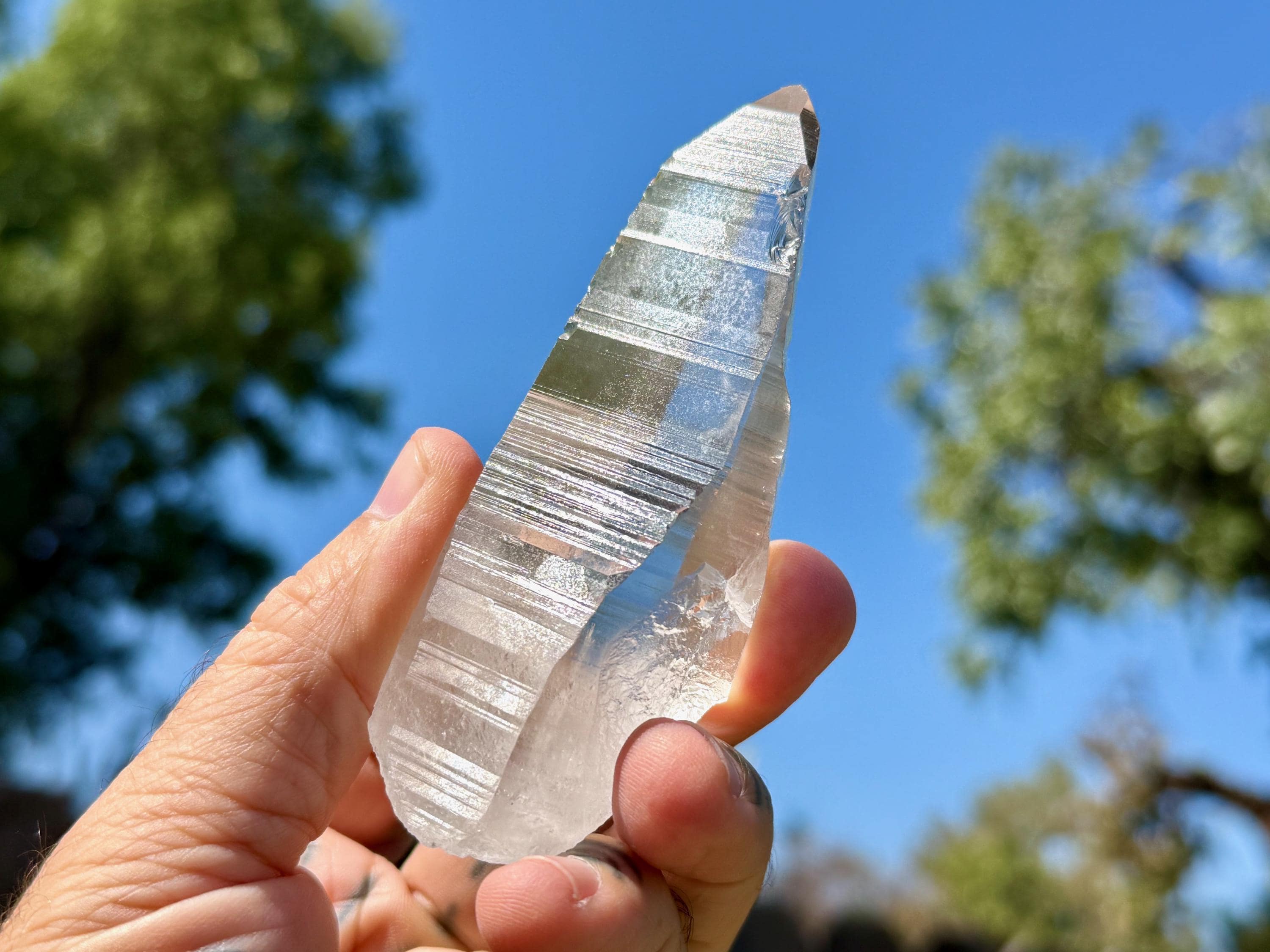 Lemurian Quartz resonates with all chakras, but primarily the Crown Chakra. It has one of the highest vibrations of any crystal and is a beautiful companion for meditation and to realign energies in the body. It can assist in clearing blockages in one's energy field and/or chakras, dispelling heavy energies from the body. If there is stagnant energy in the body, it can help to increase Prana (life force) energy to get things moving properly again. Meditating with Lemurian Crystals can allow us to connect with higher-dimensional spirit guides and connect to Divine realms, as well as to decode the information they contain within.