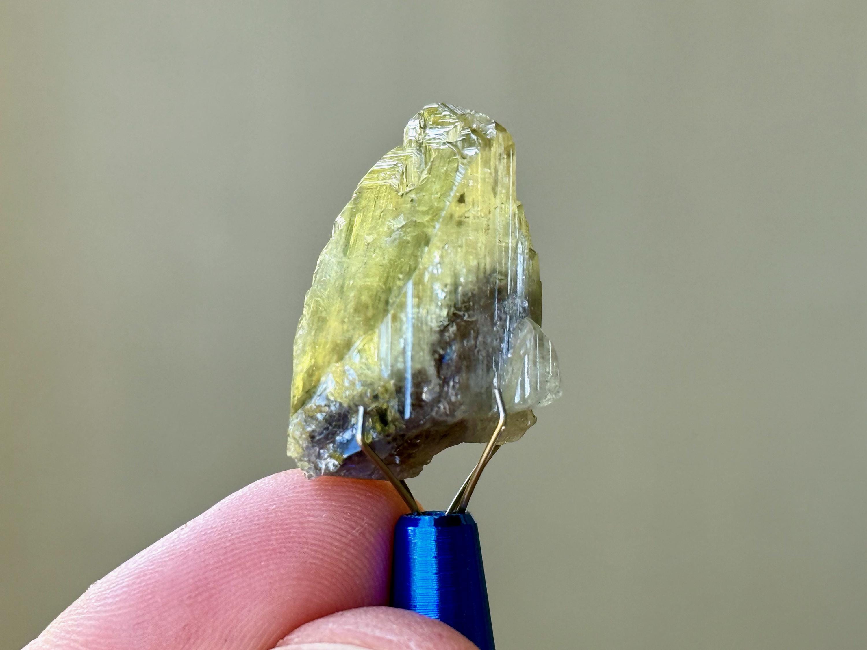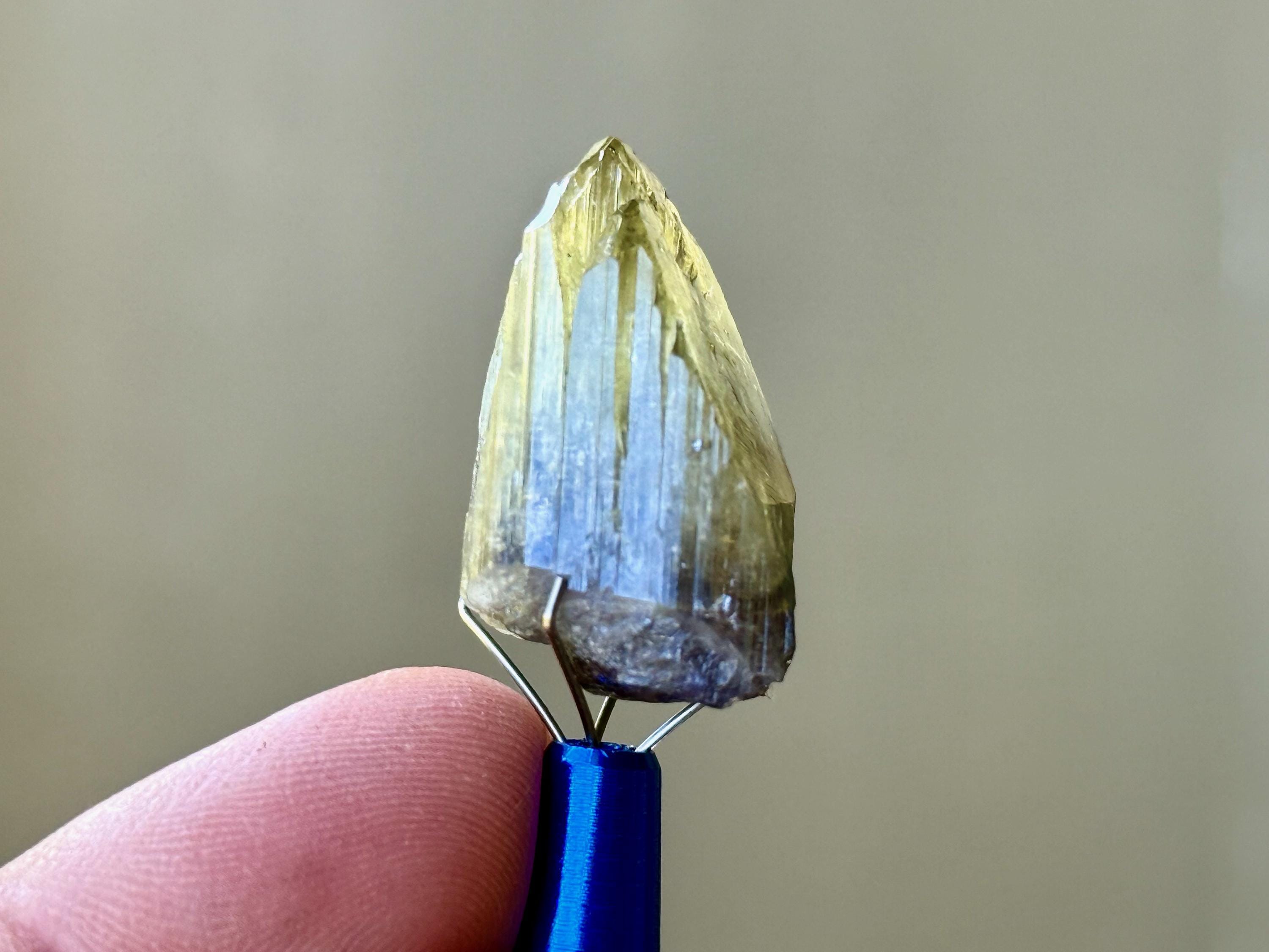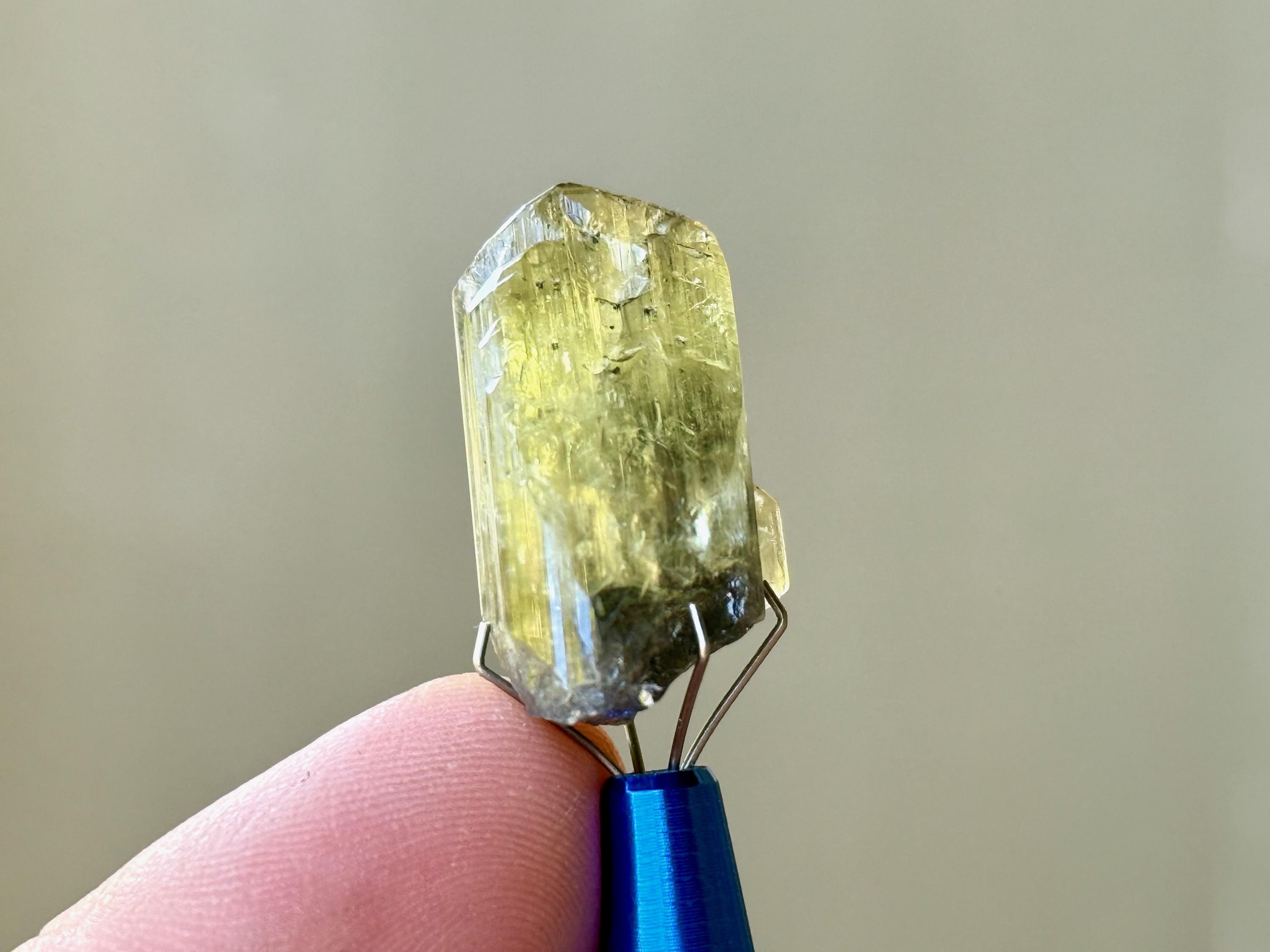 This crystal is highly lustrous and features a broad and sloping main facet and gorgeous vertical ridges. When backlit, it lights up beautifully (Photos 3-4). Looks like there's a natural divot or impression on the right side of the termination, but all natural and beautifully terminated. Tremendous quality!