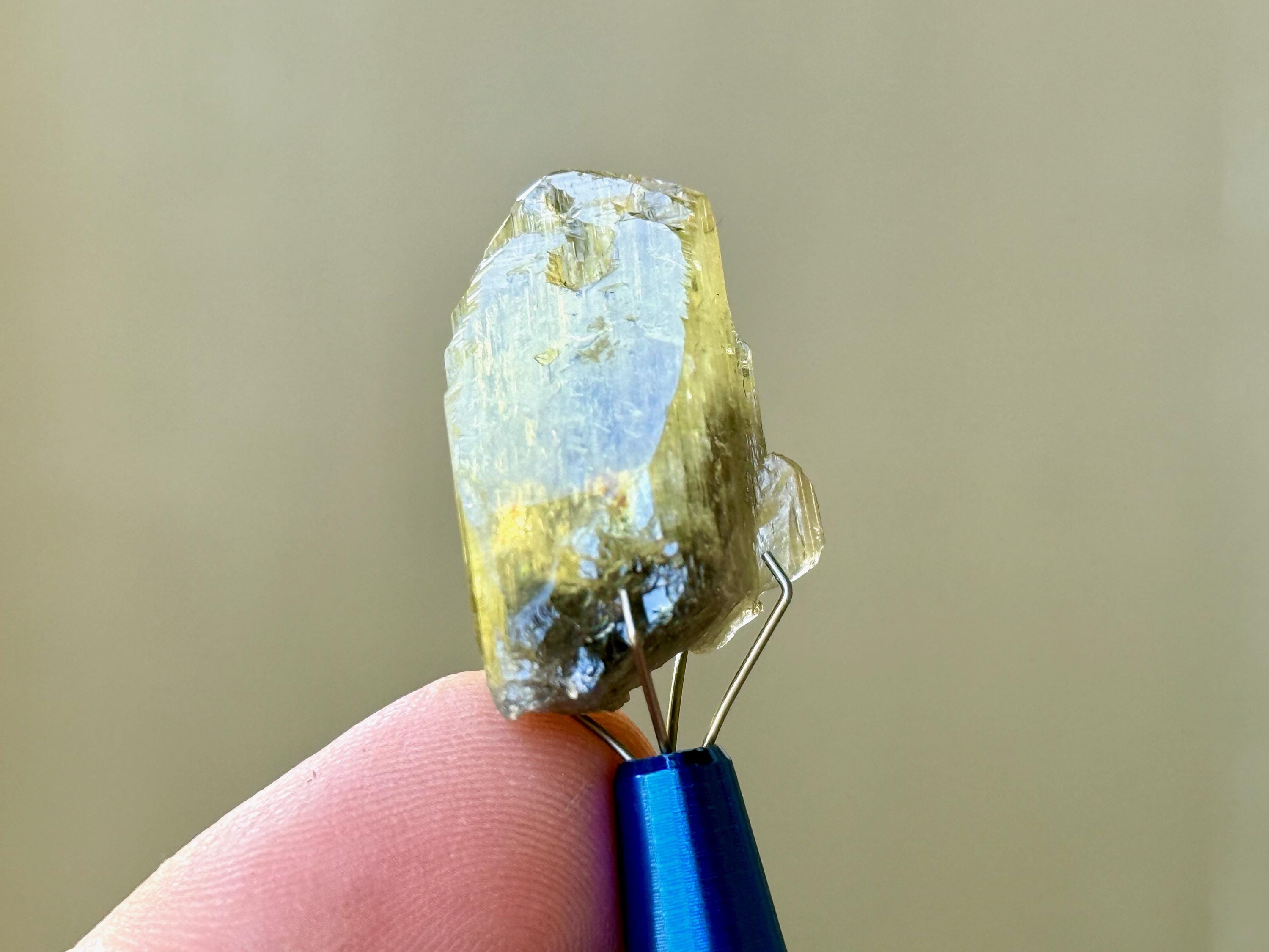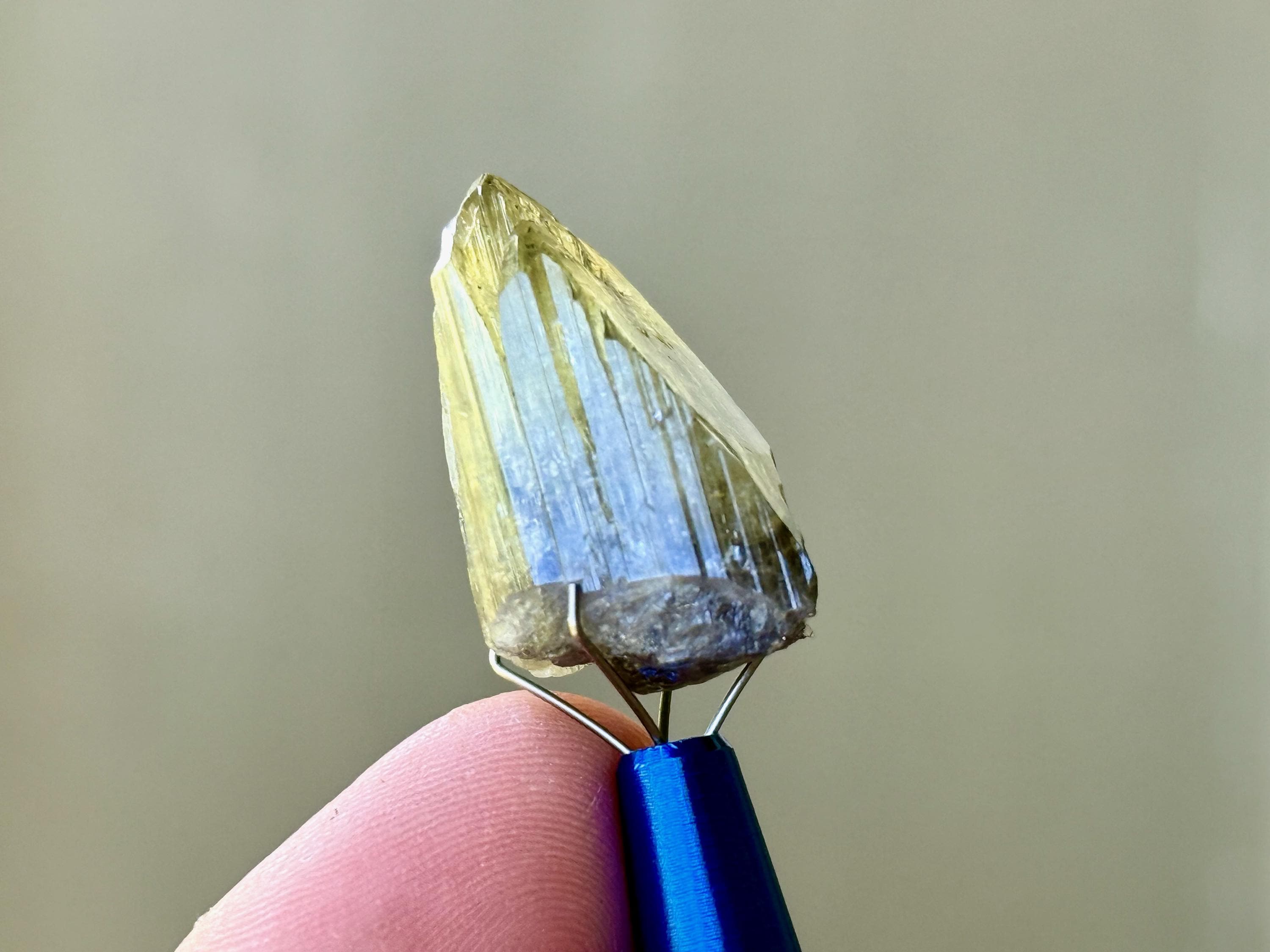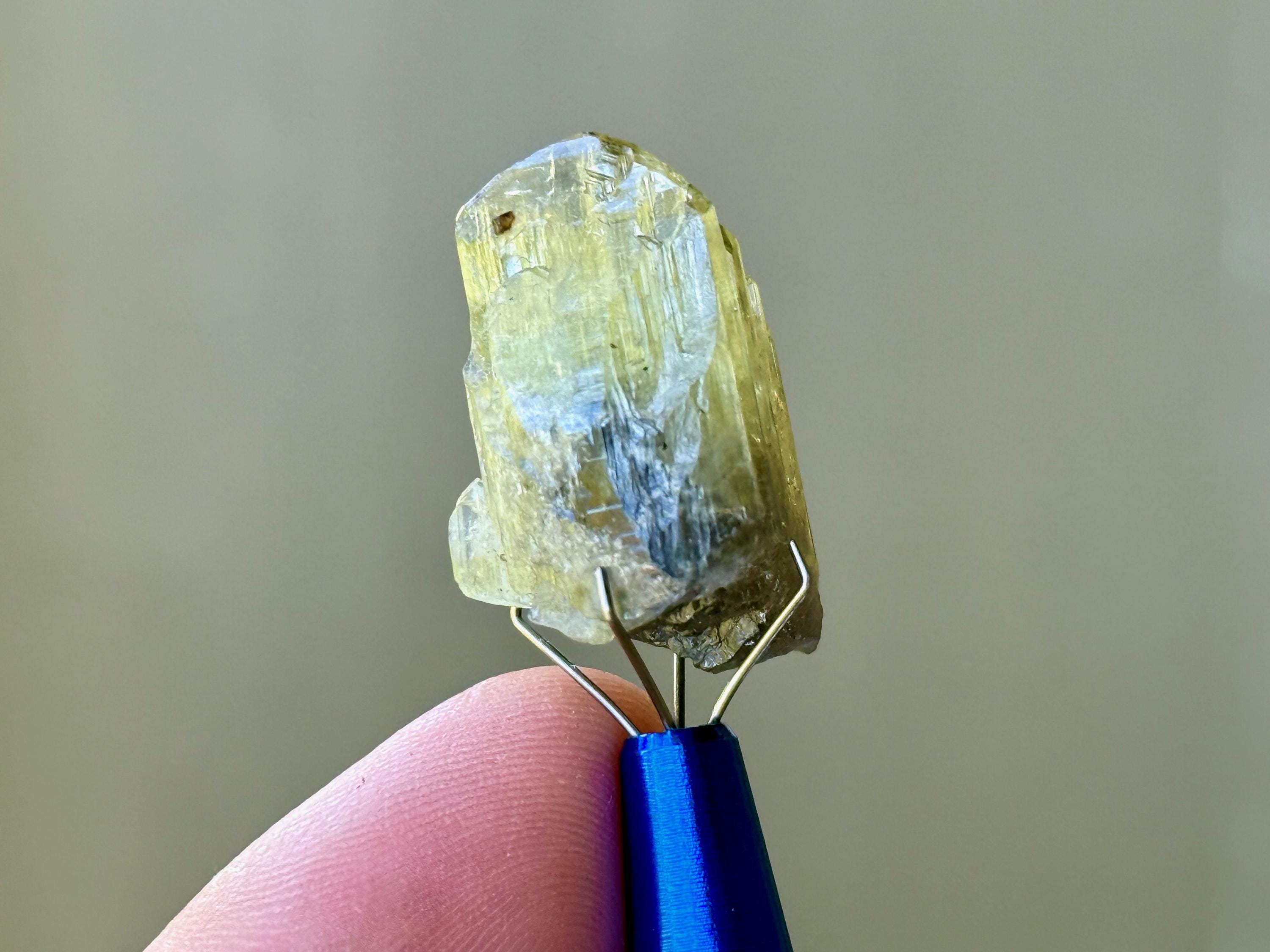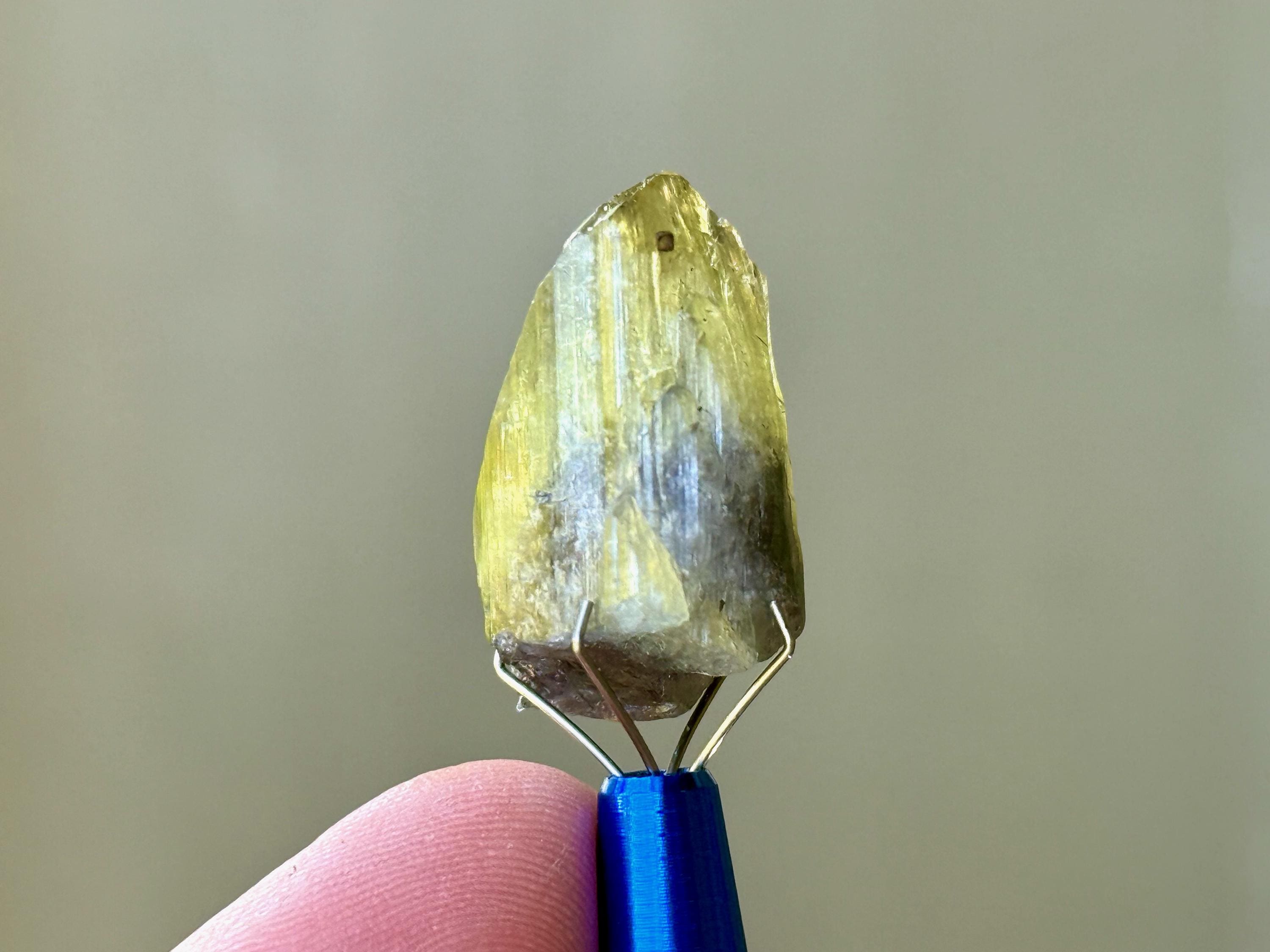 This crystal is highly lustrous and features a broad and sloping main facet and gorgeous vertical ridges. When backlit, it lights up beautifully (Photos 3-4). Looks like there's a natural divot or impression on the right side of the termination, but all natural and beautifully terminated. Tremendous quality!