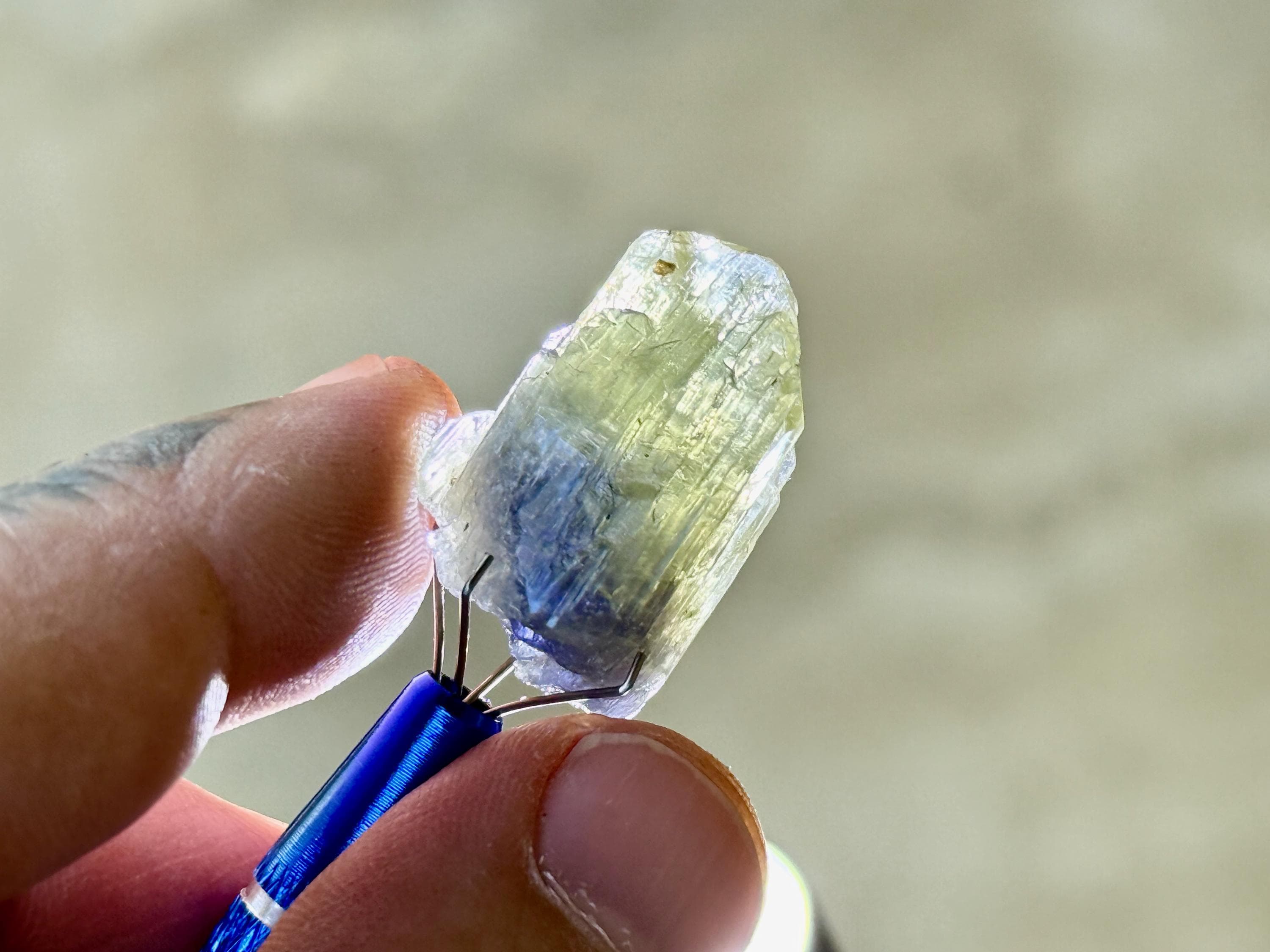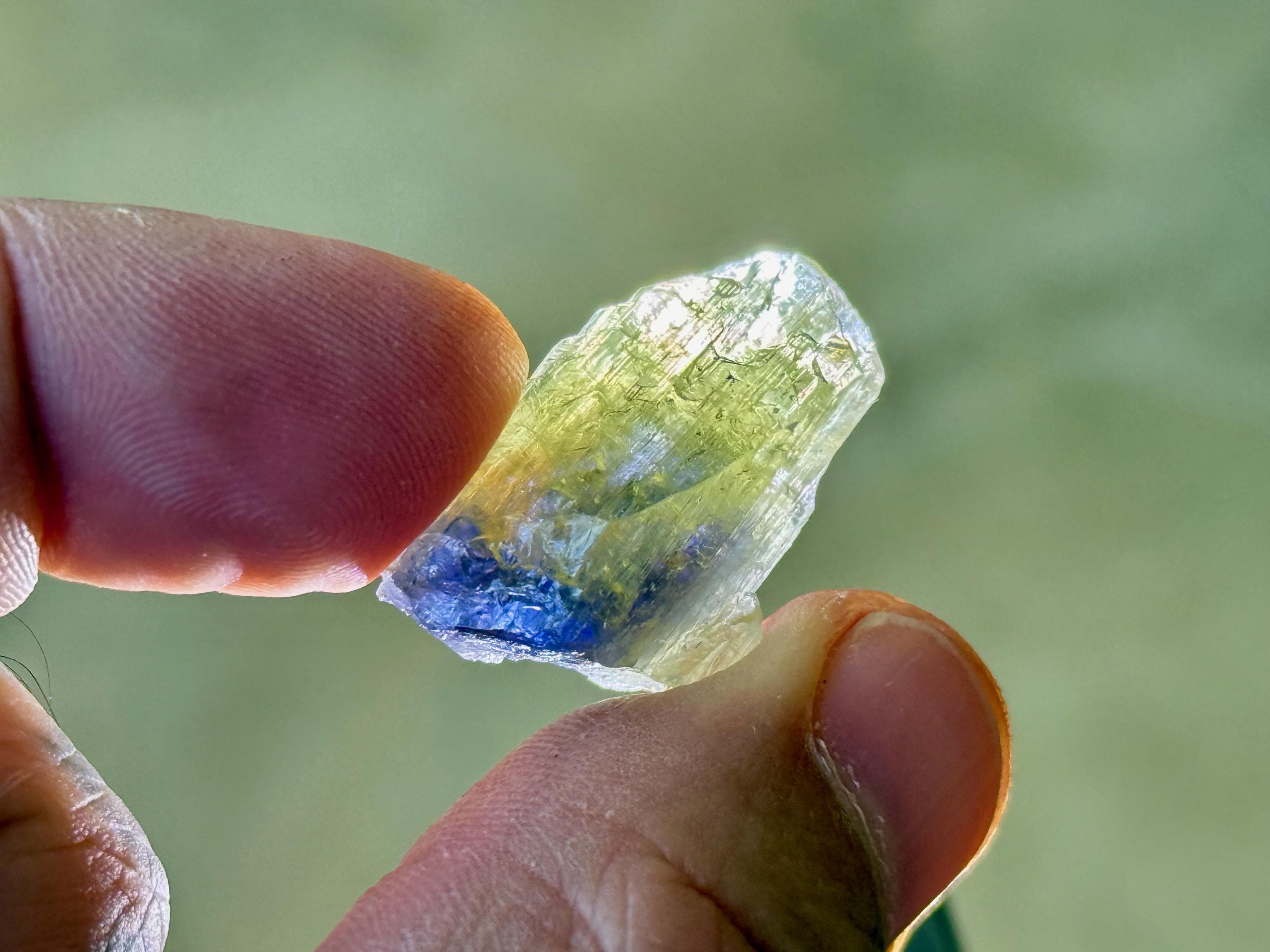 This natural Bicolor Tanzanite crystal comes from a recent find in Tanzania.