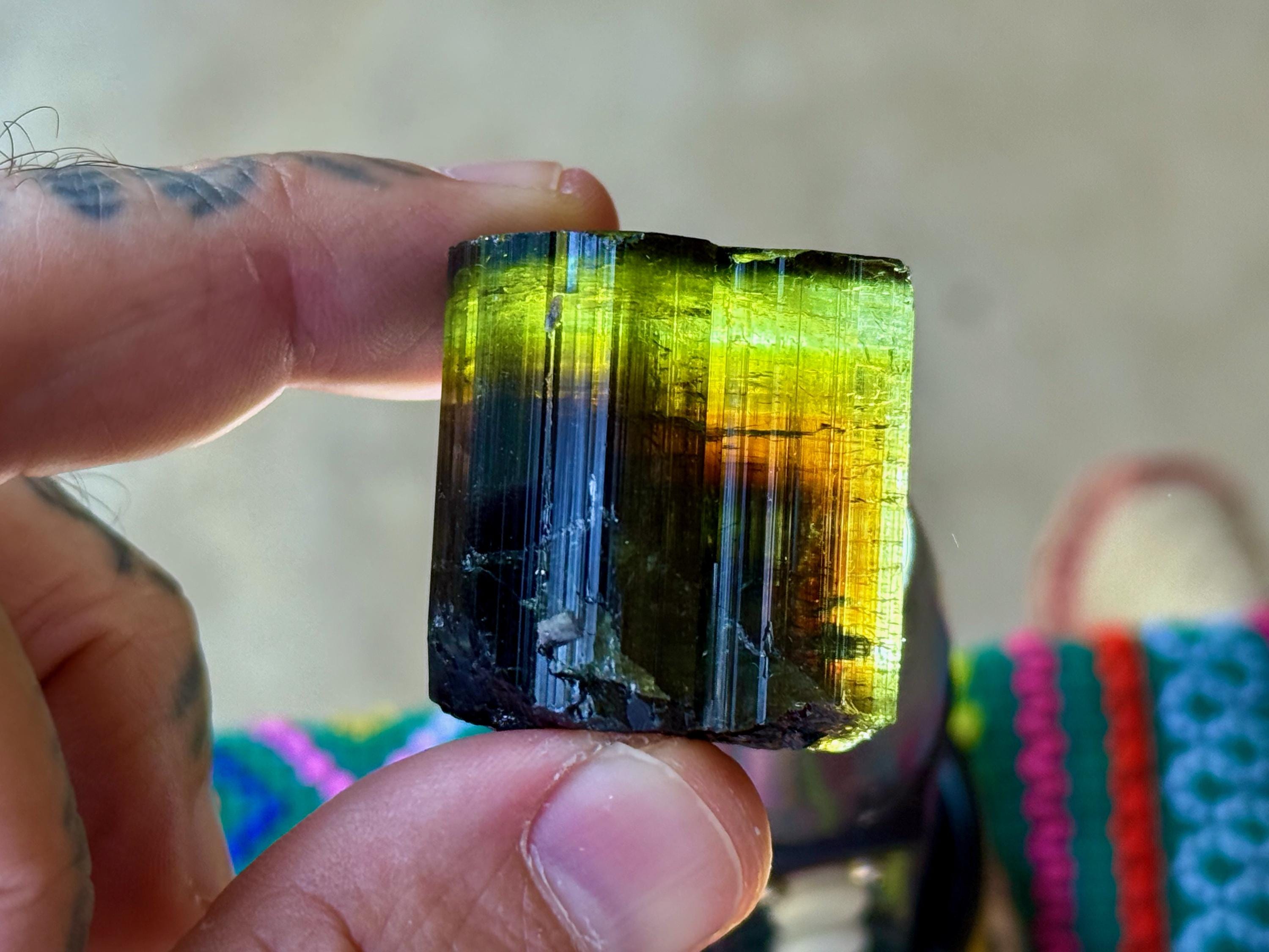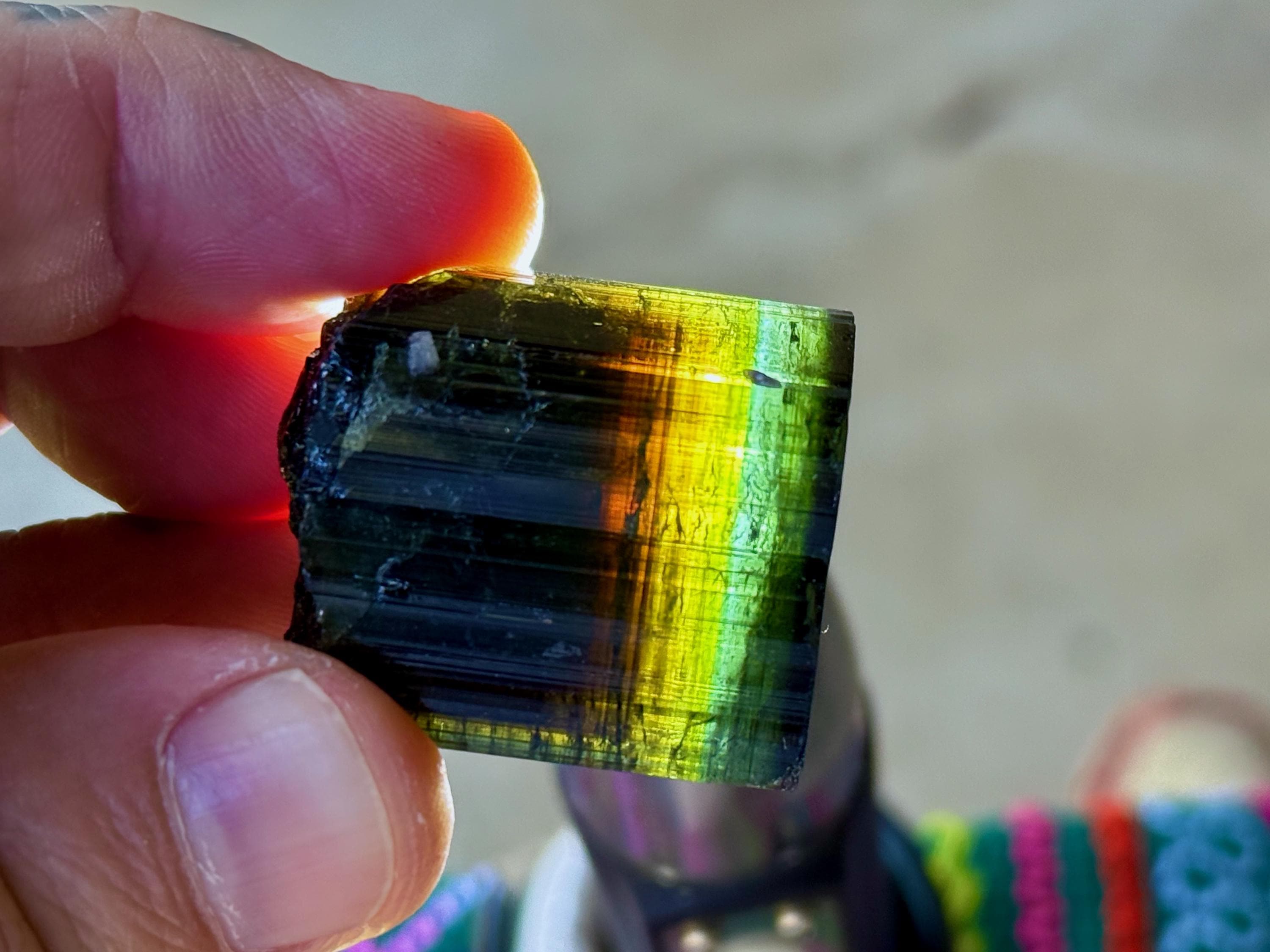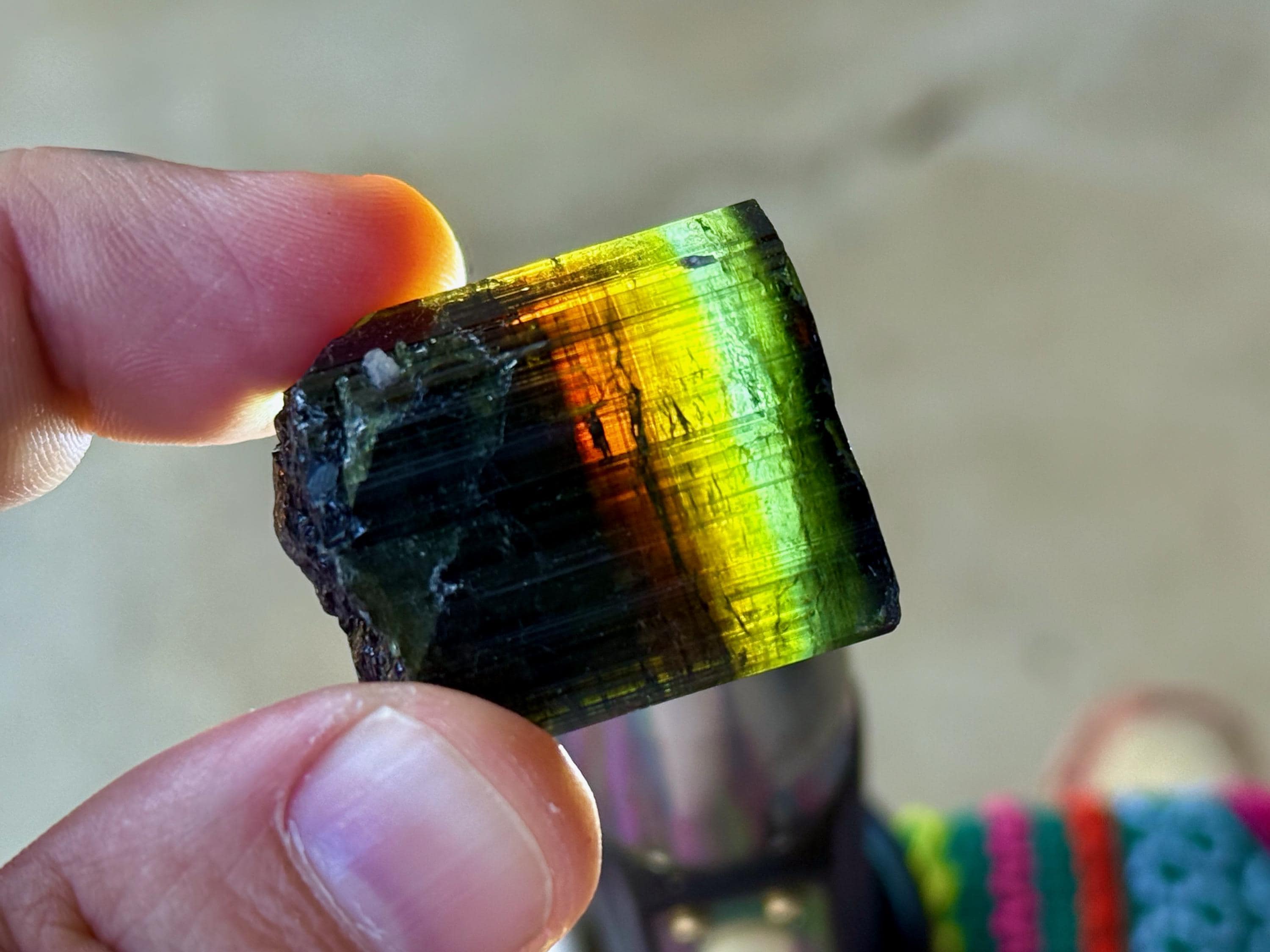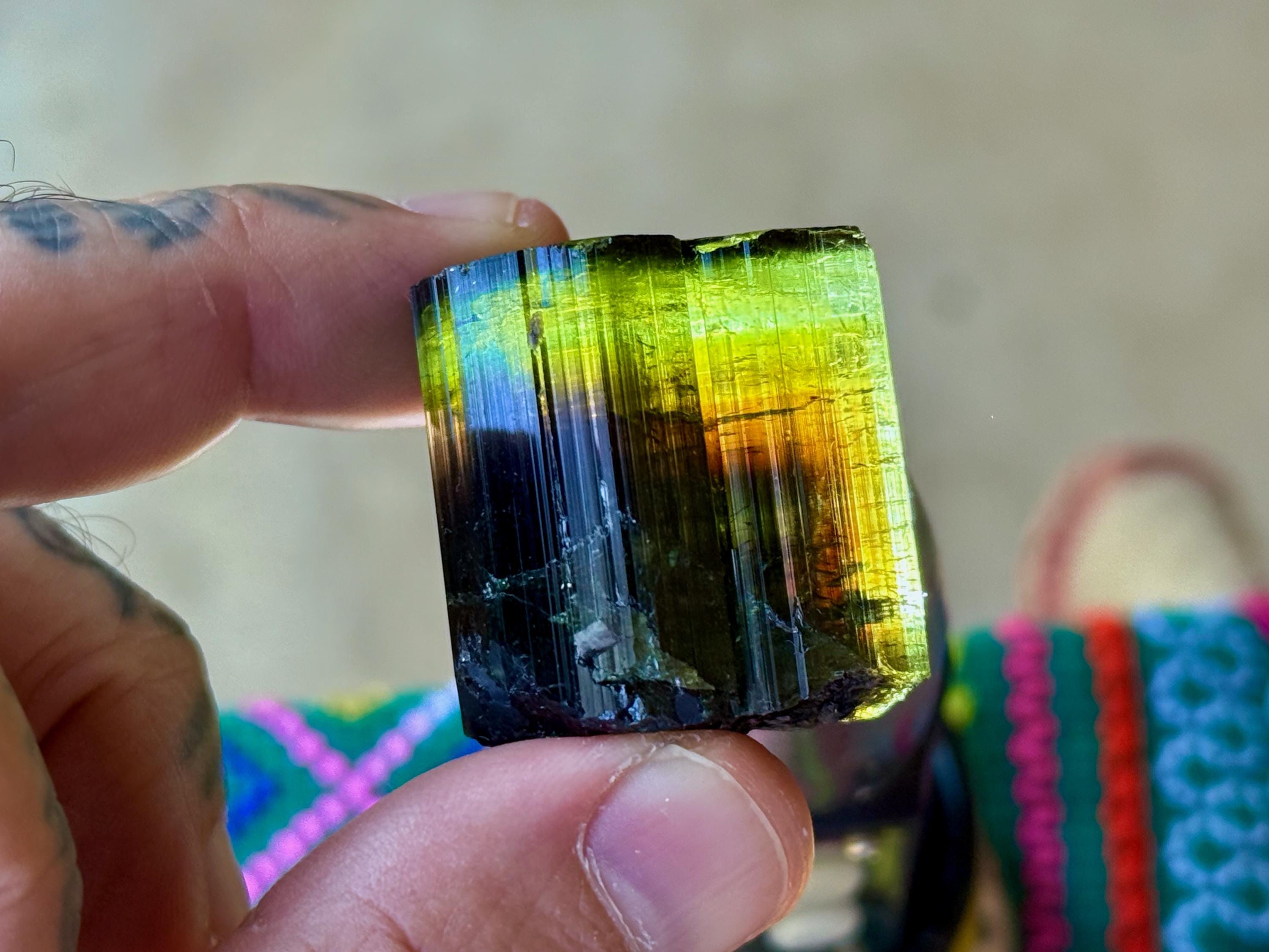 This exceptional Multicolor Tourmaline comes from a new (2025) find in Coronel Murta, Minas Gerais, Brazil. This crystal is all-natural and possesses banded colors of Orange, Pink, Blue and Green.