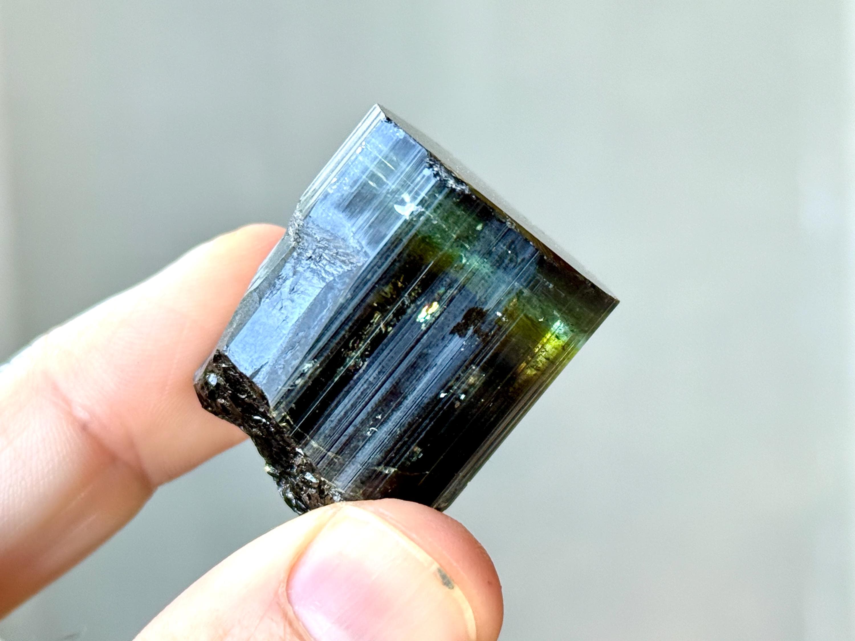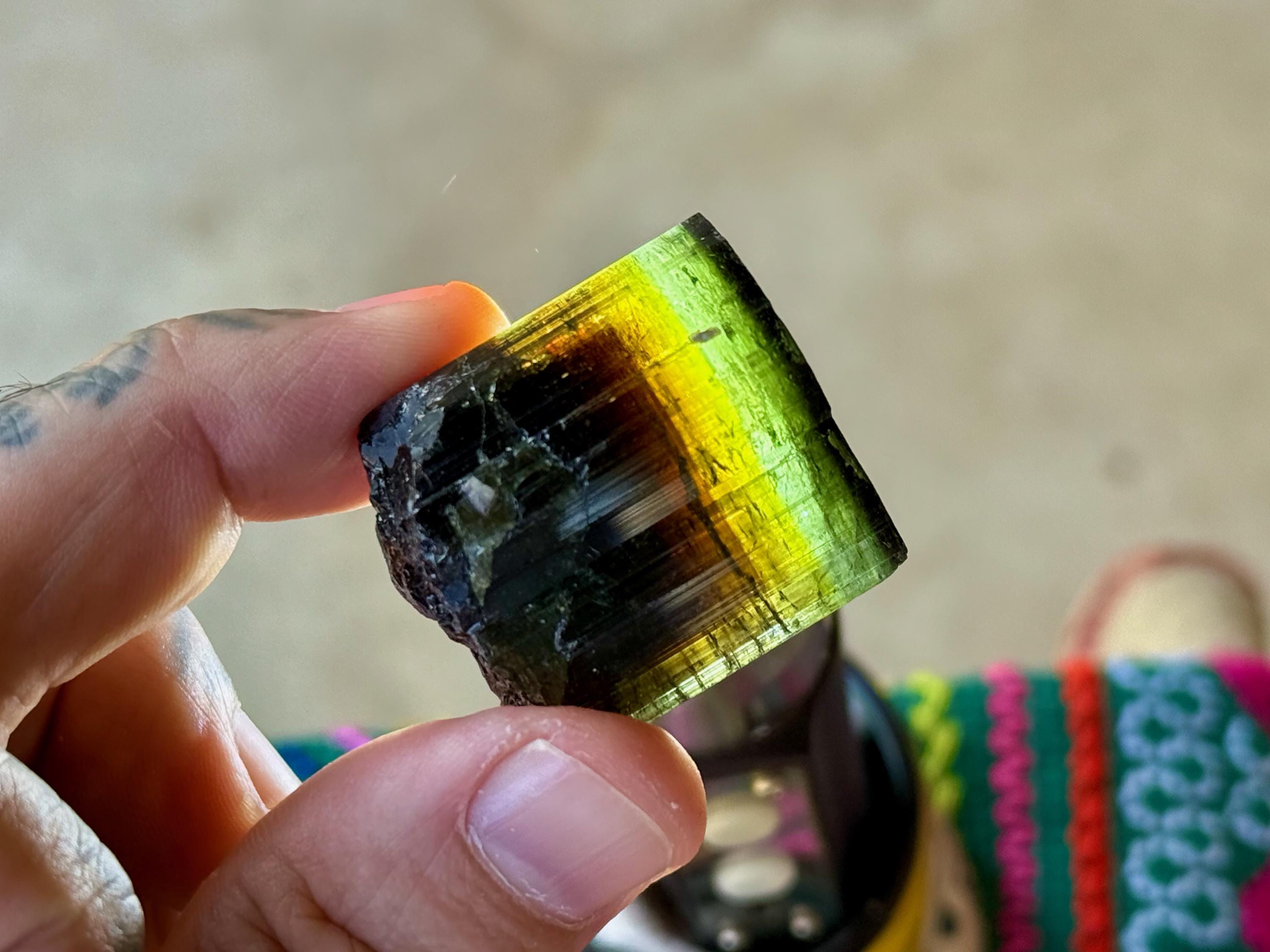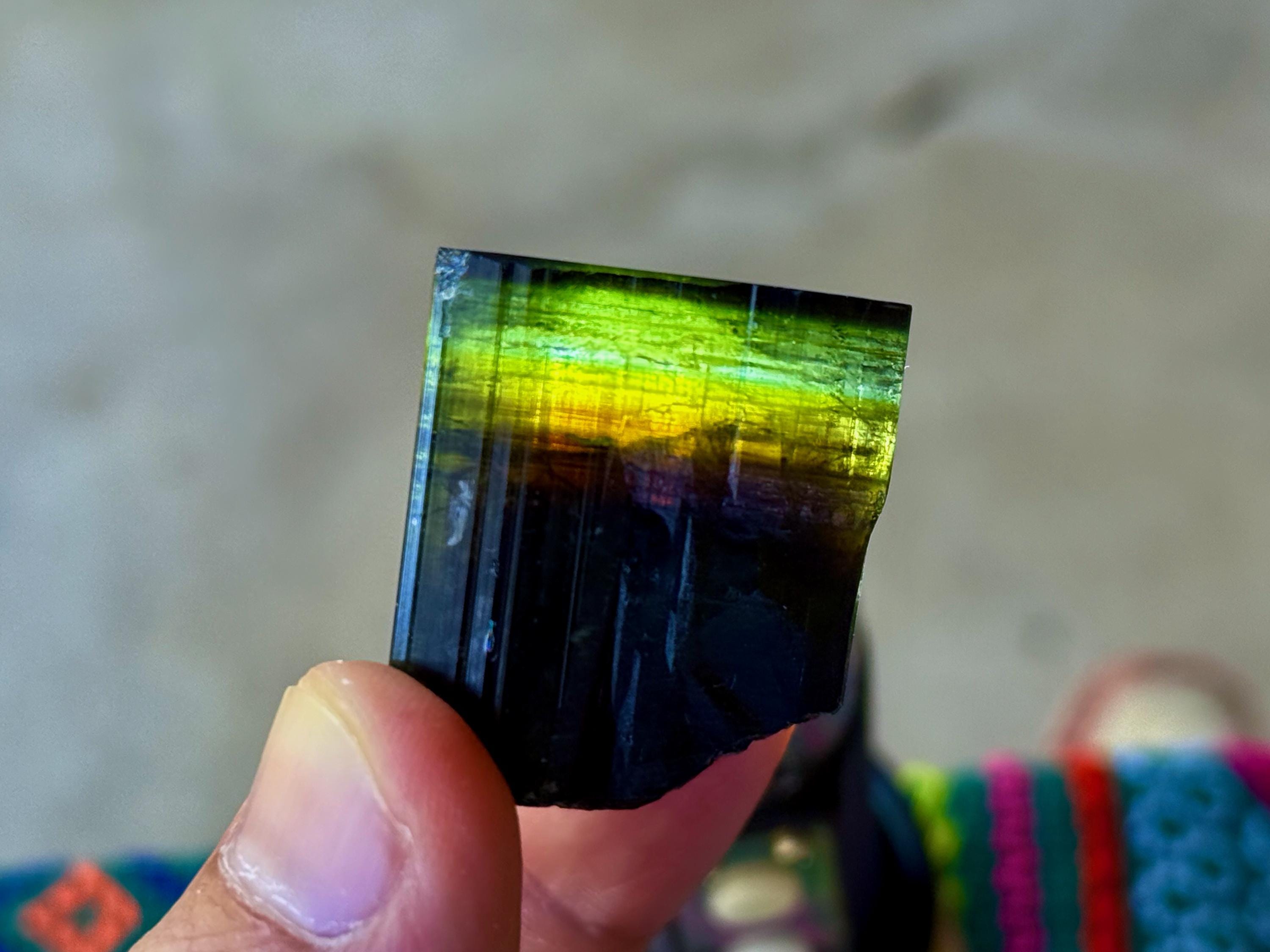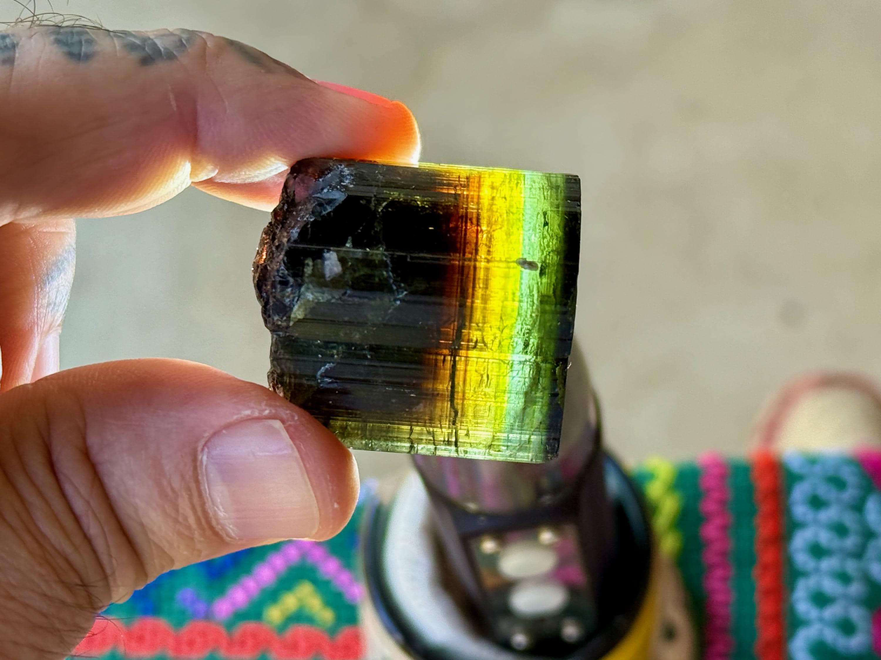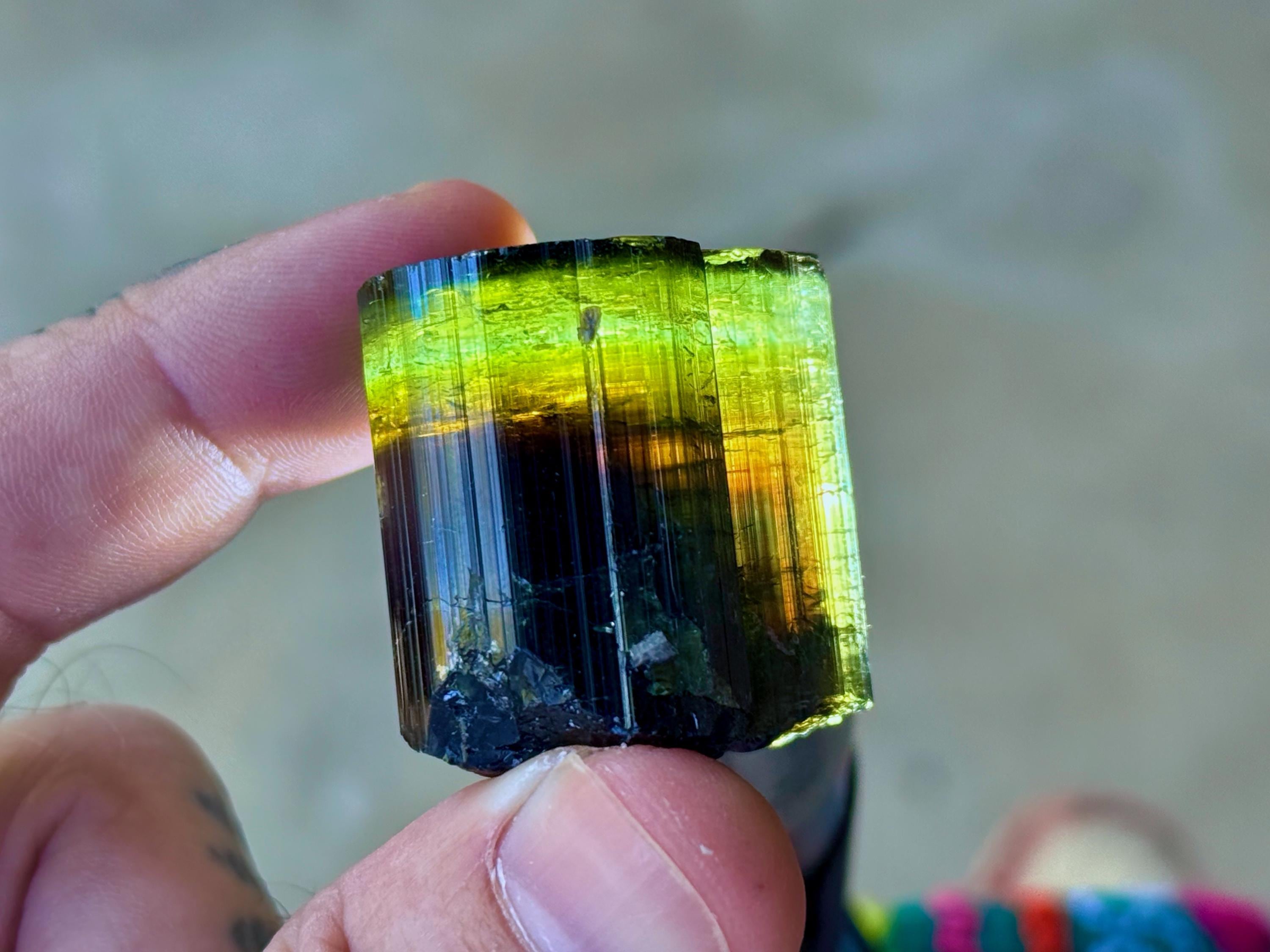 This exceptional Multicolor Tourmaline comes from a new (2025) find in Coronel Murta, Minas Gerais, Brazil. This crystal is all-natural and possesses banded colors of Orange, Pink, Blue and Green.