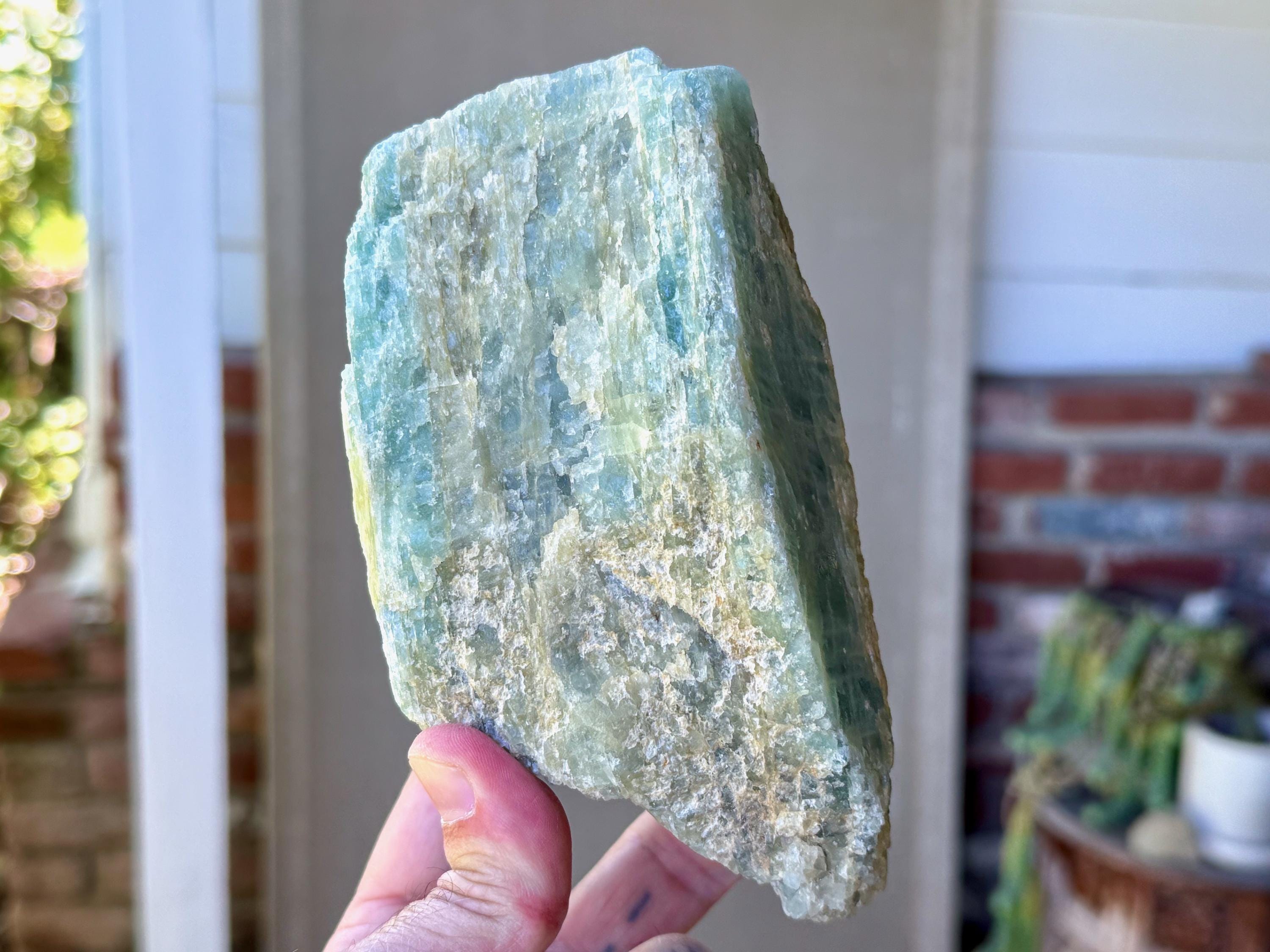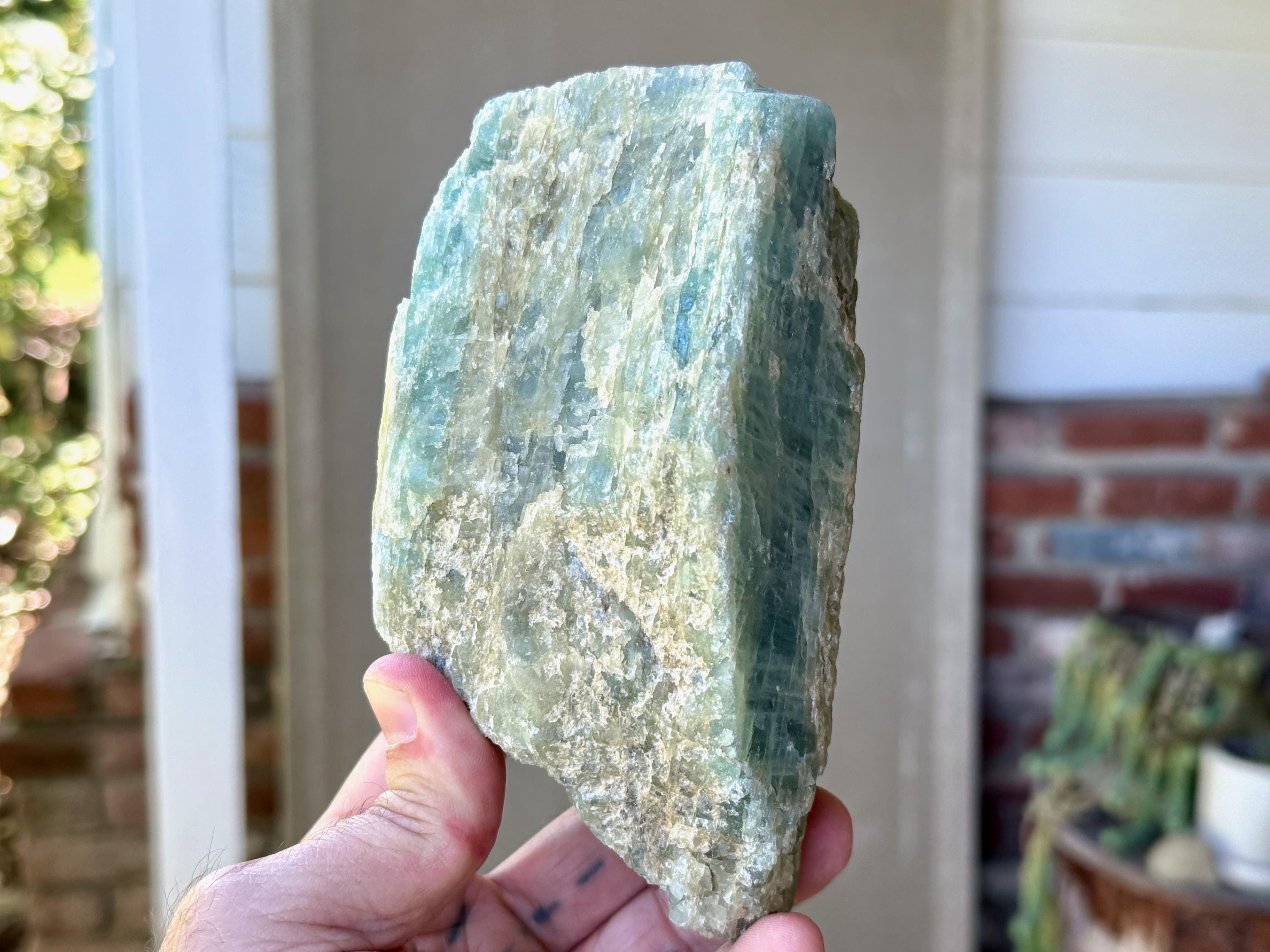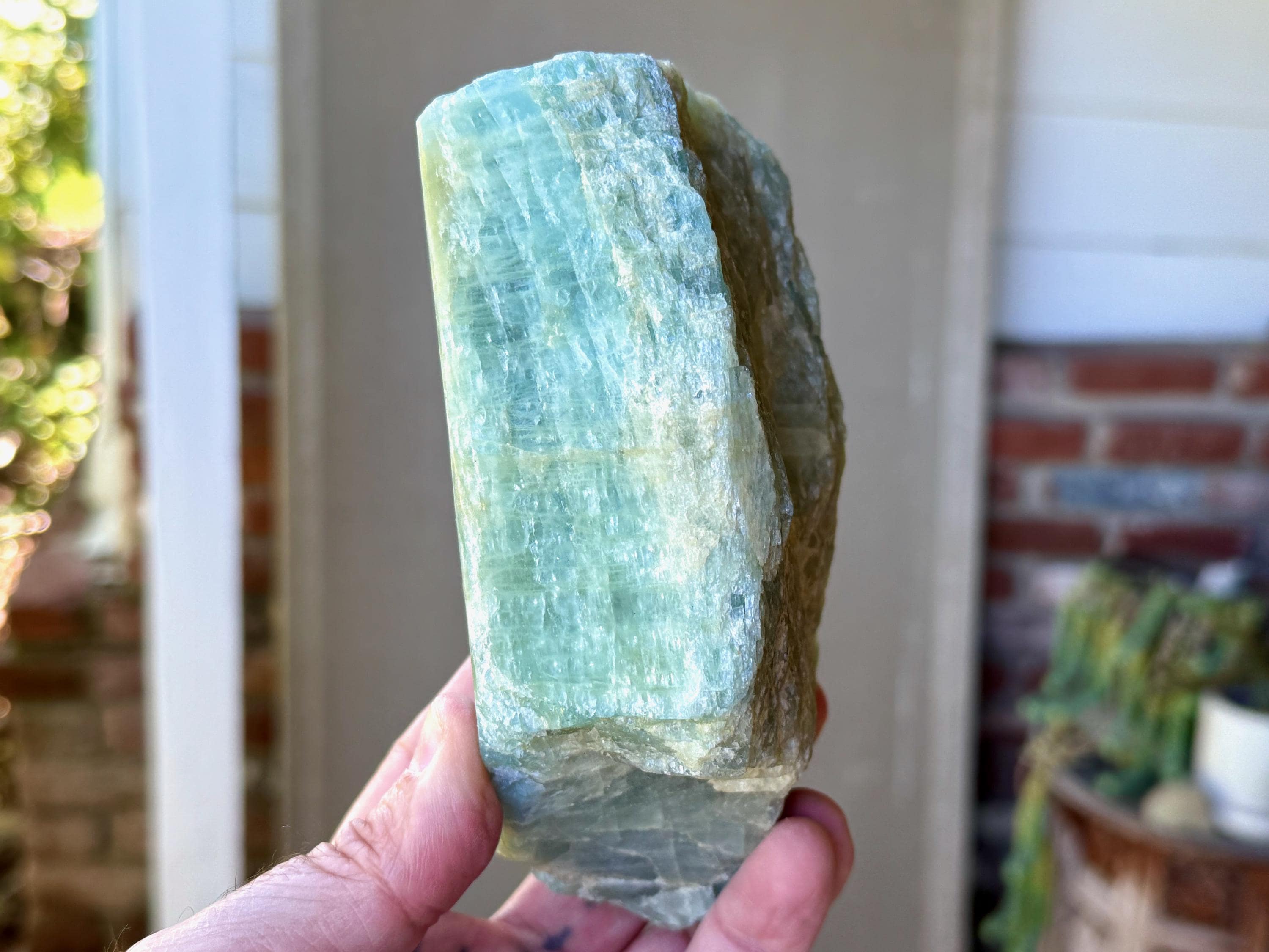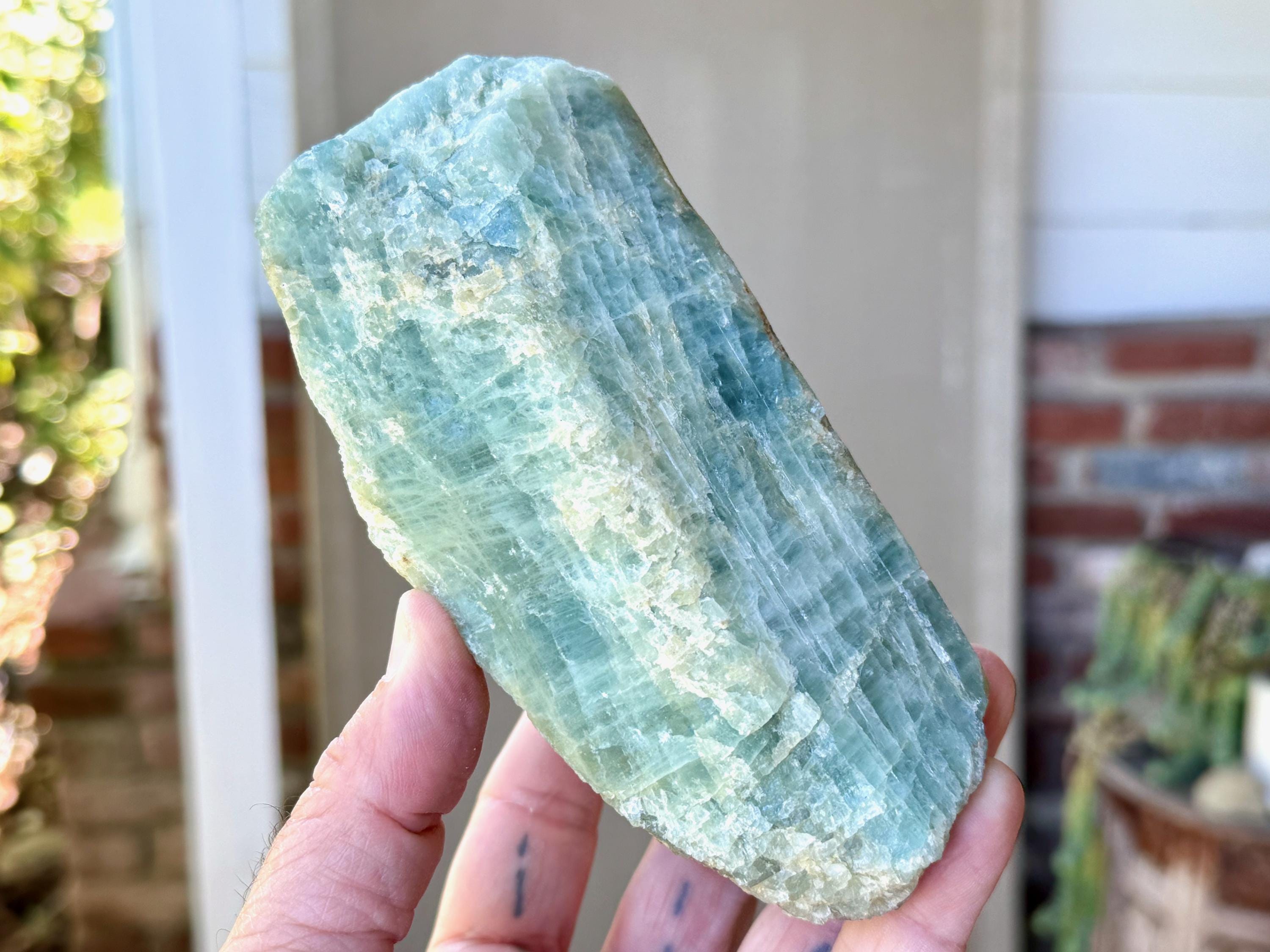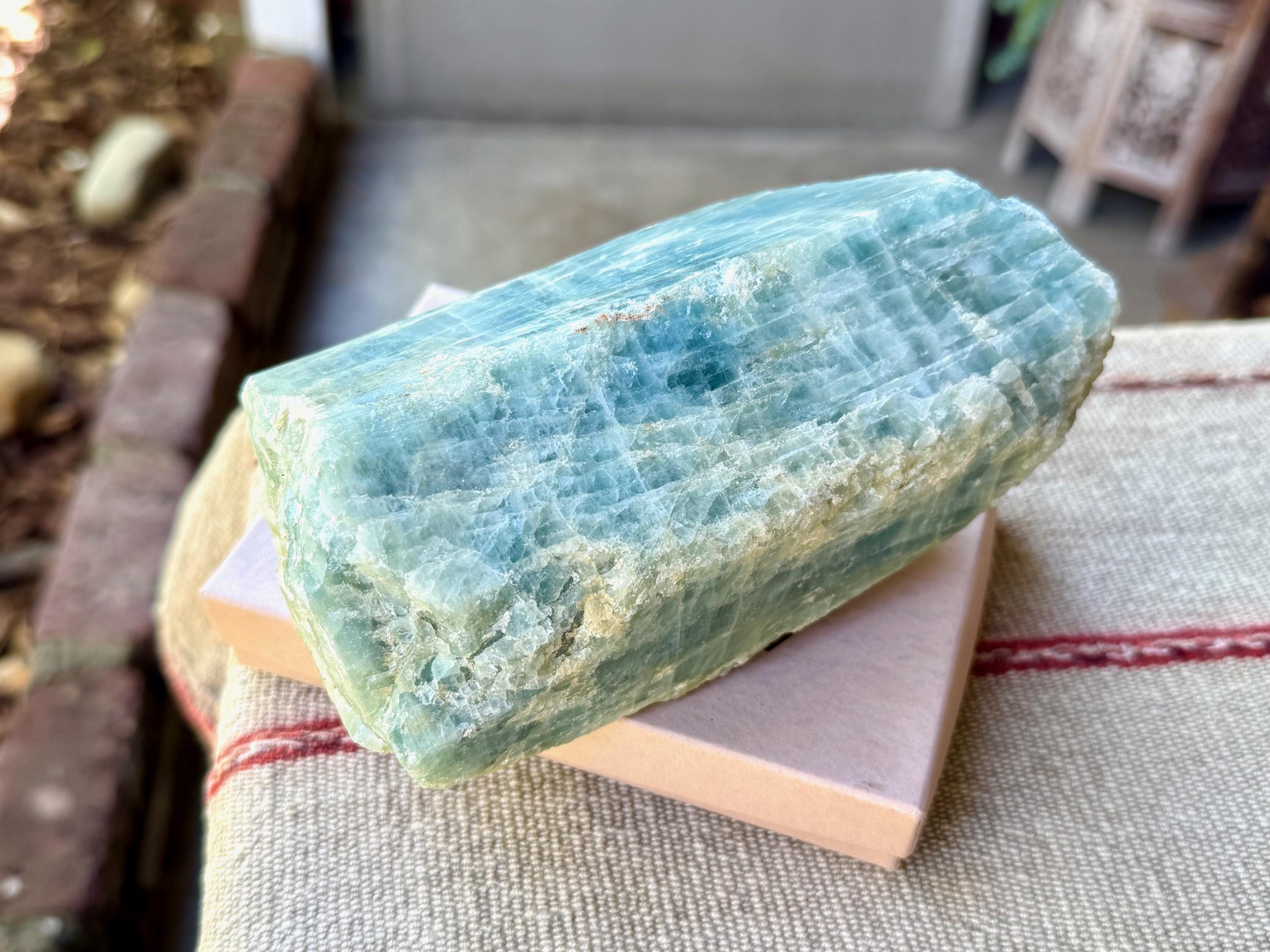 This natural Aquamarine crystal comes from a recent find in Bahia, Brazil, a locale renowned for its high quality Aquamarine. Aquamarine is the blue mineral in the Beryl family and is a powerful crystal for aiding in self-expression and emotional cleansing.