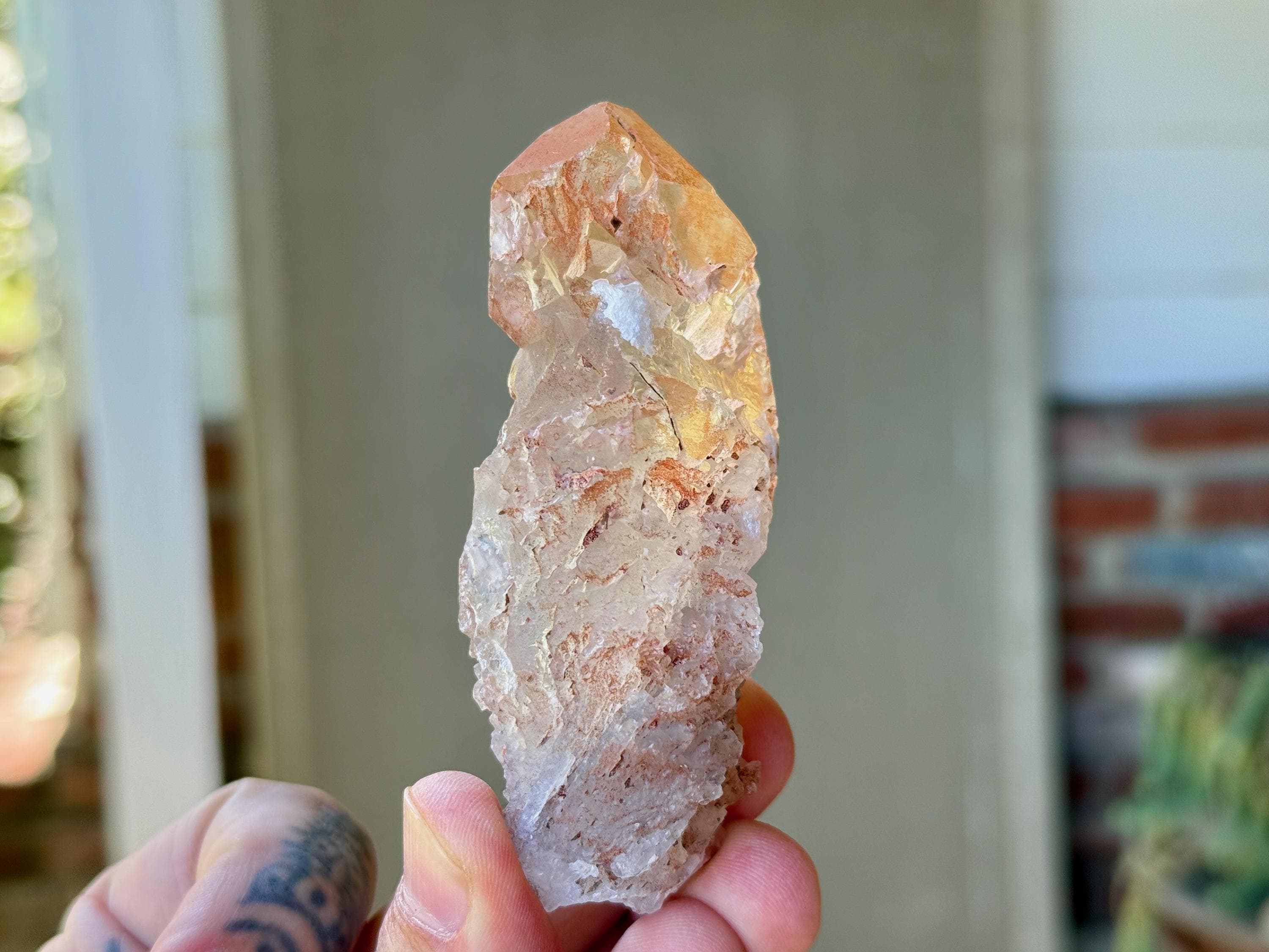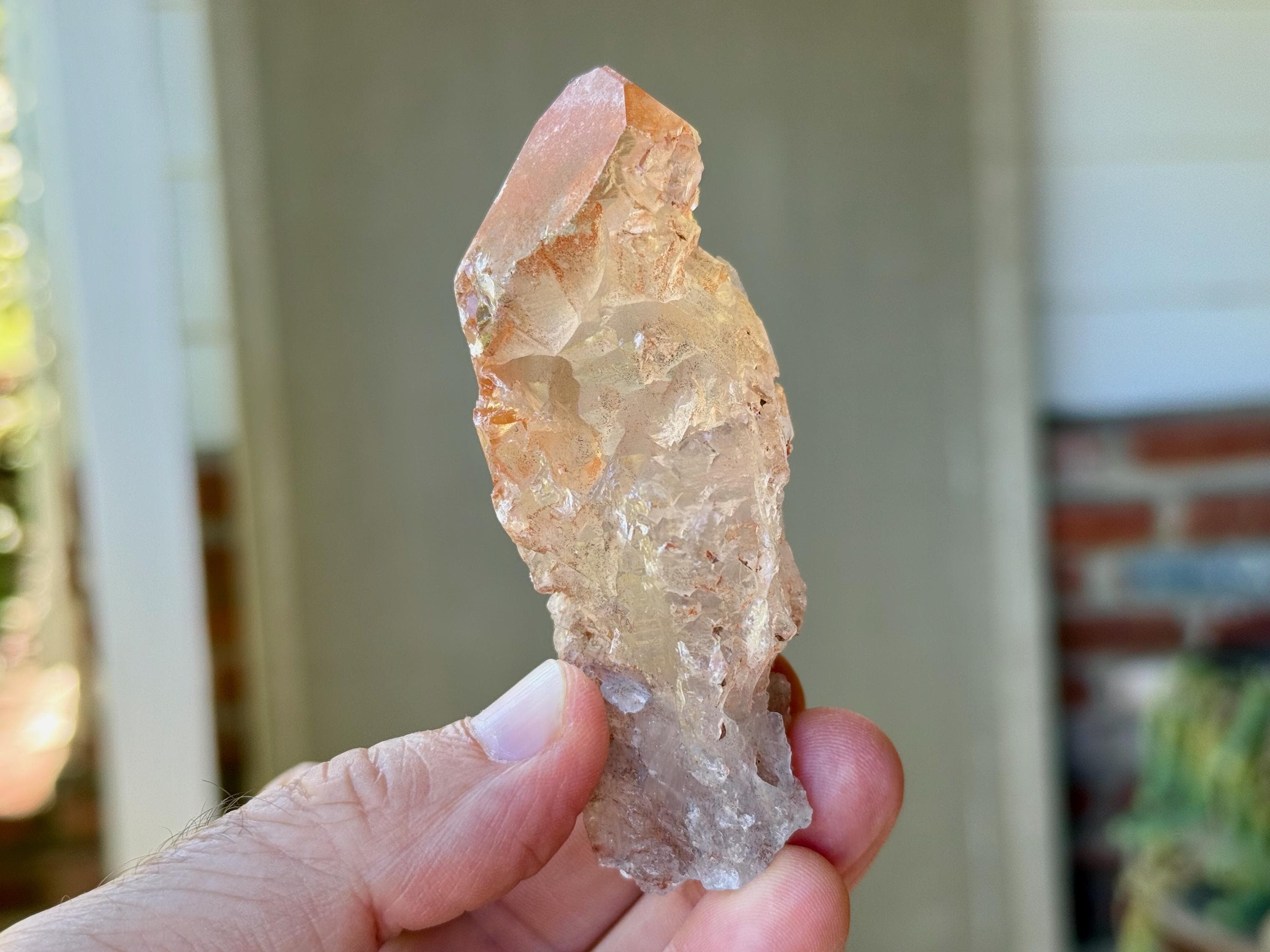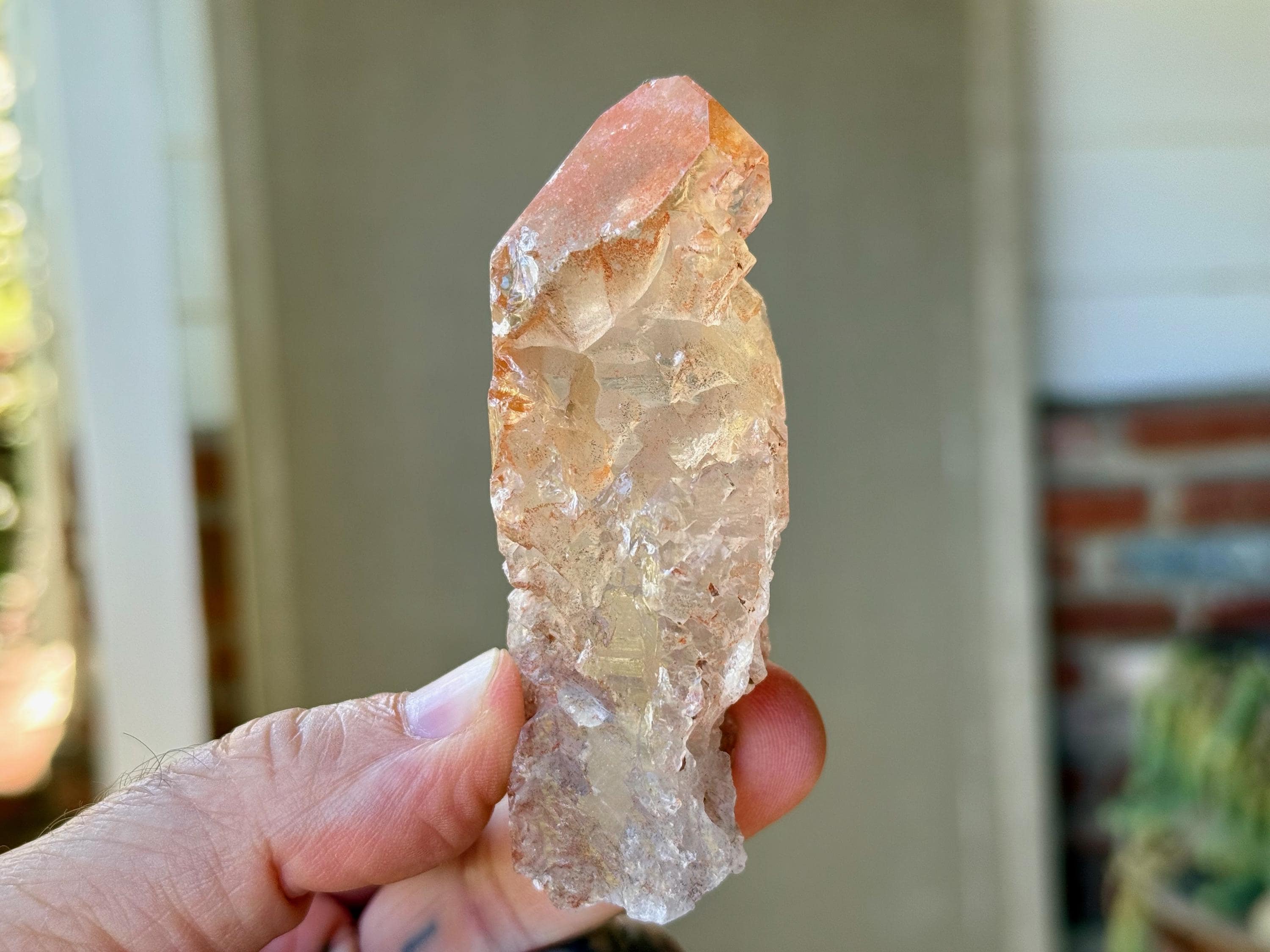 This extraordinary Ancient Sage Tangerine Quartz comes from an old find in Para State, Brazil. The pinkish-orange hue comes from Hematite inclusion.