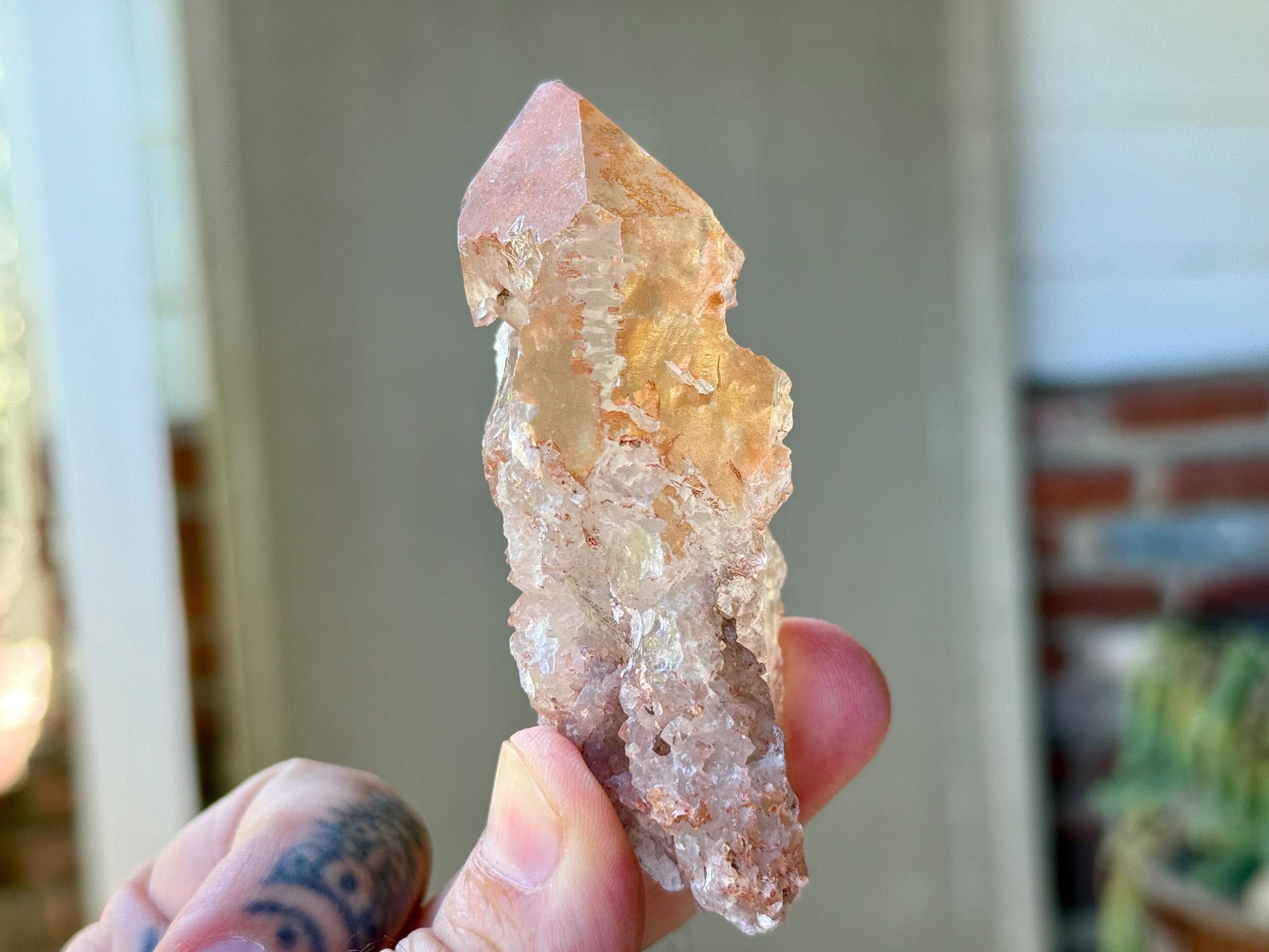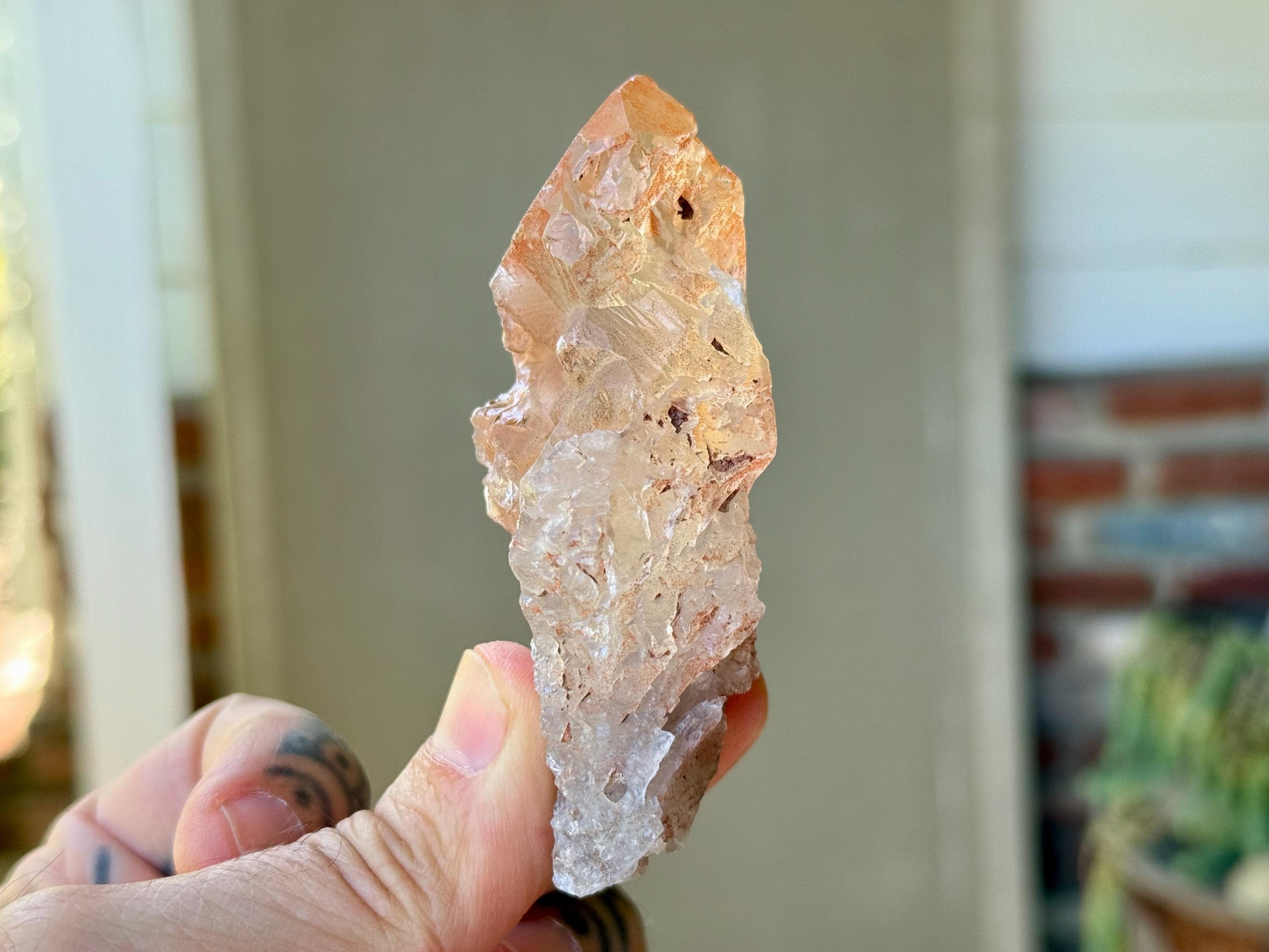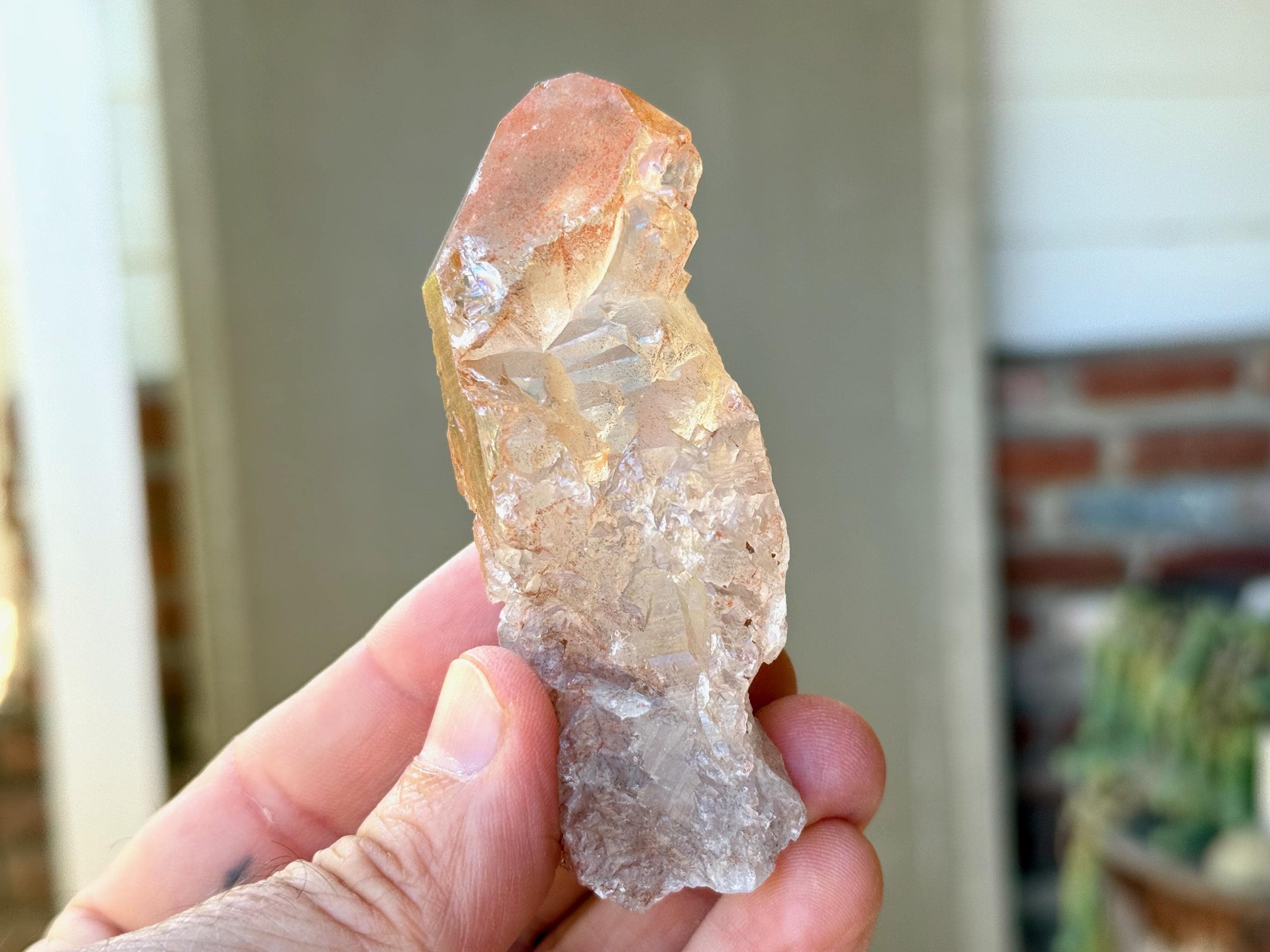 This extraordinary Ancient Sage Tangerine Quartz comes from an old find in Para State, Brazil. The pinkish-orange hue comes from Hematite inclusion.