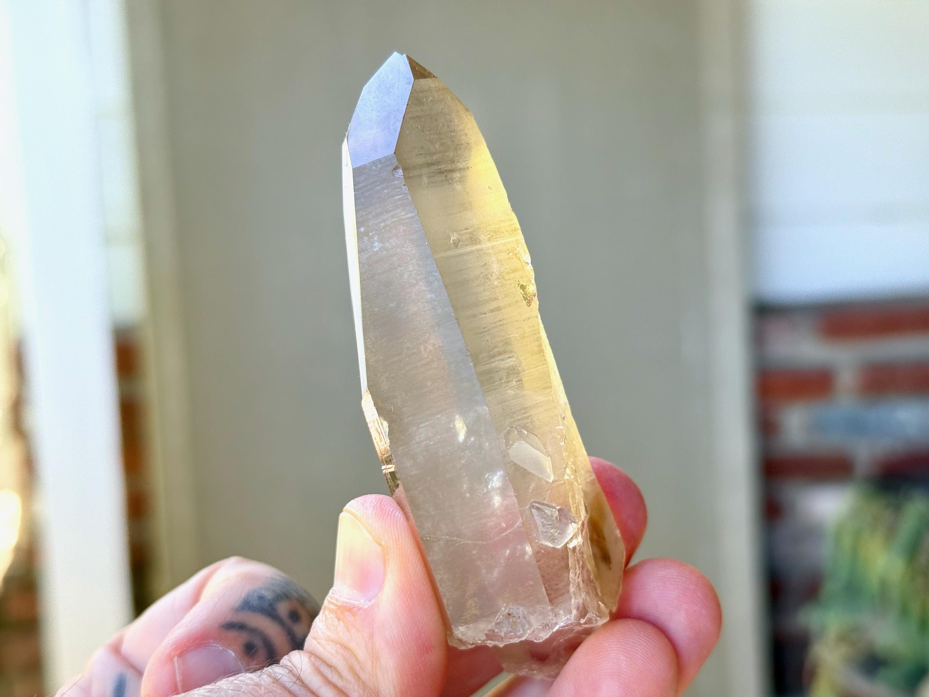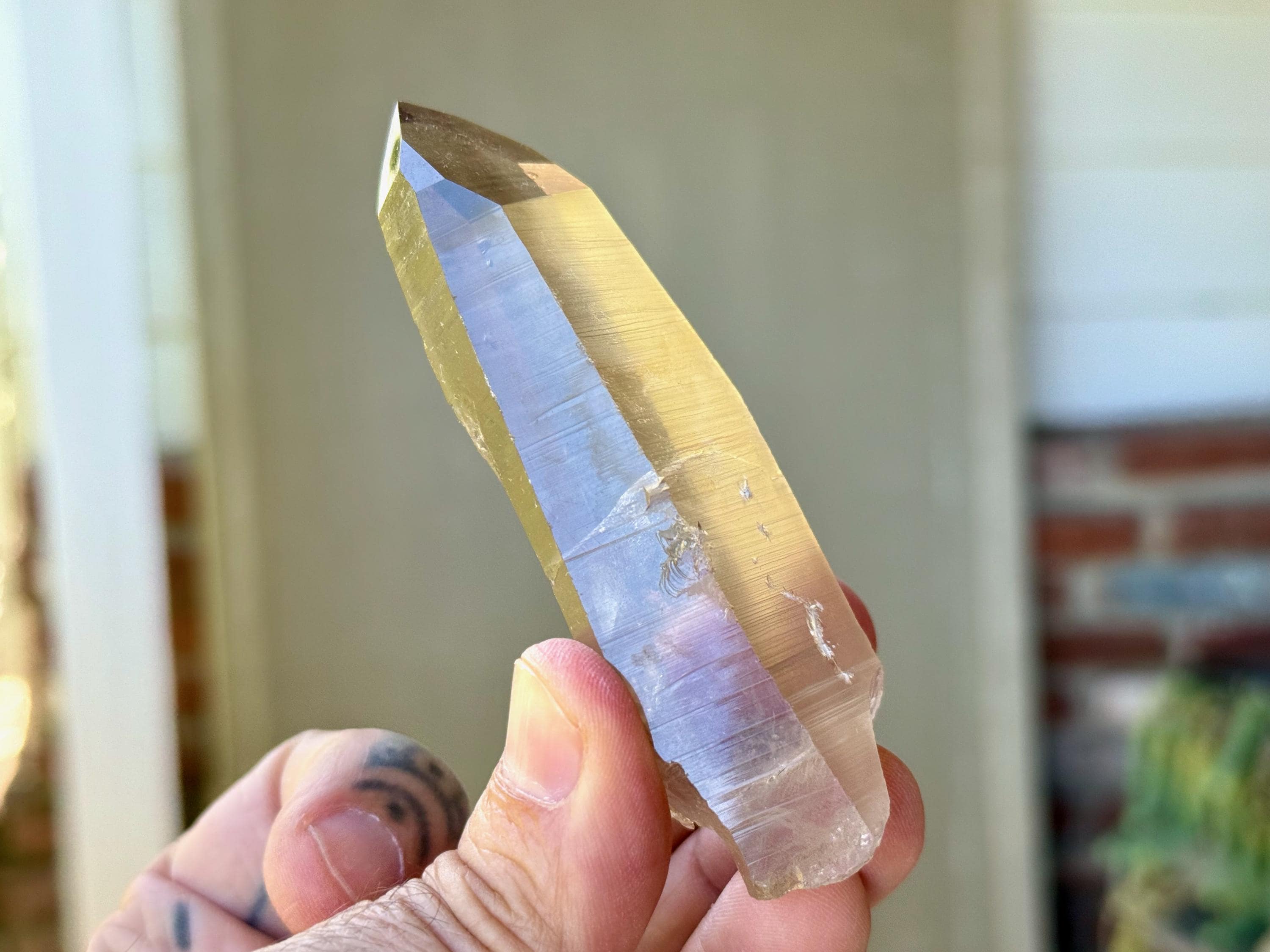 Lemurian Quartz resonates with all chakras, but primarily the Crown Chakra. It has one of the highest vibrations of any crystal and is a beautiful companion for meditation and to realign energies in the body. It can assist in clearing blockages in one's energy field and/or chakras, dispelling heavy energies from the body. If there is stagnant energy in the body, it can help to increase Prana (life force) energy to get things moving properly again. Meditating with Lemurian Crystals can allow us to connect with higher-dimensional spirit guides and connect to Divine realms, as well as to decode the information they contain within.